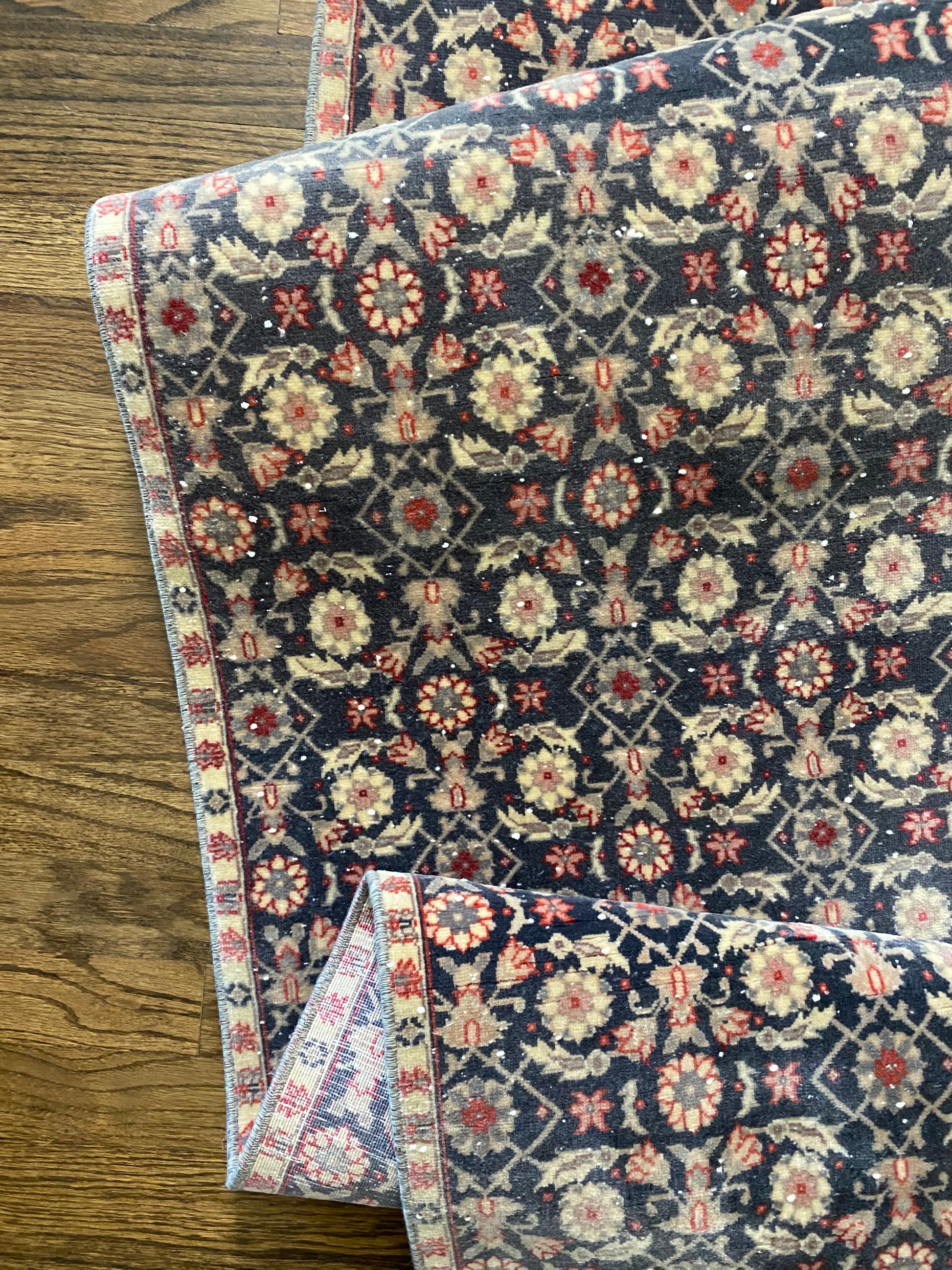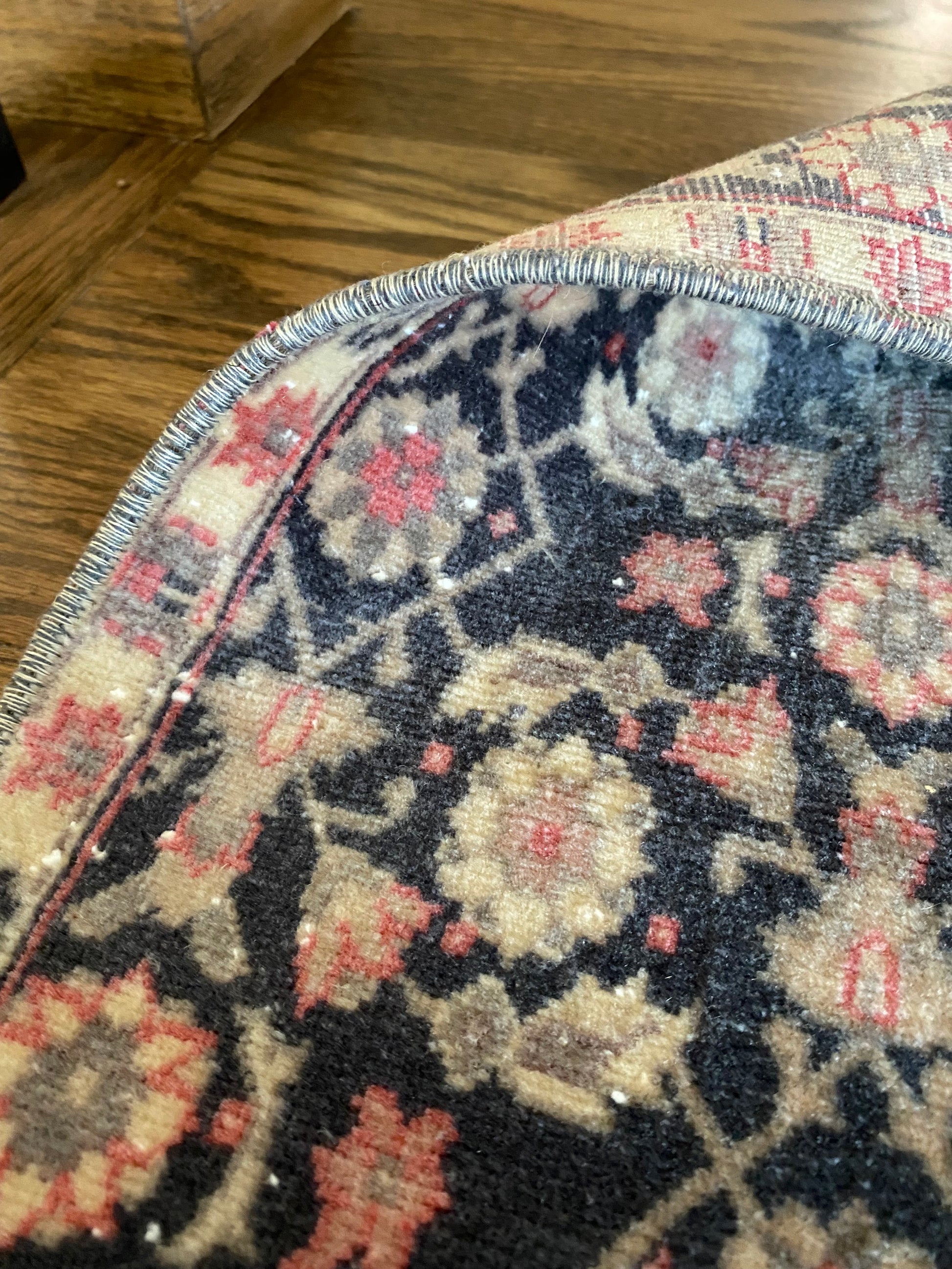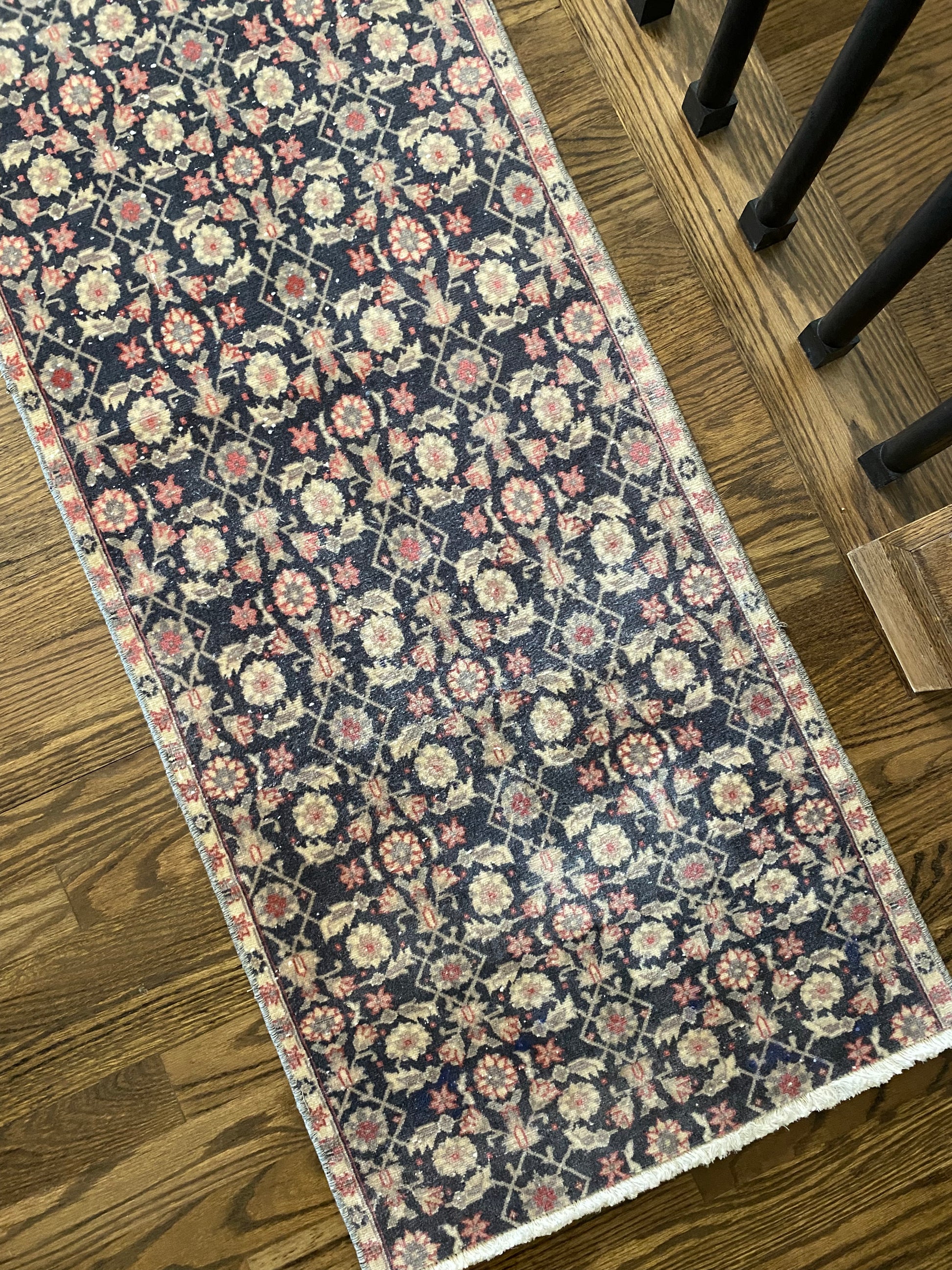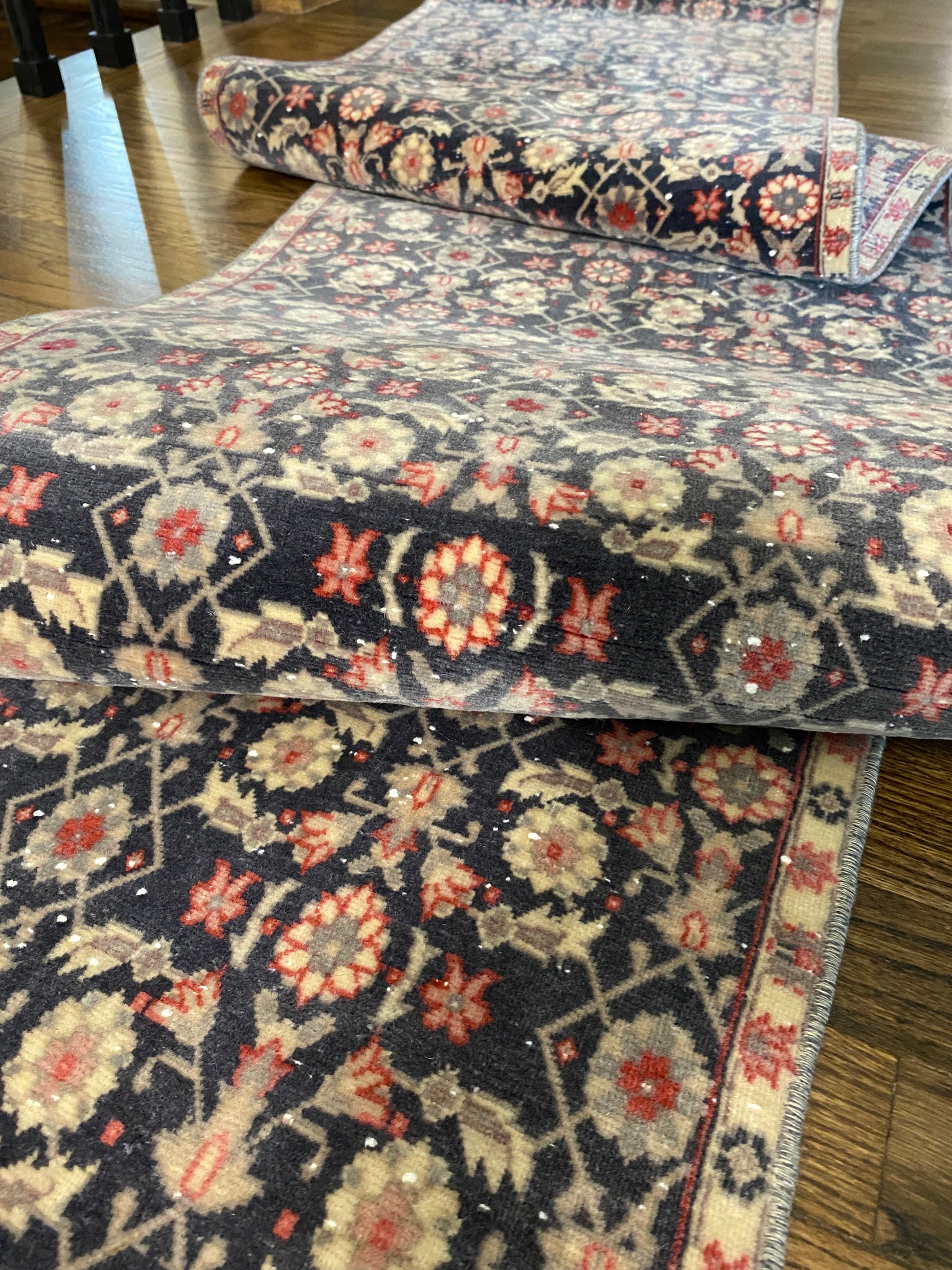 All of our rugs have been professionally cleaned prior to listing. We strive to deliver rugs that everyone loves, but please note that when you purchase from Two Sisters Rugs you are purchasing an item that is pre-owned and vintage by nature. Rugs might have areas of wear, minor repairs, or other unique characteristics, but we believe this is what makes them beautiful and one of a kind. Many rugs do not have perfect lines. All photographs are taken on an iPhone with no filter in natural light unless otherwise noted; colors may vary depending on the placement in your home. Colors may also vary depending on your phone or screen settings. If the area you are placing the rug has less natural light, the rug will appear darker in person. We aim to represent each rugs true colors and designs on the listing photos, but are happy to send additional photos upon request prior to purchase. High quality wool contains a substance called lanolin, which emits a metallic-y, but sweet and grassy scent. ALL SALES ARE FINAL.