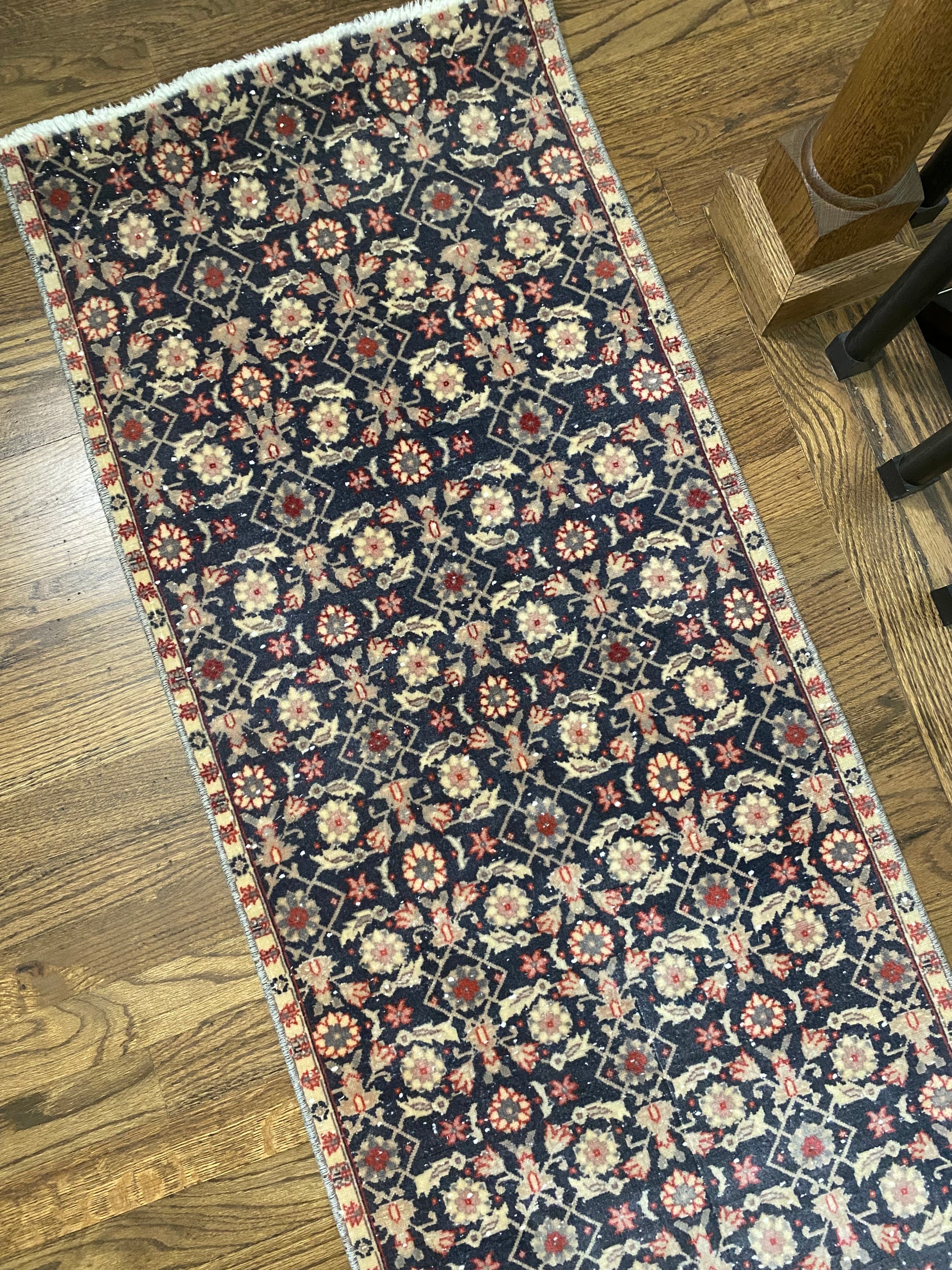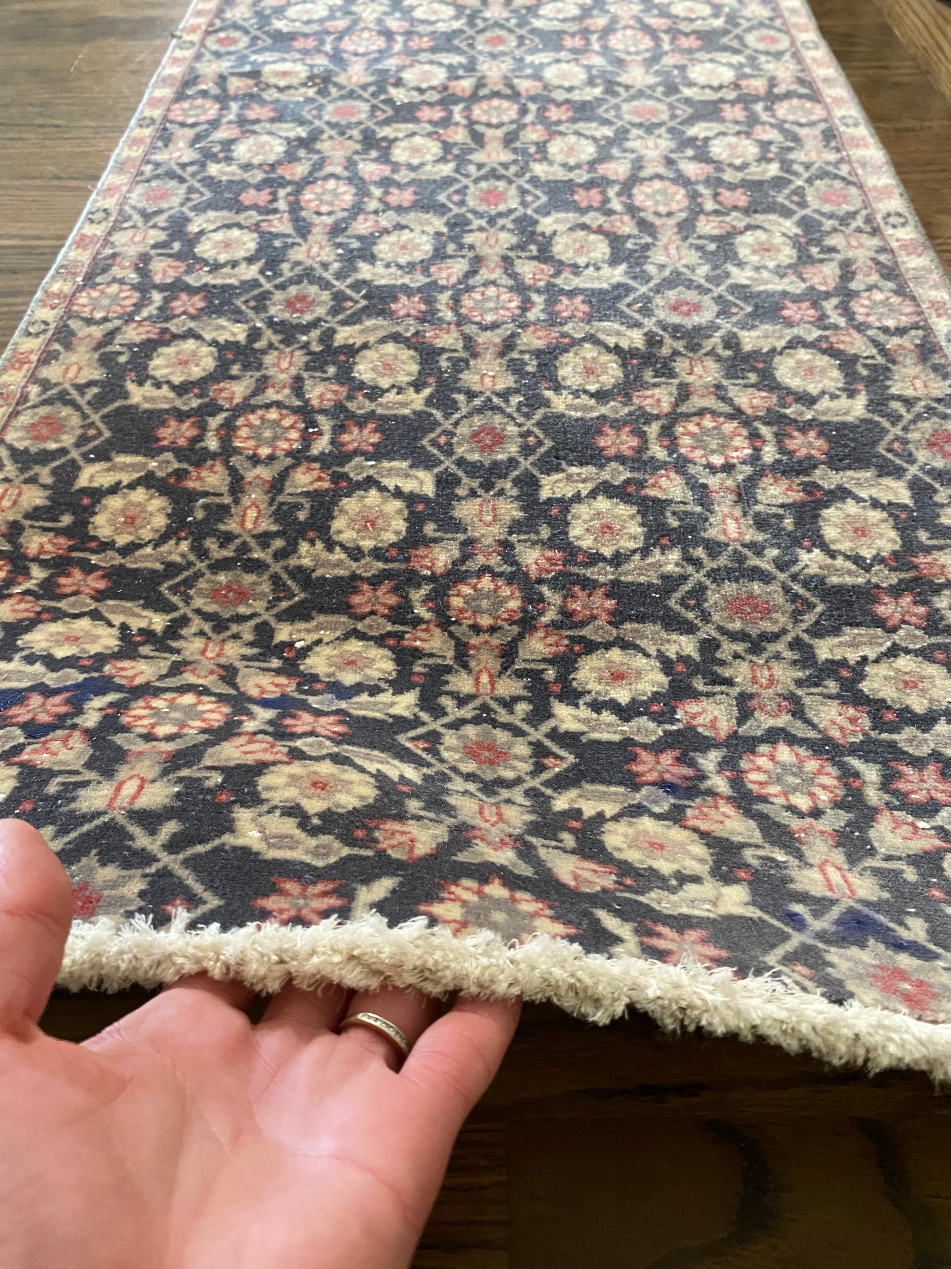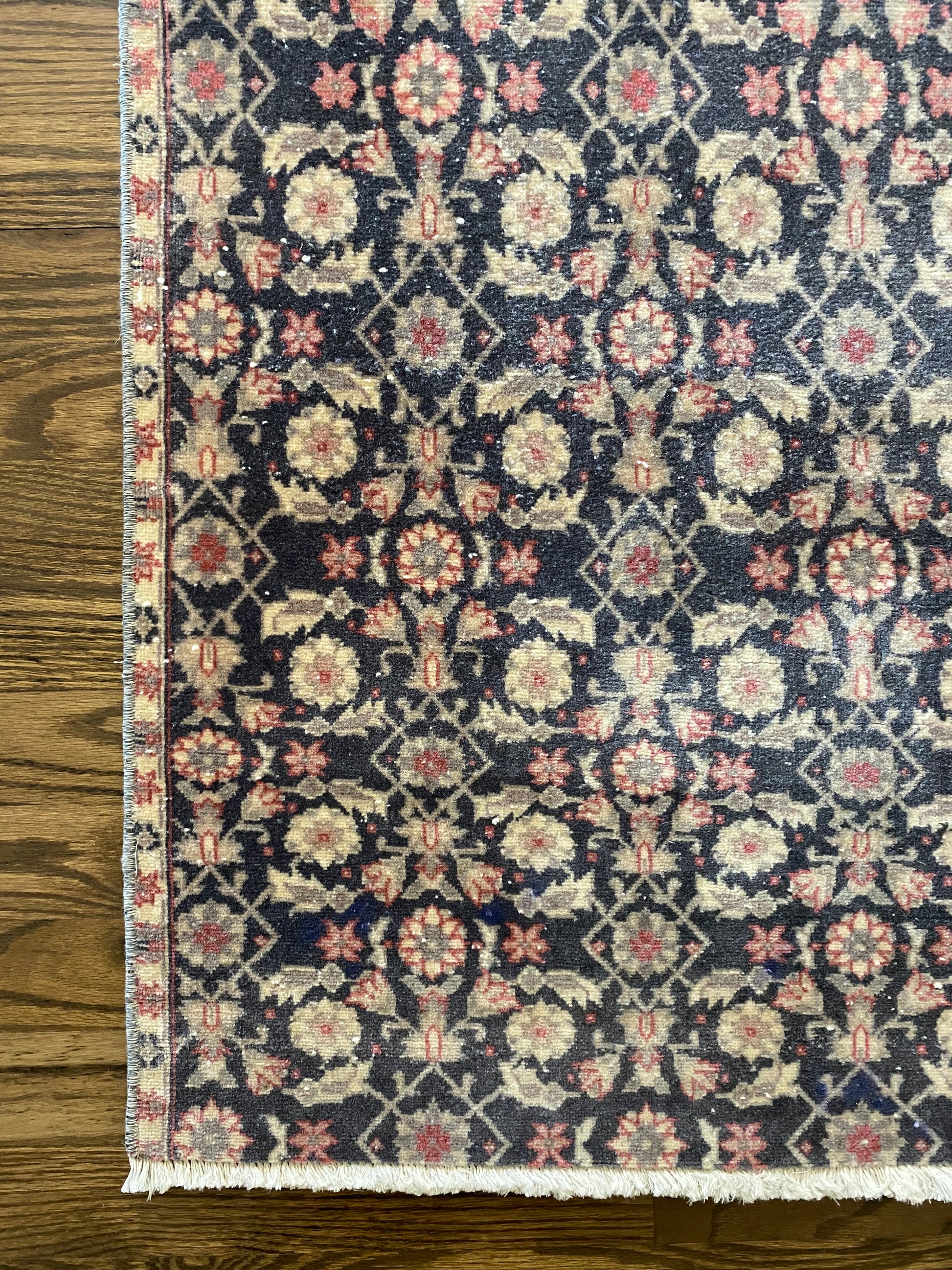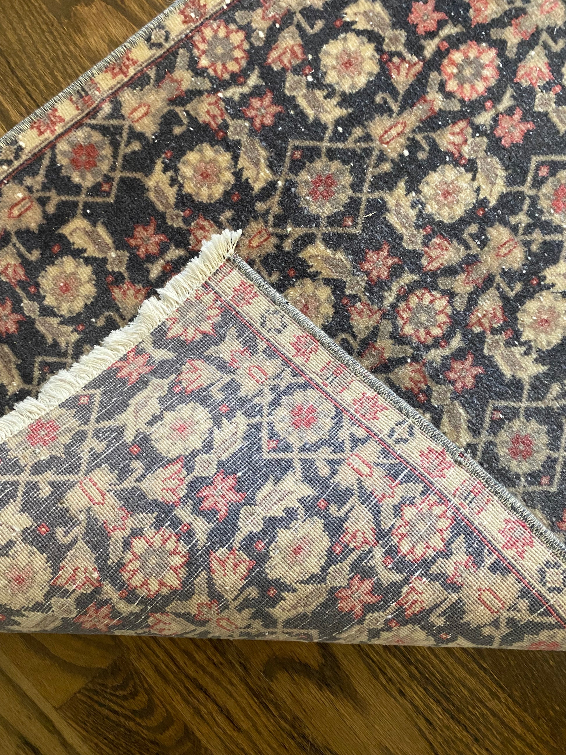 All of our rugs have been professionally cleaned prior to listing. We strive to deliver rugs that everyone loves, but please note that when you purchase from Two Sisters Rugs you are purchasing an item that is pre-owned and vintage by nature. Rugs might have areas of wear, minor repairs, or other unique characteristics, but we believe this is what makes them beautiful and one of a kind. Many rugs do not have perfect lines. All photographs are taken on an iPhone with no filter in natural light unless otherwise noted; colors may vary depending on the placement in your home. Colors may also vary depending on your phone or screen settings. If the area you are placing the rug has less natural light, the rug will appear darker in person. We aim to represent each rugs true colors and designs on the listing photos, but are happy to send additional photos upon request prior to purchase. High quality wool contains a substance called lanolin, which emits a metallic-y, but sweet and grassy scent. ALL SALES ARE FINAL.