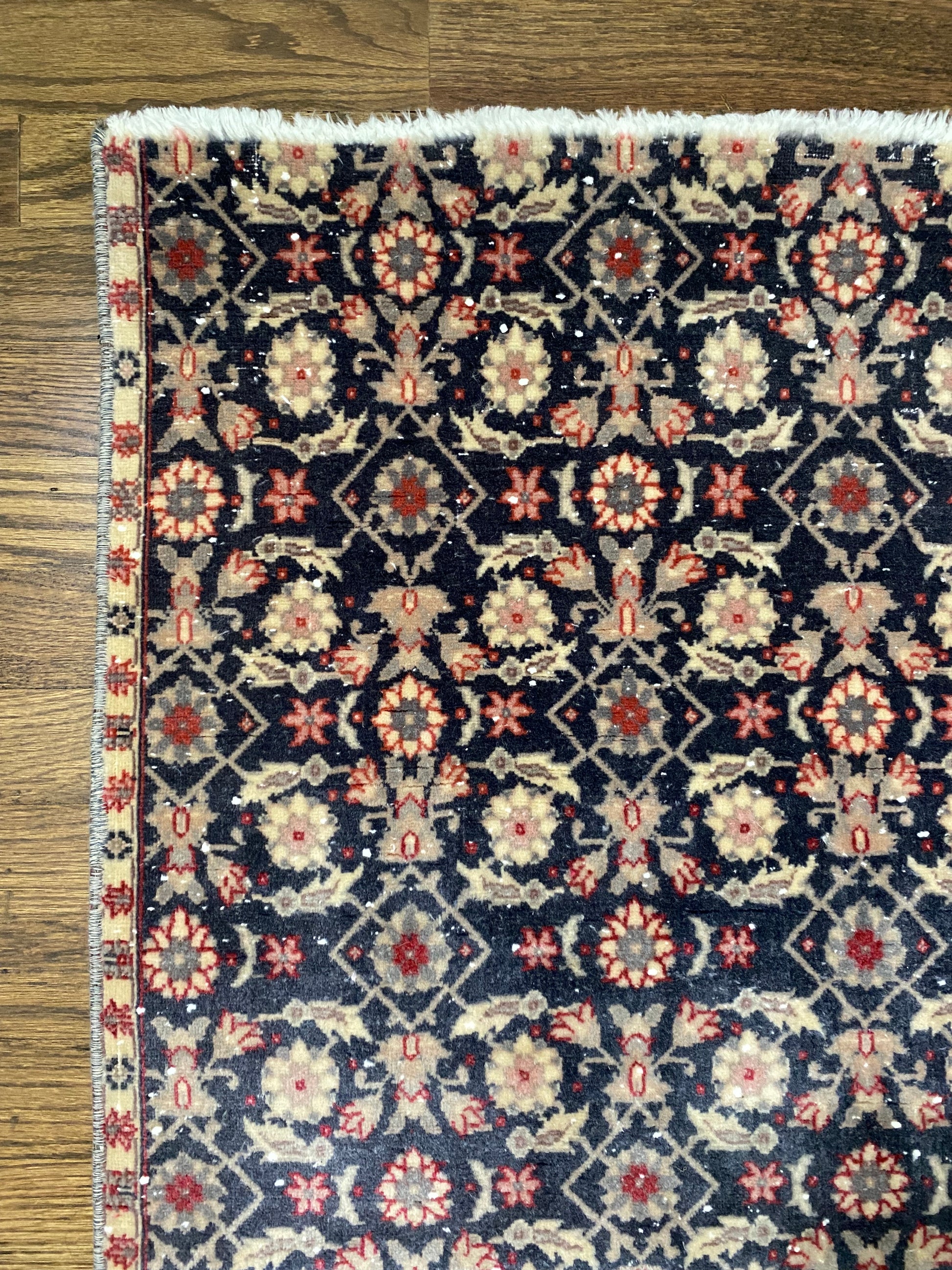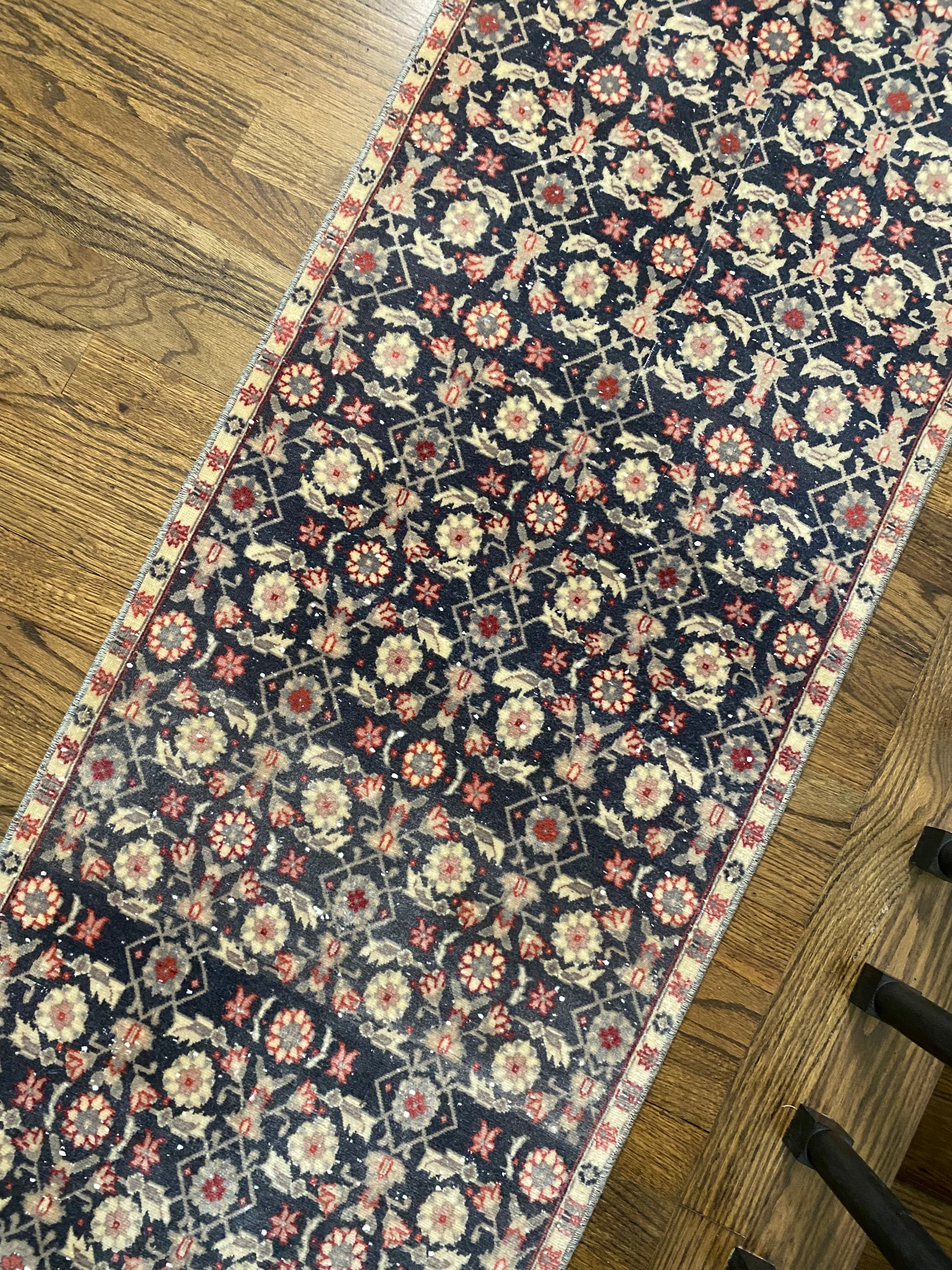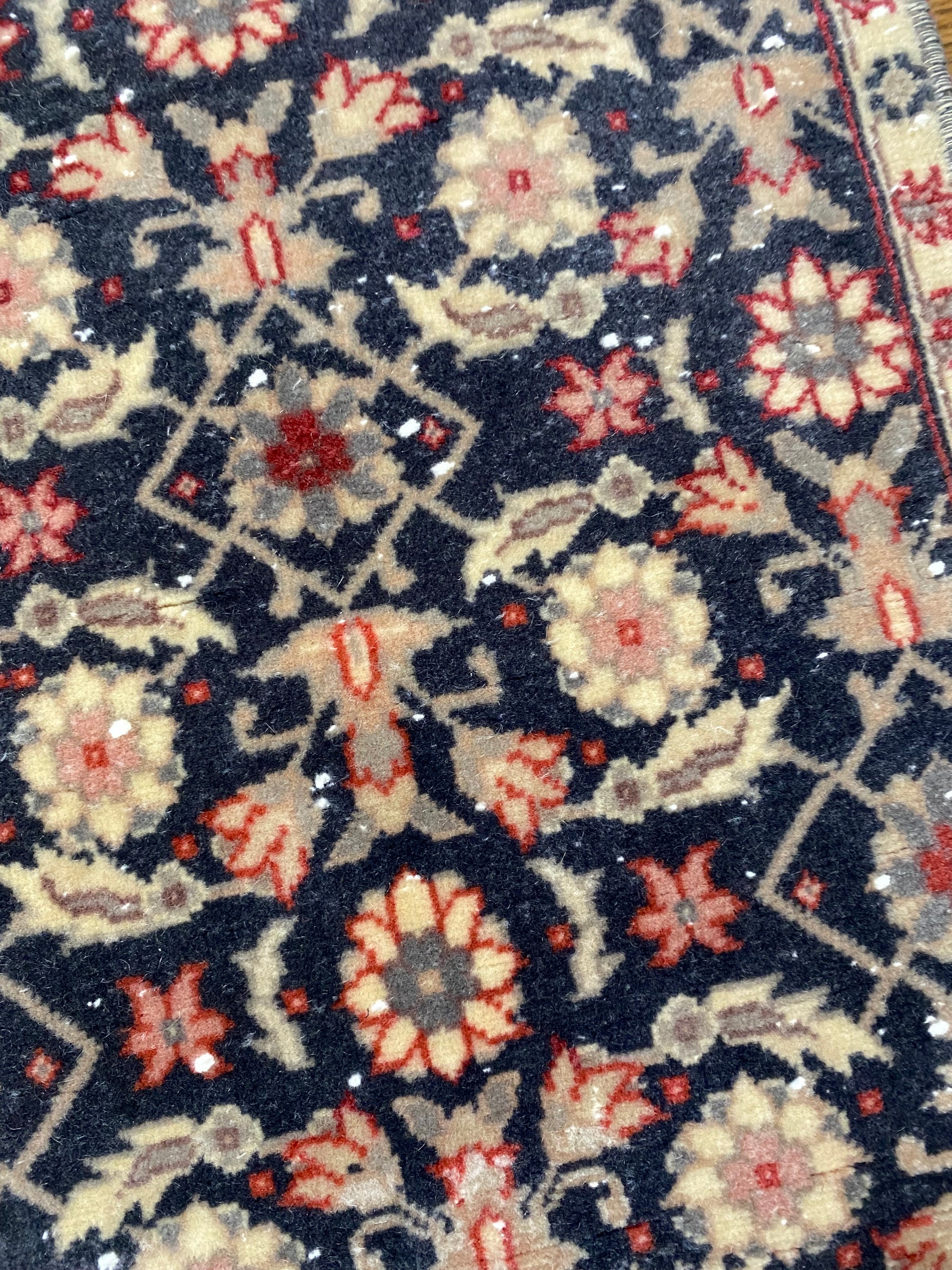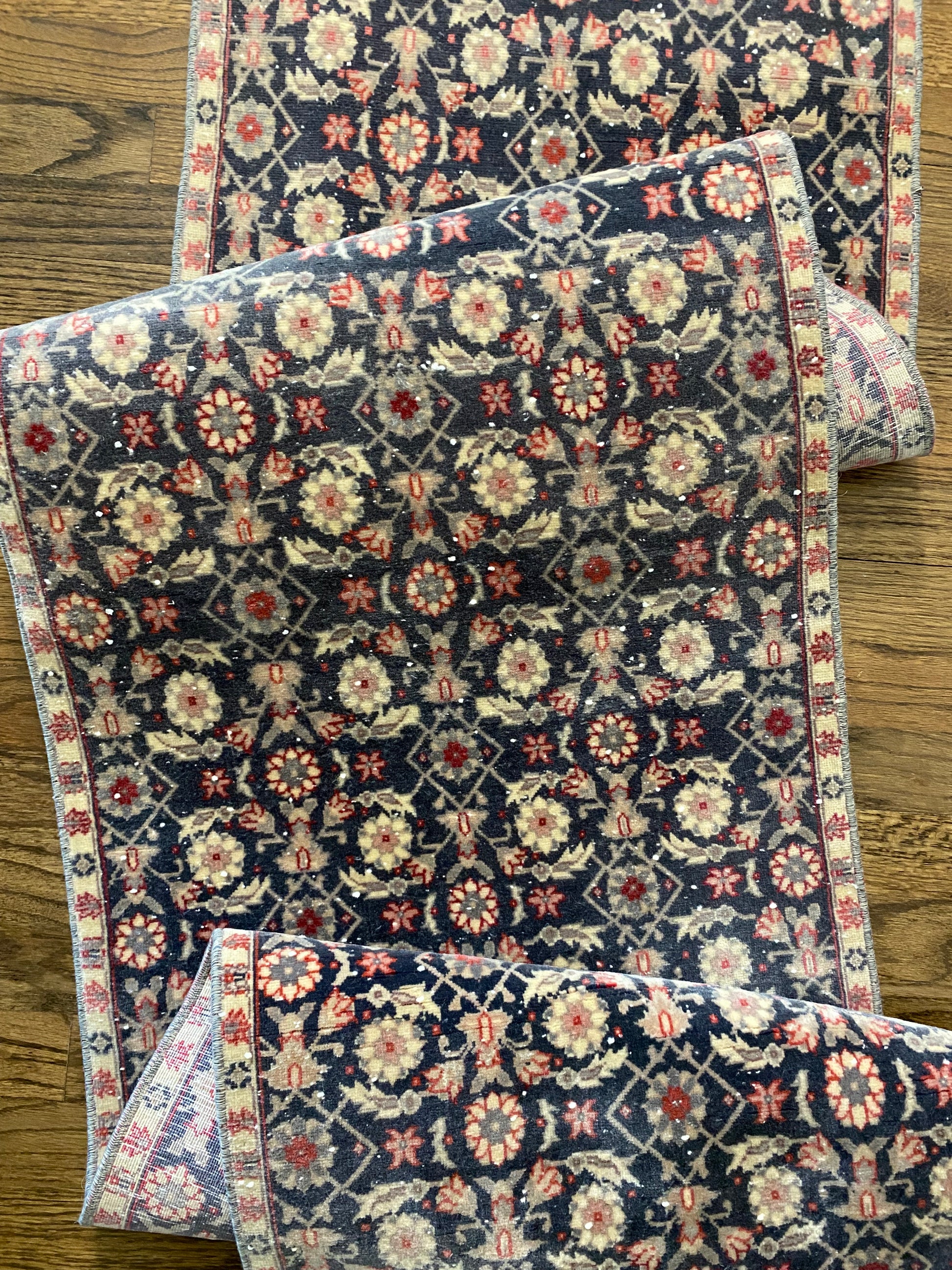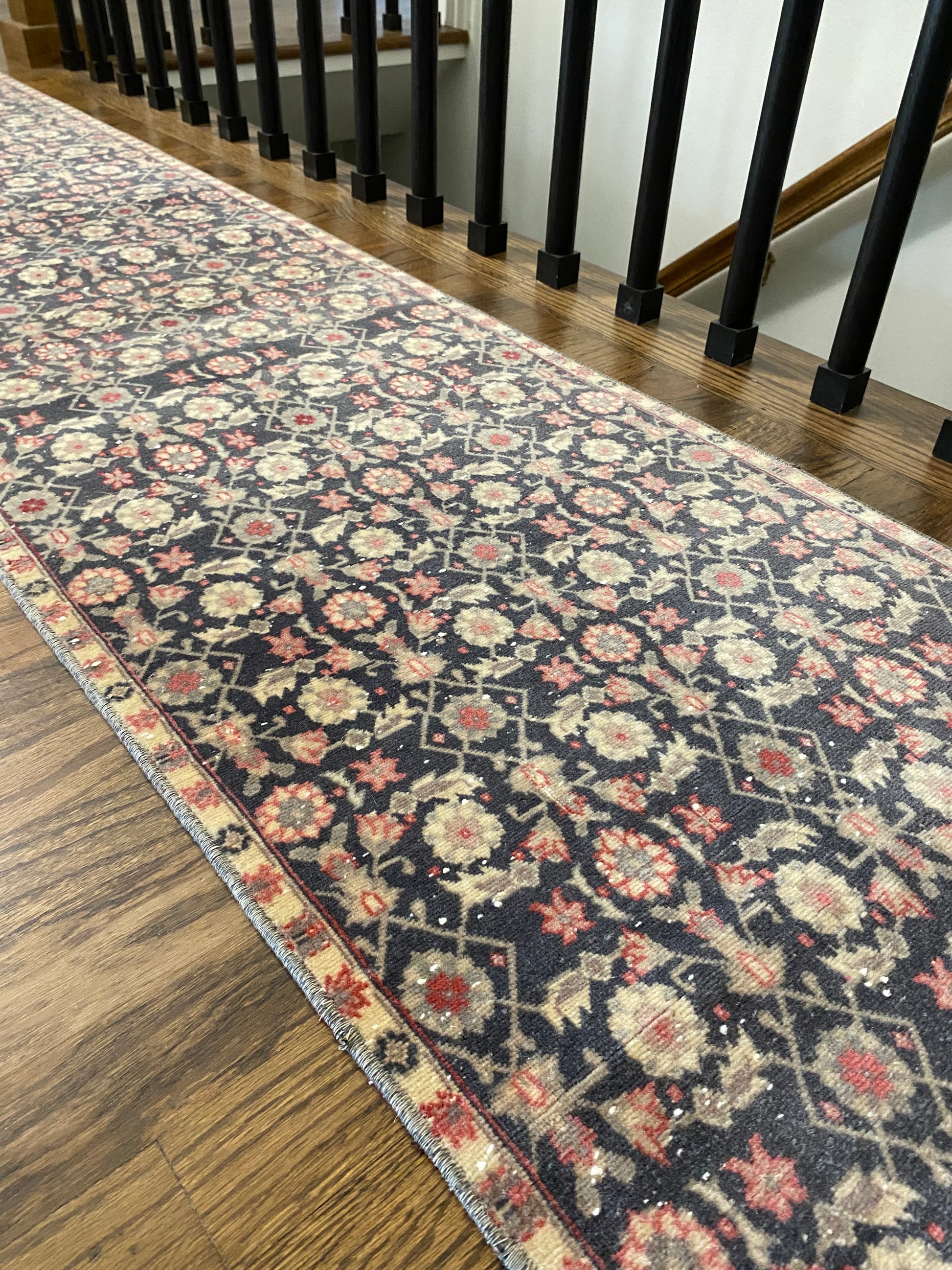 All of our rugs have been professionally cleaned prior to listing. We strive to deliver rugs that everyone loves, but please note that when you purchase from Two Sisters Rugs you are purchasing an item that is pre-owned and vintage by nature. Rugs might have areas of wear, minor repairs, or other unique characteristics, but we believe this is what makes them beautiful and one of a kind. Many rugs do not have perfect lines. All photographs are taken on an iPhone with no filter in natural light unless otherwise noted; colors may vary depending on the placement in your home. Colors may also vary depending on your phone or screen settings. If the area you are placing the rug has less natural light, the rug will appear darker in person. We aim to represent each rugs true colors and designs on the listing photos, but are happy to send additional photos upon request prior to purchase. High quality wool contains a substance called lanolin, which emits a metallic-y, but sweet and grassy scent. ALL SALES ARE FINAL.