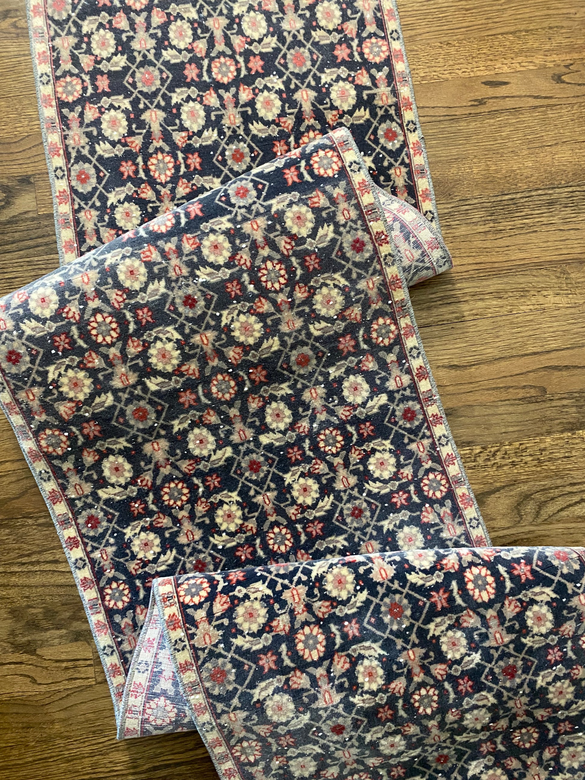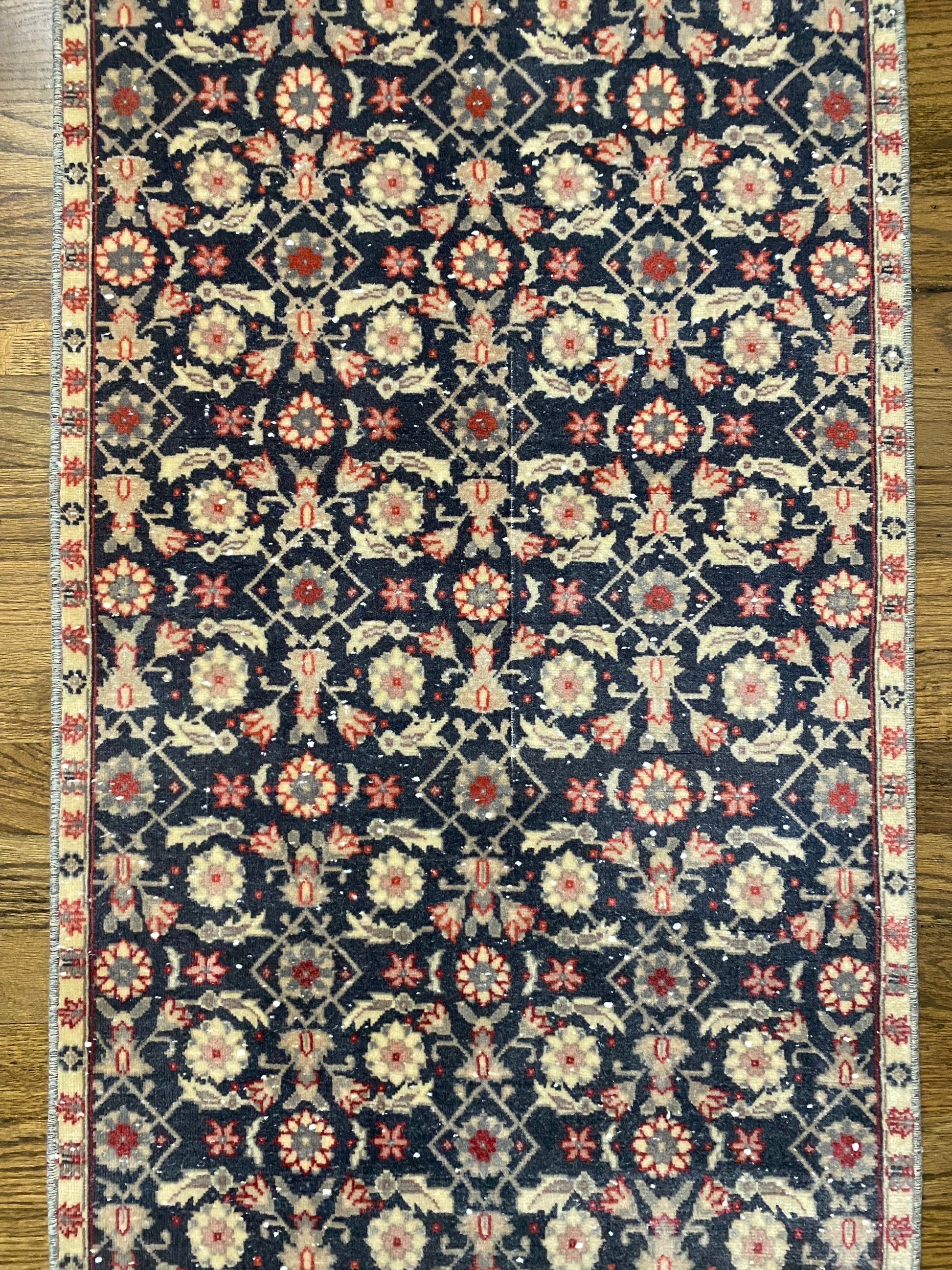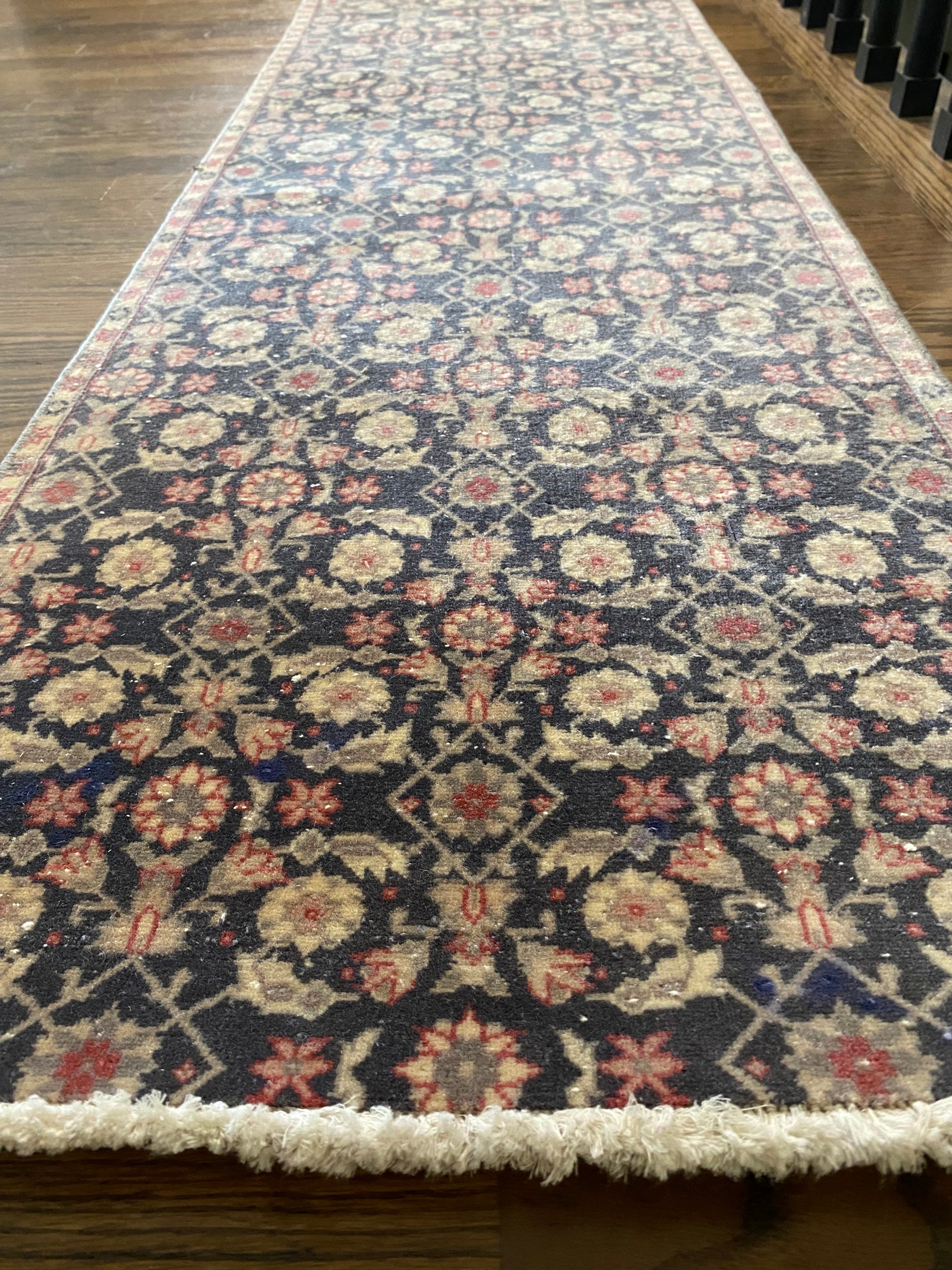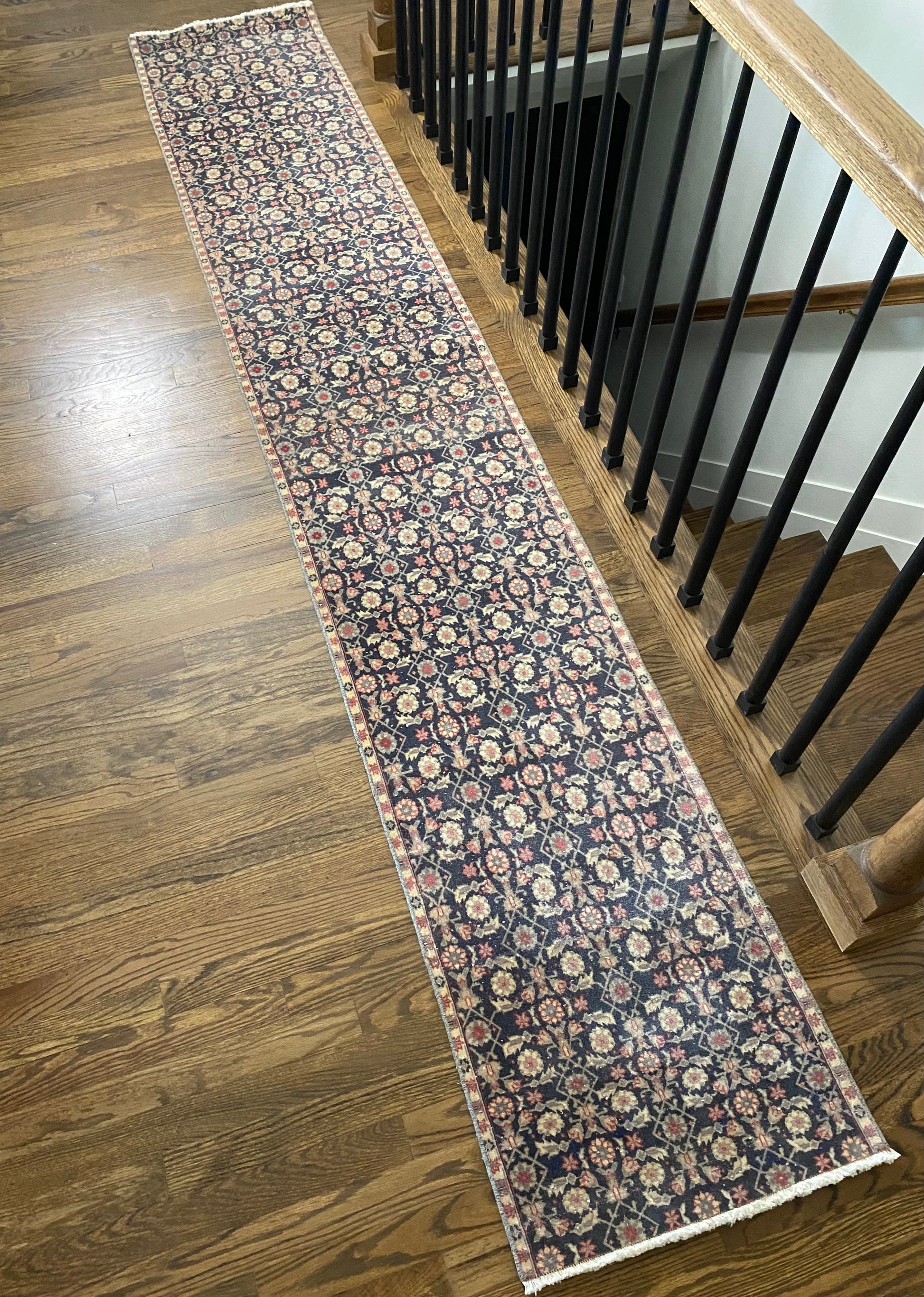 All of our rugs have been professionally cleaned prior to listing. We strive to deliver rugs that everyone loves, but please note that when you purchase from Two Sisters Rugs you are purchasing an item that is pre-owned and vintage by nature. Rugs might have areas of wear, minor repairs, or other unique characteristics, but we believe this is what makes them beautiful and one of a kind. Many rugs do not have perfect lines. All photographs are taken on an iPhone with no filter in natural light unless otherwise noted; colors may vary depending on the placement in your home. Colors may also vary depending on your phone or screen settings. If the area you are placing the rug has less natural light, the rug will appear darker in person. We aim to represent each rugs true colors and designs on the listing photos, but are happy to send additional photos upon request prior to purchase. High quality wool contains a substance called lanolin, which emits a metallic-y, but sweet and grassy scent. ALL SALES ARE FINAL.