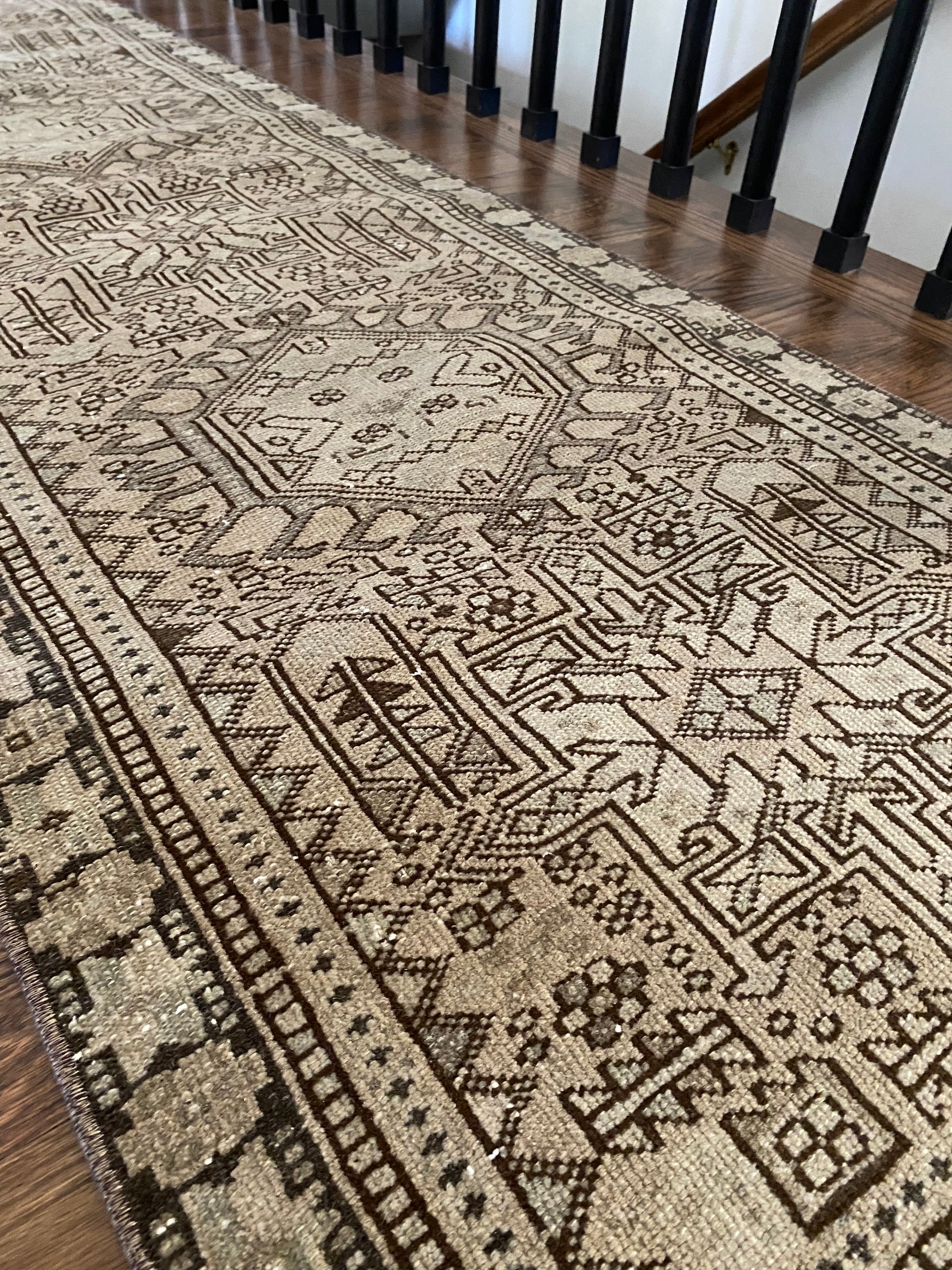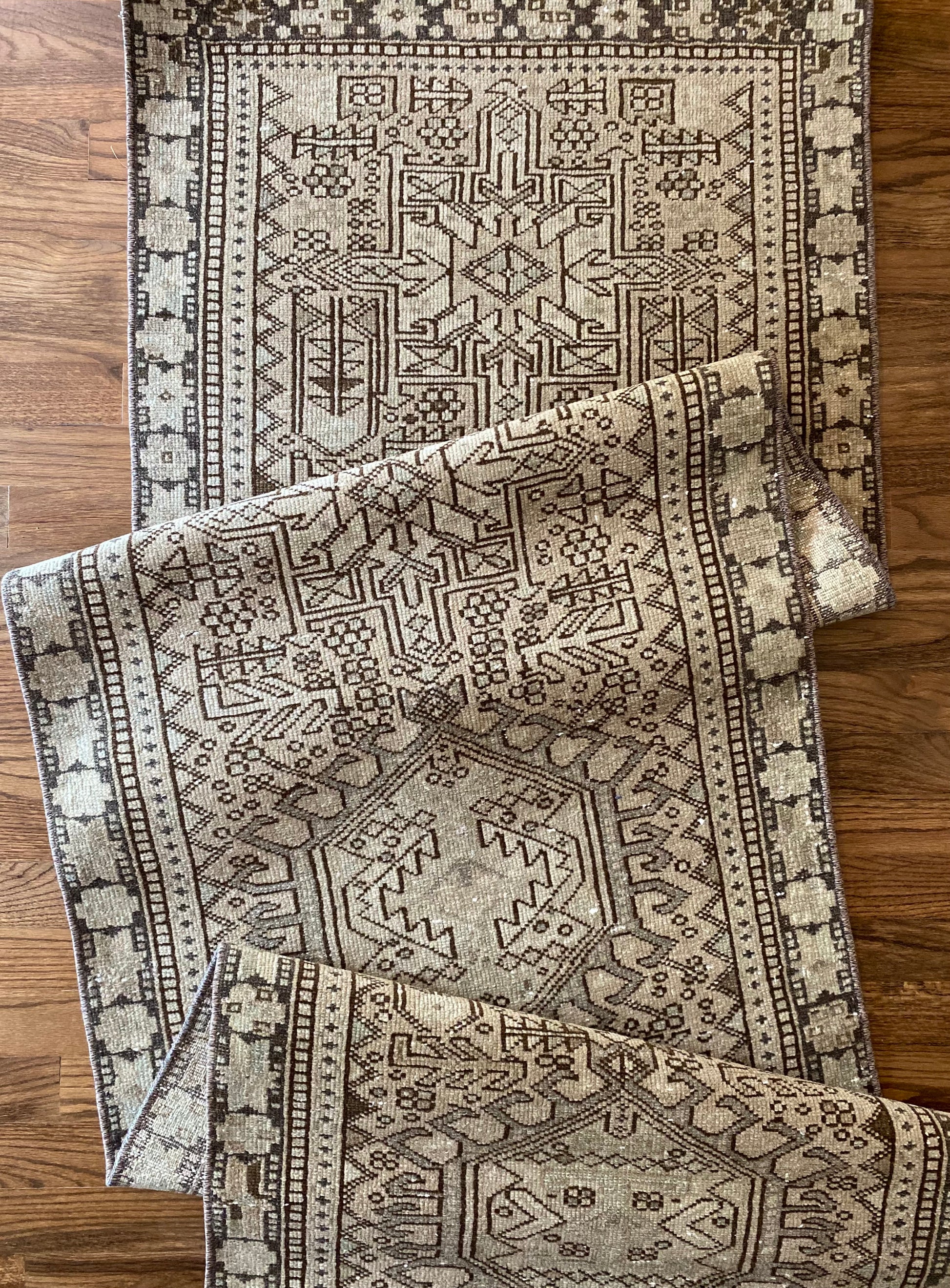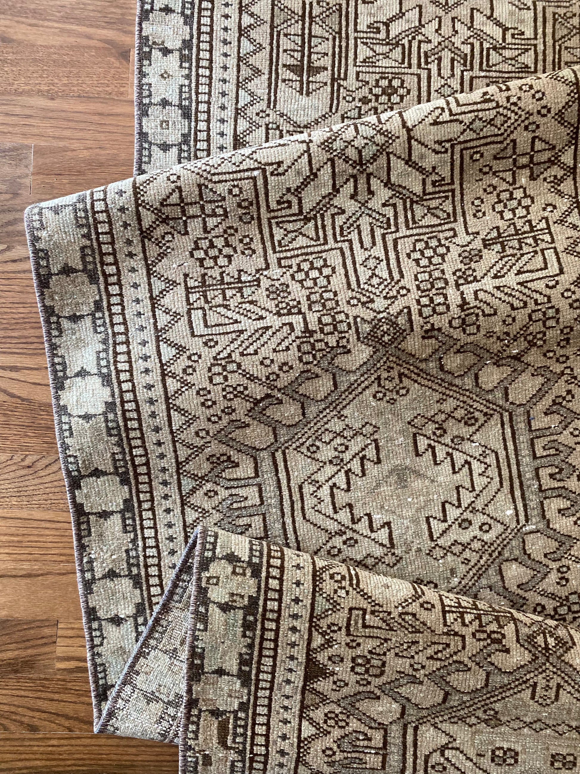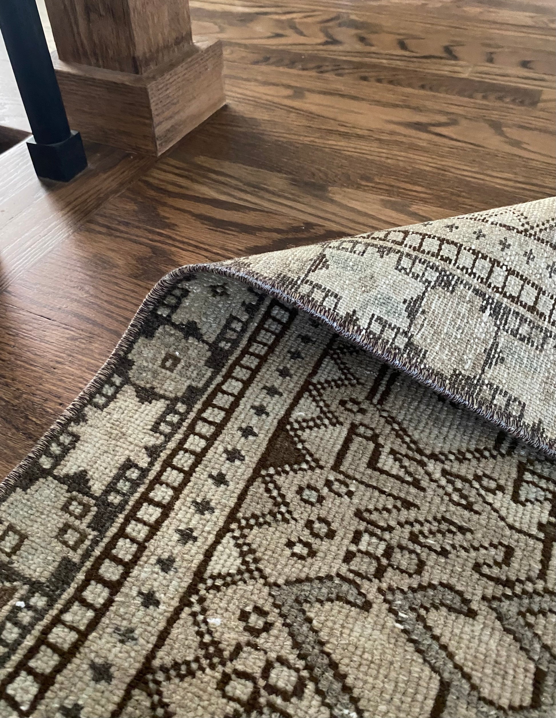 All of our rugs have been professionally cleaned prior to listing. We strive to deliver rugs that everyone loves, but please note that when you purchase from Two Sisters Rugs you are purchasing an item that is pre-owned and vintage by nature. Rugs might have areas of wear, minor repairs, or other unique characteristics, but we believe this is what makes them beautiful and one of a kind. Many rugs do not have perfect lines. All photographs are taken on an iPhone with no filter in natural light unless otherwise noted; colors may vary depending on the placement in your home. Colors may also vary depending on your phone or screen settings. If the area you are placing the rug has less natural light, the rug will appear darker in person. We aim to represent each rugs true colors and designs on the listing photos, but are happy to send additional photos upon request prior to purchase. High quality wool contains a substance called lanolin, which emits a metallic-y, but sweet and grassy scent. ALL SALES ARE FINAL.