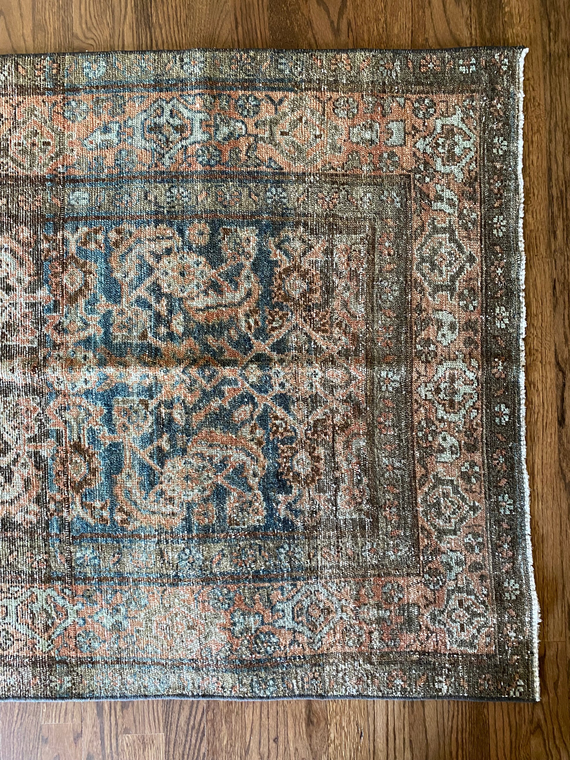 All of our rugs have been professionally cleaned prior to listing. We strive to deliver rugs that everyone loves, but please note that when you purchase from Two Sisters Rugs you are purchasing an item that is pre-owned and vintage by nature. Rugs might have areas of wear, minor repairs, or other unique characteristics, but we believe this is what makes them beautiful and one of a kind. Many rugs do not have perfect lines. All photographs are taken on an iPhone with no filter in natural light unless otherwise noted; colors may vary depending on the placement in your home. Colors may also vary depending on your phone or screen settings. If the area you are placing the rug has less natural light, the rug will appear darker in person. We aim to represent each rugs true colors and designs on the listing photos, but are happy to send additional photos upon request prior to purchase. High quality wool contains a substance called lanolin, which emits a metallic-y, but sweet and grassy scent. ALL SALES ARE FINAL.