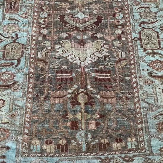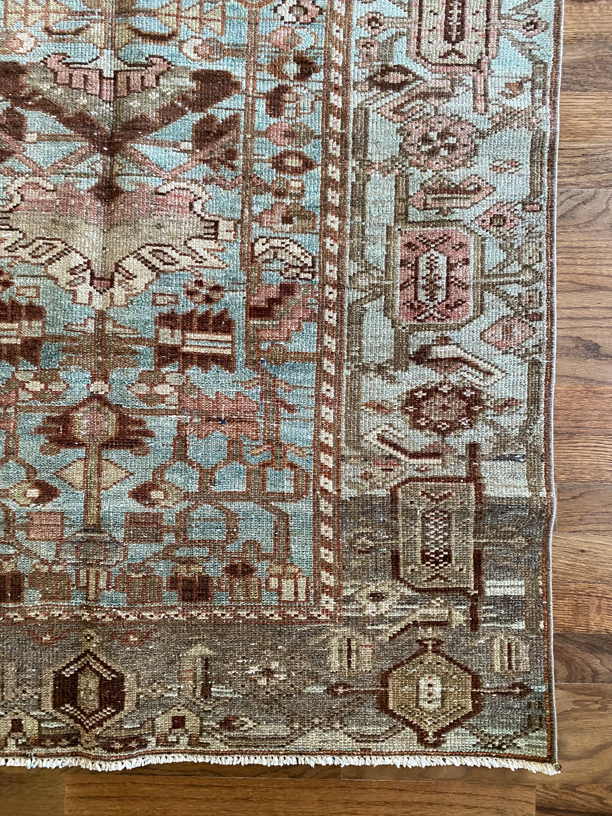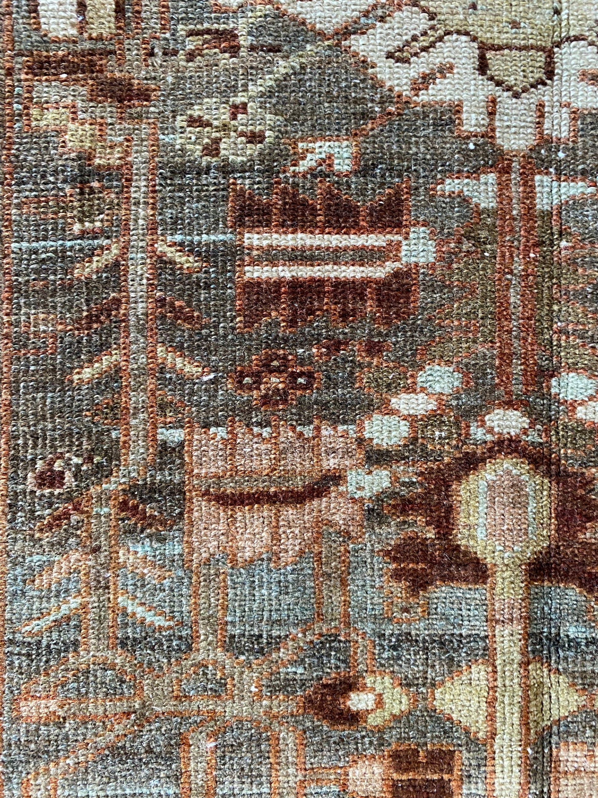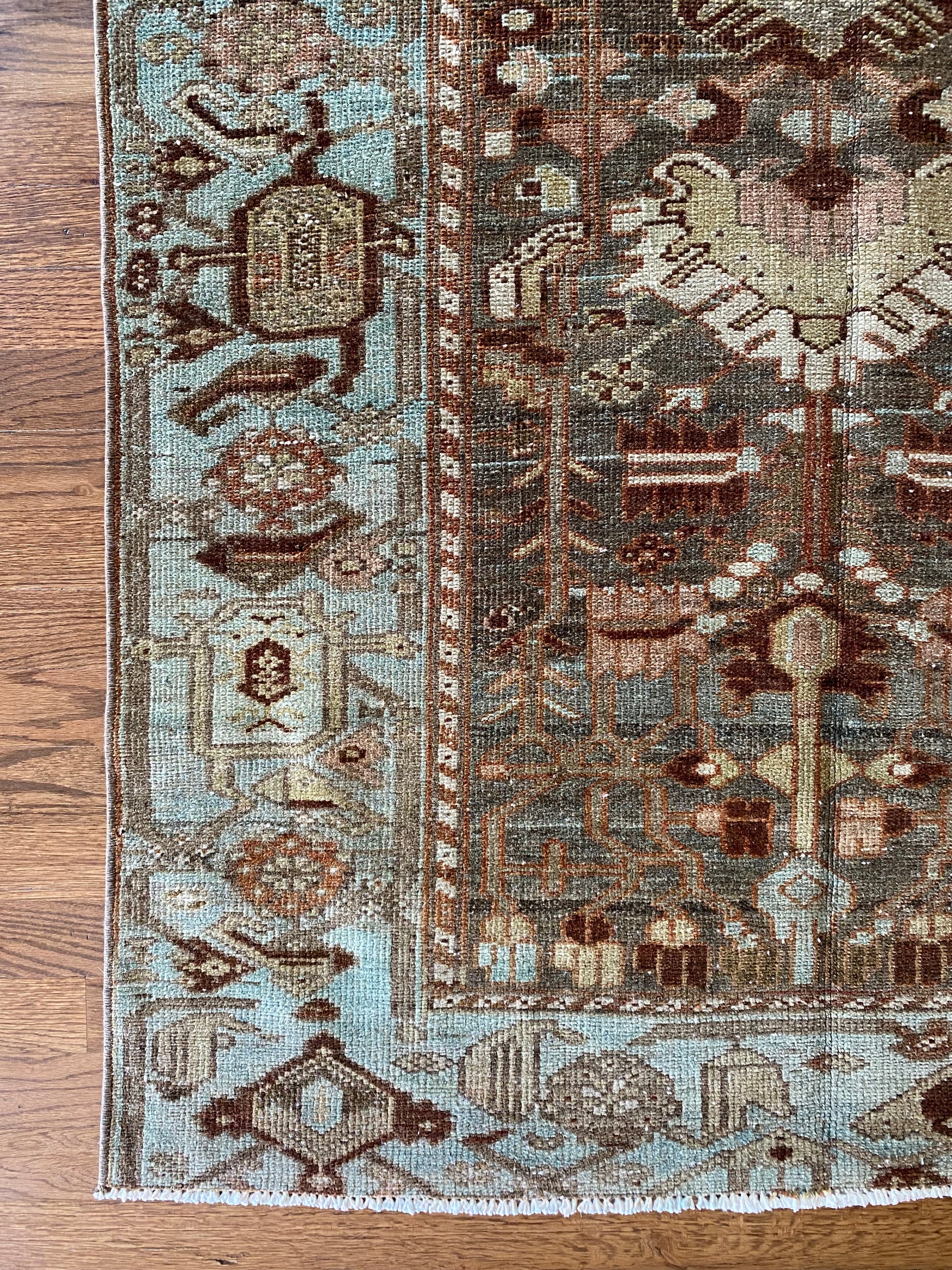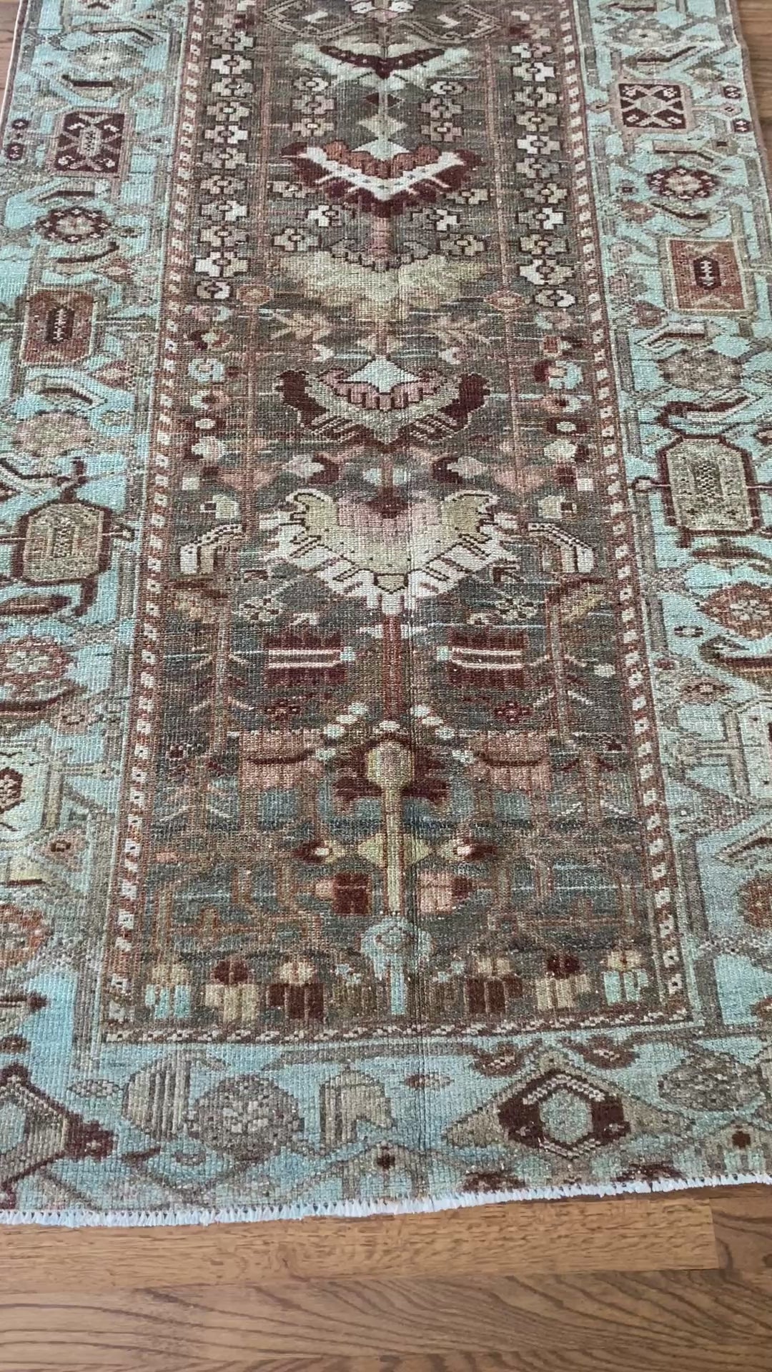 All of our rugs have been professionally cleaned prior to listing. We strive to deliver rugs that everyone loves, but please note that when you purchase from Two Sisters Rugs you are purchasing an item that is pre-owned and vintage by nature. Rugs might have areas of wear, minor repairs, or other unique characteristics, but we believe this is what makes them beautiful and one of a kind. Many rugs do not have perfect lines. All photographs are taken on an iPhone with no filter in natural light unless otherwise noted; colors may vary depending on the placement in your home. Colors may also vary depending on your phone or screen settings. If the area you are placing the rug has less natural light, the rug will appear darker in person. We aim to represent each rugs true colors and designs on the listing photos, but are happy to send additional photos upon request prior to purchase. High quality wool contains a substance called lanolin, which emits a metallic-y, but sweet and grassy scent. ALL SALES ARE FINAL.