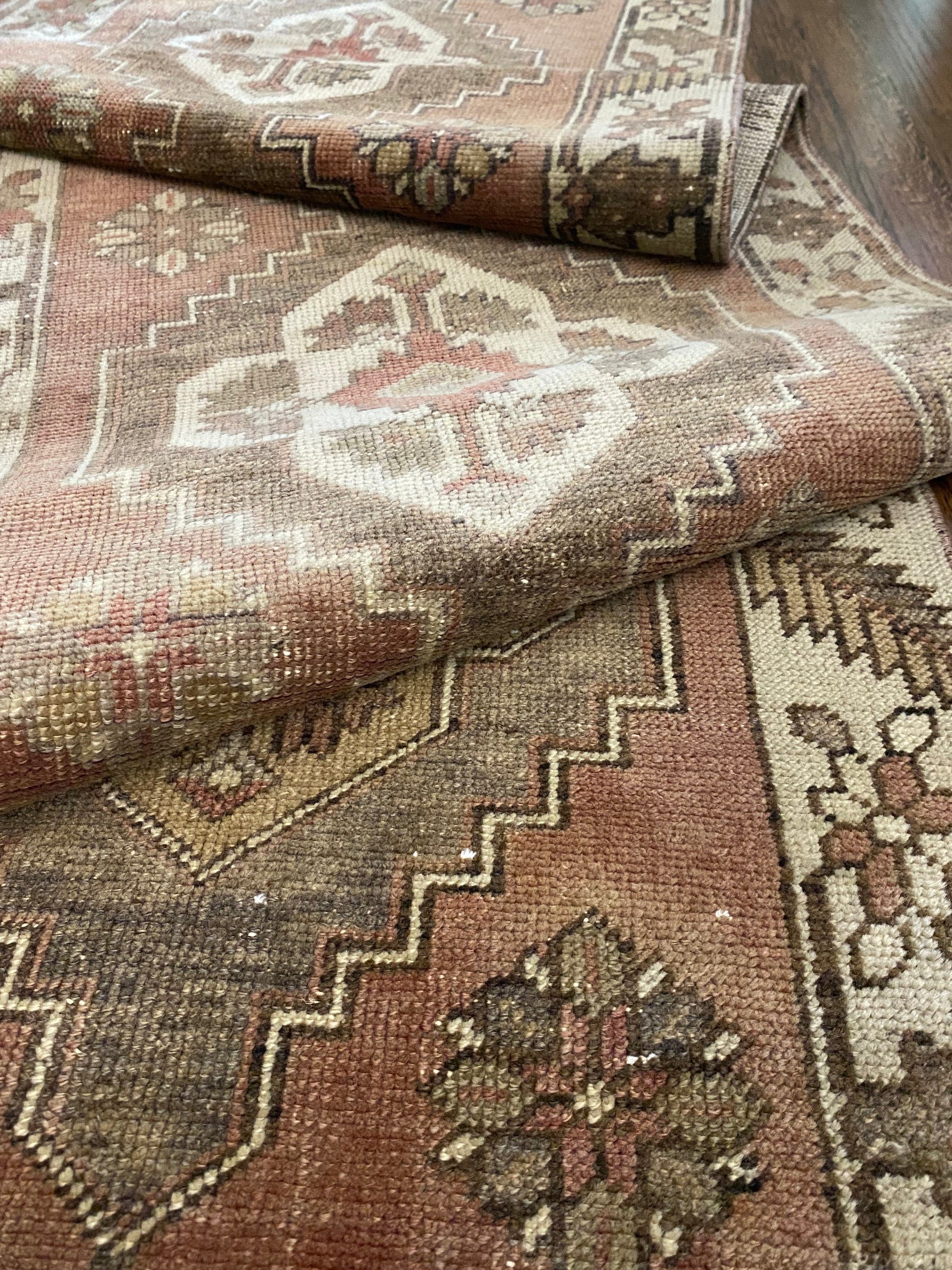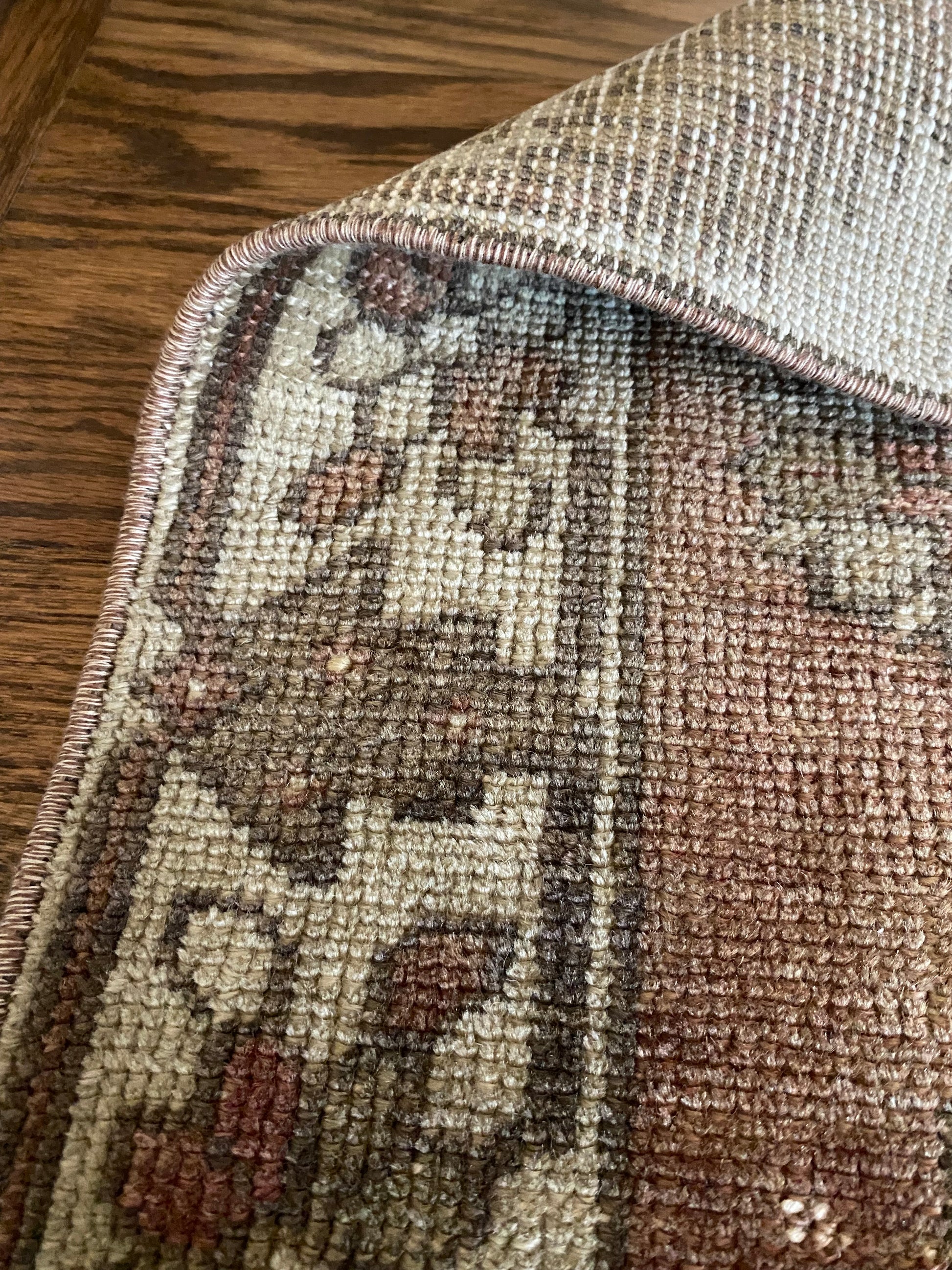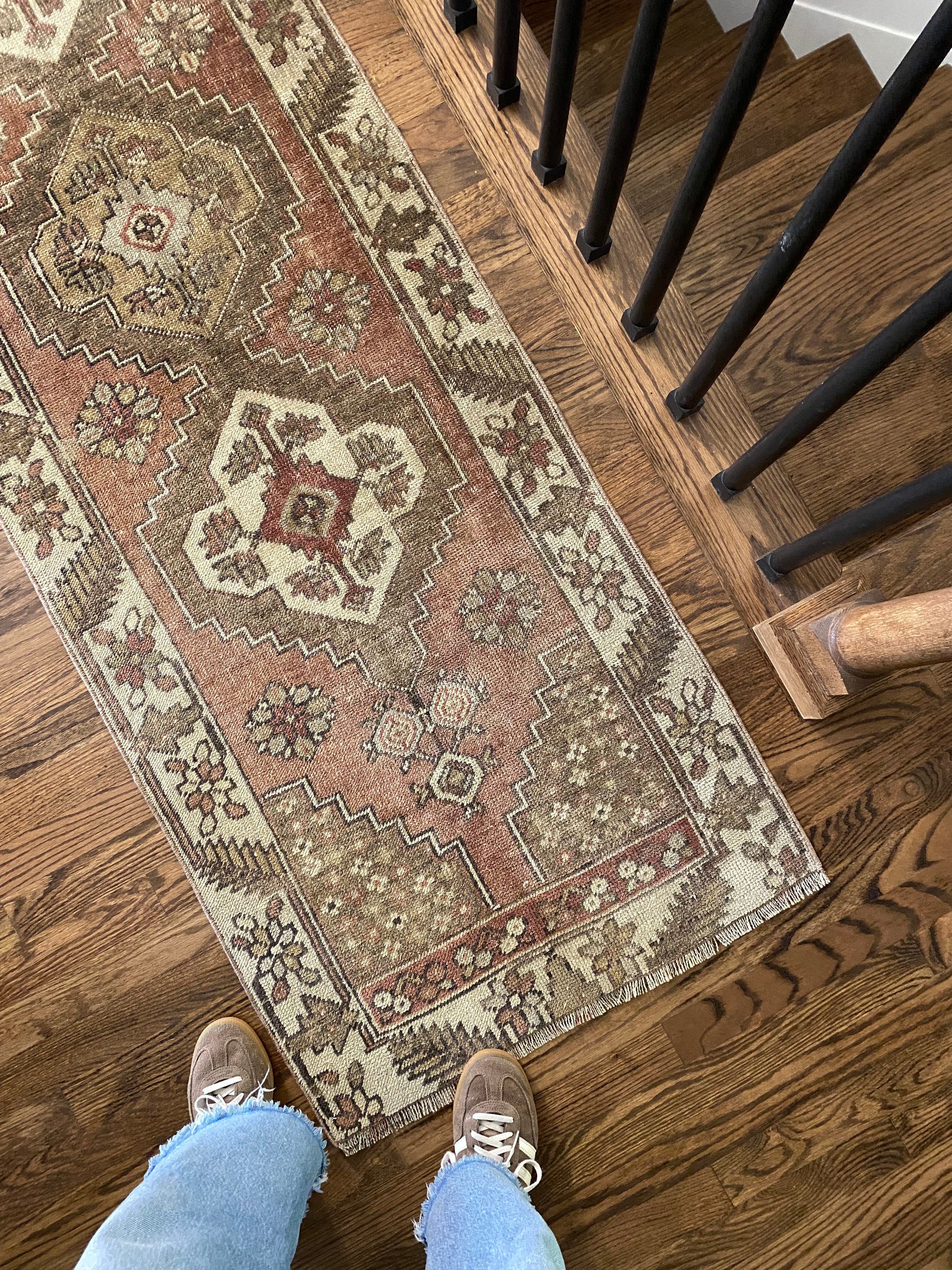 All of our rugs have been professionally cleaned prior to listing. We strive to deliver rugs that everyone loves, but please note that when you purchase from Two Sisters Rugs you are purchasing an item that is pre-owned and vintage by nature. Rugs might have areas of wear, minor repairs, or other unique characteristics, but we believe this is what makes them beautiful and one of a kind. Many rugs do not have perfect lines. All photographs are taken on an iPhone with no filter in natural light unless otherwise noted; colors may vary depending on the placement in your home. Colors may also vary depending on your phone or screen settings. If the area you are placing the rug has less natural light, the rug will appear darker in person. We aim to represent each rugs true colors and designs on the listing photos, but are happy to send additional photos upon request prior to purchase. High quality wool contains a substance called lanolin, which emits a metallic-y, but sweet and grassy scent. ALL SALES ARE FINAL.