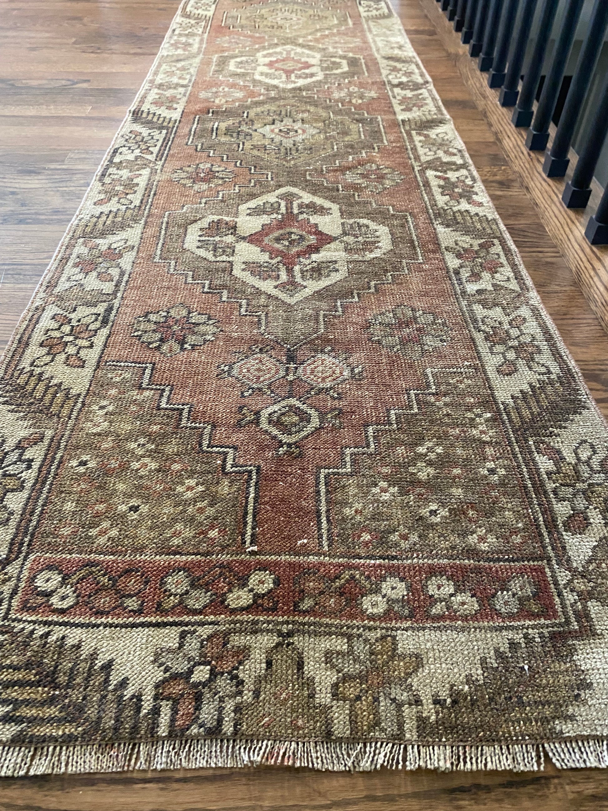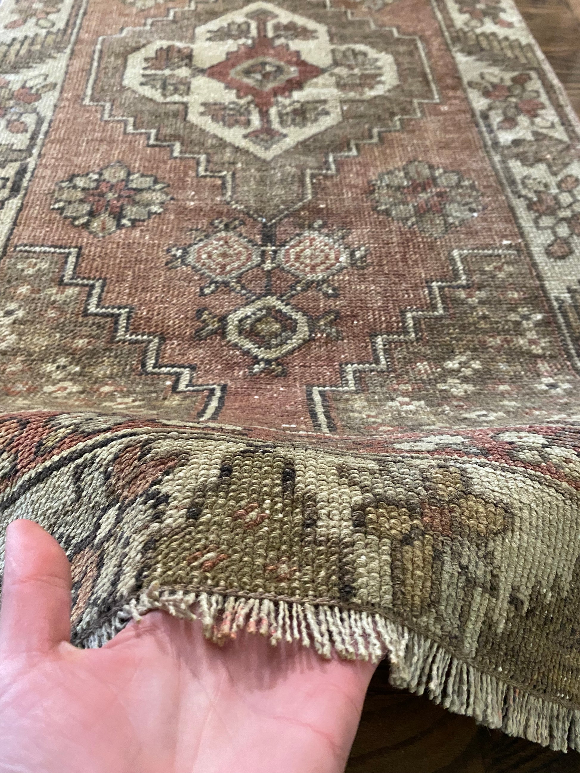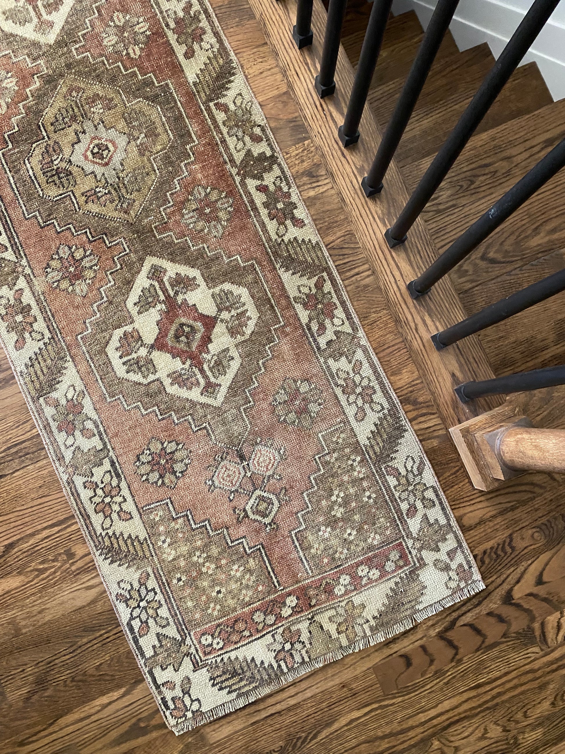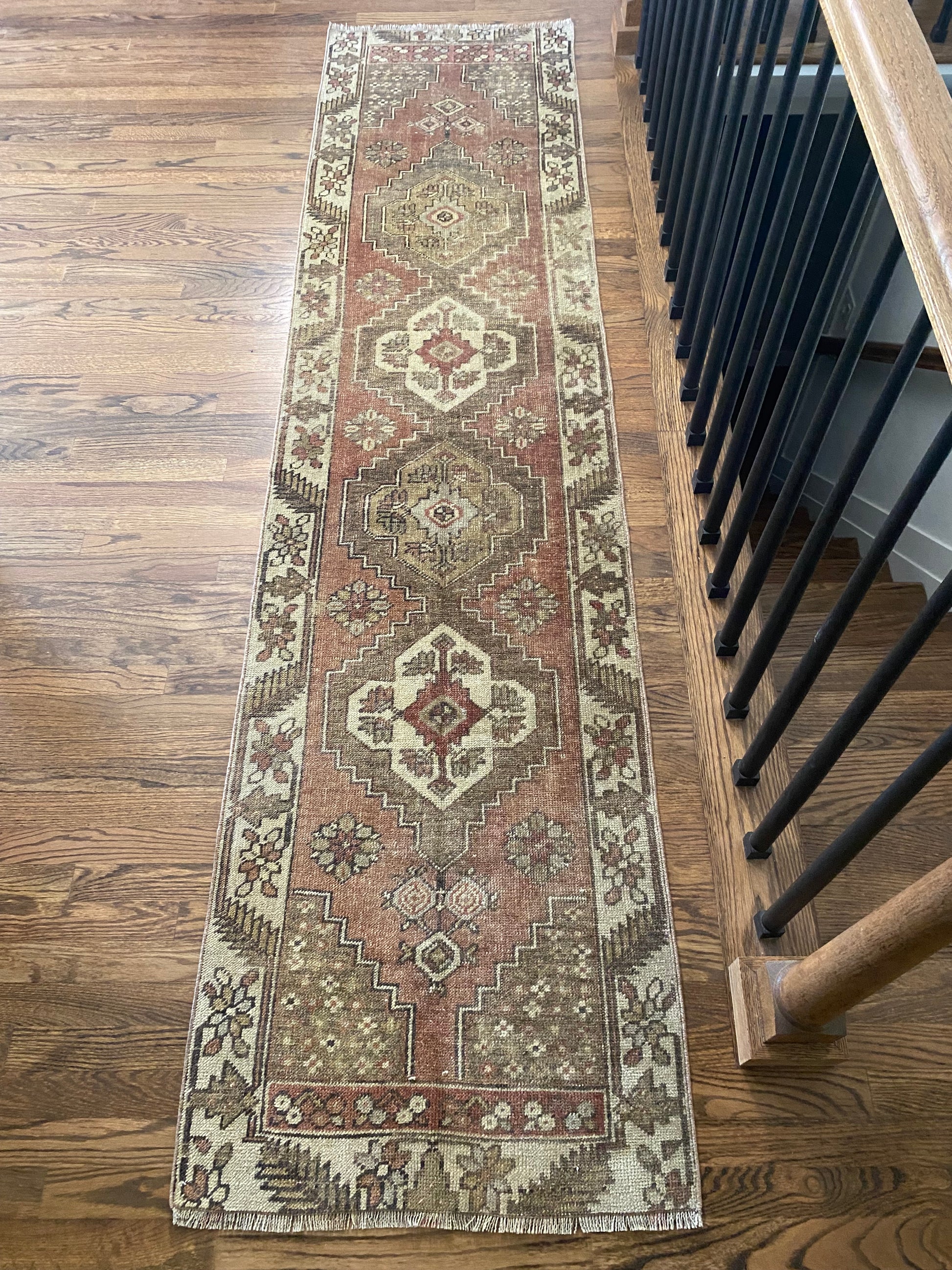 All of our rugs have been professionally cleaned prior to listing. We strive to deliver rugs that everyone loves, but please note that when you purchase from Two Sisters Rugs you are purchasing an item that is pre-owned and vintage by nature. Rugs might have areas of wear, minor repairs, or other unique characteristics, but we believe this is what makes them beautiful and one of a kind. Many rugs do not have perfect lines. All photographs are taken on an iPhone with no filter in natural light unless otherwise noted; colors may vary depending on the placement in your home. Colors may also vary depending on your phone or screen settings. If the area you are placing the rug has less natural light, the rug will appear darker in person. We aim to represent each rugs true colors and designs on the listing photos, but are happy to send additional photos upon request prior to purchase. High quality wool contains a substance called lanolin, which emits a metallic-y, but sweet and grassy scent. ALL SALES ARE FINAL.