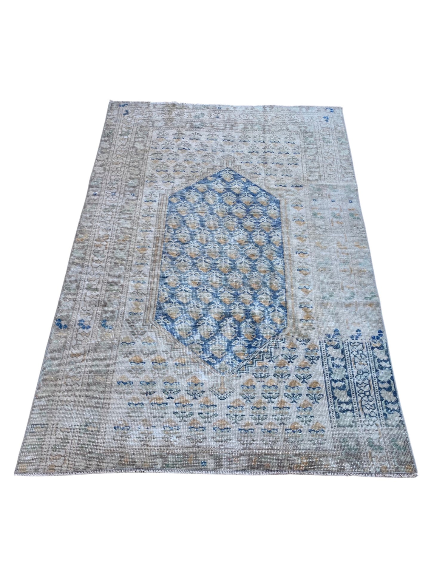 All of our rugs have been professionally cleaned prior to listing. These unique vintage rugs have normal wear related to their age. Some may have minor repairs. All photographs are taken in natural light; colors may vary depending on the placement in your home. Many rugs do not have perfect lines-we believe this adds to the authenticity of these hand-woven beauties.