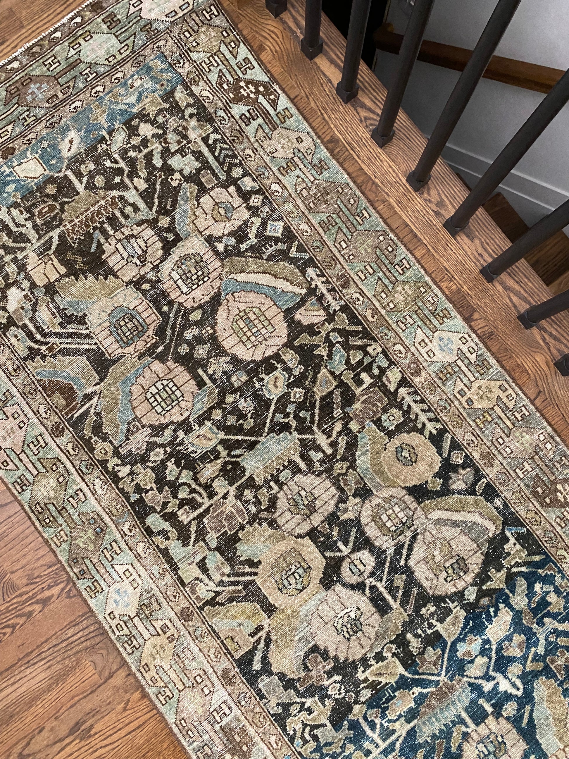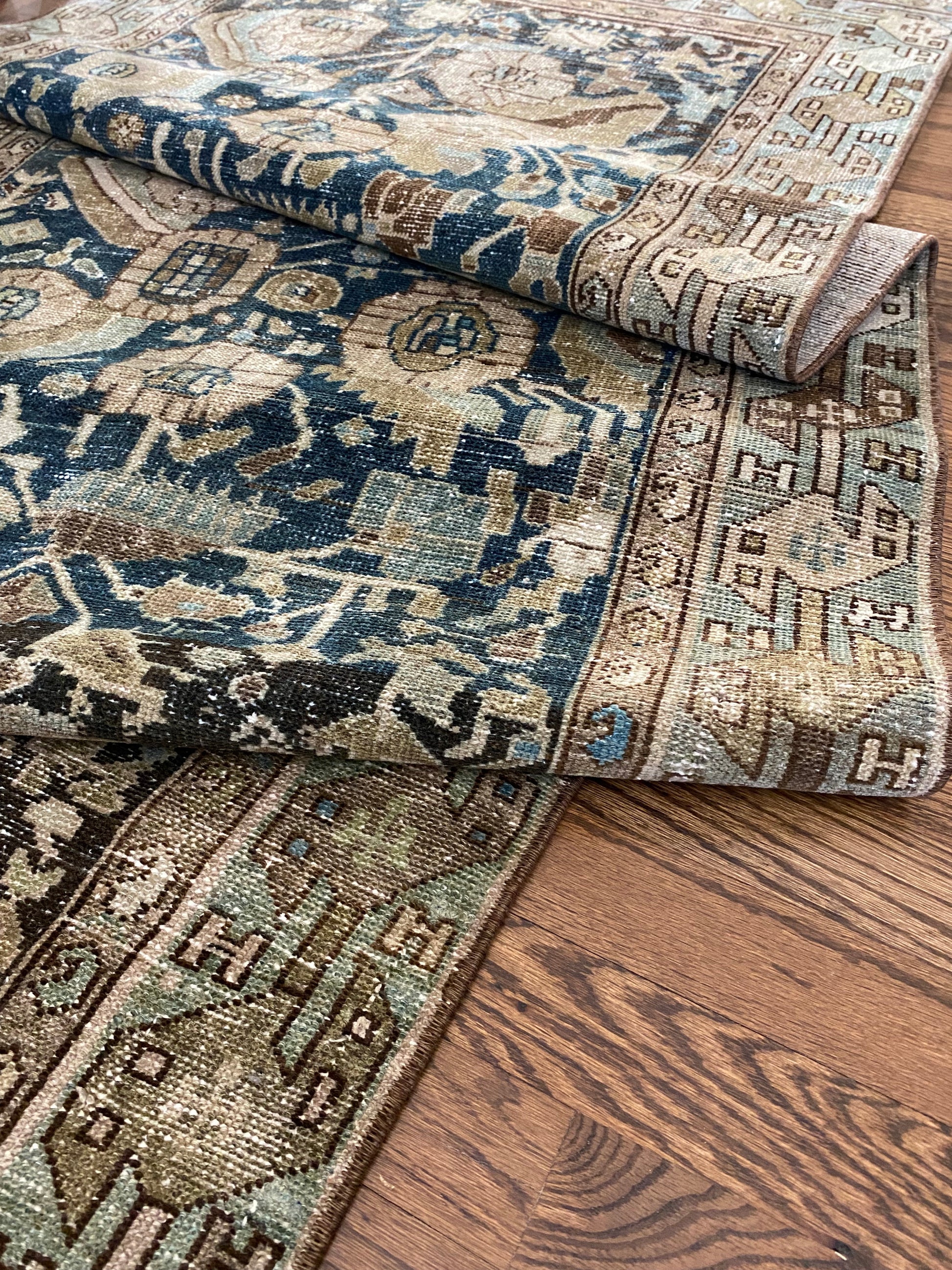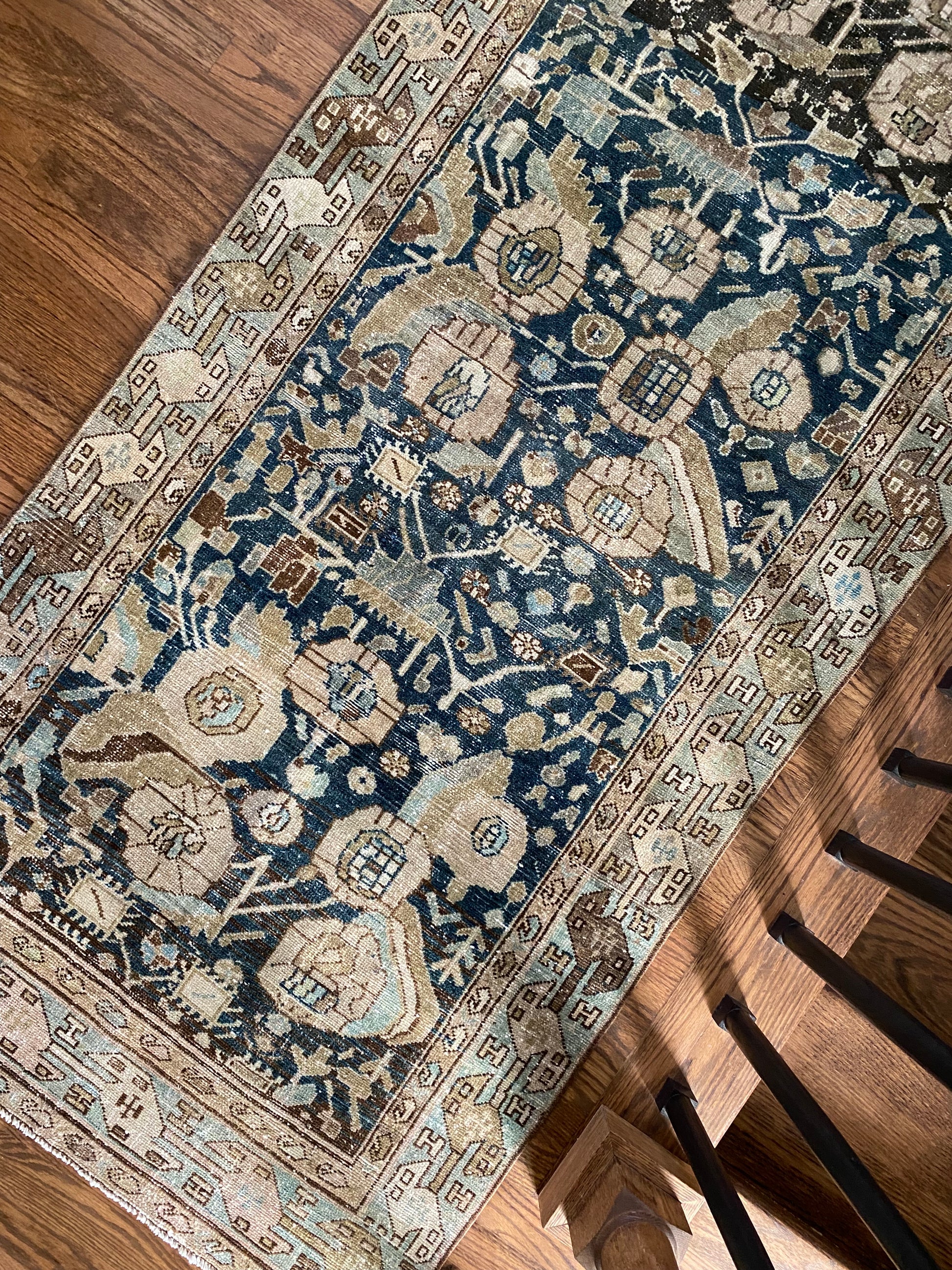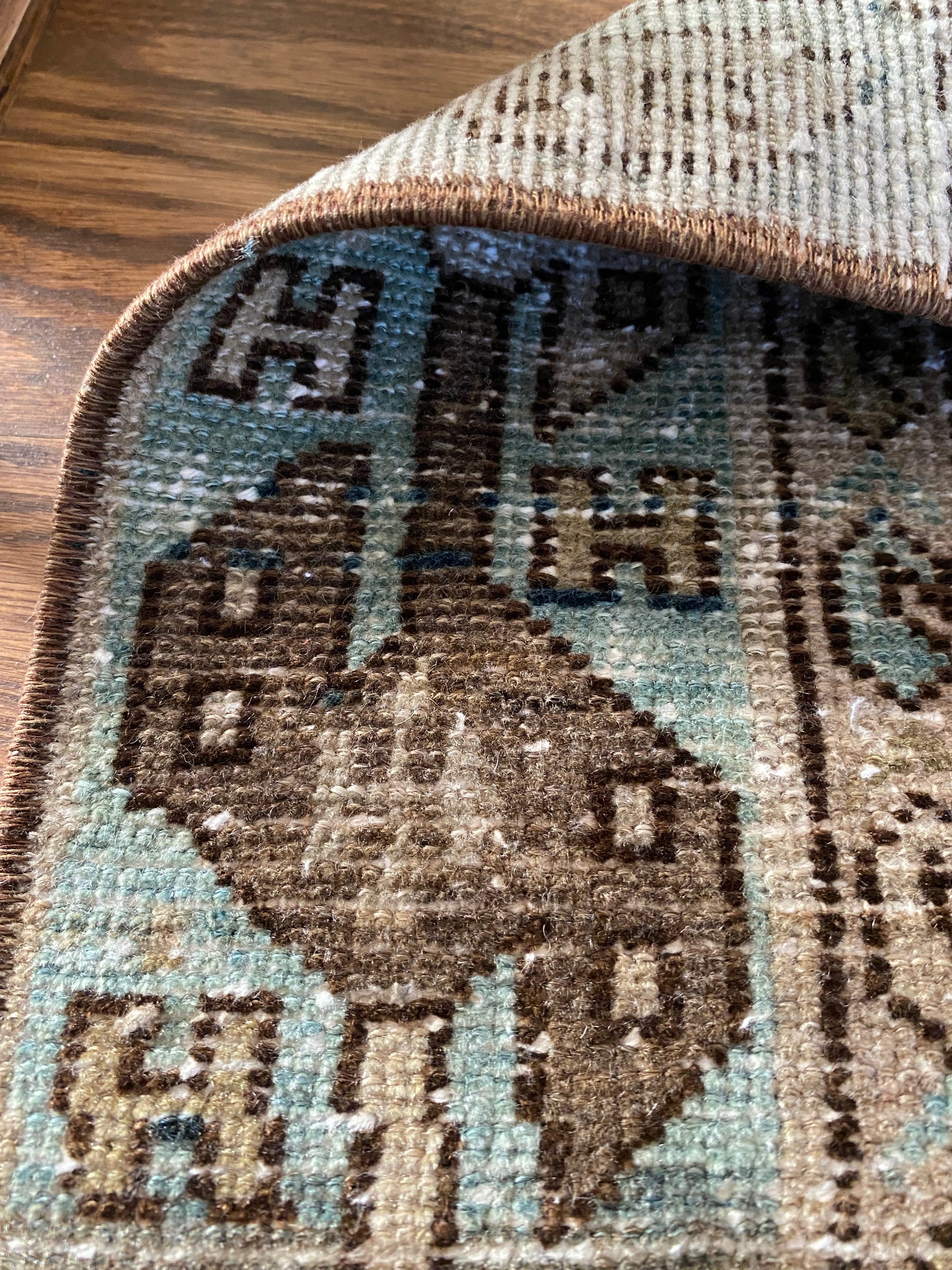 All of our rugs have been professionally cleaned prior to listing. We strive to deliver rugs that everyone loves, but please note that when you purchase from Two Sisters Rugs you are purchasing an item that is pre-owned and vintage by nature. Rugs might have areas of wear, minor repairs, or other unique characteristics, but we believe this is what makes them beautiful and one of a kind. Many rugs do not have perfect lines. All photographs are taken on an iPhone with no filter in natural light unless otherwise noted; colors may vary depending on the placement in your home. Colors may also vary depending on your phone or screen settings. If the area you are placing the rug has less natural light, the rug will appear darker in person. We aim to represent each rugs true colors and designs on the listing photos, but are happy to send additional photos upon request prior to purchase. High quality wool contains a substance called lanolin, which emits a metallic-y, but sweet and grassy scent. ALL SALES ARE FINAL.