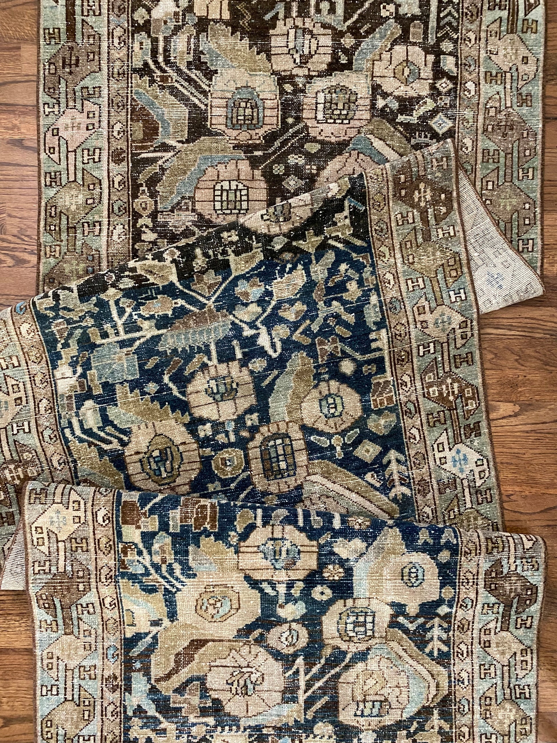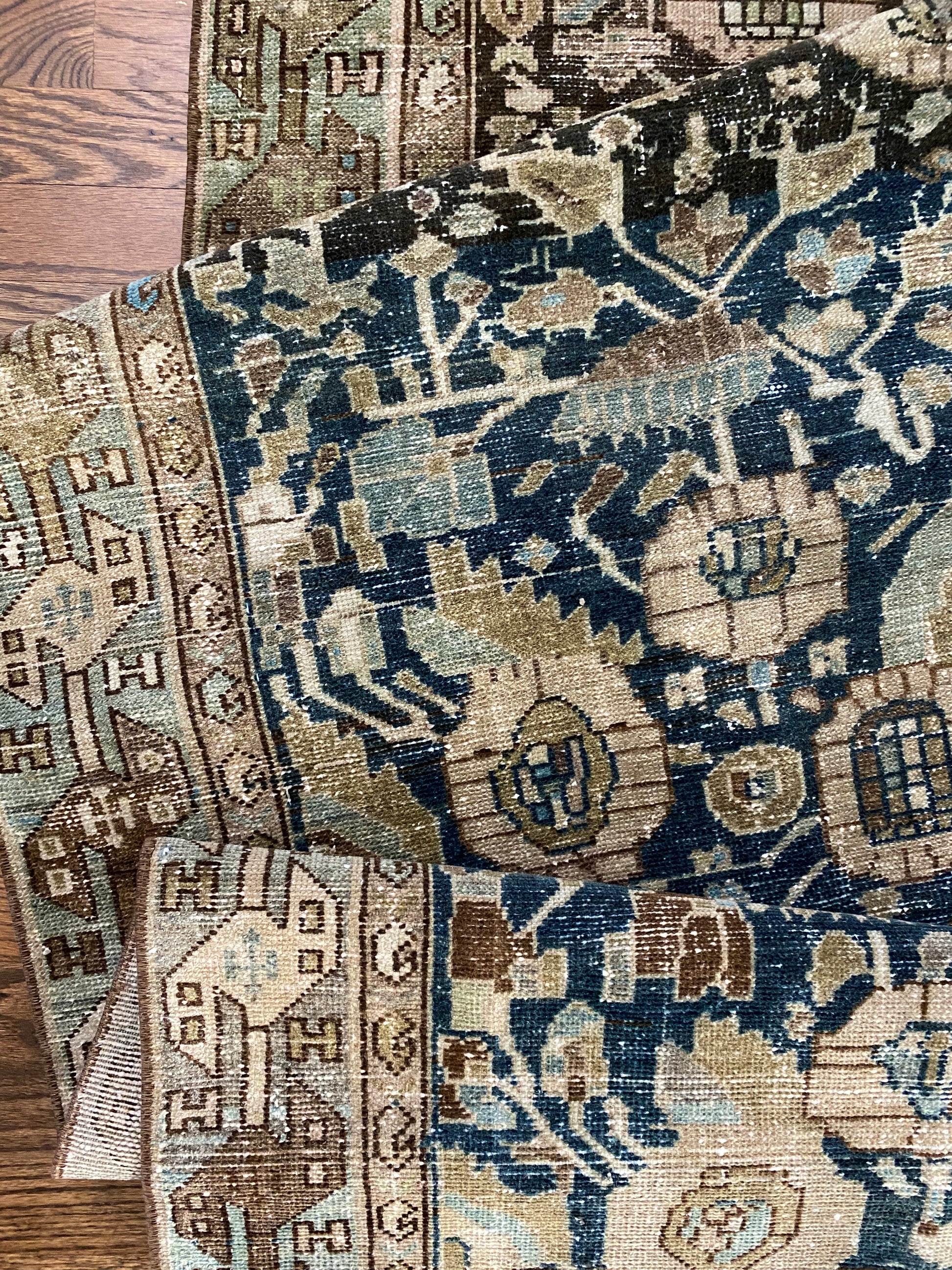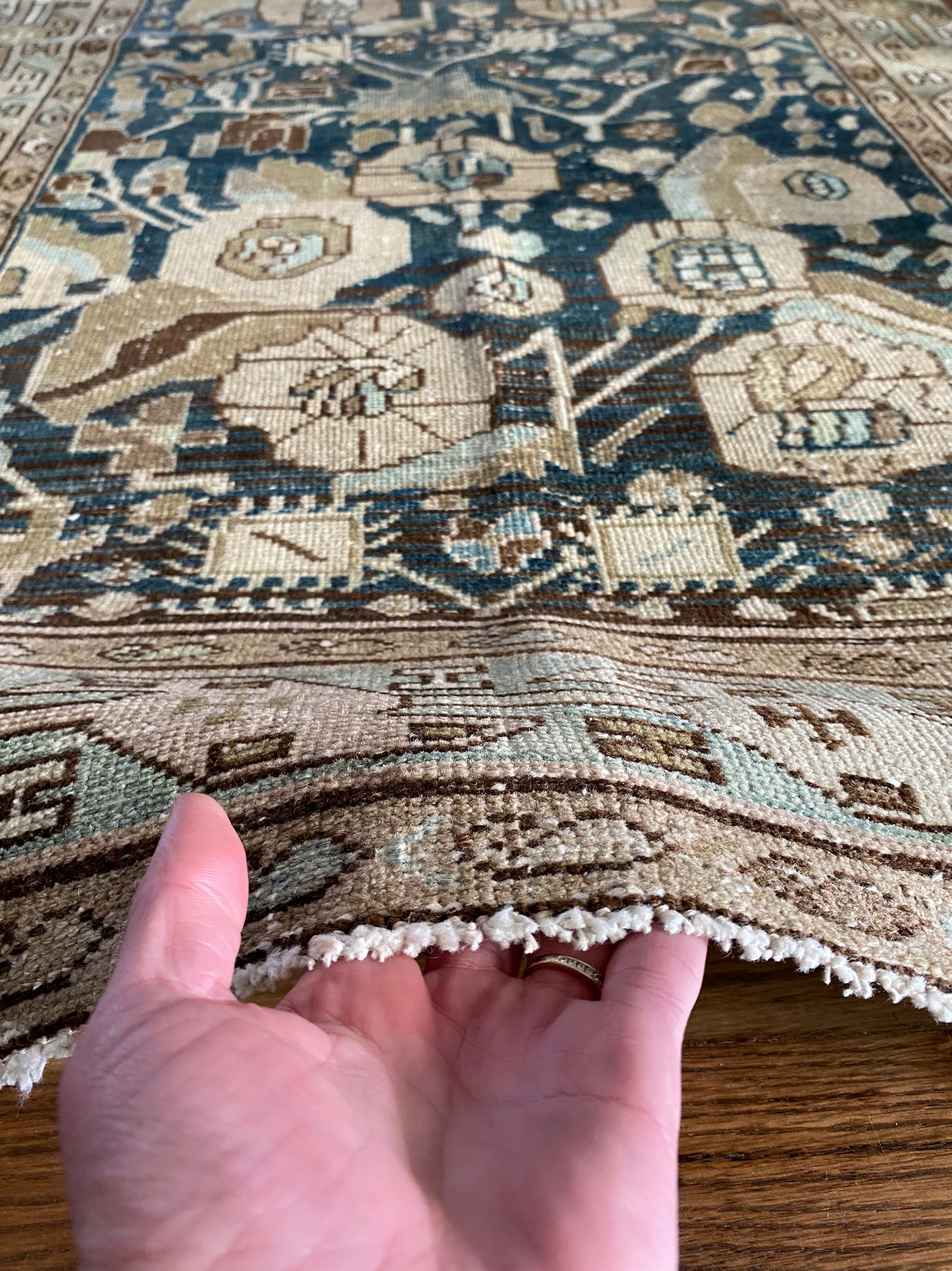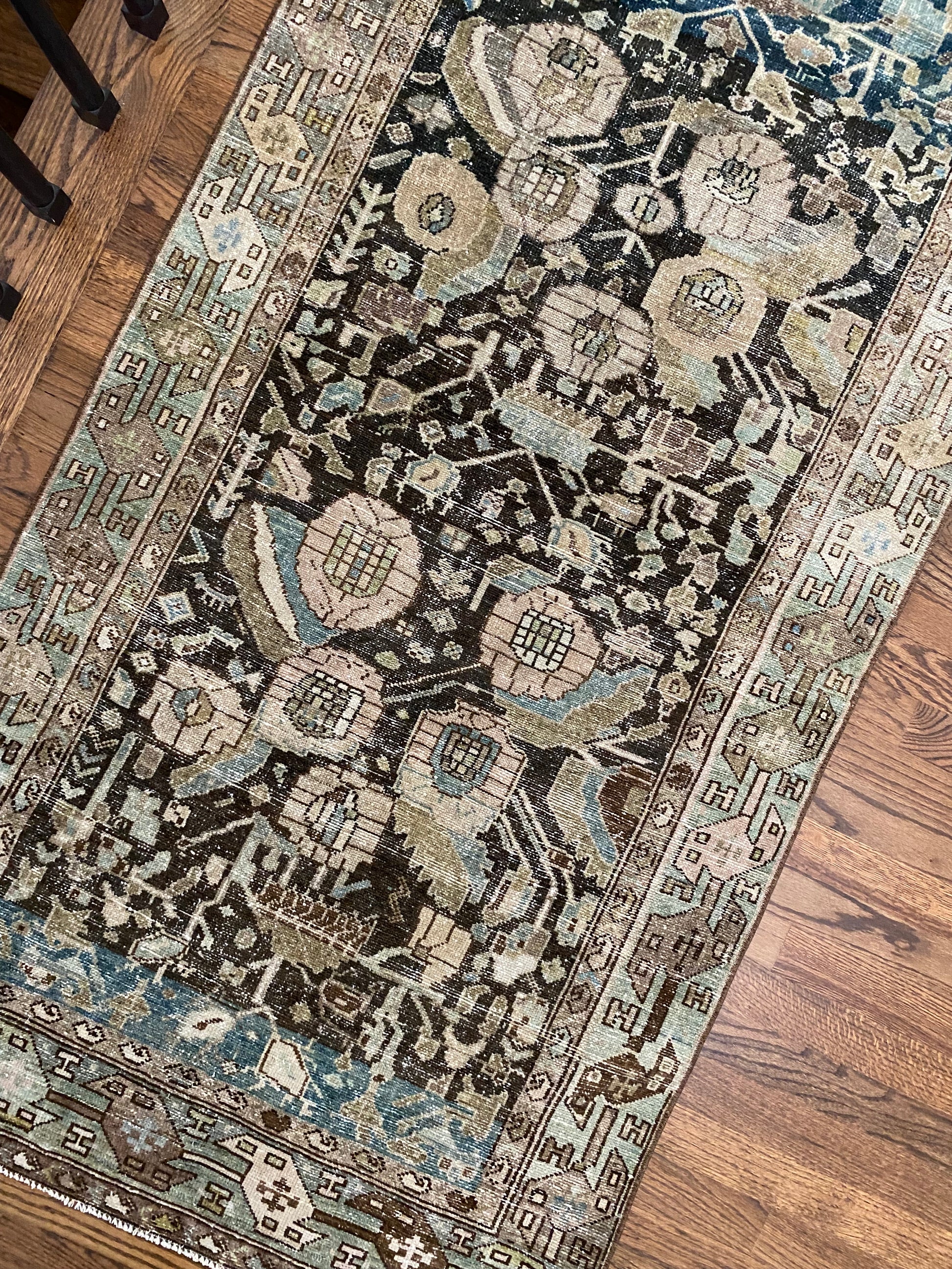 All of our rugs have been professionally cleaned prior to listing. We strive to deliver rugs that everyone loves, but please note that when you purchase from Two Sisters Rugs you are purchasing an item that is pre-owned and vintage by nature. Rugs might have areas of wear, minor repairs, or other unique characteristics, but we believe this is what makes them beautiful and one of a kind. Many rugs do not have perfect lines. All photographs are taken on an iPhone with no filter in natural light unless otherwise noted; colors may vary depending on the placement in your home. Colors may also vary depending on your phone or screen settings. If the area you are placing the rug has less natural light, the rug will appear darker in person. We aim to represent each rugs true colors and designs on the listing photos, but are happy to send additional photos upon request prior to purchase. High quality wool contains a substance called lanolin, which emits a metallic-y, but sweet and grassy scent. ALL SALES ARE FINAL.