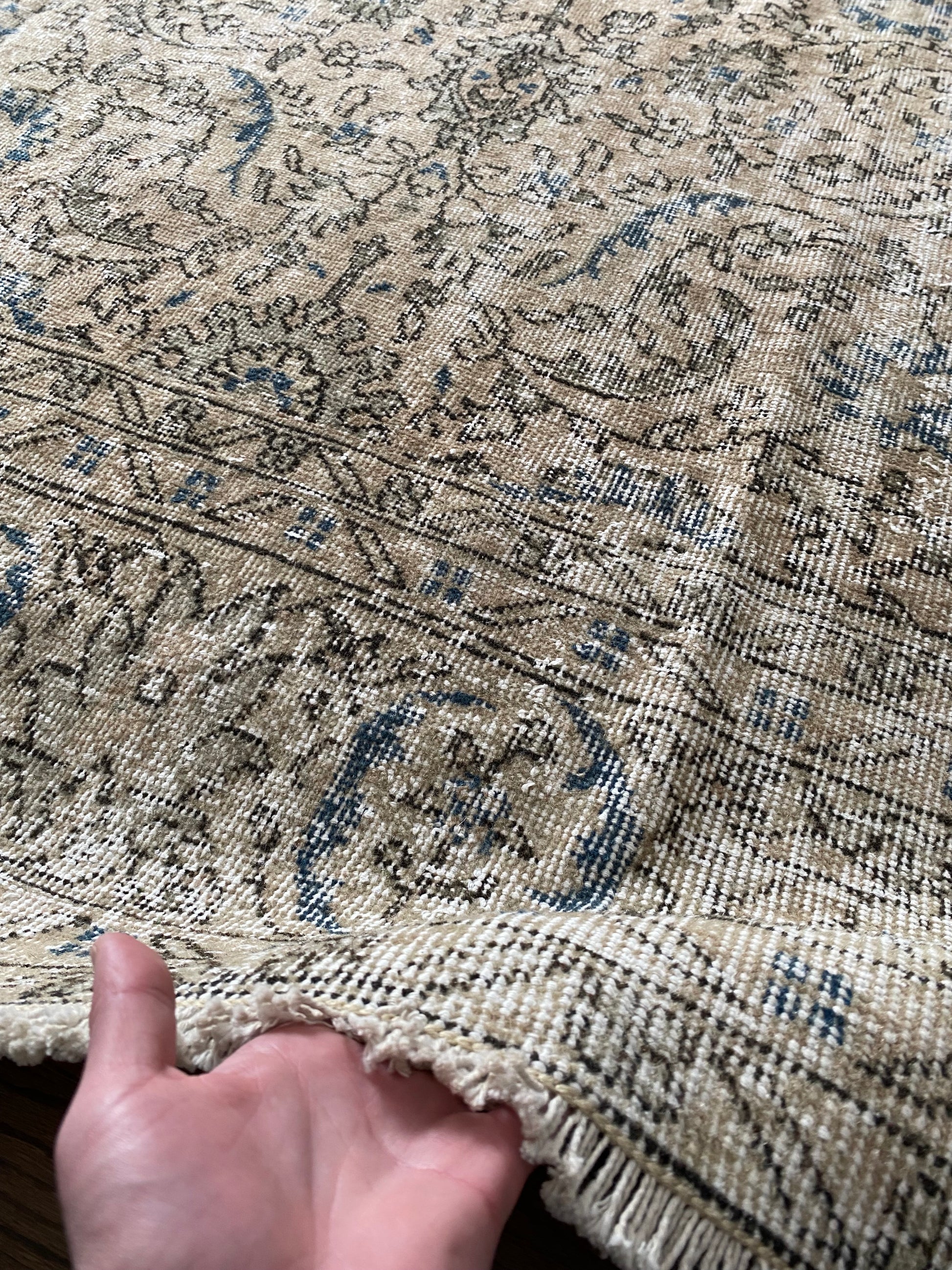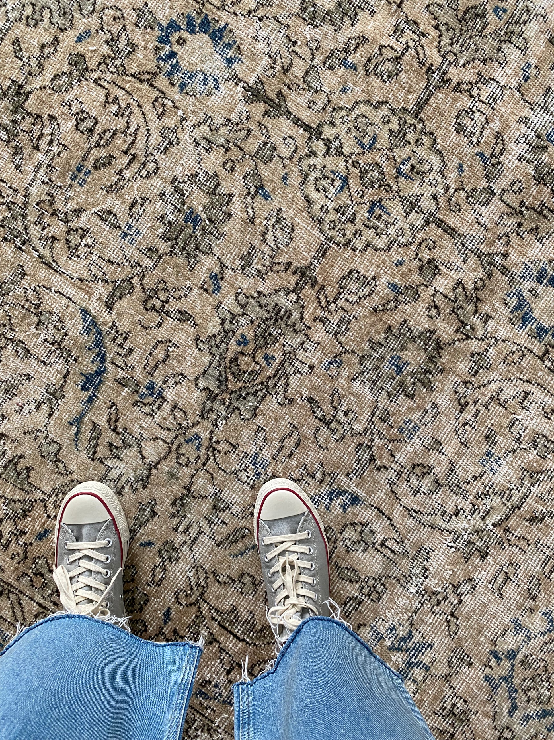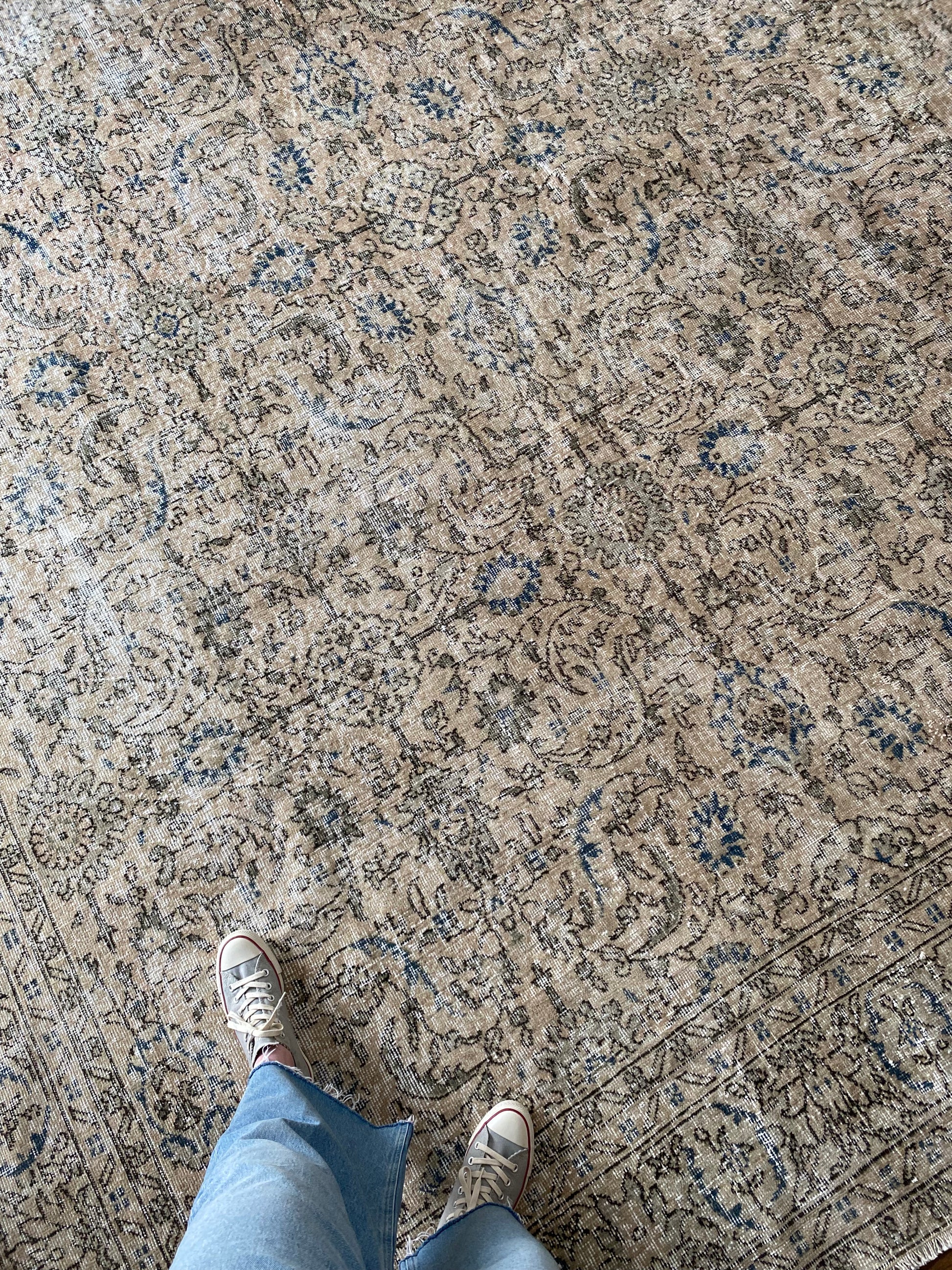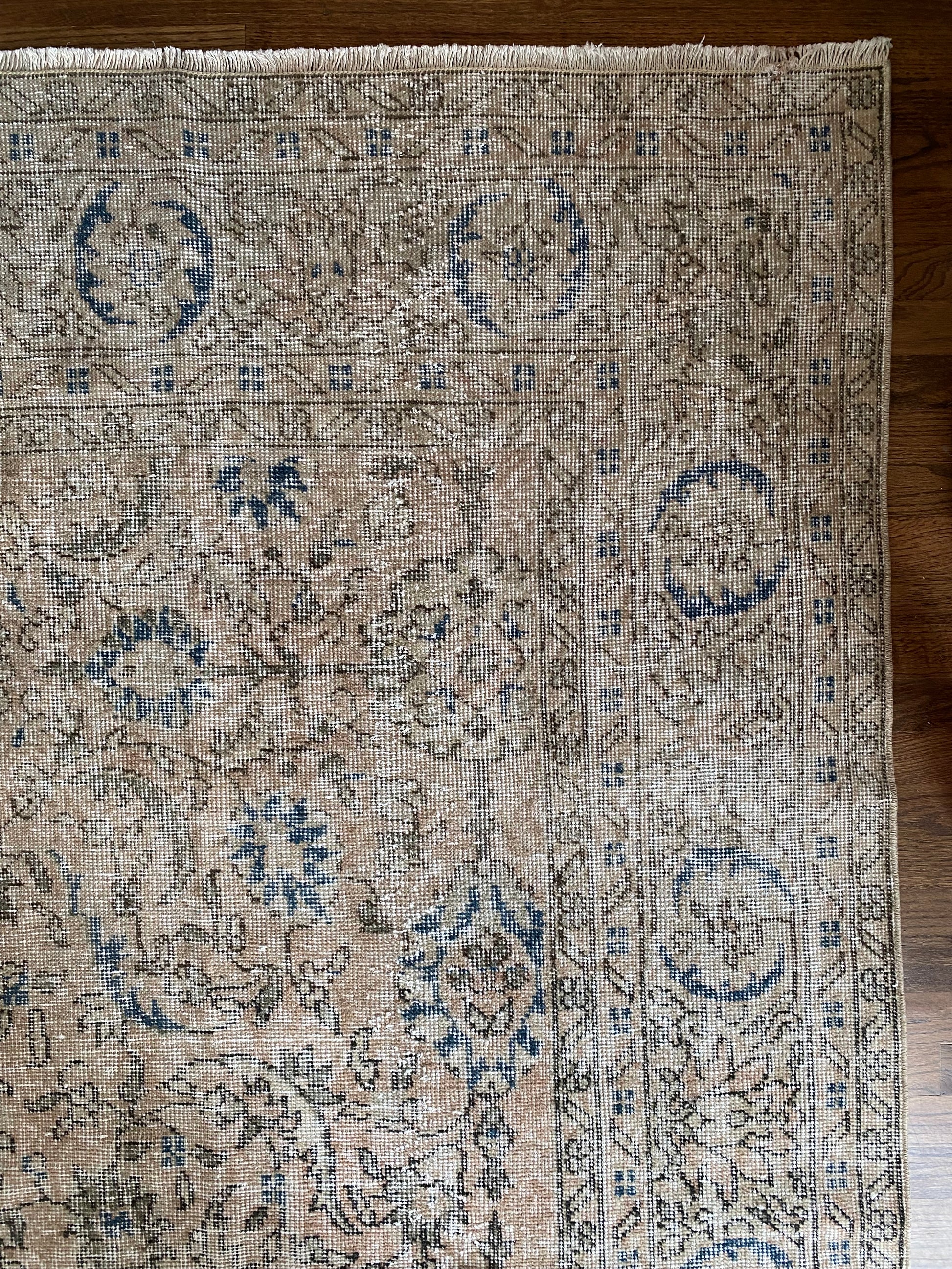 All of our rugs have been professionally cleaned prior to listing. We strive to deliver rugs that everyone loves, but please note that when you purchase from Two Sisters Rugs you are purchasing an item that is pre-owned and vintage by nature. Rugs might have areas of wear, minor repairs, or other unique characteristics, but we believe this is what makes them beautiful and one of a kind. Many rugs do not have perfect lines. All photographs are taken on an iPhone with no filter in natural light unless otherwise noted; colors may vary depending on the placement in your home. Colors may also vary depending on your phone or screen settings. If the area you are placing the rug has less natural light, the rug will appear darker in person. We aim to represent each rugs true colors and designs on the listing photos, but are happy to send additional photos upon request prior to purchase. High quality wool contains a substance called lanolin, which emits a metallic-y, but sweet and grassy scent. ALL SALES ARE FINAL.