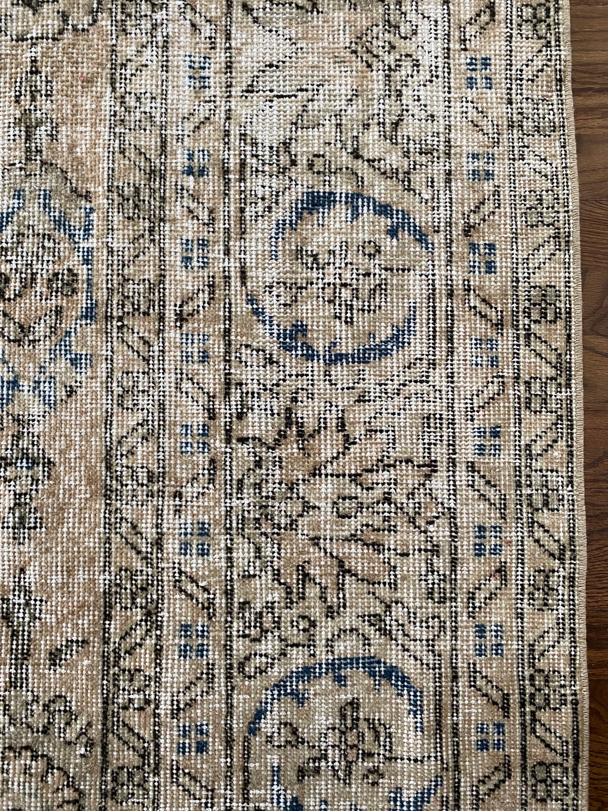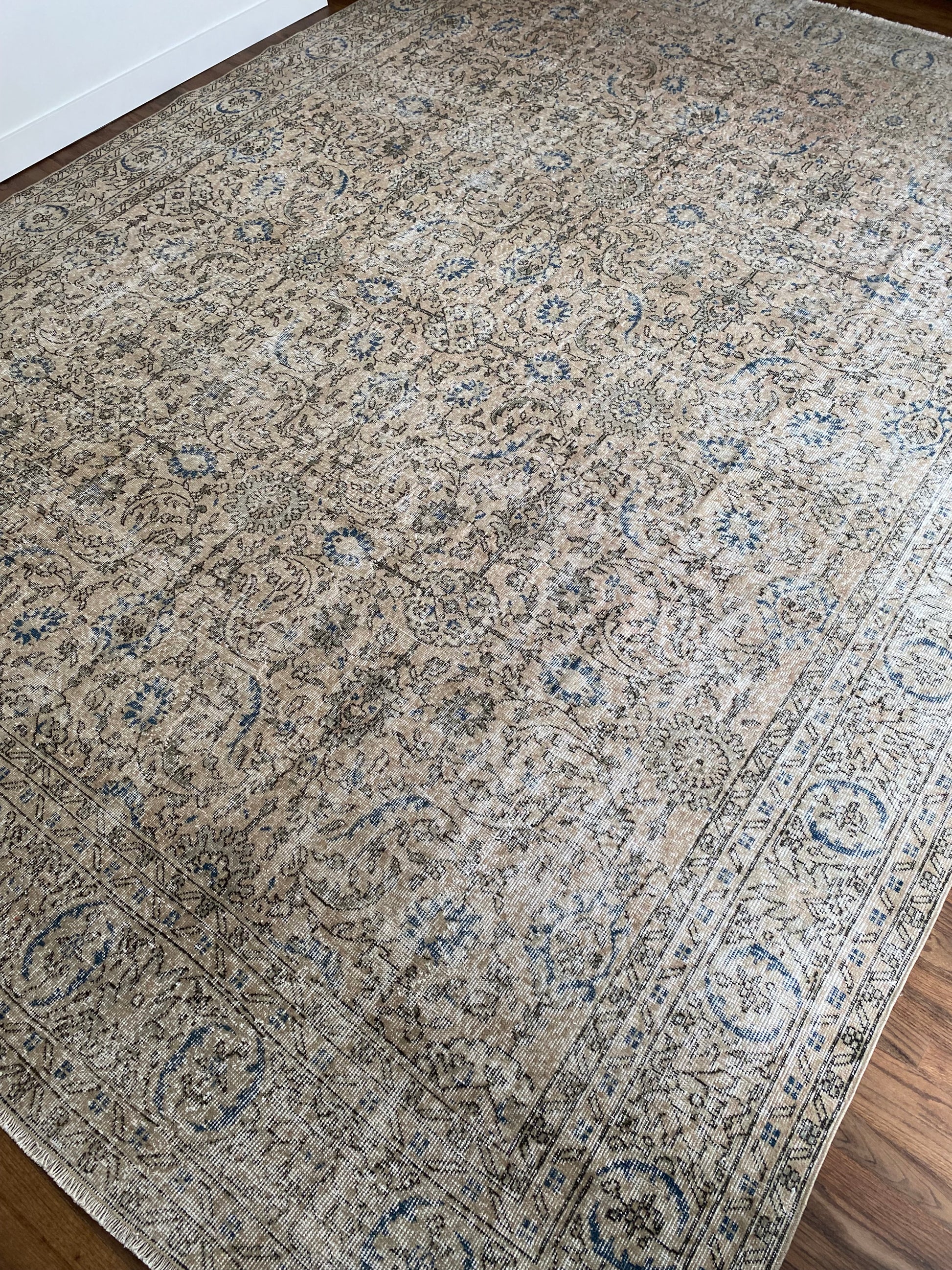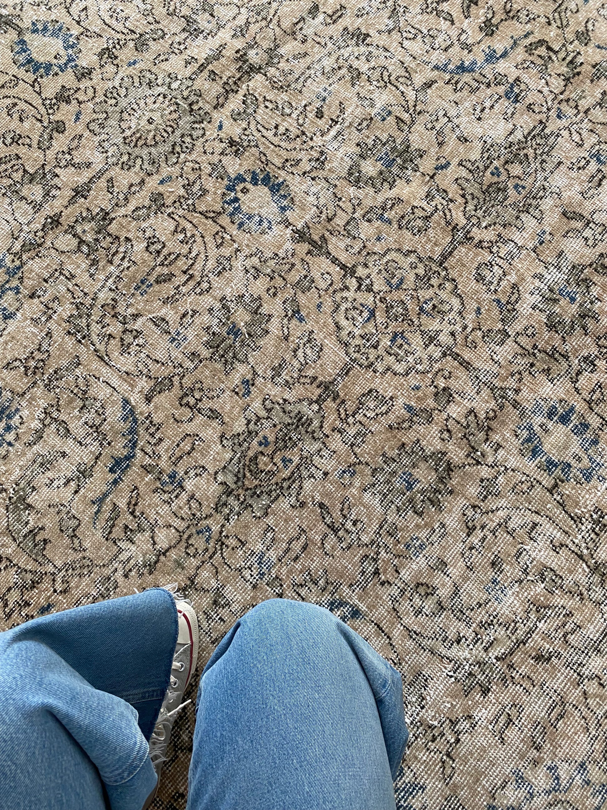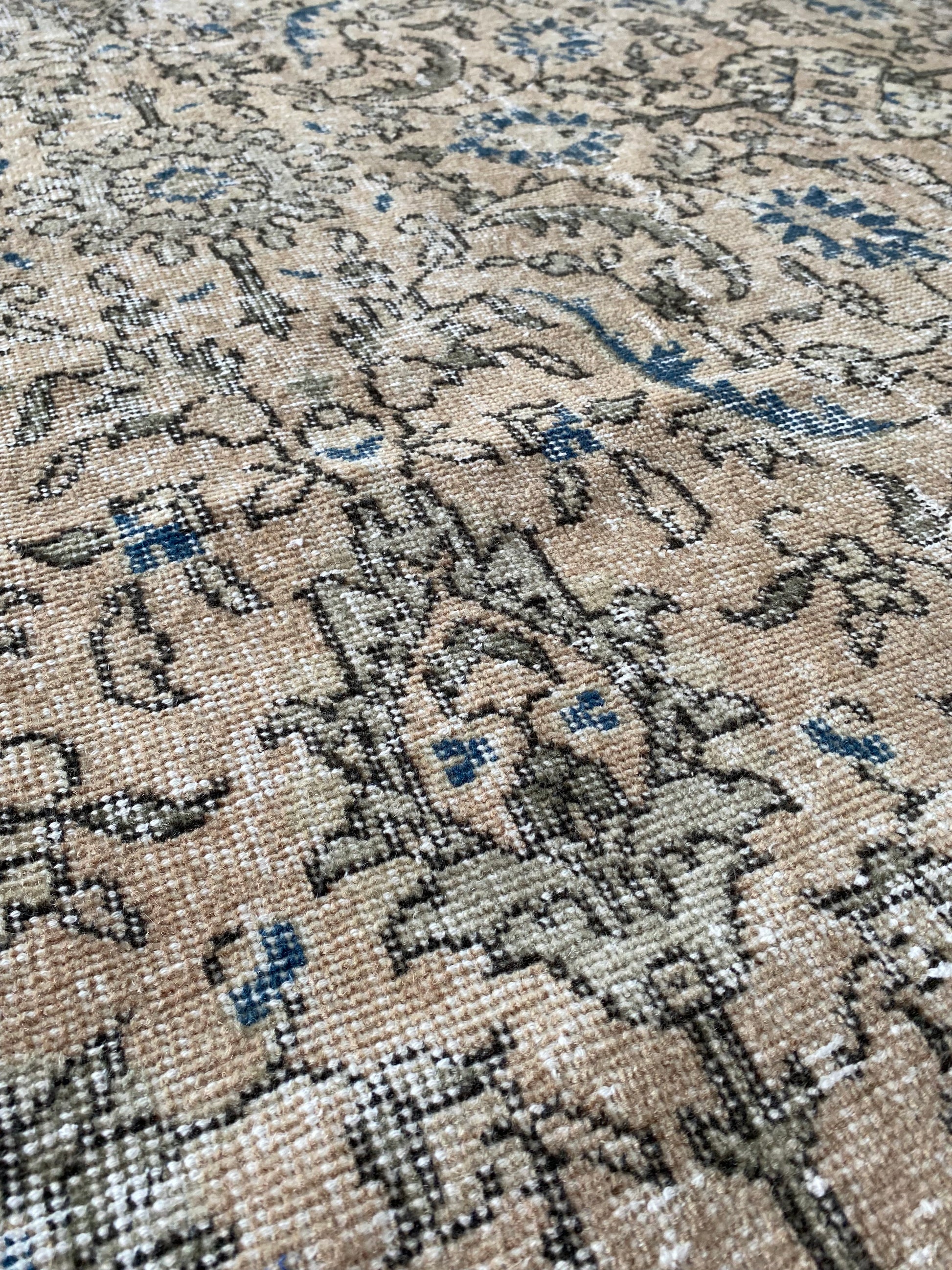 All of our rugs have been professionally cleaned prior to listing. We strive to deliver rugs that everyone loves, but please note that when you purchase from Two Sisters Rugs you are purchasing an item that is pre-owned and vintage by nature. Rugs might have areas of wear, minor repairs, or other unique characteristics, but we believe this is what makes them beautiful and one of a kind. Many rugs do not have perfect lines. All photographs are taken on an iPhone with no filter in natural light unless otherwise noted; colors may vary depending on the placement in your home. Colors may also vary depending on your phone or screen settings. If the area you are placing the rug has less natural light, the rug will appear darker in person. We aim to represent each rugs true colors and designs on the listing photos, but are happy to send additional photos upon request prior to purchase. High quality wool contains a substance called lanolin, which emits a metallic-y, but sweet and grassy scent. ALL SALES ARE FINAL.