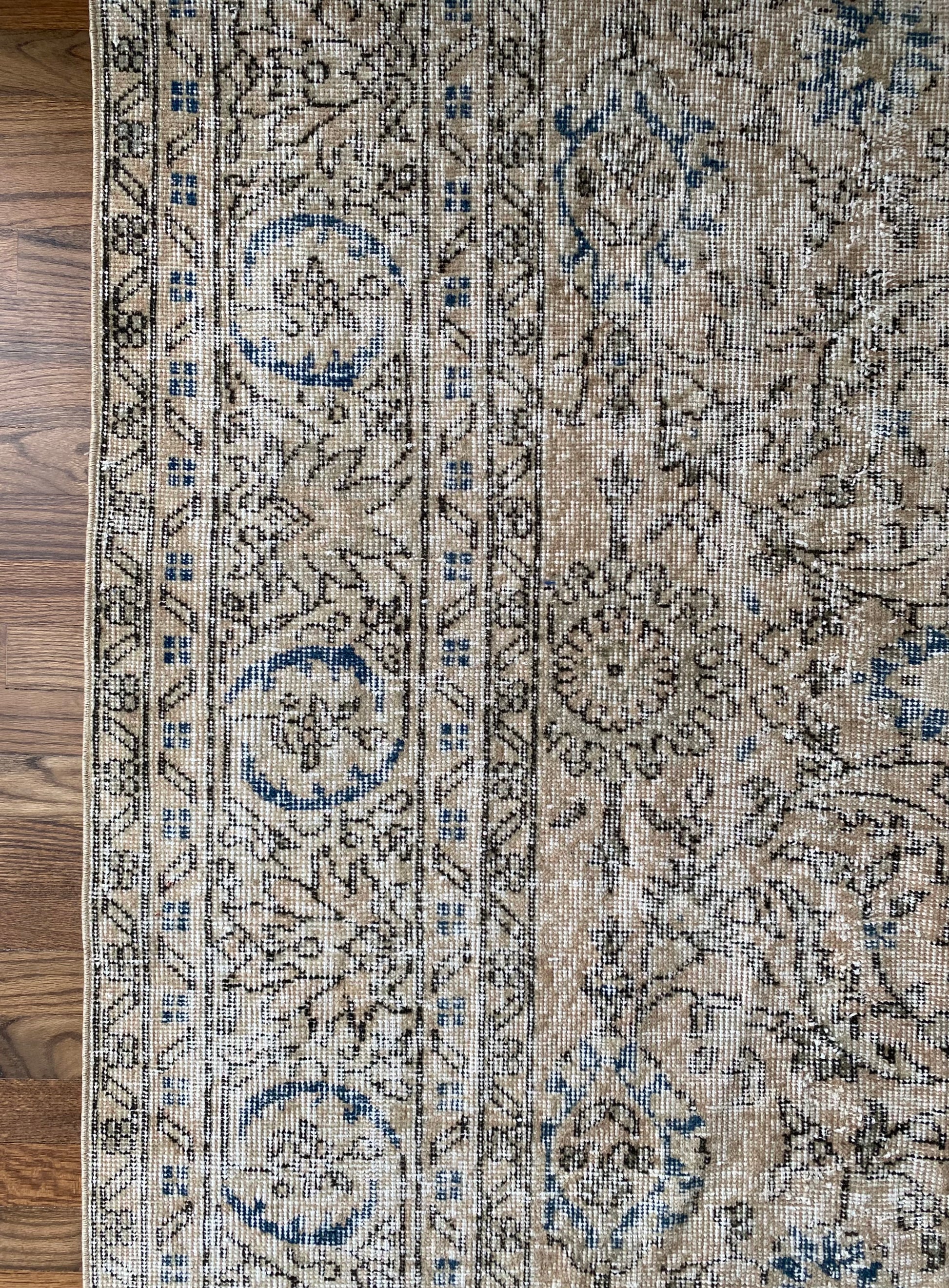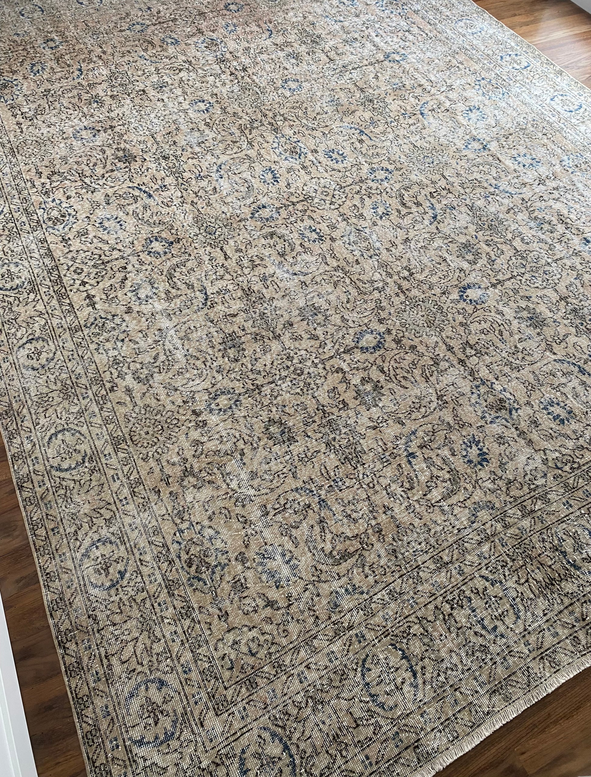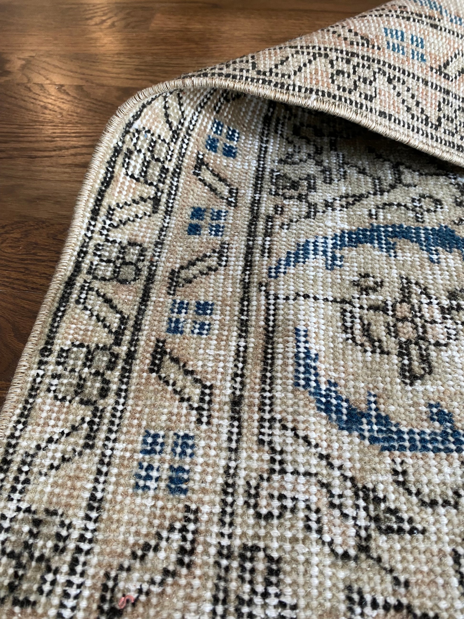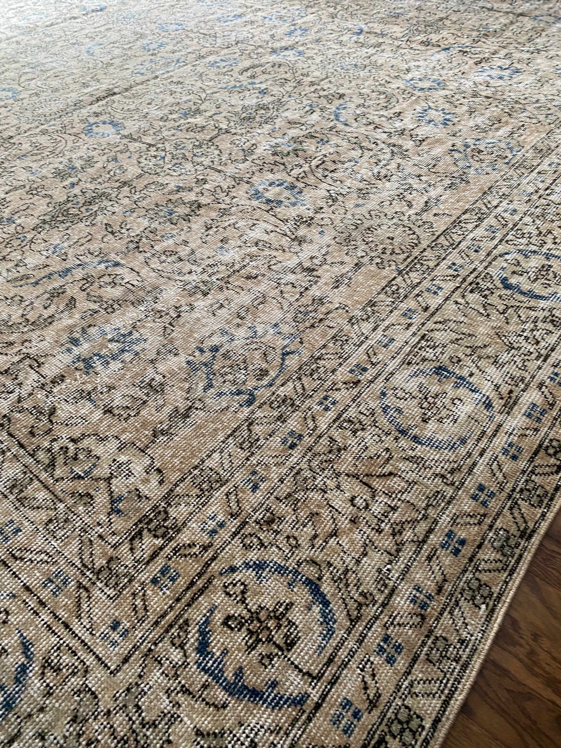 All of our rugs have been professionally cleaned prior to listing. We strive to deliver rugs that everyone loves, but please note that when you purchase from Two Sisters Rugs you are purchasing an item that is pre-owned and vintage by nature. Rugs might have areas of wear, minor repairs, or other unique characteristics, but we believe this is what makes them beautiful and one of a kind. Many rugs do not have perfect lines. All photographs are taken on an iPhone with no filter in natural light unless otherwise noted; colors may vary depending on the placement in your home. Colors may also vary depending on your phone or screen settings. If the area you are placing the rug has less natural light, the rug will appear darker in person. We aim to represent each rugs true colors and designs on the listing photos, but are happy to send additional photos upon request prior to purchase. High quality wool contains a substance called lanolin, which emits a metallic-y, but sweet and grassy scent. ALL SALES ARE FINAL.