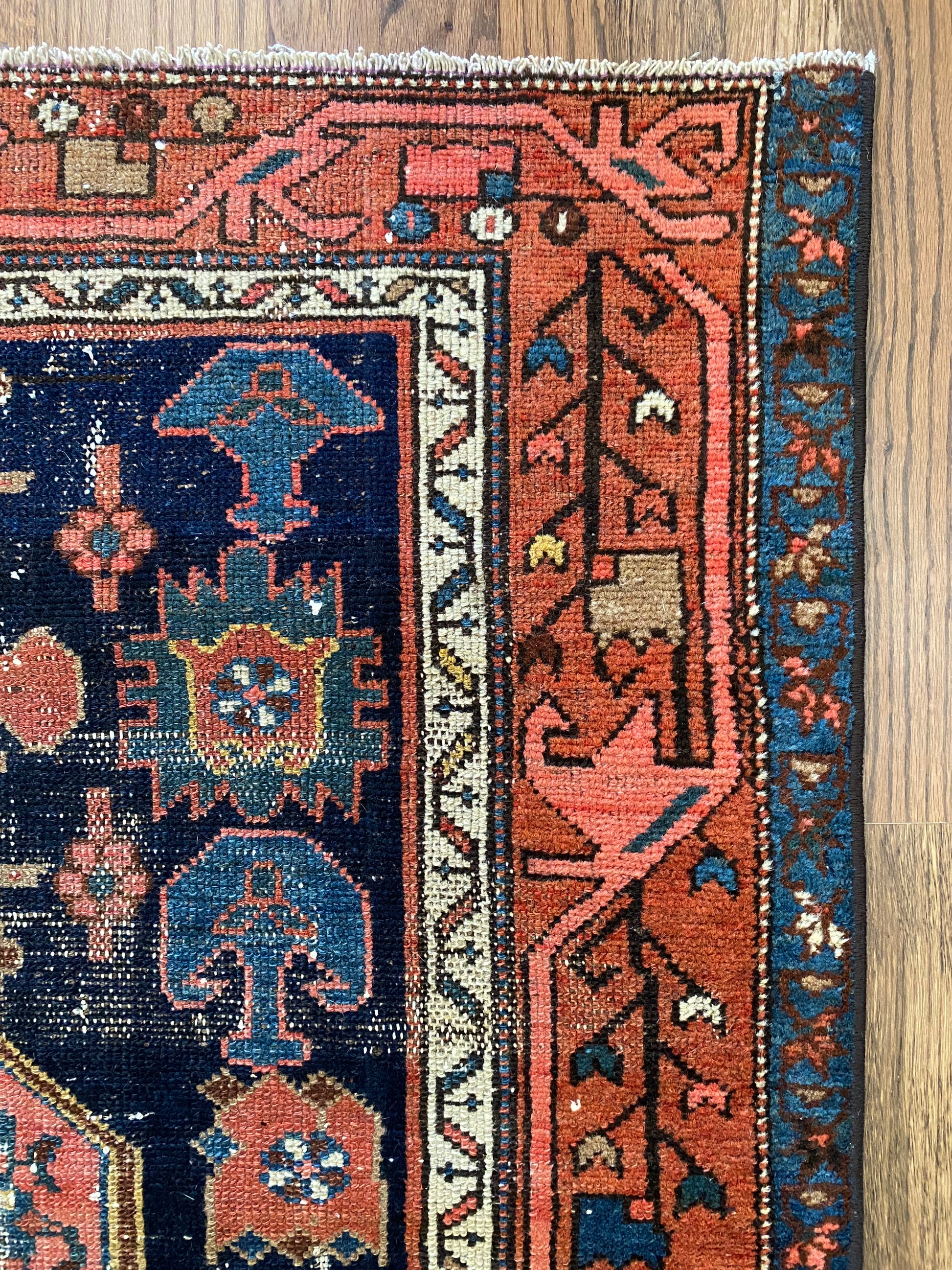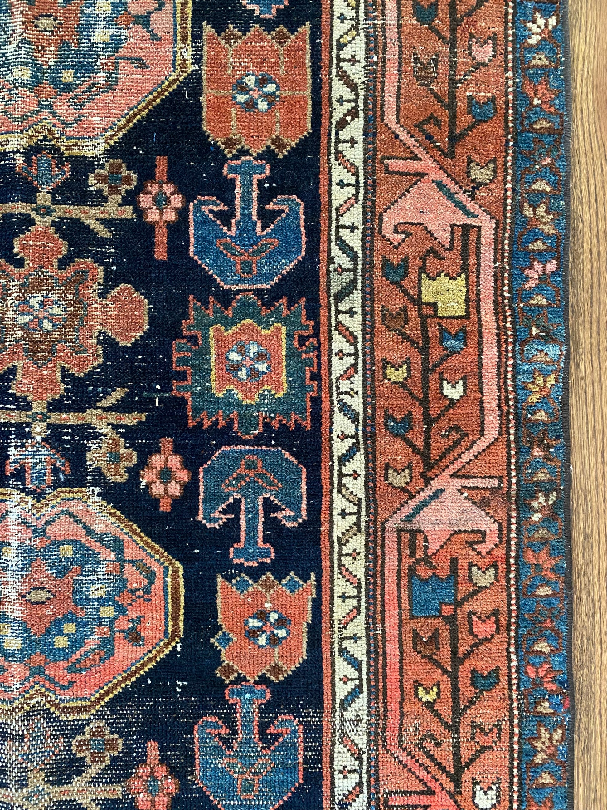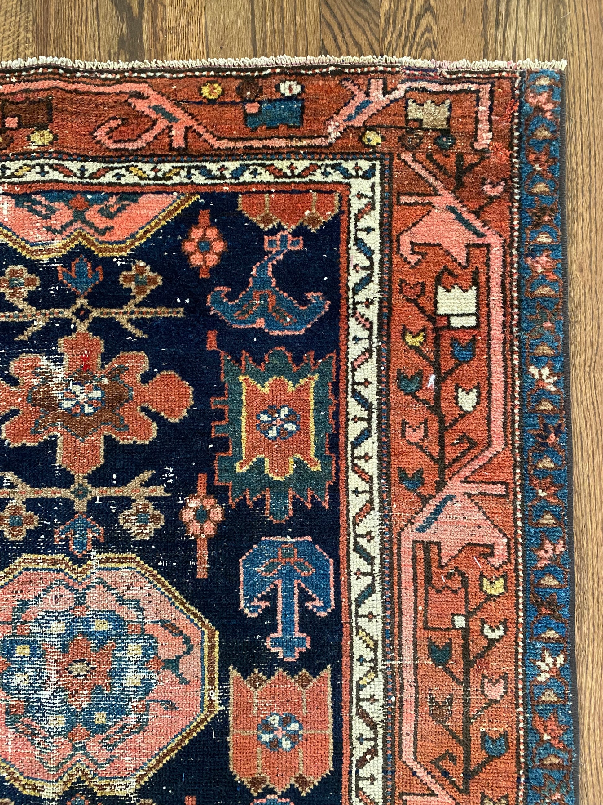 All of our rugs have been professionally cleaned prior to listing. We strive to deliver rugs that everyone loves, but please note that when you purchase from Two Sisters Rugs you are purchasing an item that is pre-owned and vintage by nature. Rugs might have areas of wear, minor repairs, or other unique characteristics, but we believe this is what makes them beautiful and one of a kind. Many rugs do not have perfect lines. All photographs are taken on an iPhone with no filter in natural light unless otherwise noted; colors may vary depending on the placement in your home. Colors may also vary depending on your phone or screen settings. If the area you are placing the rug has less natural light, the rug will appear darker in person. We aim to represent each rugs true colors and designs on the listing photos, but are happy to send additional photos upon request prior to purchase. High quality wool contains a substance called lanolin, which emits a metallic-y, but sweet and grassy scent. ALL SALES ARE FINAL.