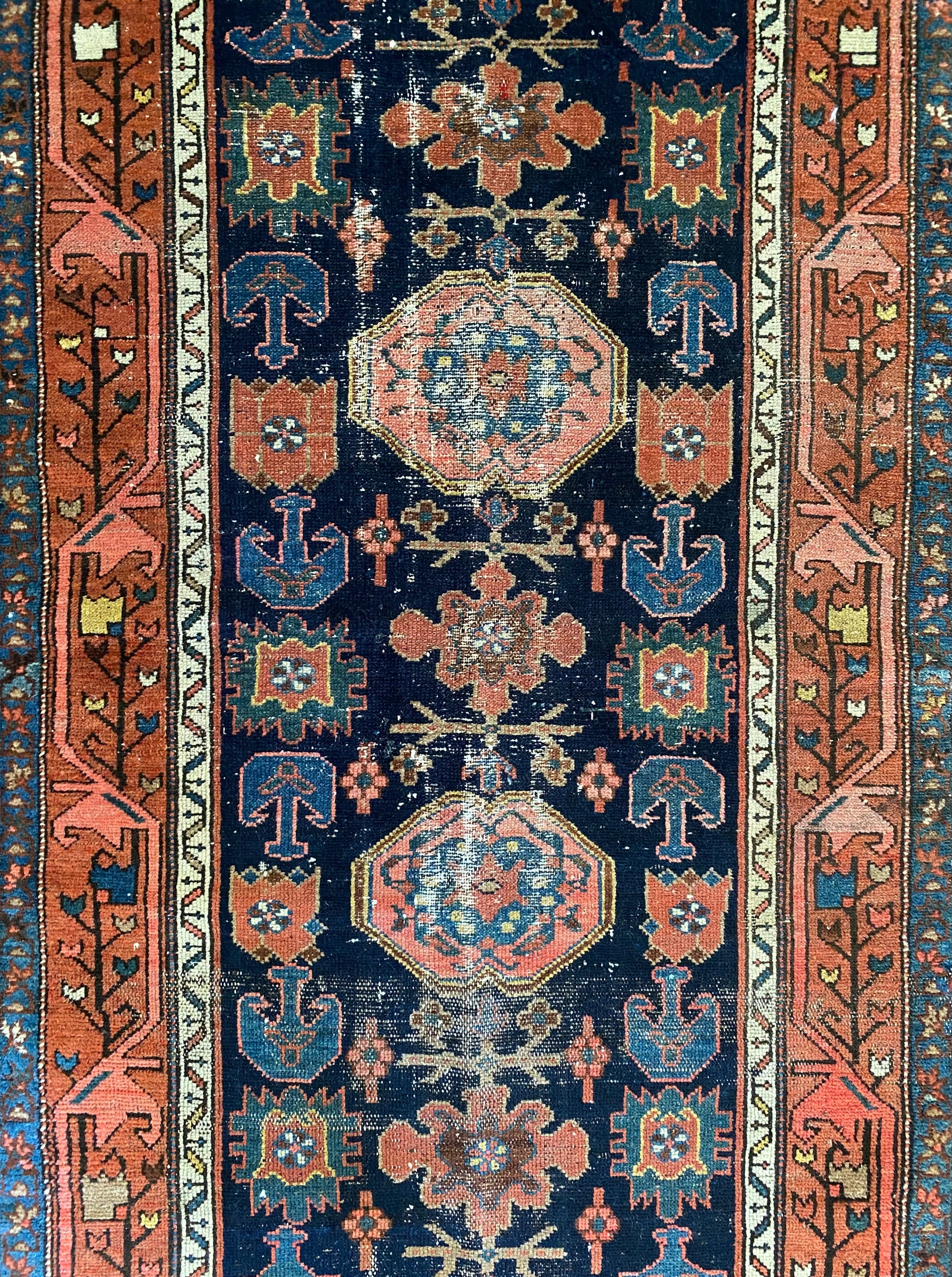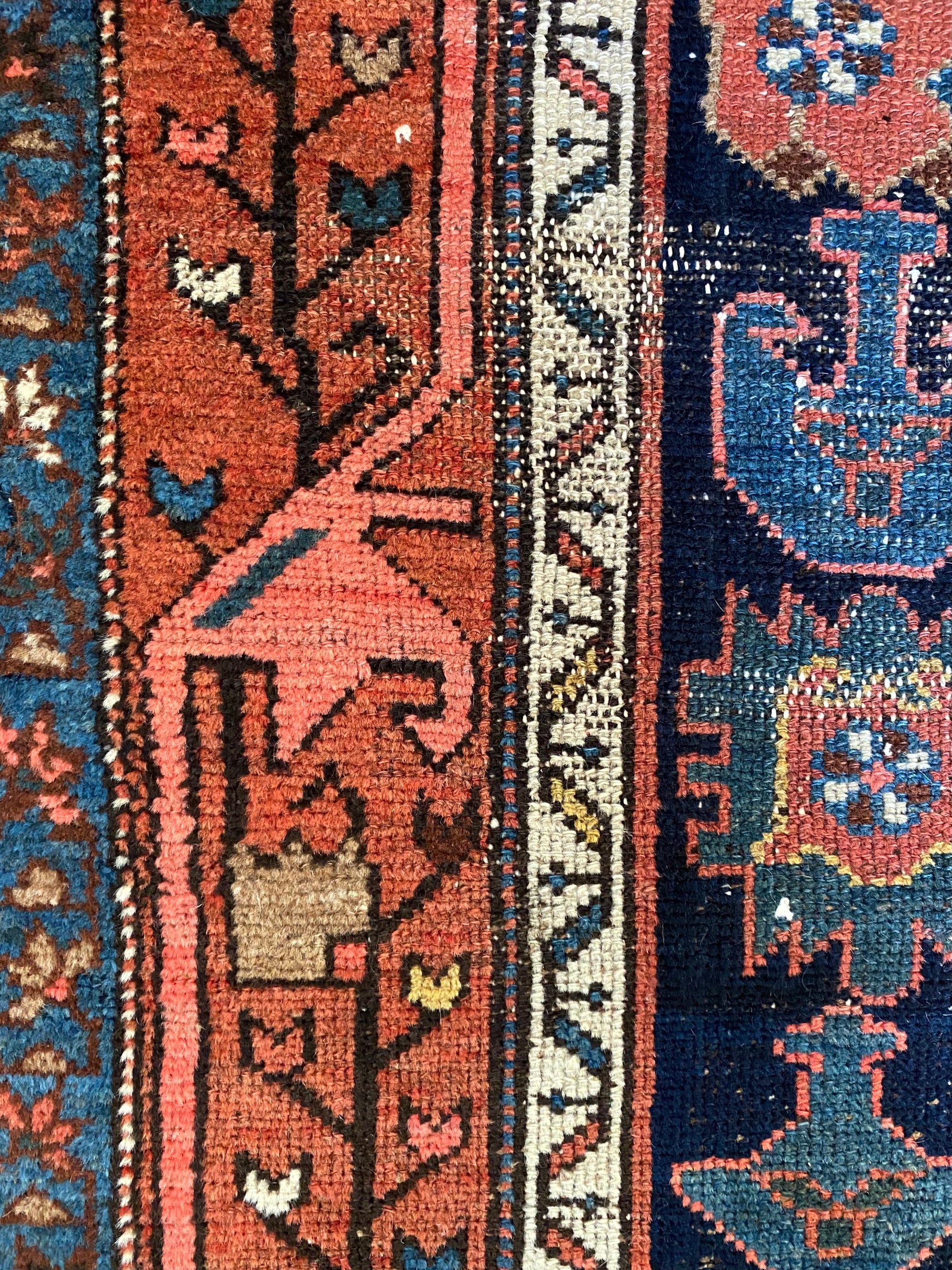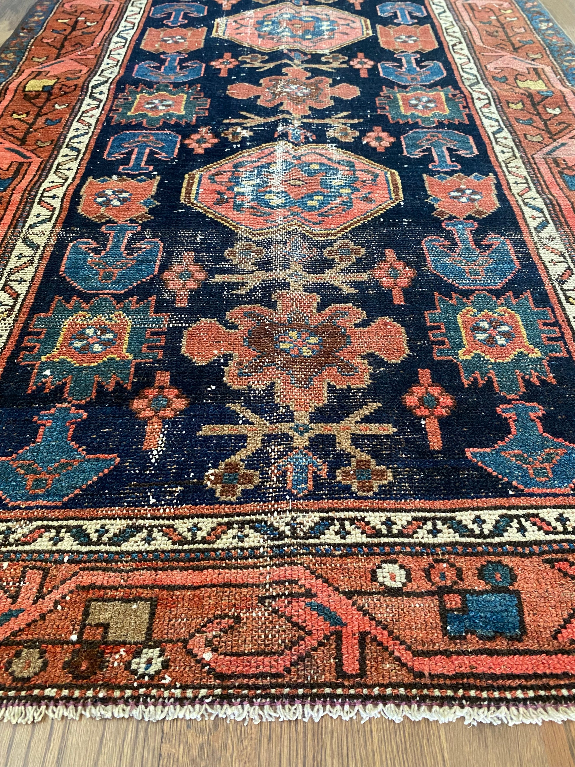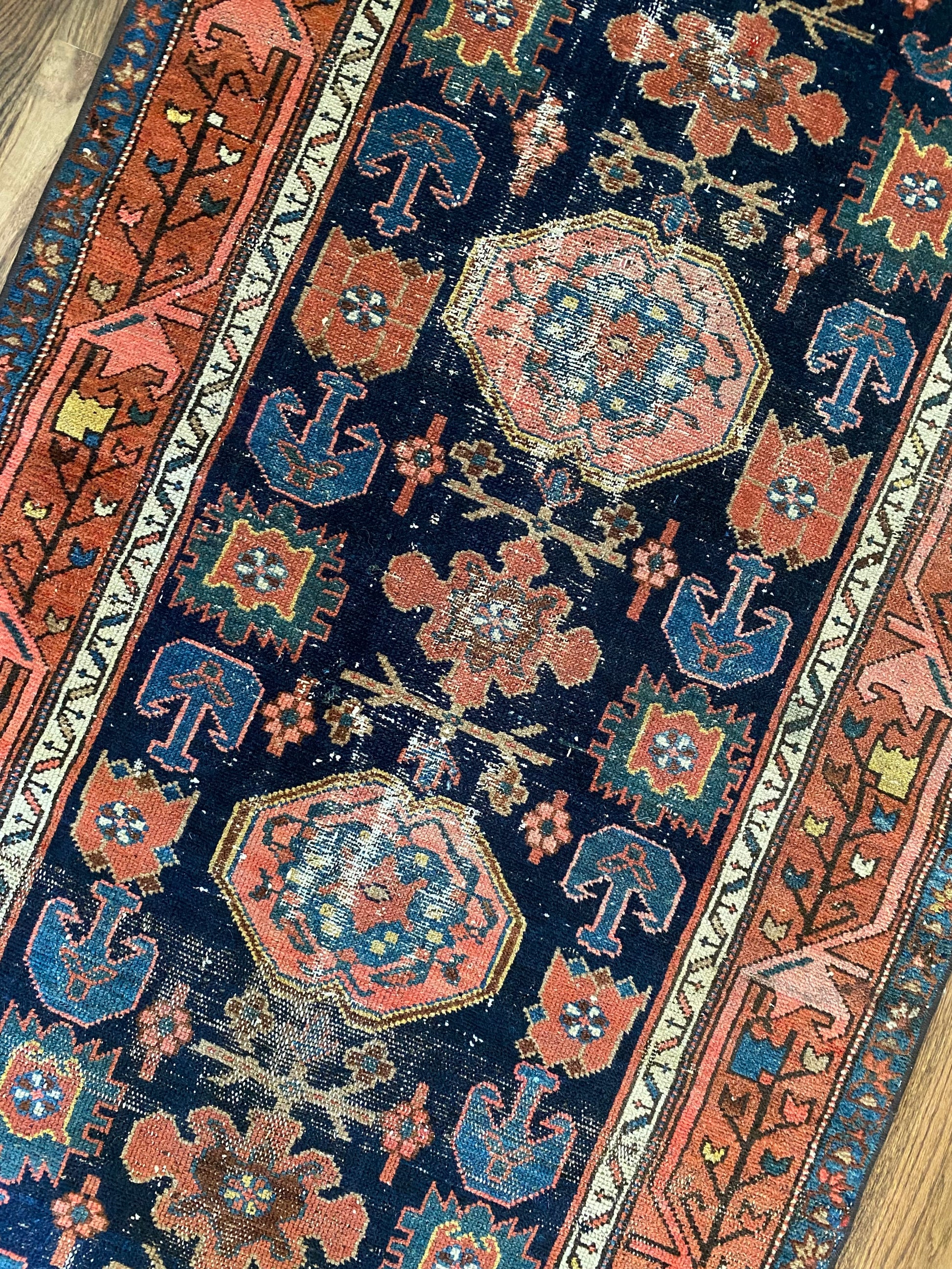 All of our rugs have been professionally cleaned prior to listing. We strive to deliver rugs that everyone loves, but please note that when you purchase from Two Sisters Rugs you are purchasing an item that is pre-owned and vintage by nature. Rugs might have areas of wear, minor repairs, or other unique characteristics, but we believe this is what makes them beautiful and one of a kind. Many rugs do not have perfect lines. All photographs are taken on an iPhone with no filter in natural light unless otherwise noted; colors may vary depending on the placement in your home. Colors may also vary depending on your phone or screen settings. If the area you are placing the rug has less natural light, the rug will appear darker in person. We aim to represent each rugs true colors and designs on the listing photos, but are happy to send additional photos upon request prior to purchase. High quality wool contains a substance called lanolin, which emits a metallic-y, but sweet and grassy scent. ALL SALES ARE FINAL.
