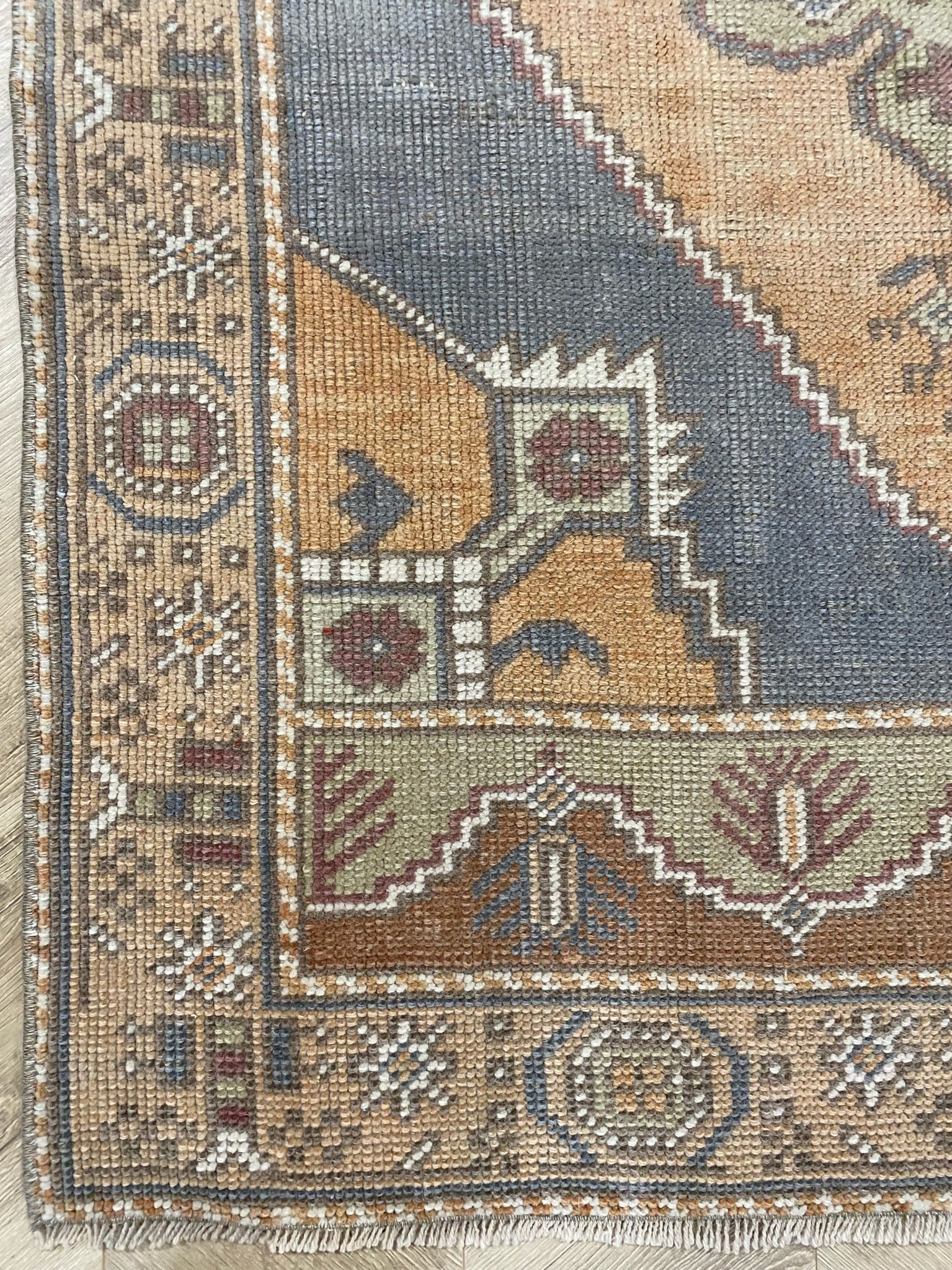 All of our rugs have been professionally cleaned prior to listing. These unique vintage rugs have normal wear related to their age. Some may have minor repairs. All photographs are taken in natural light; colors may vary depending on the placement in your home. Many rugs do not have perfect lines-we believe this adds to the authenticity of these hand-woven beauties. ALL SALES FINAL.