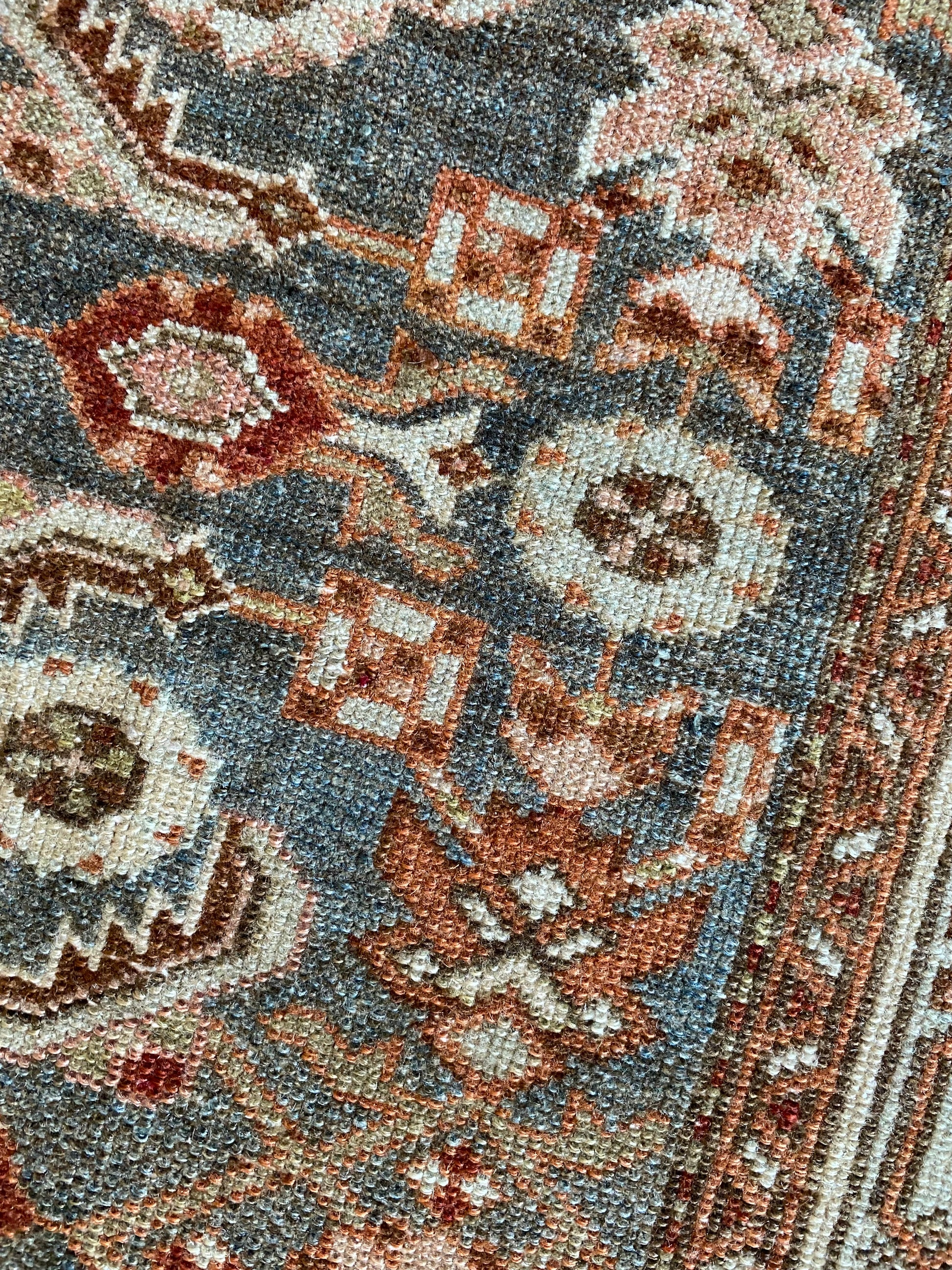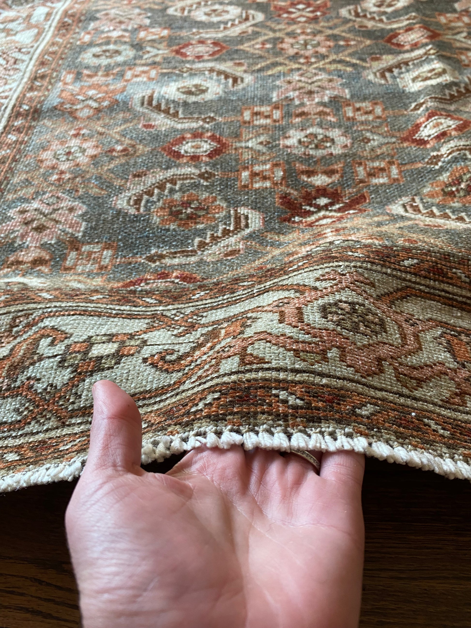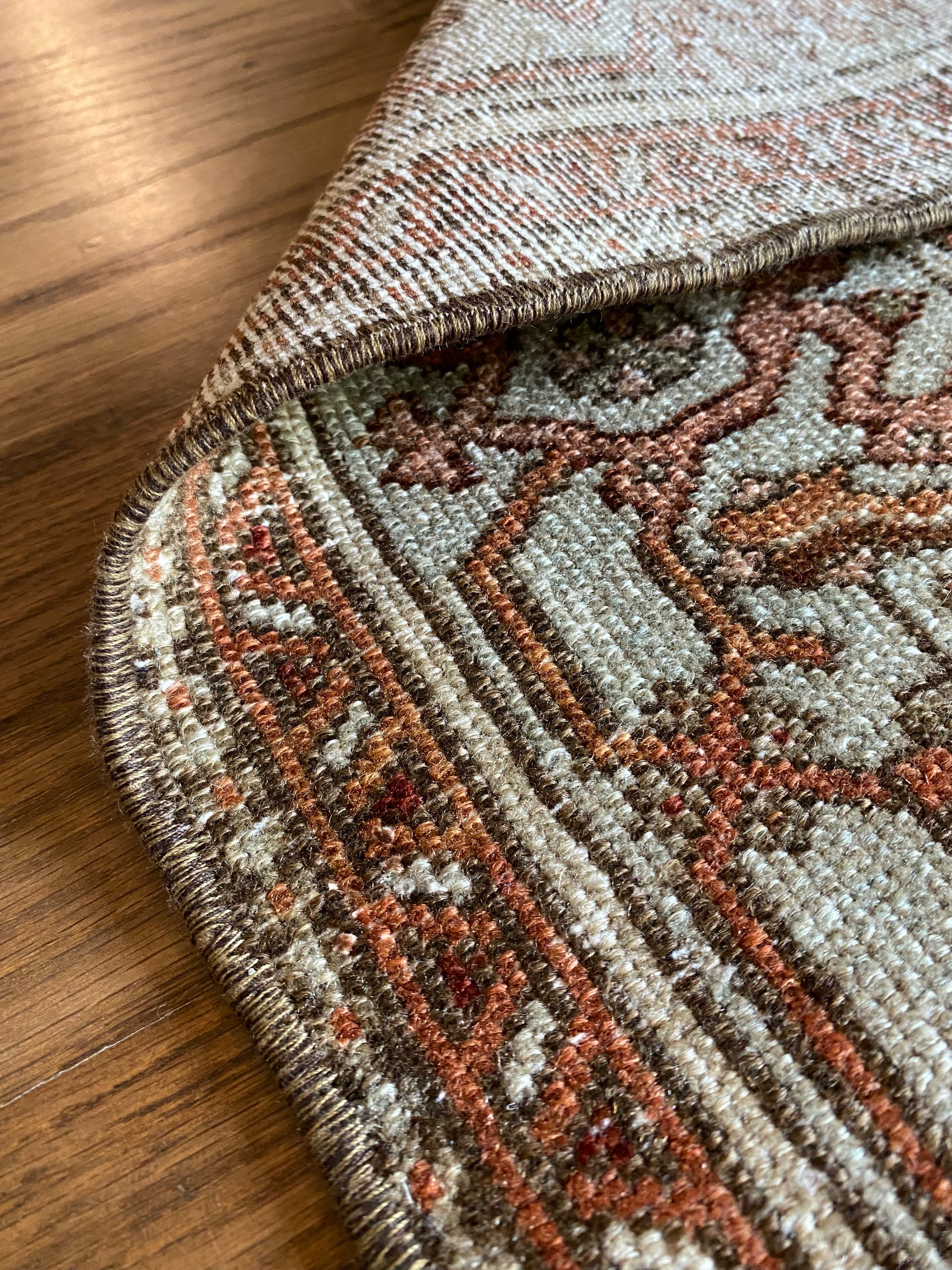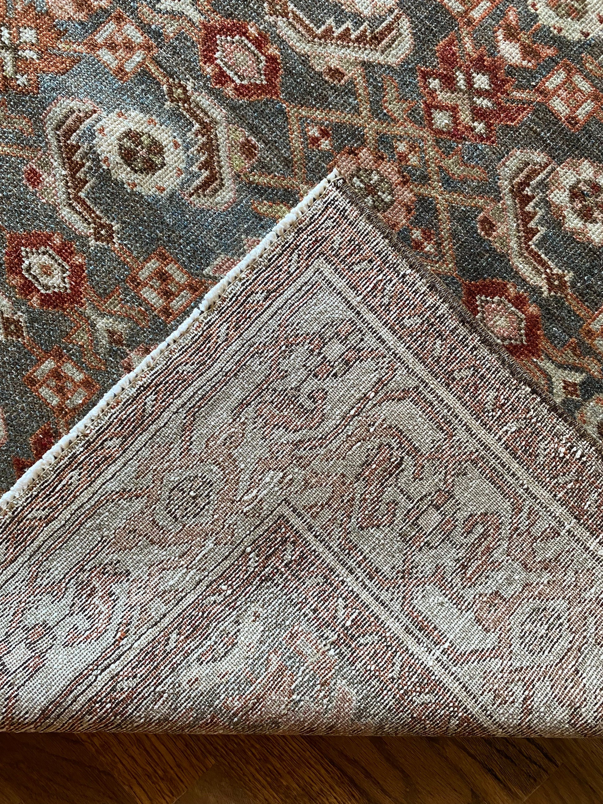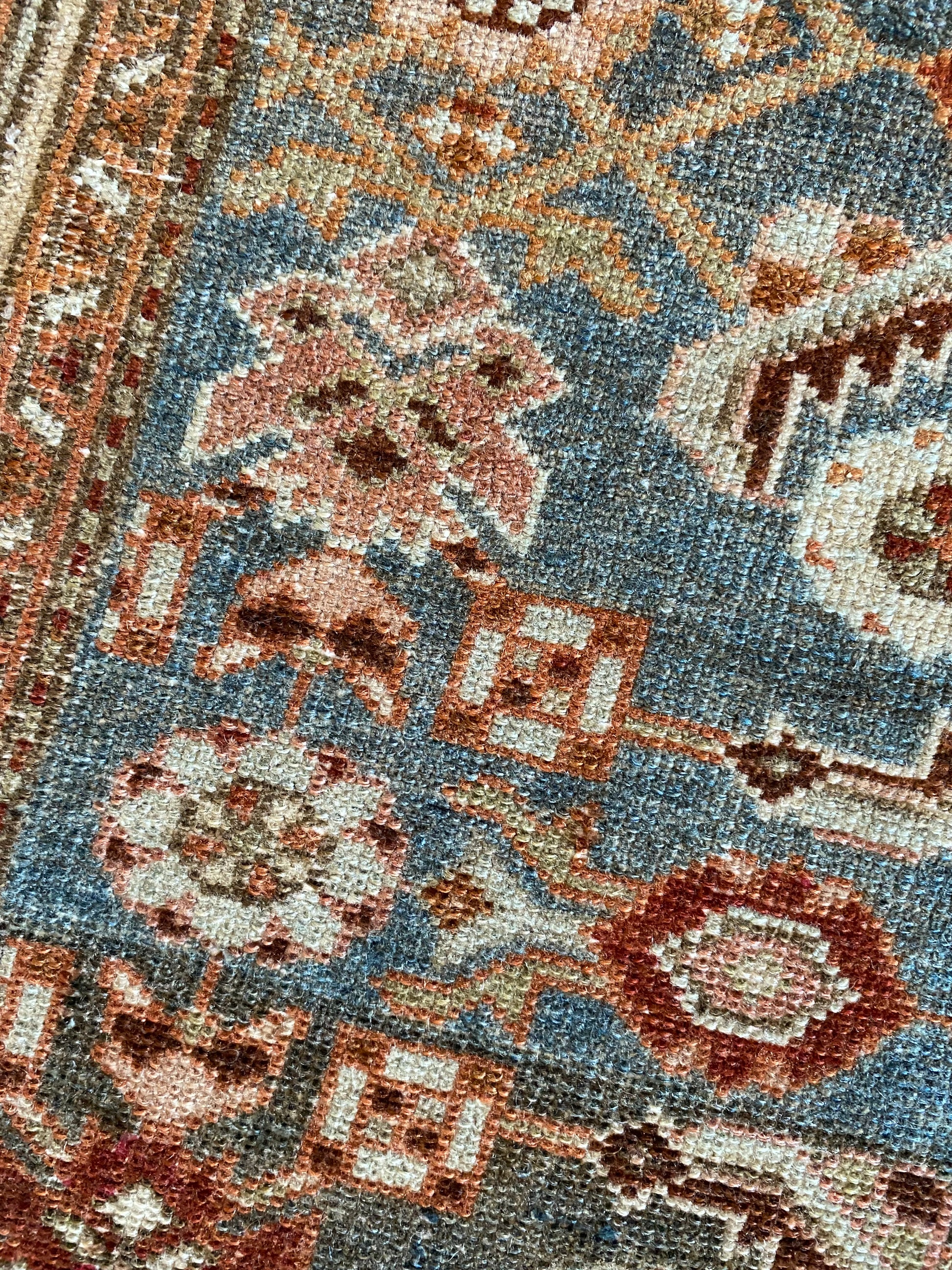 All of our rugs have been professionally cleaned prior to listing. We strive to deliver rugs that everyone loves, but please note that when you purchase from Two Sisters Rugs you are purchasing an item that is pre-owned and vintage by nature. Rugs might have areas of wear, minor repairs, or other unique characteristics, but we believe this is what makes them beautiful and one of a kind. Many rugs do not have perfect lines. All photographs are taken on an iPhone with no filter in natural light unless otherwise noted; colors may vary depending on the placement in your home. Colors may also vary depending on your phone or screen settings. If the area you are placing the rug has less natural light, the rug will appear darker in person. We aim to represent each rugs true colors and designs on the listing photos, but are happy to send additional photos upon request prior to purchase. High quality wool contains a substance called lanolin, which emits a metallic-y, but sweet and grassy scent. ALL SALES ARE FINAL.