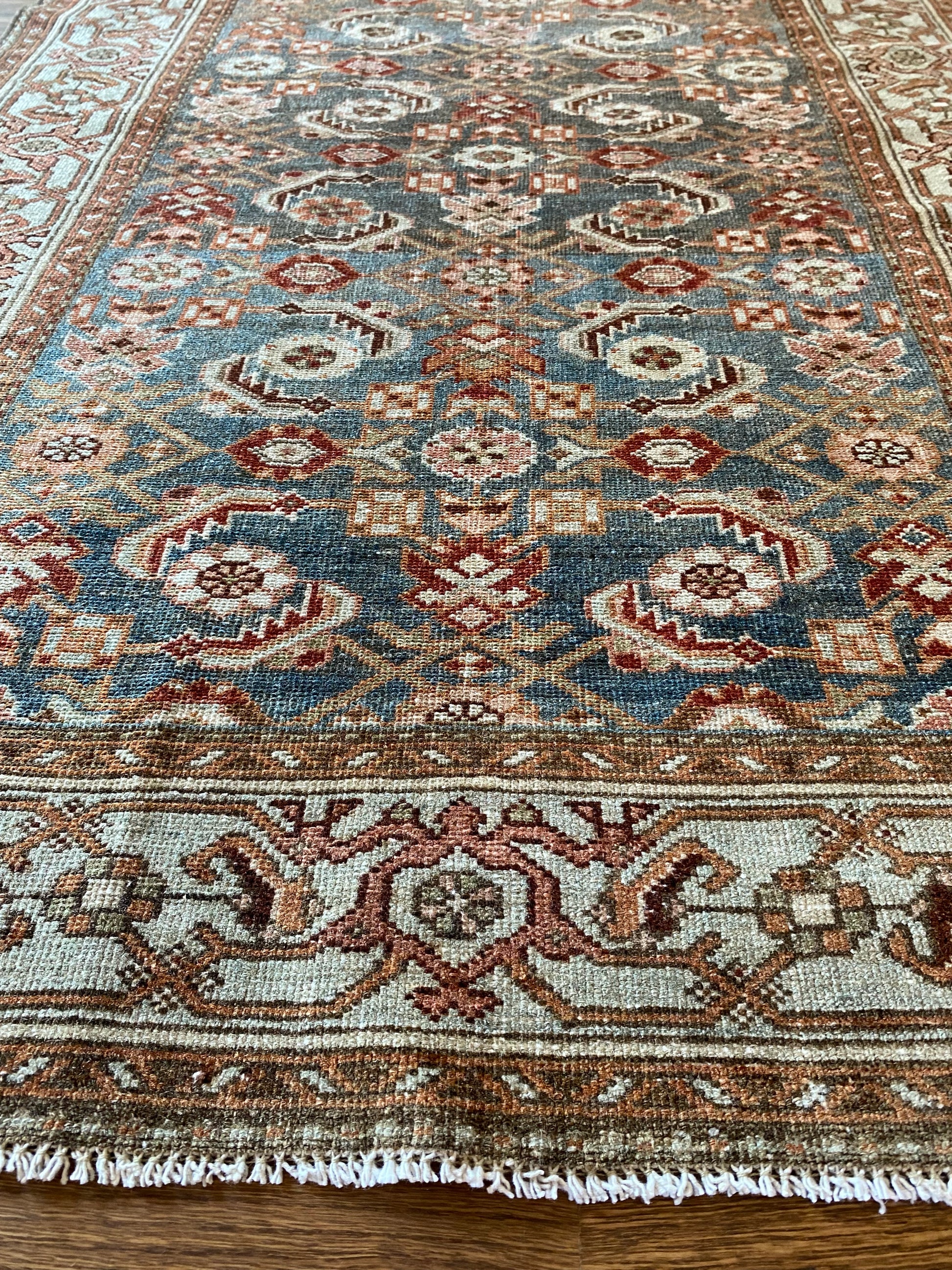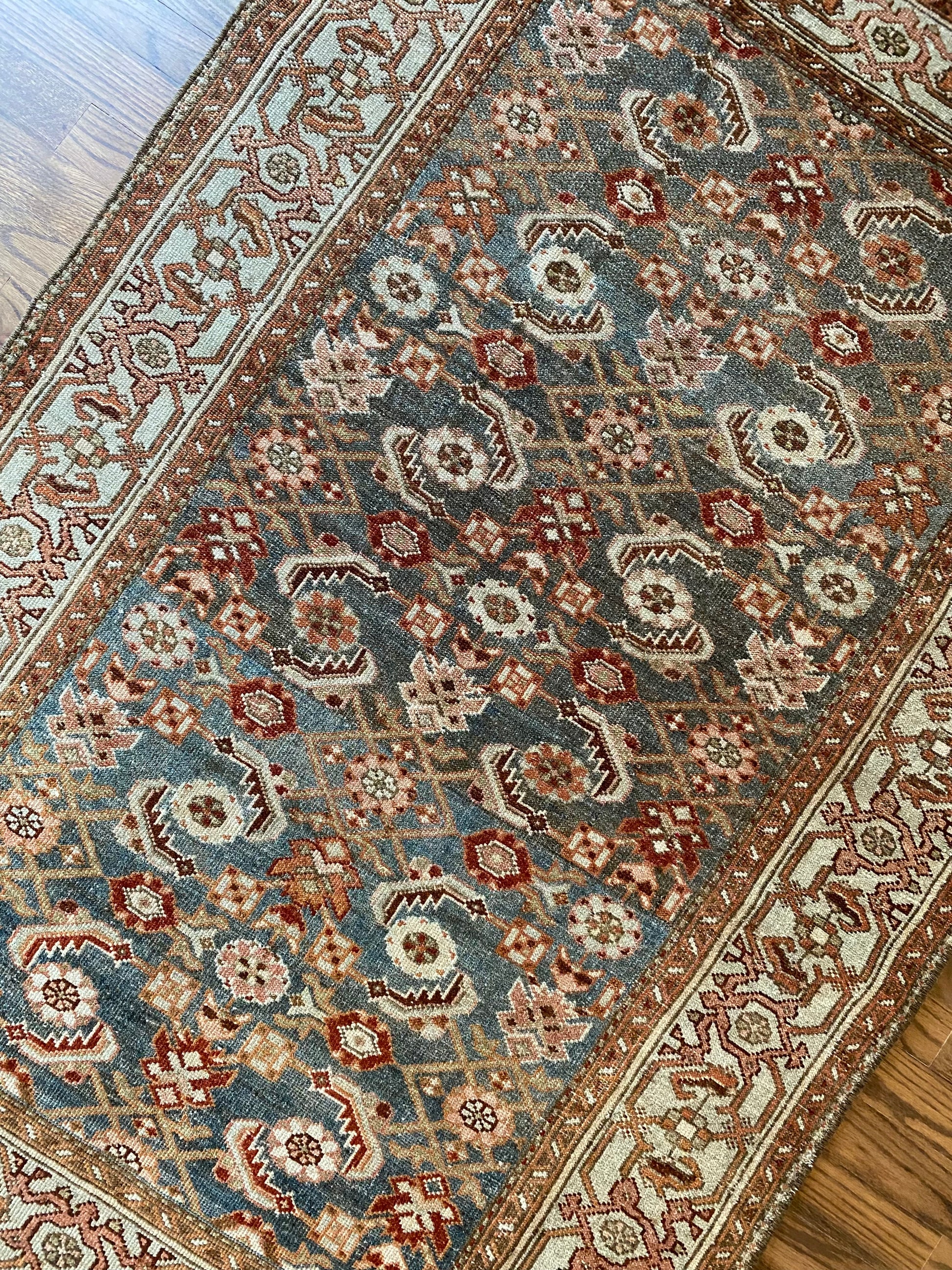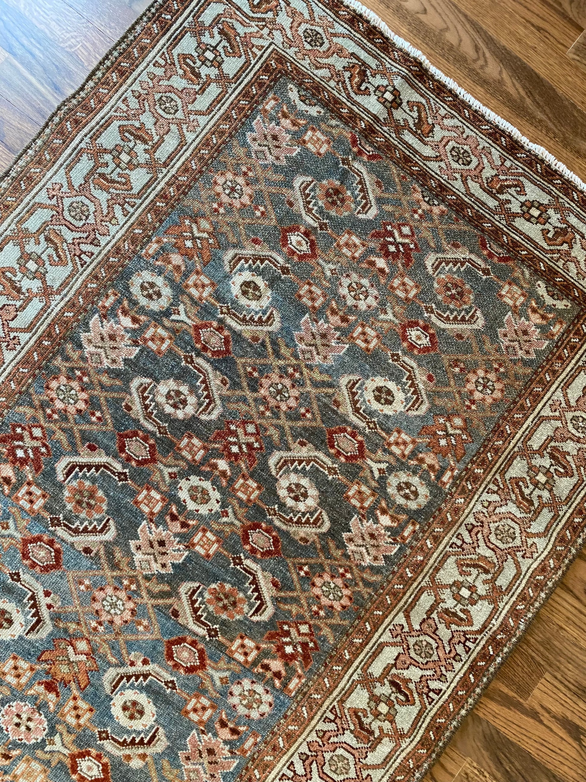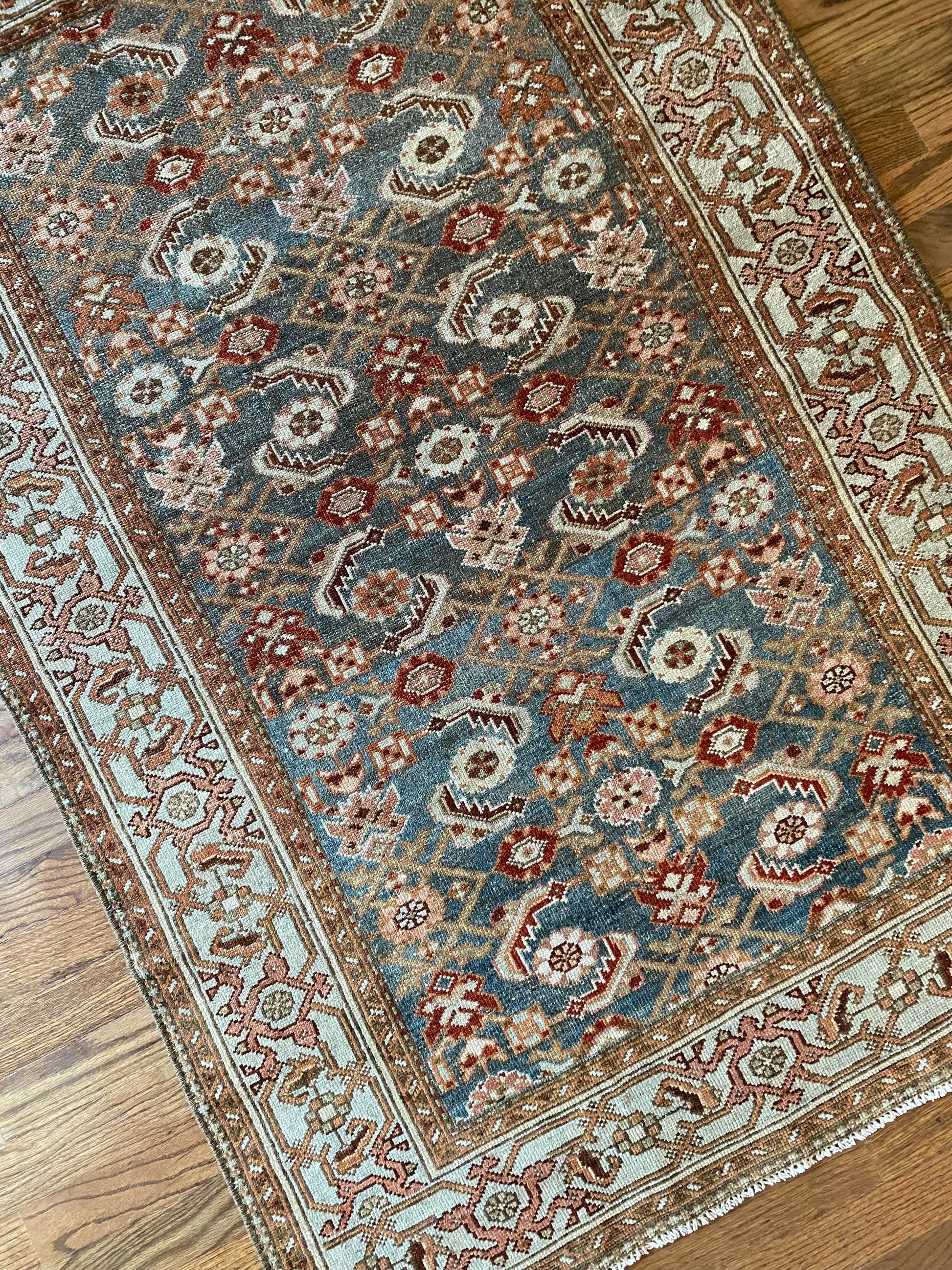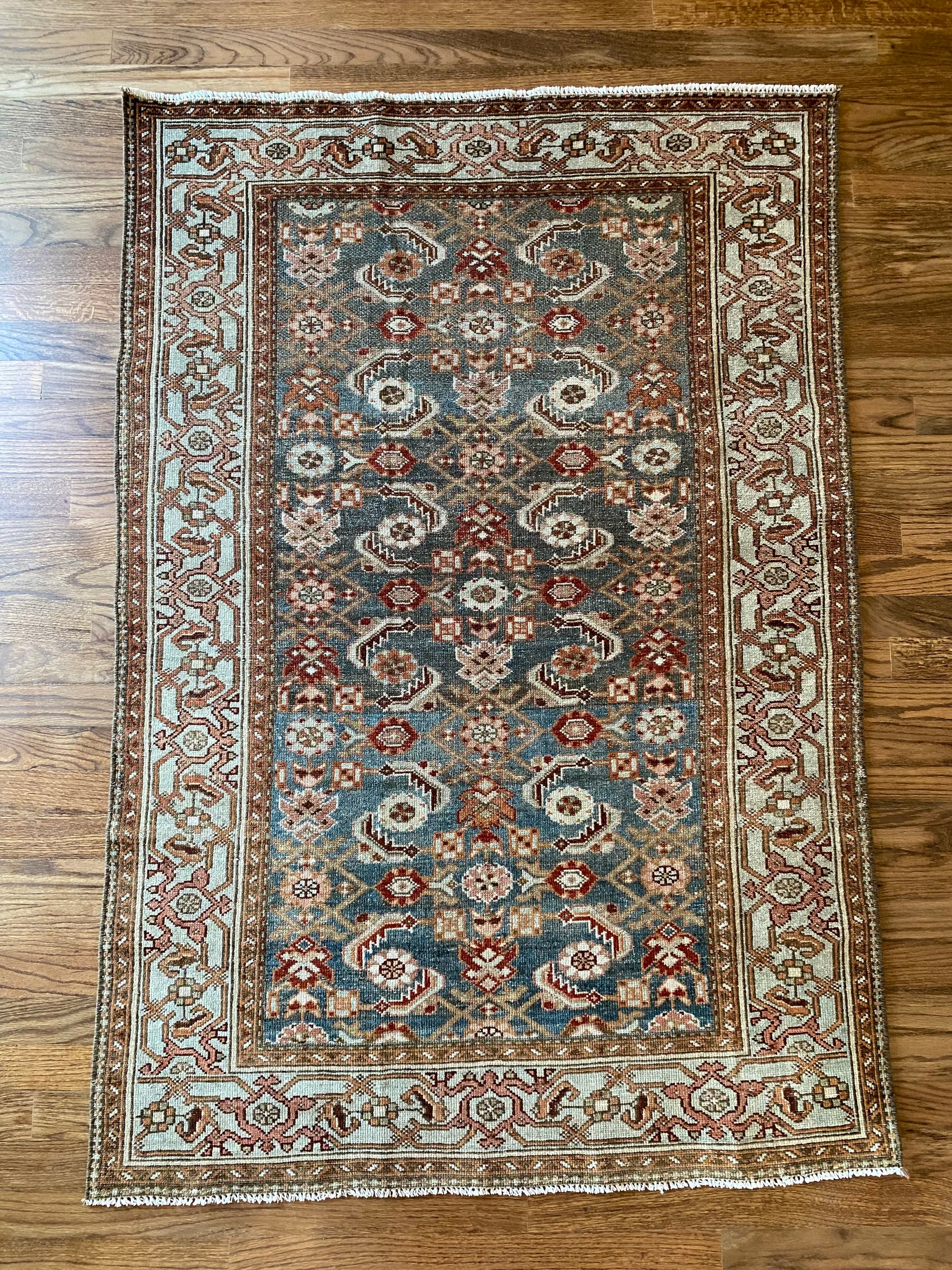 All of our rugs have been professionally cleaned prior to listing. We strive to deliver rugs that everyone loves, but please note that when you purchase from Two Sisters Rugs you are purchasing an item that is pre-owned and vintage by nature. Rugs might have areas of wear, minor repairs, or other unique characteristics, but we believe this is what makes them beautiful and one of a kind. Many rugs do not have perfect lines. All photographs are taken on an iPhone with no filter in natural light unless otherwise noted; colors may vary depending on the placement in your home. Colors may also vary depending on your phone or screen settings. If the area you are placing the rug has less natural light, the rug will appear darker in person. We aim to represent each rugs true colors and designs on the listing photos, but are happy to send additional photos upon request prior to purchase. High quality wool contains a substance called lanolin, which emits a metallic-y, but sweet and grassy scent. ALL SALES ARE FINAL.