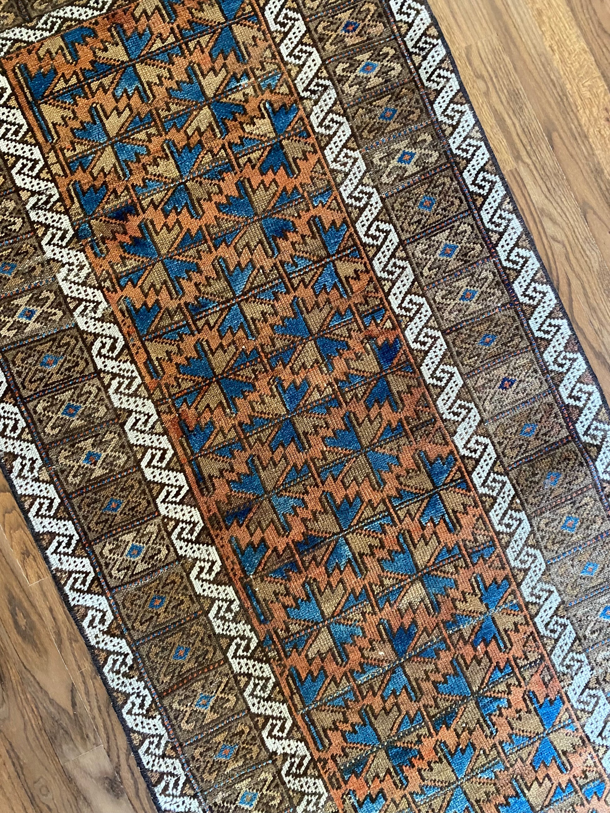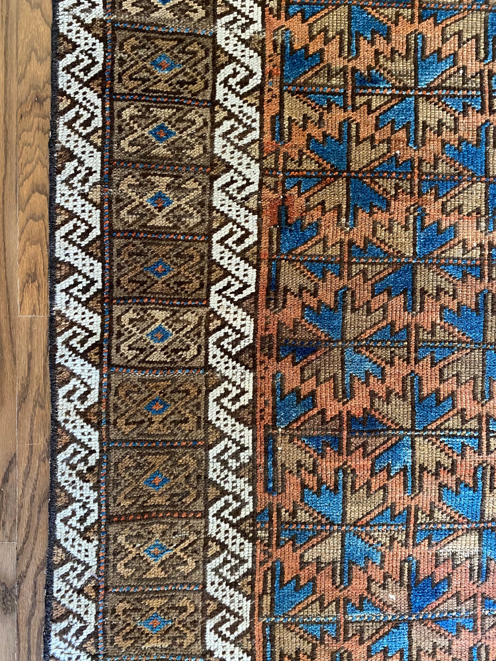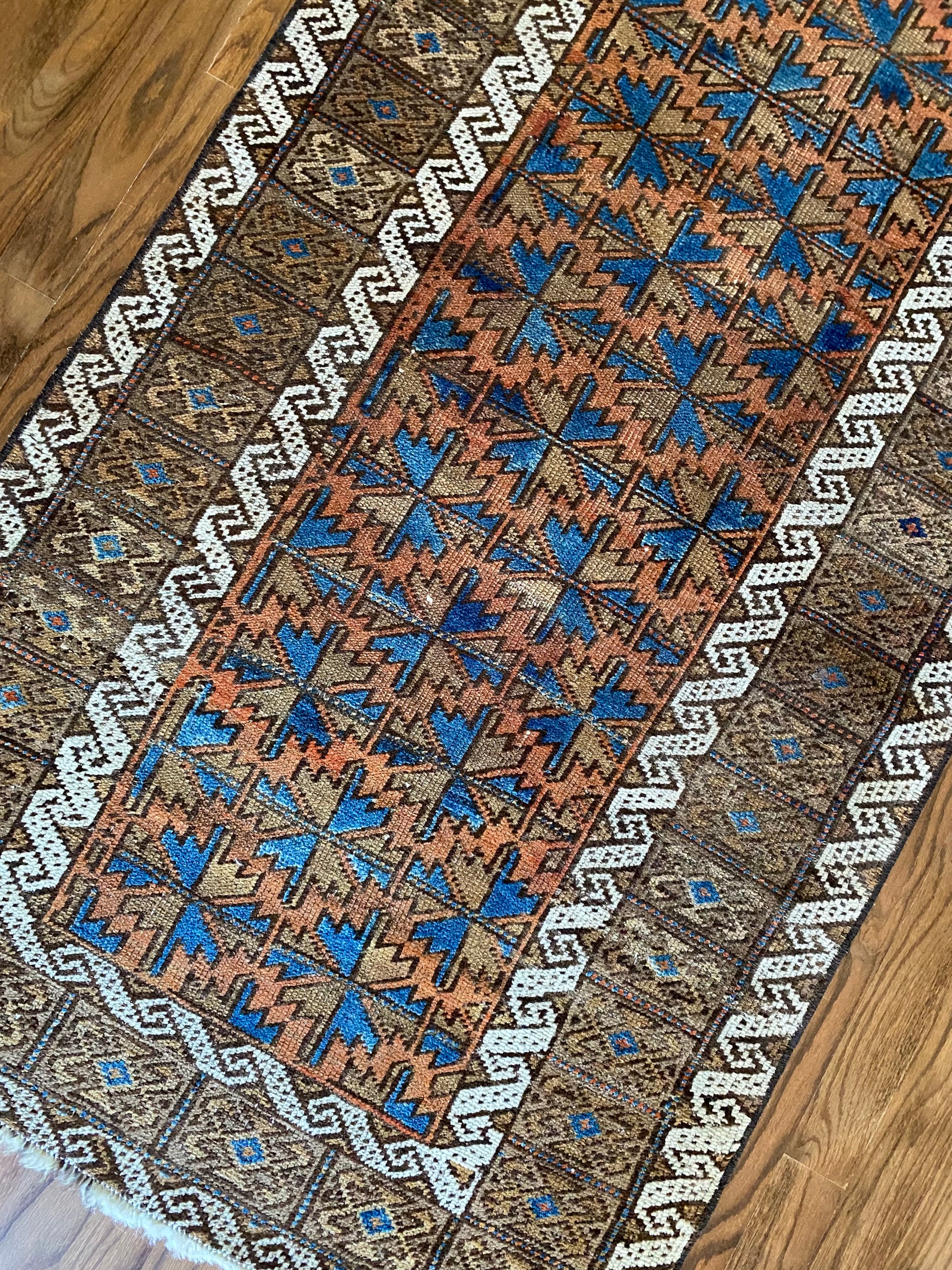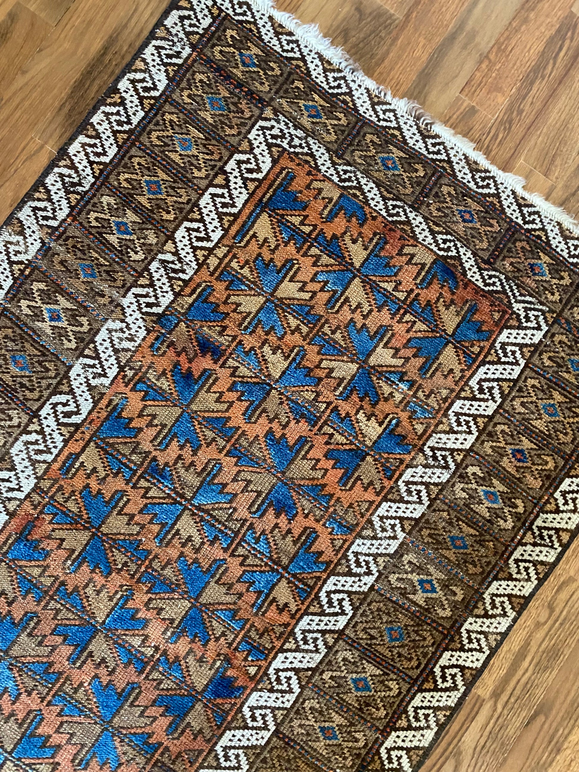 All of our rugs have been professionally cleaned prior to listing. We strive to deliver rugs that everyone loves, but please note that when you purchase from Two Sisters Rugs you are purchasing an item that is pre-owned and vintage by nature. Rugs might have areas of wear, minor repairs, or other unique characteristics, but we believe this is what makes them beautiful and one of a kind. Many rugs do not have perfect lines. All photographs are taken on an iPhone with no filter in natural light unless otherwise noted; colors may vary depending on the placement in your home. Colors may also vary depending on your phone or screen settings. If the area you are placing the rug has less natural light, the rug will appear darker in person. We aim to represent each rugs true colors and designs on the listing photos, but are happy to send additional photos upon request prior to purchase. High quality wool contains a substance called lanolin, which emits a metallic-y, but sweet and grassy scent. ALL SALES ARE FINAL.