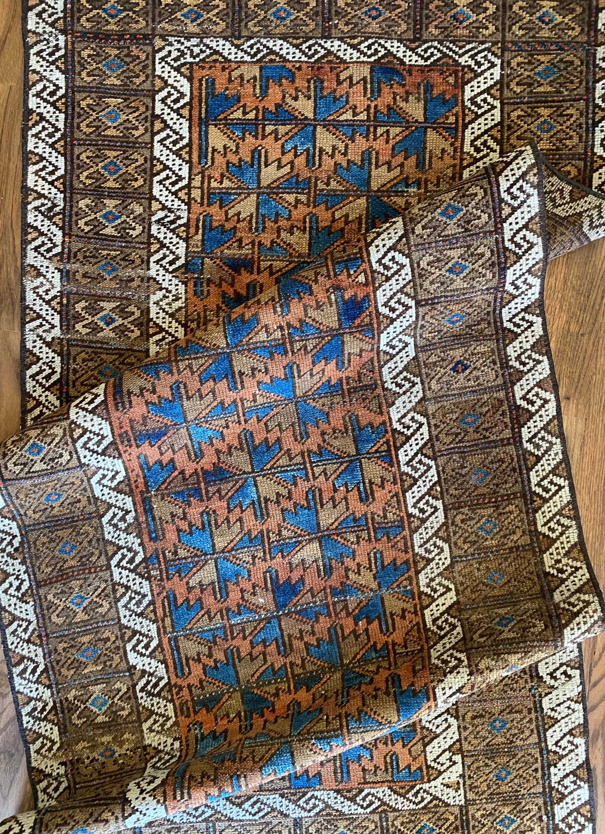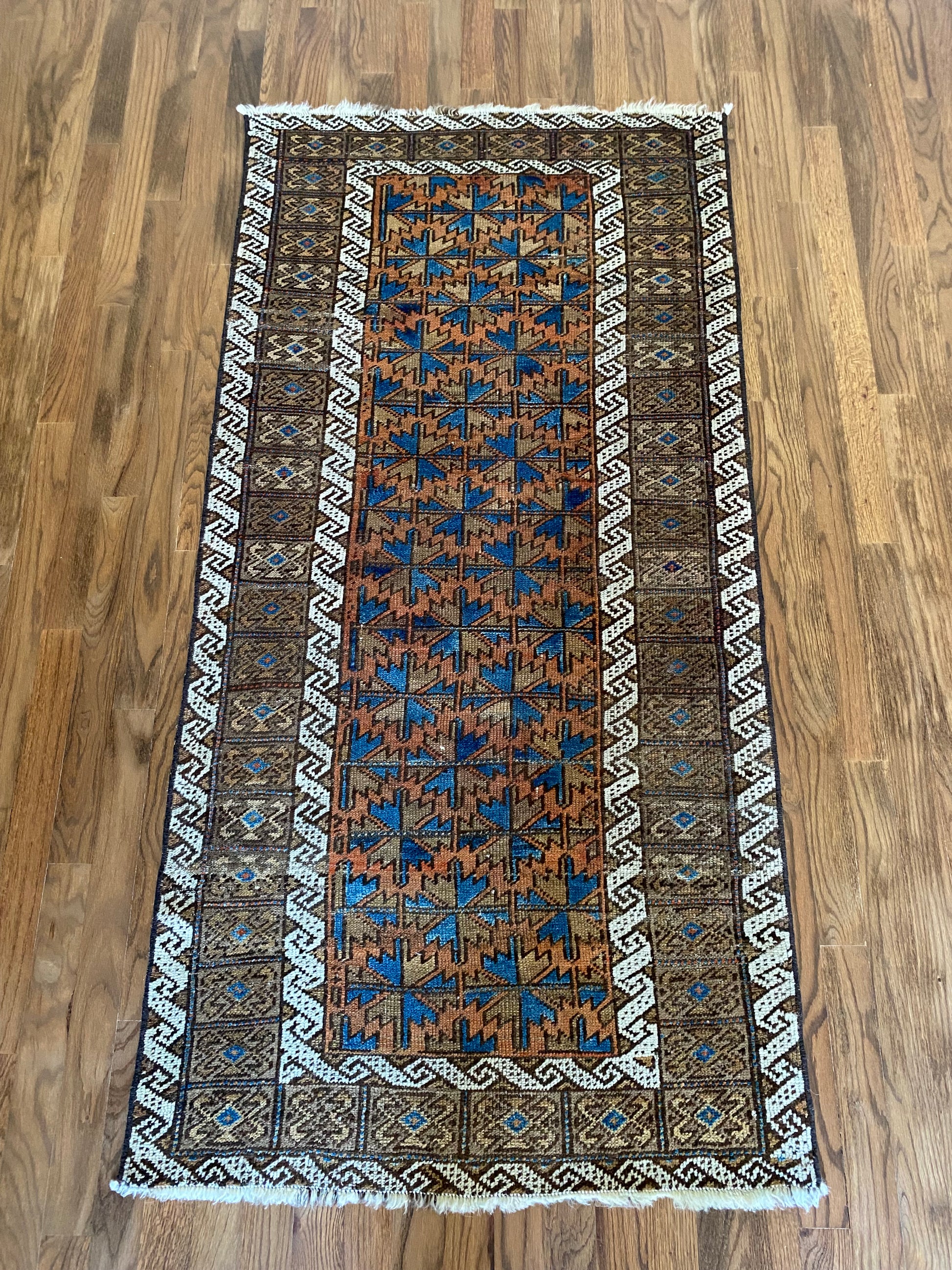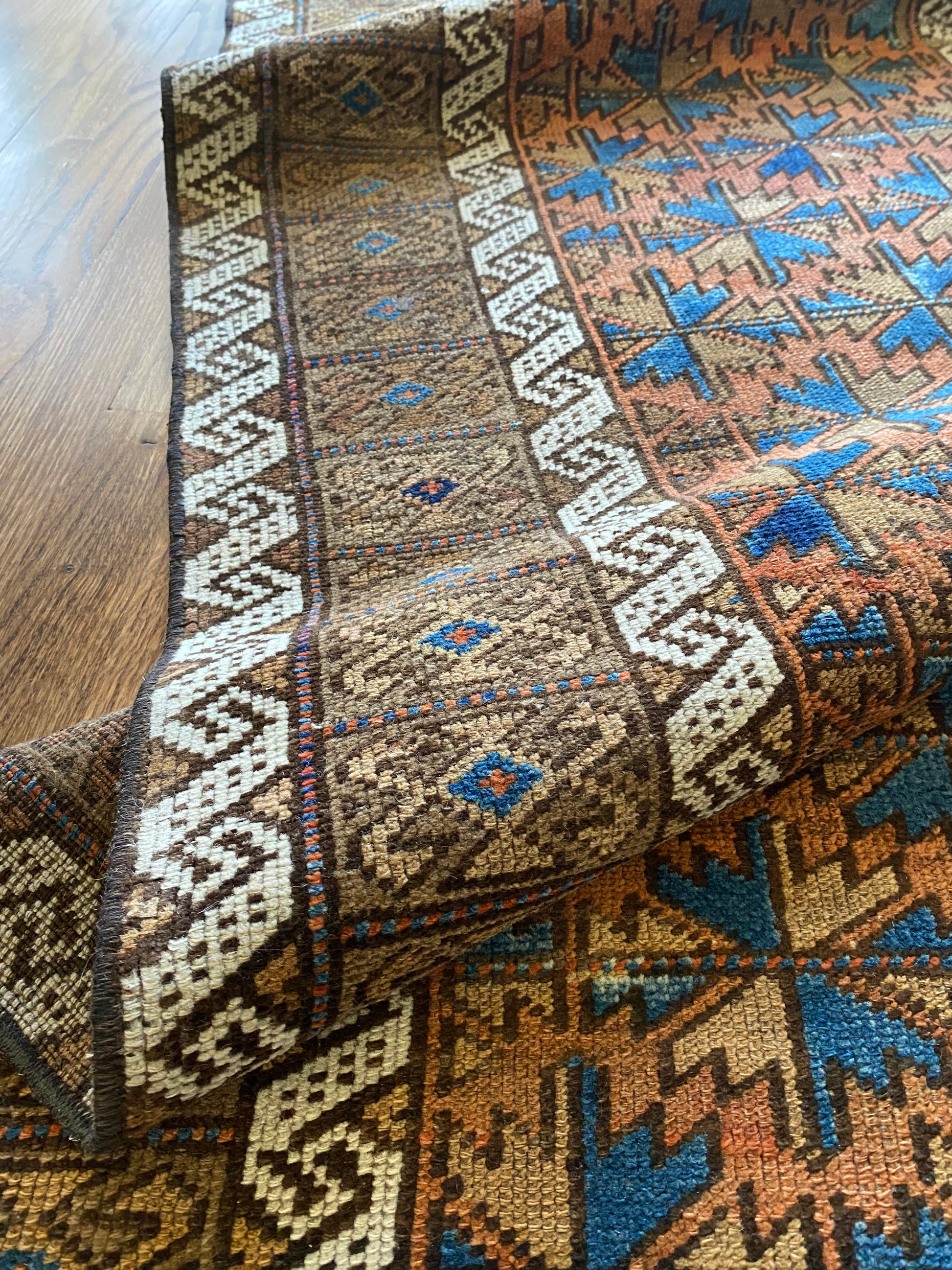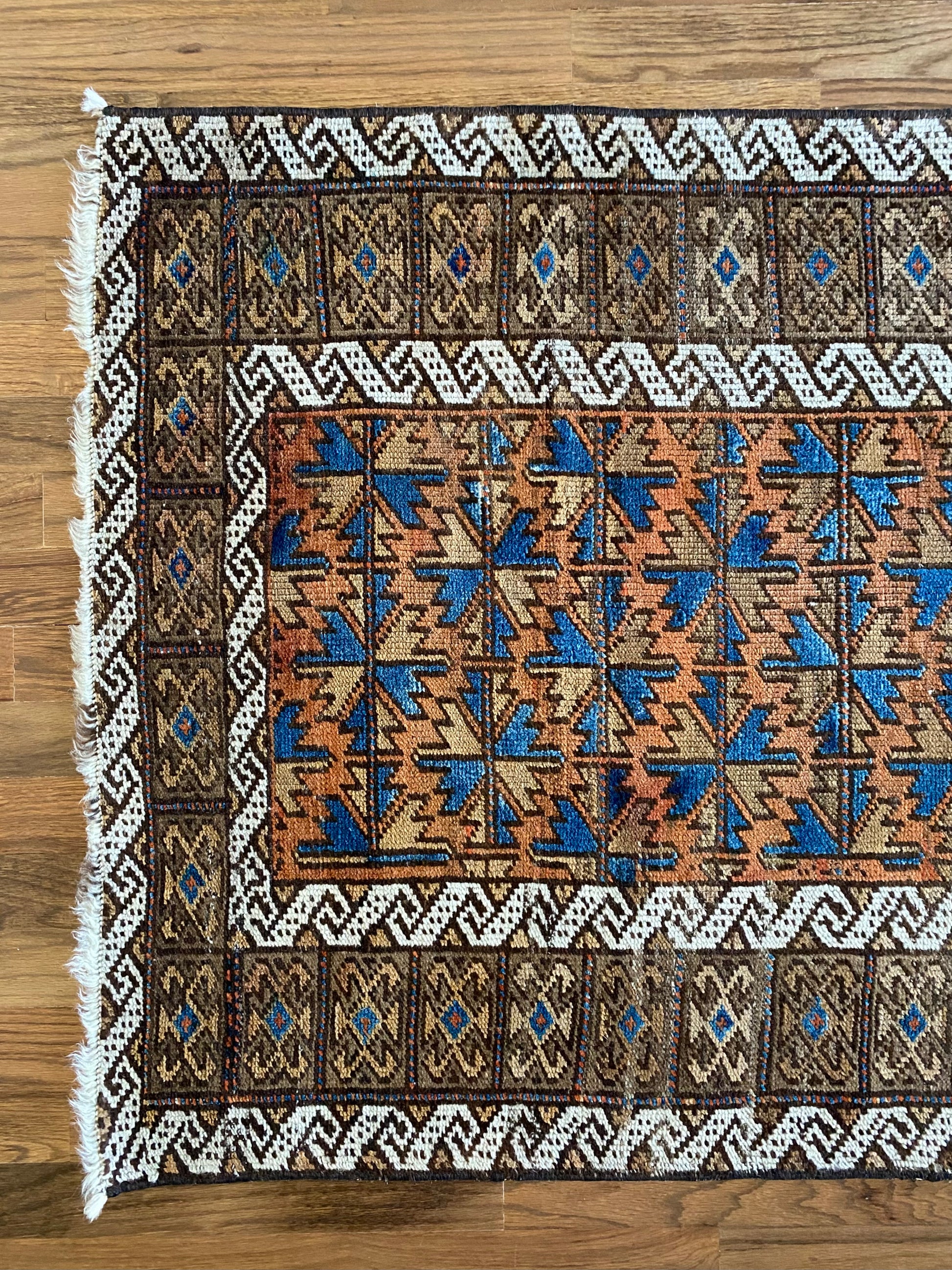 All of our rugs have been professionally cleaned prior to listing. We strive to deliver rugs that everyone loves, but please note that when you purchase from Two Sisters Rugs you are purchasing an item that is pre-owned and vintage by nature. Rugs might have areas of wear, minor repairs, or other unique characteristics, but we believe this is what makes them beautiful and one of a kind. Many rugs do not have perfect lines. All photographs are taken on an iPhone with no filter in natural light unless otherwise noted; colors may vary depending on the placement in your home. Colors may also vary depending on your phone or screen settings. If the area you are placing the rug has less natural light, the rug will appear darker in person. We aim to represent each rugs true colors and designs on the listing photos, but are happy to send additional photos upon request prior to purchase. High quality wool contains a substance called lanolin, which emits a metallic-y, but sweet and grassy scent. ALL SALES ARE FINAL.