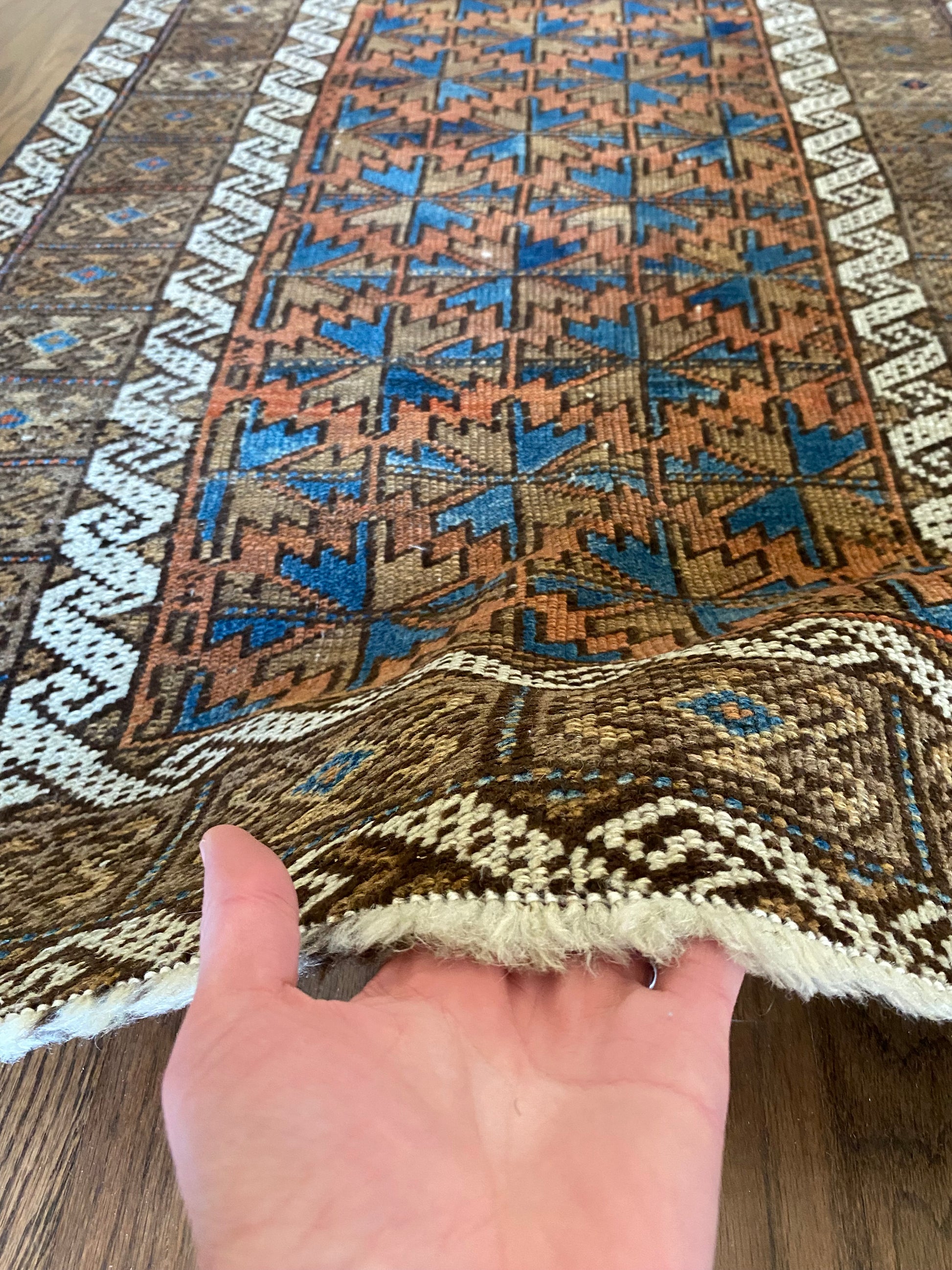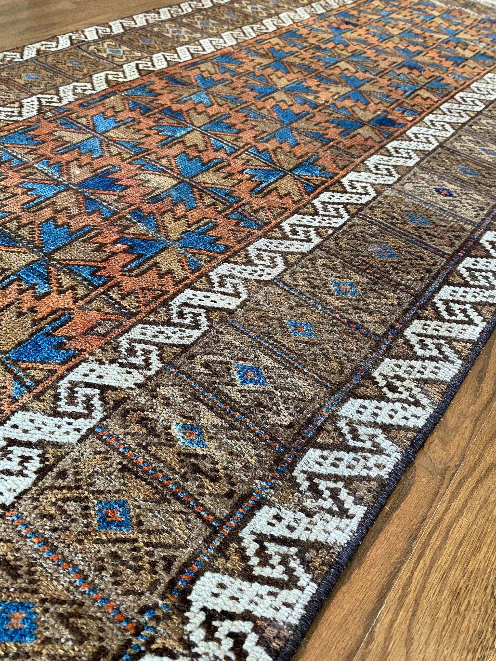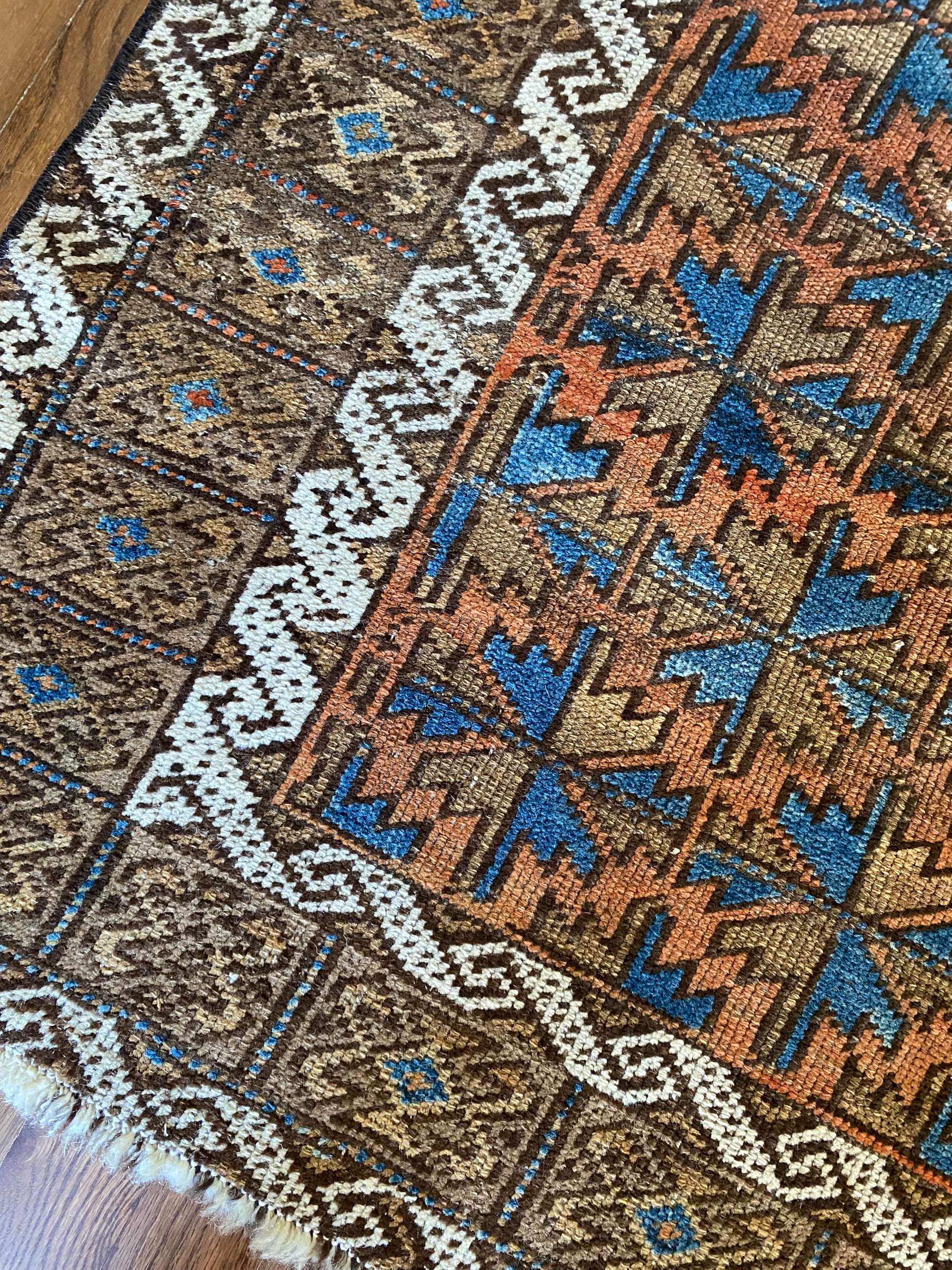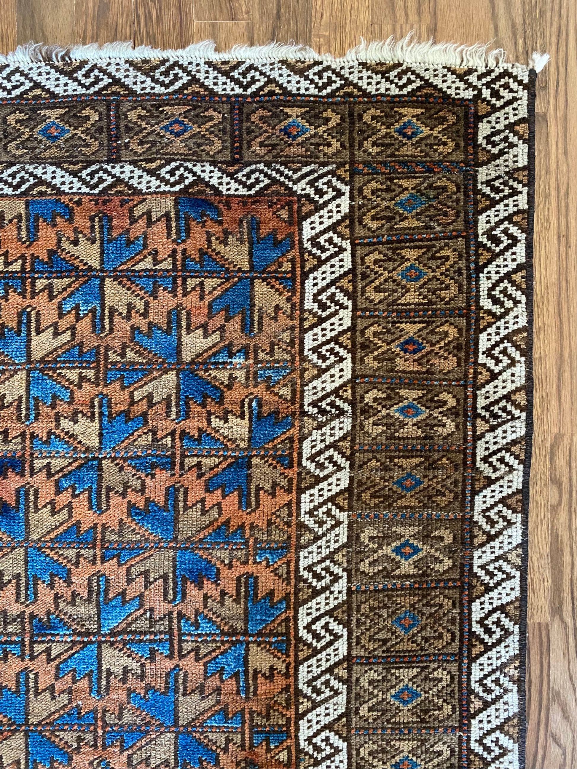 All of our rugs have been professionally cleaned prior to listing. We strive to deliver rugs that everyone loves, but please note that when you purchase from Two Sisters Rugs you are purchasing an item that is pre-owned and vintage by nature. Rugs might have areas of wear, minor repairs, or other unique characteristics, but we believe this is what makes them beautiful and one of a kind. Many rugs do not have perfect lines. All photographs are taken on an iPhone with no filter in natural light unless otherwise noted; colors may vary depending on the placement in your home. Colors may also vary depending on your phone or screen settings. If the area you are placing the rug has less natural light, the rug will appear darker in person. We aim to represent each rugs true colors and designs on the listing photos, but are happy to send additional photos upon request prior to purchase. High quality wool contains a substance called lanolin, which emits a metallic-y, but sweet and grassy scent. ALL SALES ARE FINAL.