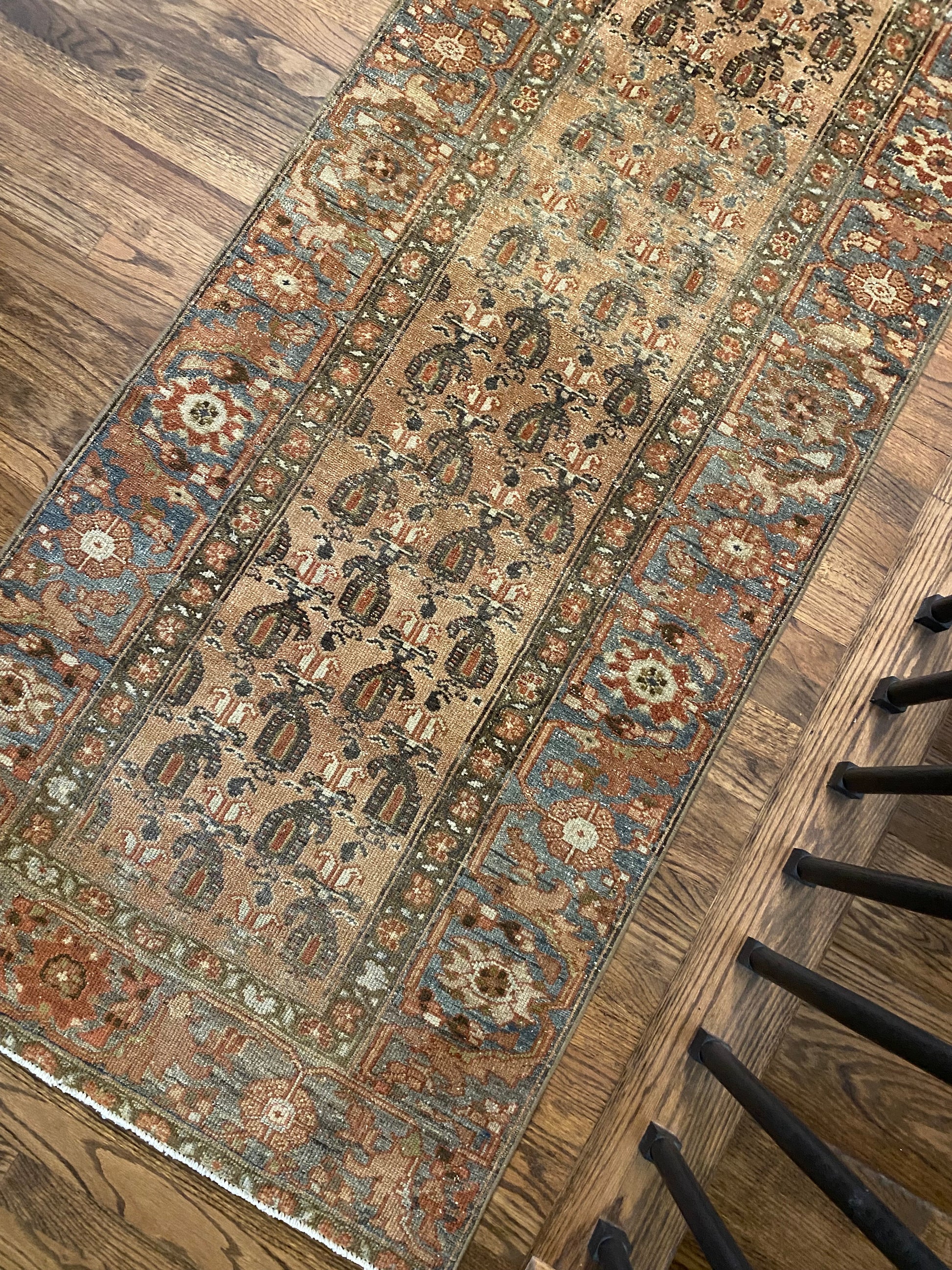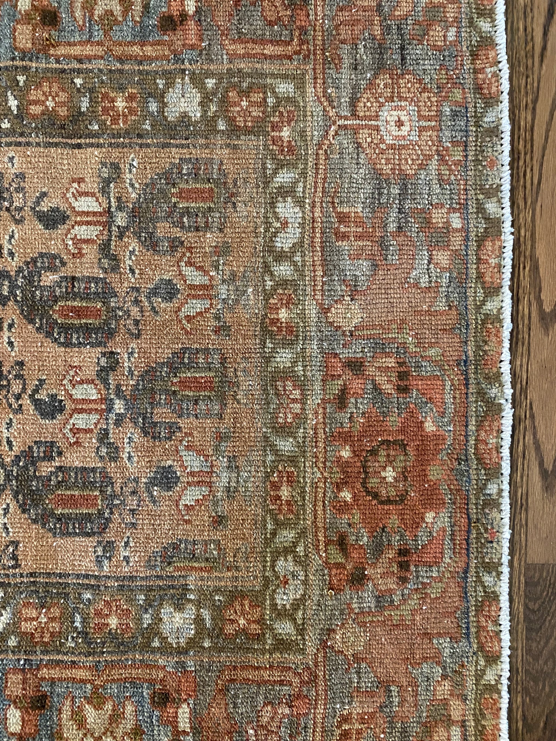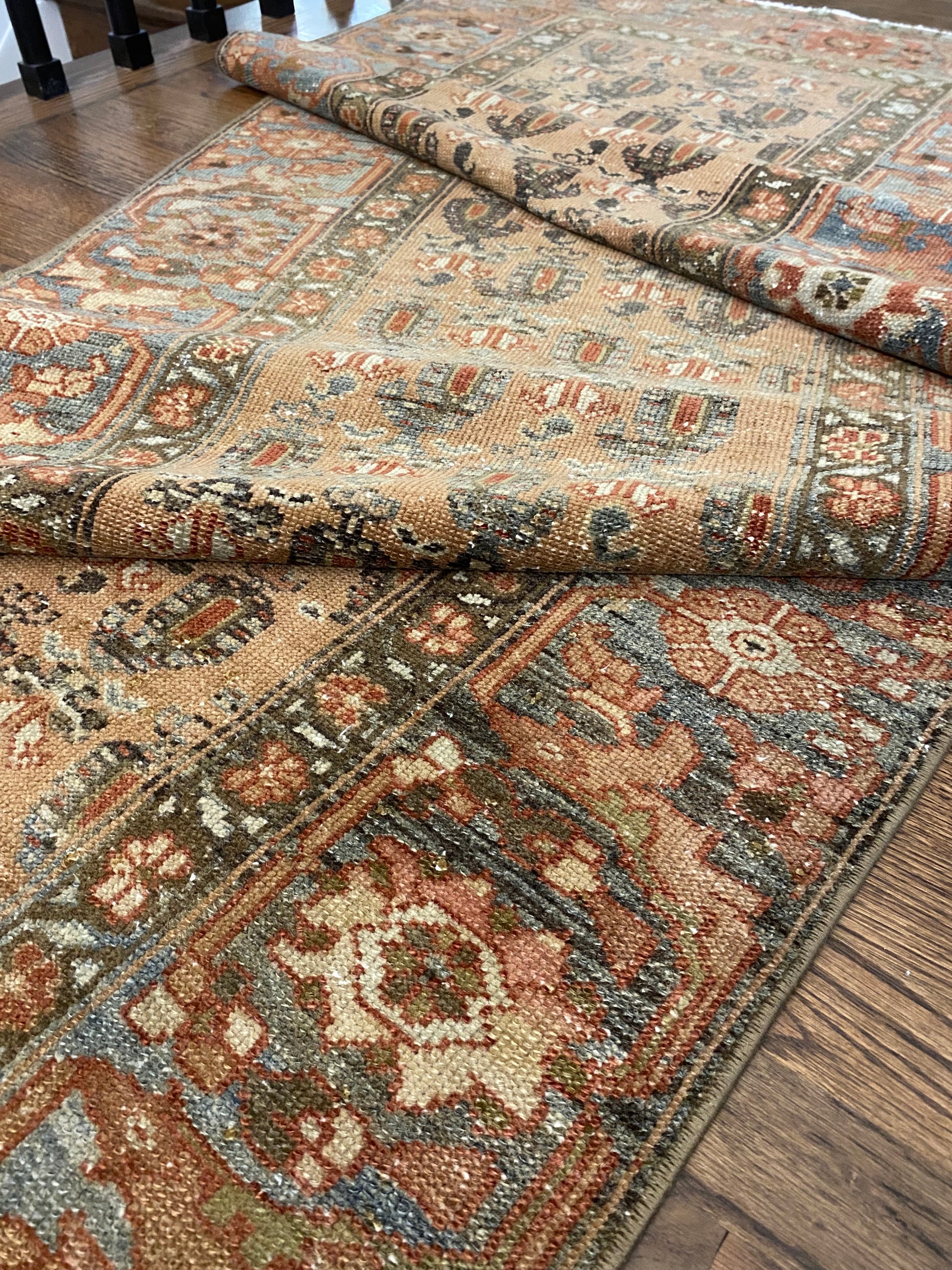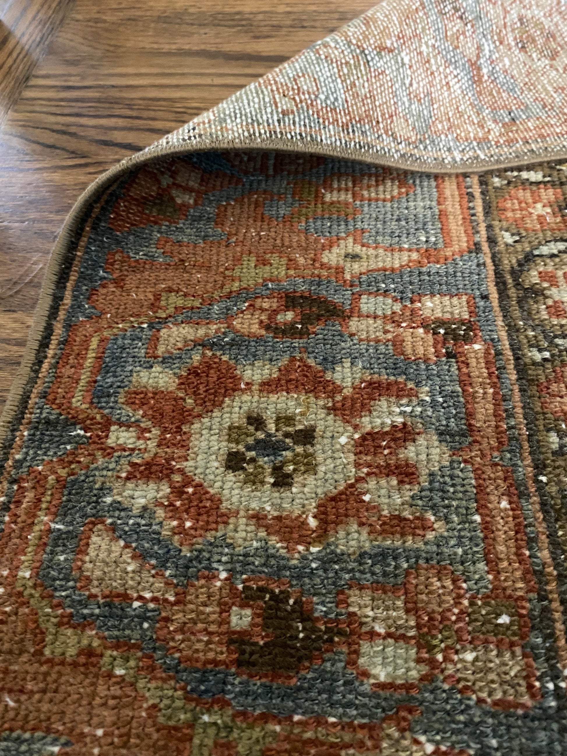 All of our rugs have been professionally cleaned prior to listing. We strive to deliver rugs that everyone loves, but please note that when you purchase from Two Sisters Rugs you are purchasing an item that is pre-owned and vintage by nature. Rugs might have areas of wear, minor repairs, or other unique characteristics, but we believe this is what makes them beautiful and one of a kind. Many rugs do not have perfect lines. All photographs are taken on an iPhone with no filter in natural light unless otherwise noted; colors may vary depending on the placement in your home. Colors may also vary depending on your phone or screen settings. If the area you are placing the rug has less natural light, the rug will appear darker in person. We aim to represent each rugs true colors and designs on the listing photos, but are happy to send additional photos upon request prior to purchase. High quality wool contains a substance called lanolin, which emits a metallic-y, but sweet and grassy scent. ALL SALES ARE FINAL.