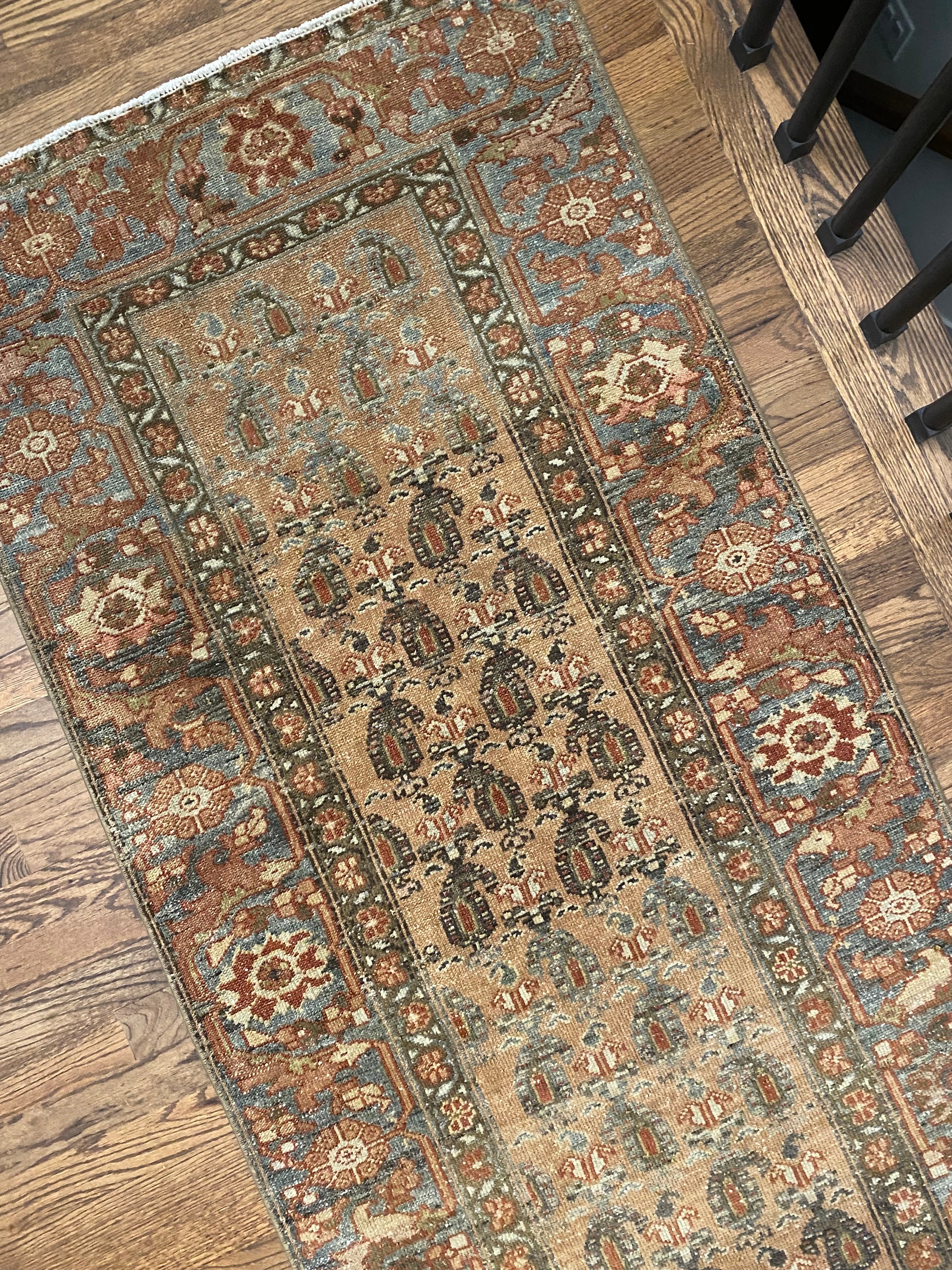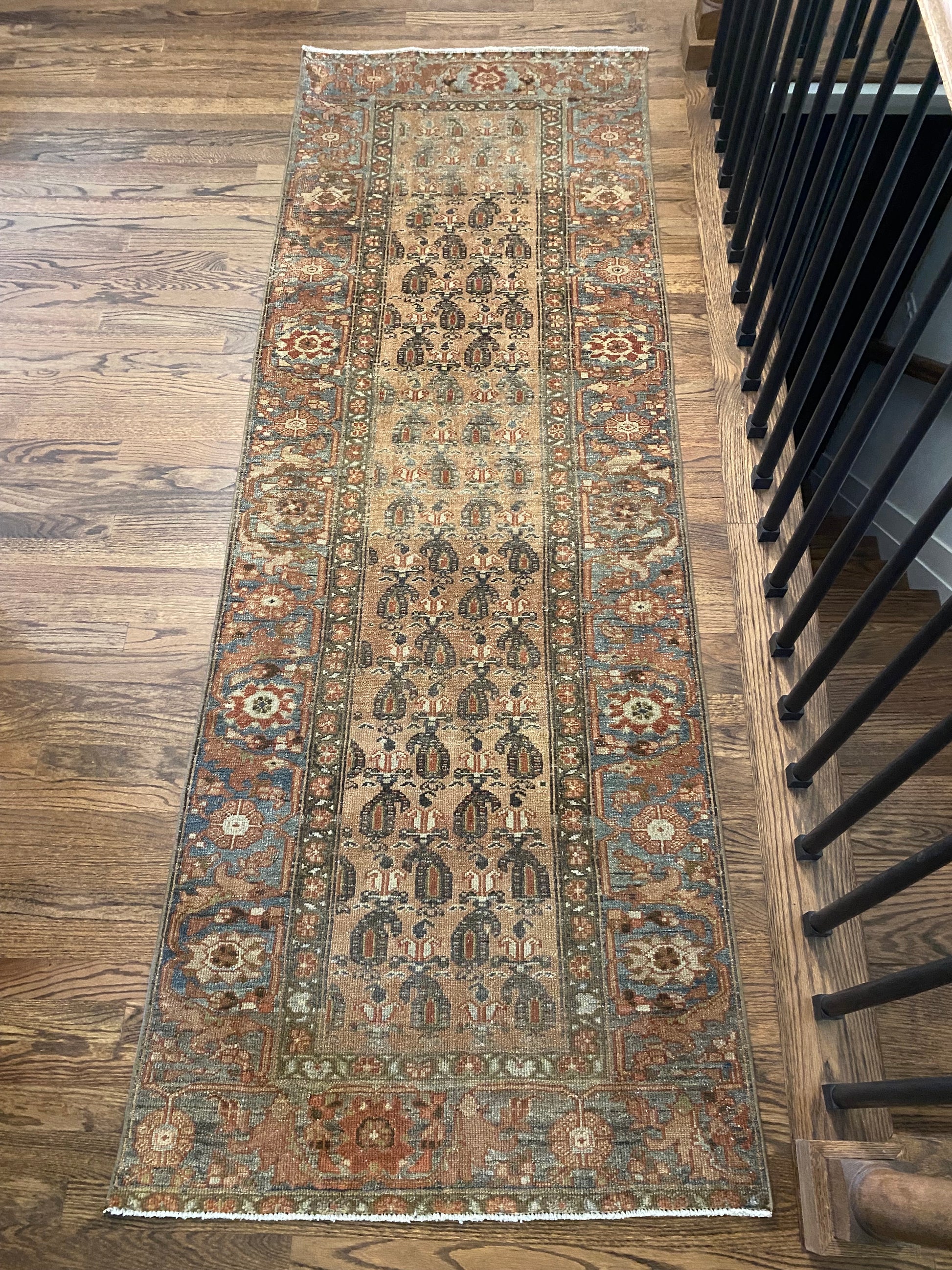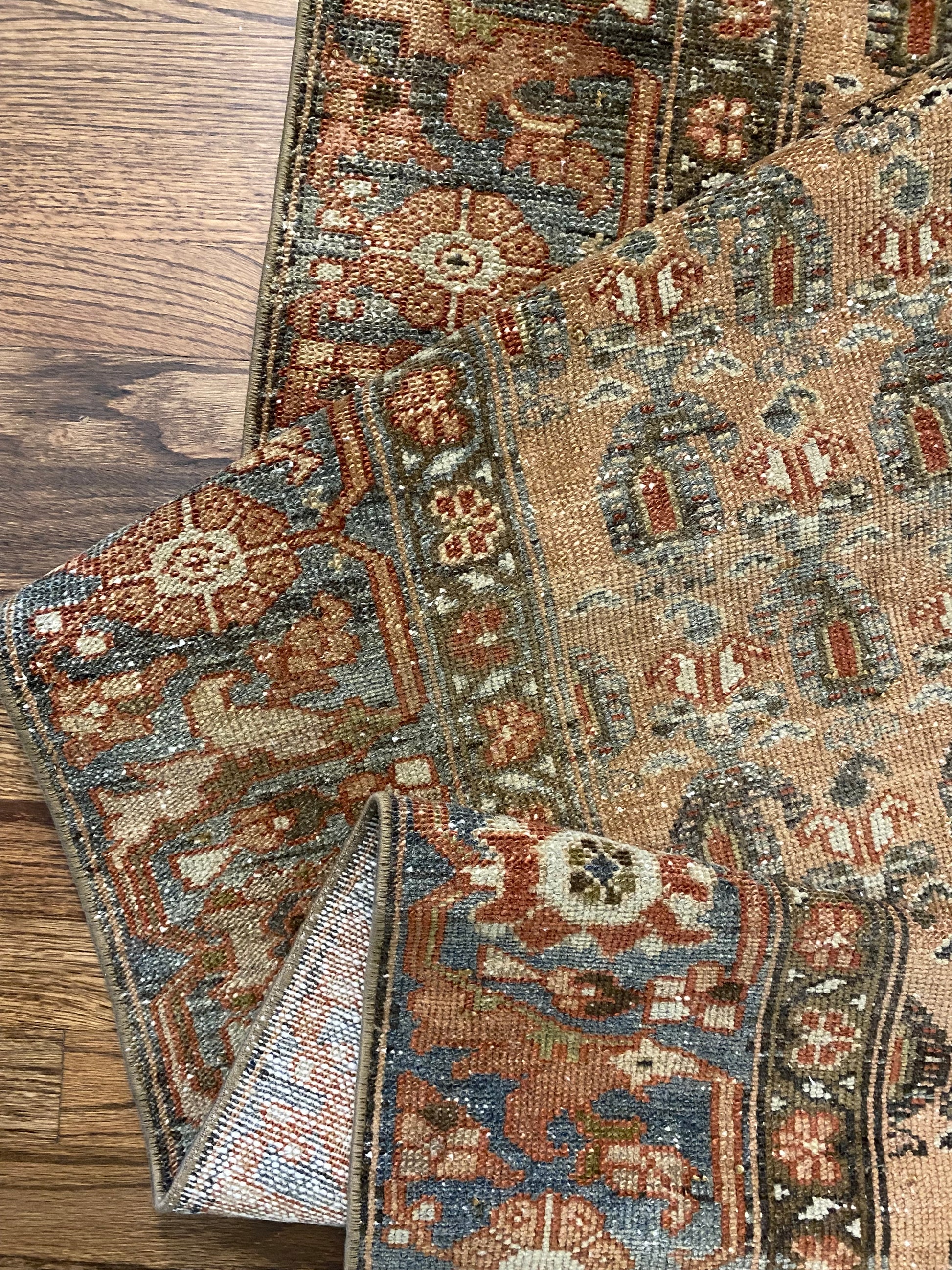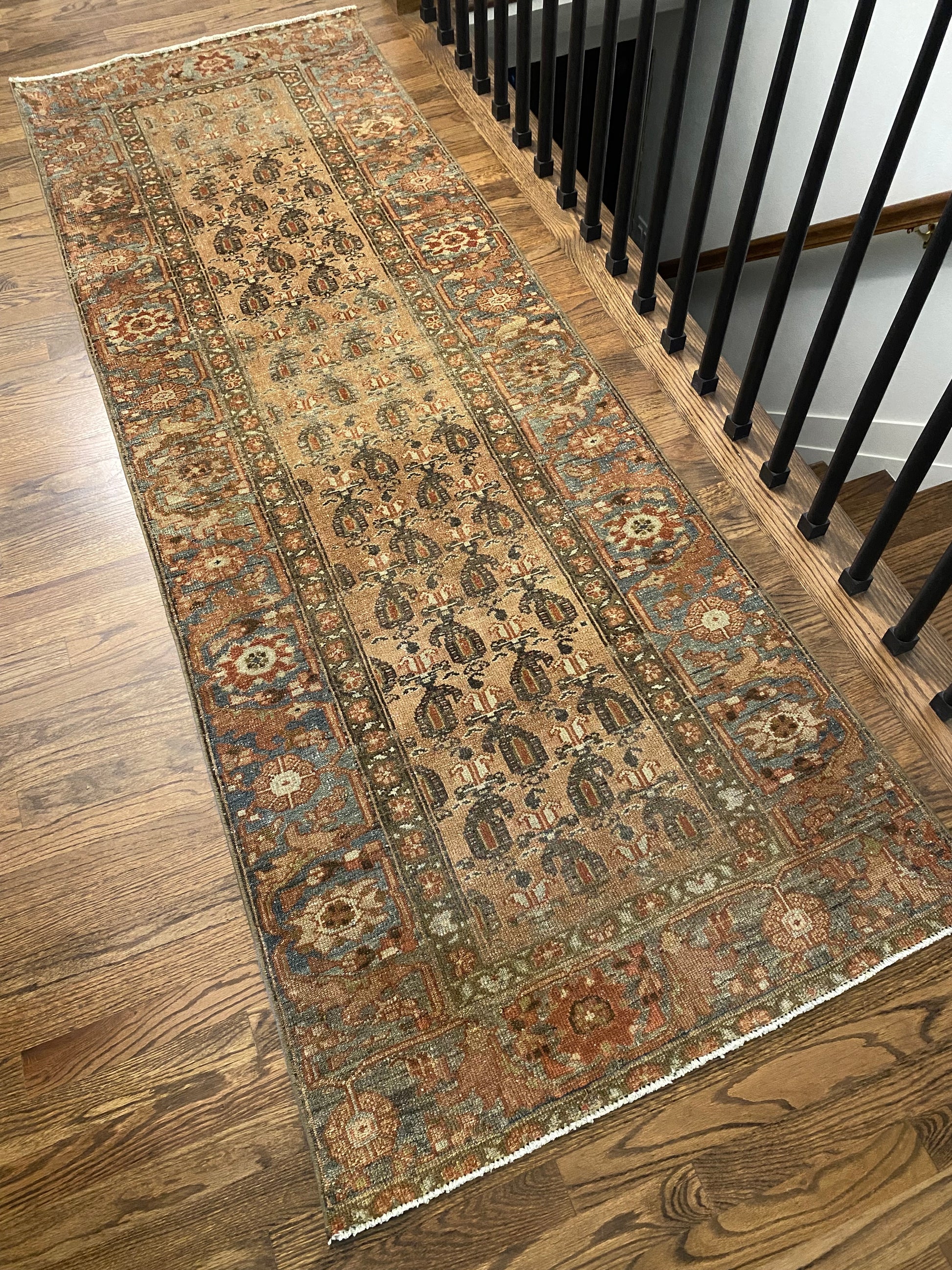 All of our rugs have been professionally cleaned prior to listing. We strive to deliver rugs that everyone loves, but please note that when you purchase from Two Sisters Rugs you are purchasing an item that is pre-owned and vintage by nature. Rugs might have areas of wear, minor repairs, or other unique characteristics, but we believe this is what makes them beautiful and one of a kind. Many rugs do not have perfect lines. All photographs are taken on an iPhone with no filter in natural light unless otherwise noted; colors may vary depending on the placement in your home. Colors may also vary depending on your phone or screen settings. If the area you are placing the rug has less natural light, the rug will appear darker in person. We aim to represent each rugs true colors and designs on the listing photos, but are happy to send additional photos upon request prior to purchase. High quality wool contains a substance called lanolin, which emits a metallic-y, but sweet and grassy scent. ALL SALES ARE FINAL.