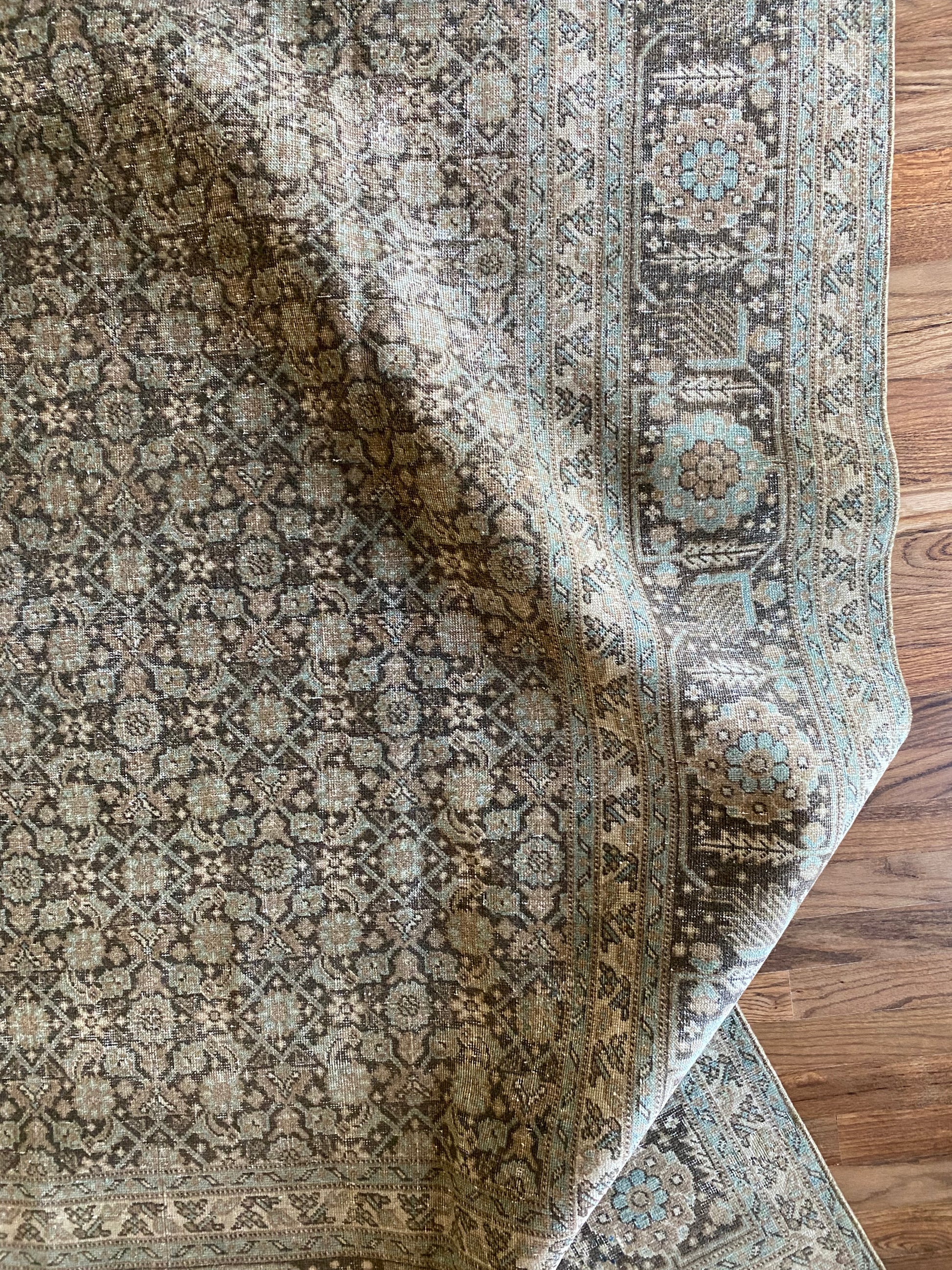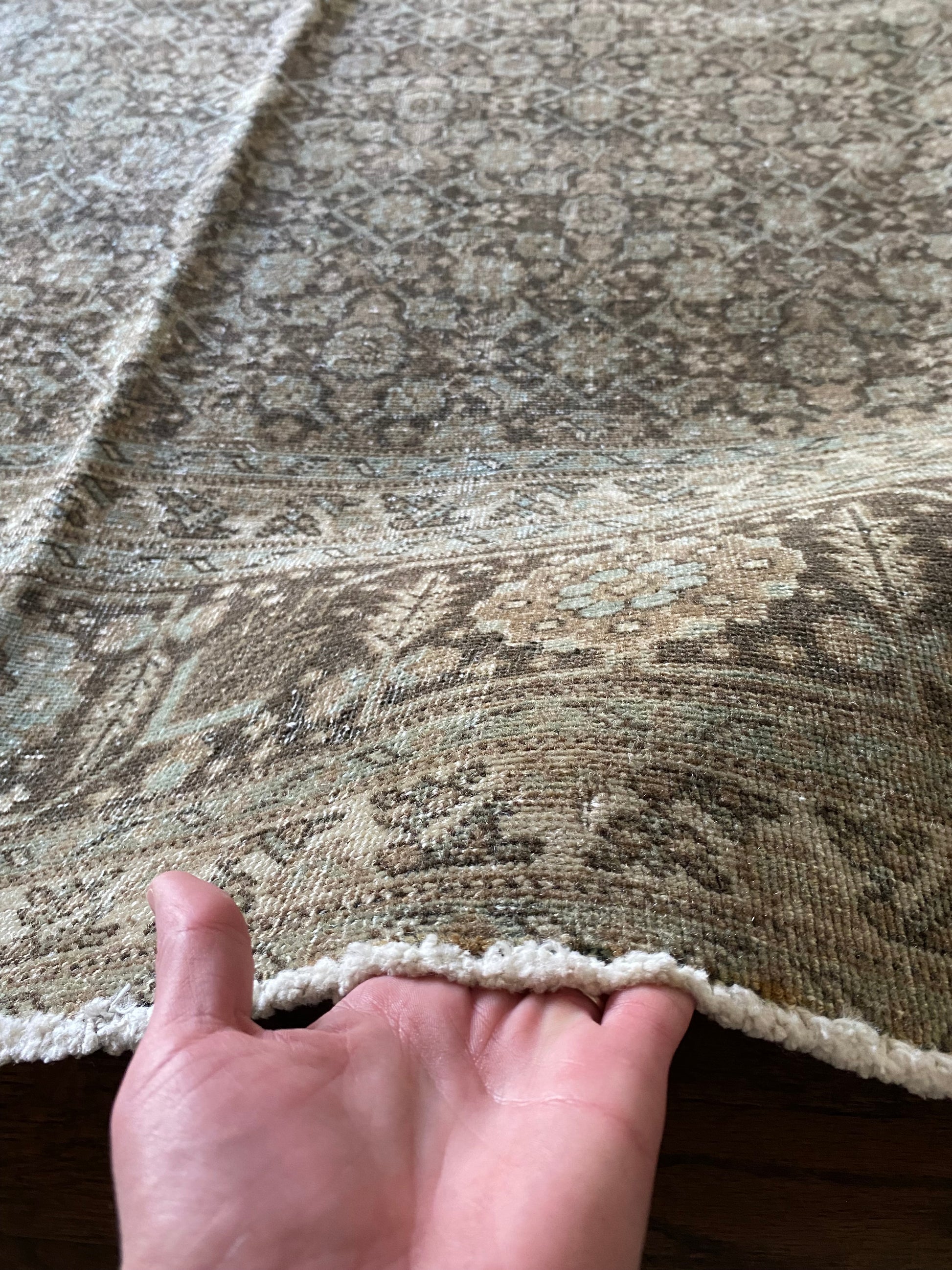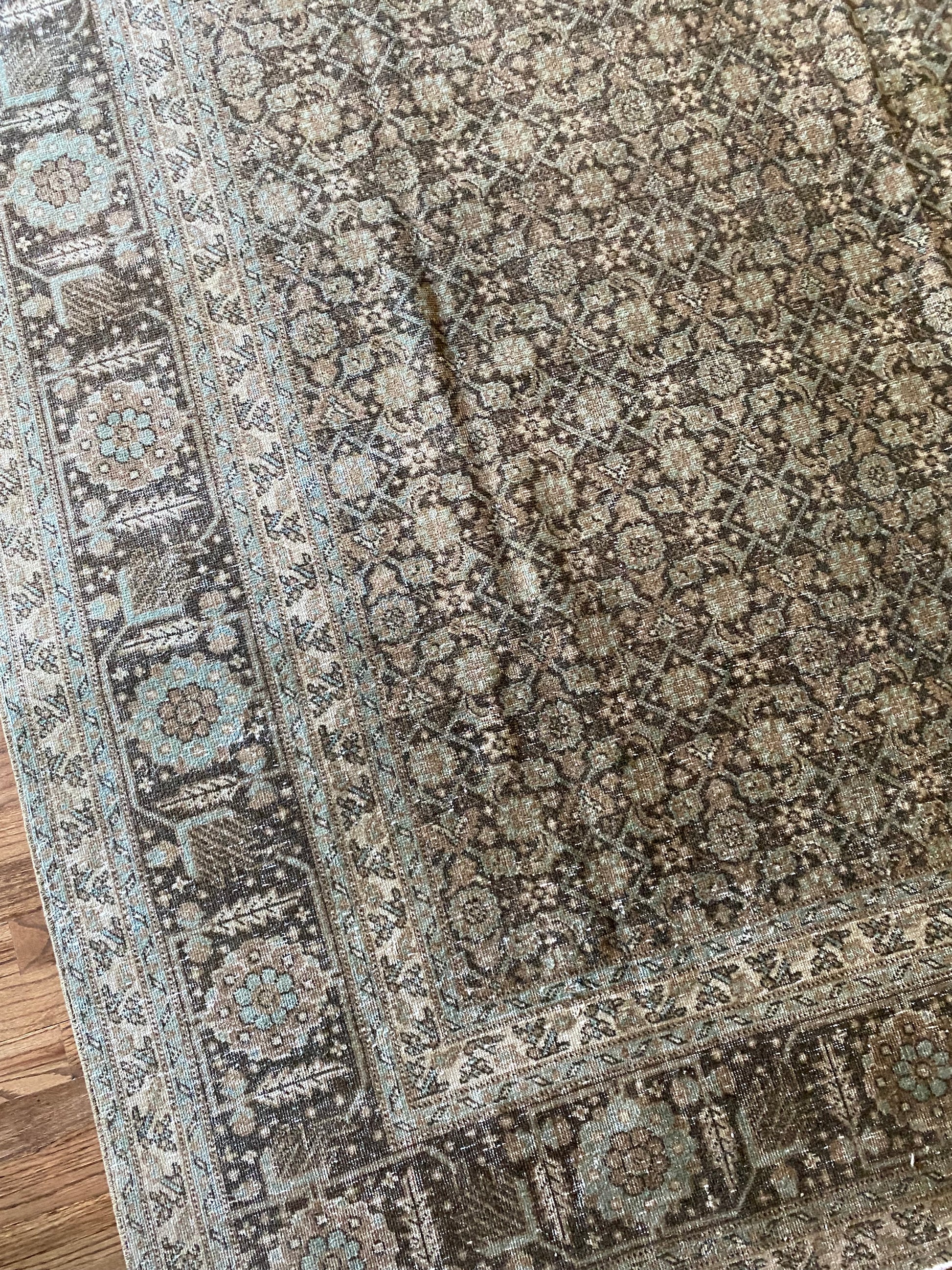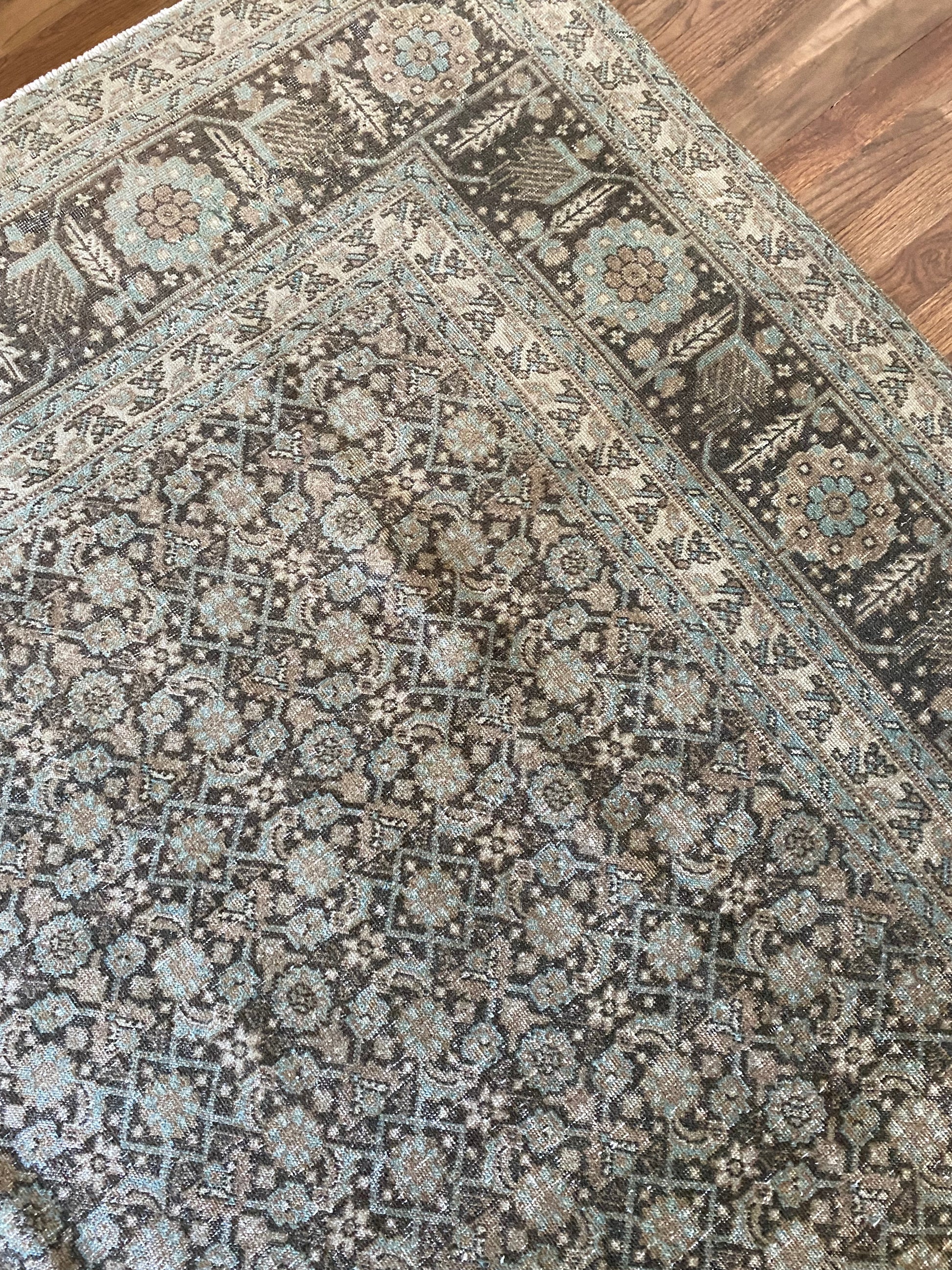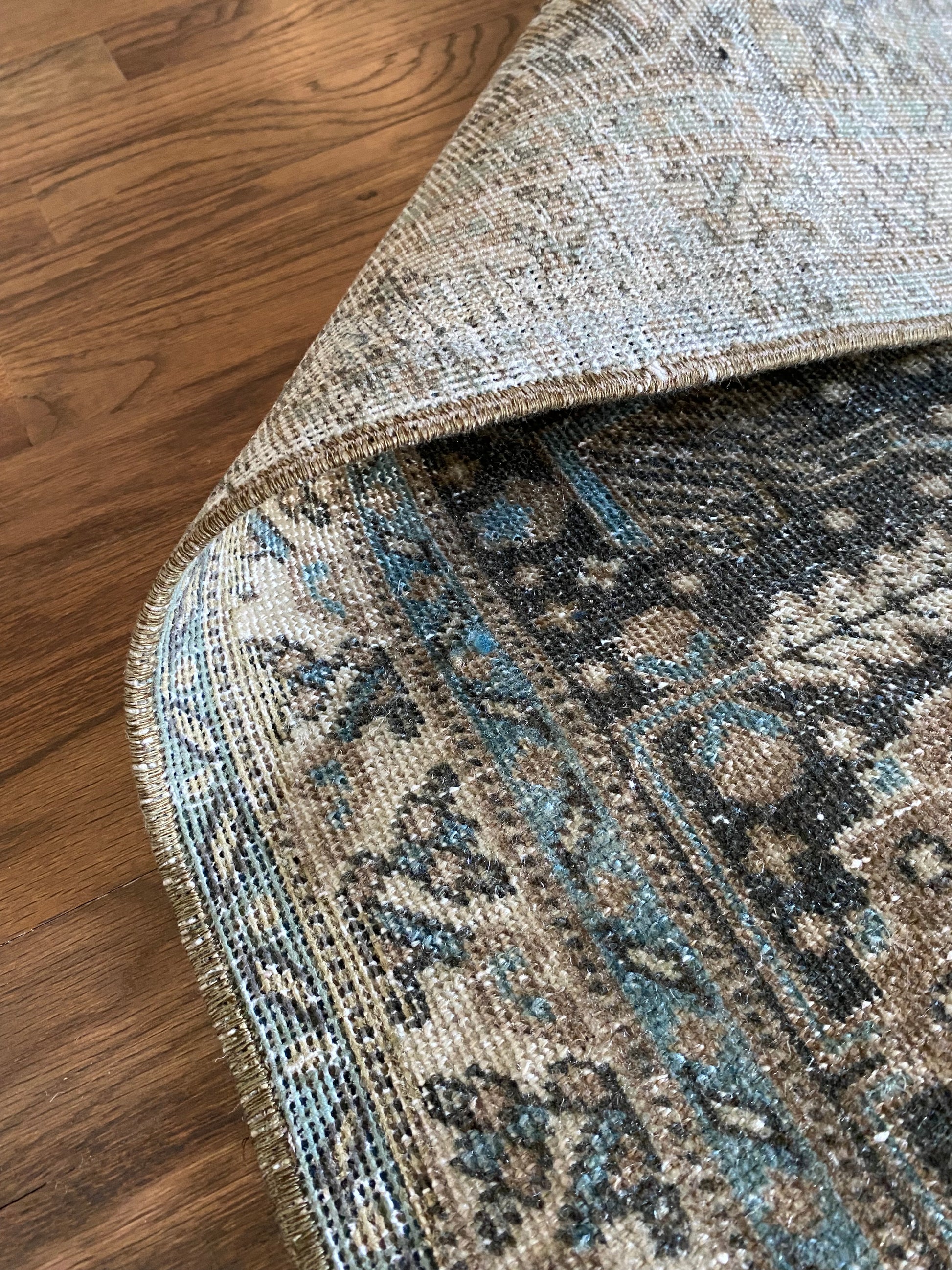 All of our rugs have been professionally cleaned prior to listing. We strive to deliver rugs that everyone loves, but please note that when you purchase from Two Sisters Rugs you are purchasing an item that is pre-owned and vintage by nature. Rugs might have areas of wear, minor repairs, or other unique characteristics, but we believe this is what makes them beautiful and one of a kind. Many rugs do not have perfect lines. All photographs are taken on an iPhone with no filter in natural light unless otherwise noted; colors may vary depending on the placement in your home. Colors may also vary depending on your phone or screen settings. If the area you are placing the rug has less natural light, the rug will appear darker in person. We aim to represent each rugs true colors and designs on the listing photos, but are happy to send additional photos upon request prior to purchase. High quality wool contains a substance called lanolin, which emits a metallic-y, but sweet and grassy scent. ALL SALES ARE FINAL.