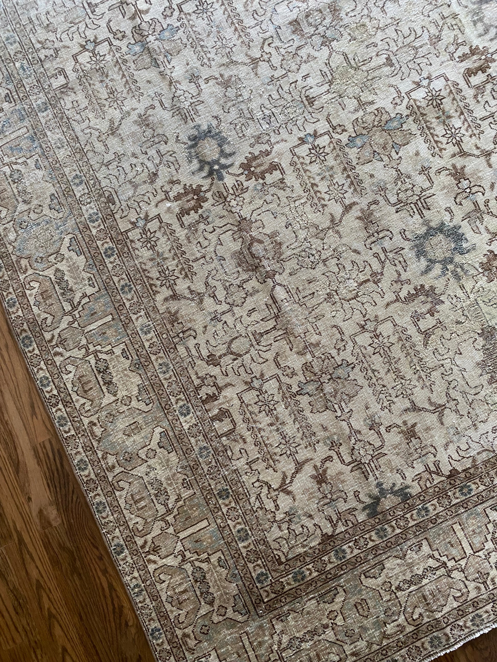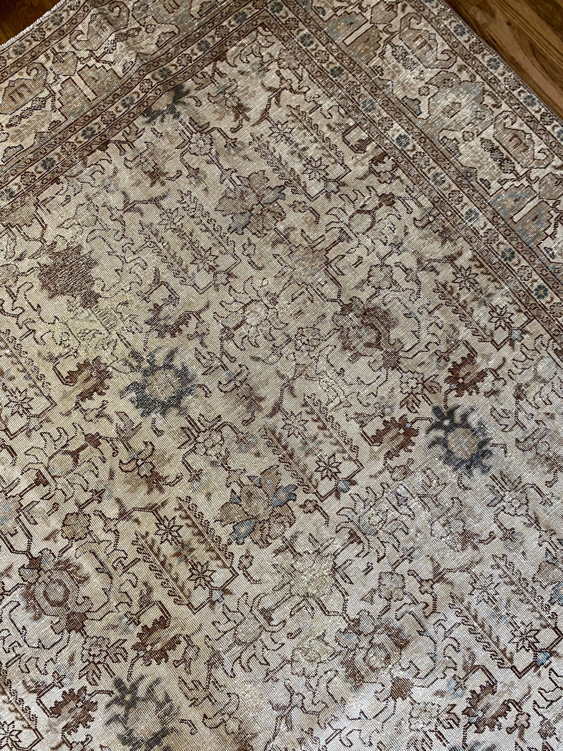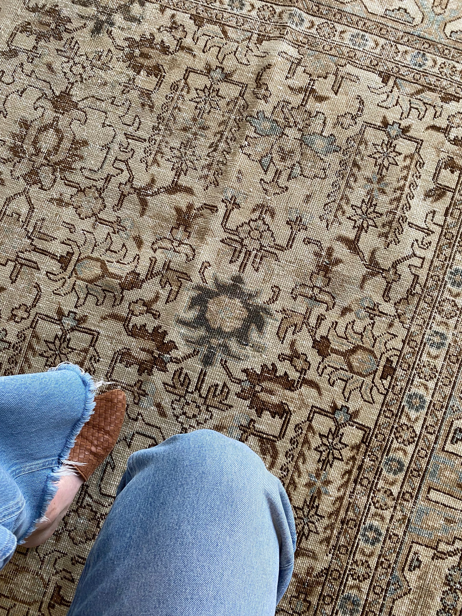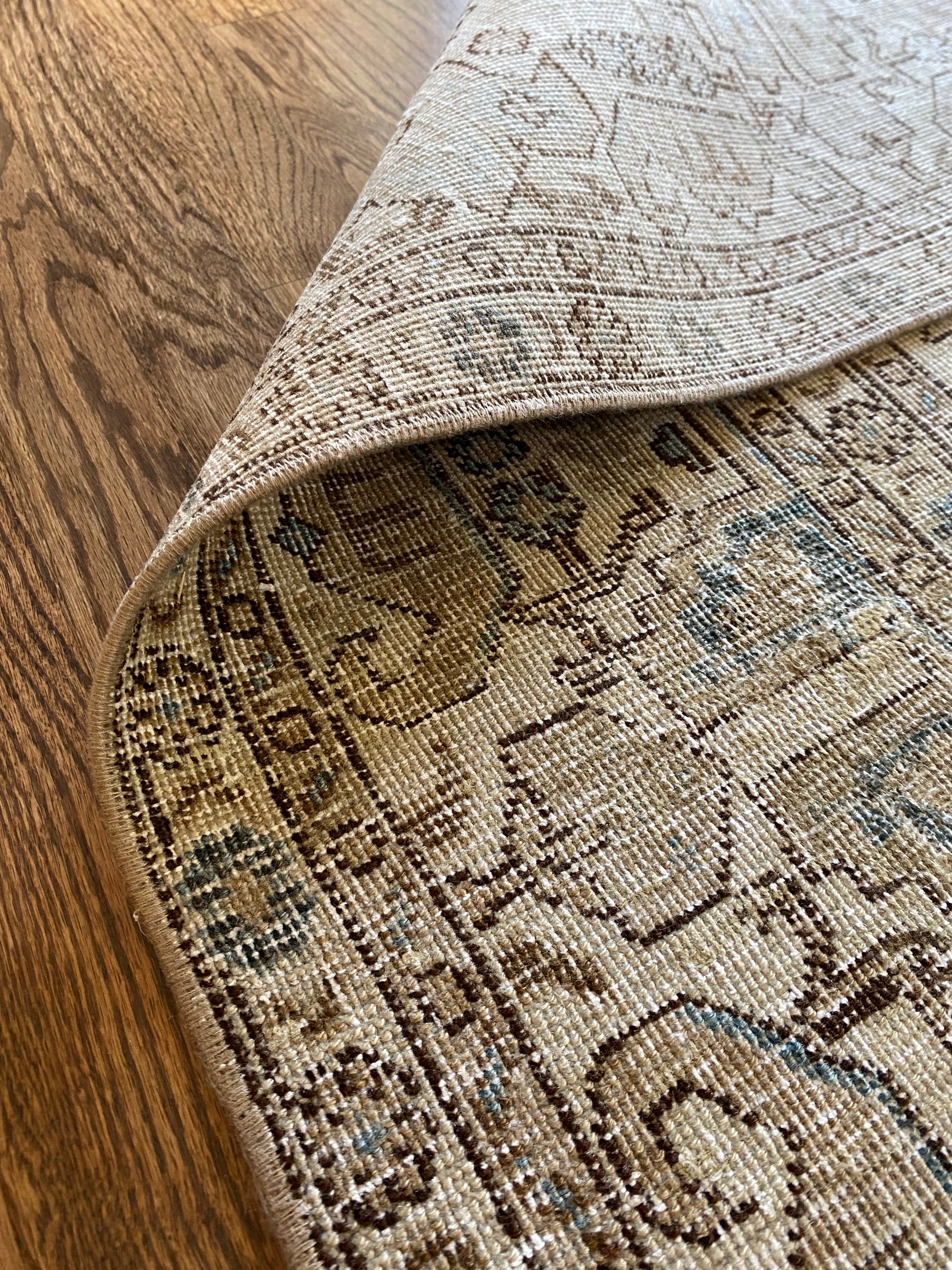 All of our rugs have been professionally cleaned prior to listing. We strive to deliver rugs that everyone loves, but please note that when you purchase from Two Sisters Rugs you are purchasing an item that is pre-owned and vintage by nature. Rugs might have areas of wear, minor repairs, or other unique characteristics, but we believe this is what makes them beautiful and one of a kind. Many rugs do not have perfect lines. All photographs are taken on an iPhone with no filter in natural light unless otherwise noted; colors may vary depending on the placement in your home. Colors may also vary depending on your phone or screen settings. If the area you are placing the rug has less natural light, the rug will appear darker in person. We aim to represent each rugs true colors and designs on the listing photos, but are happy to send additional photos upon request prior to purchase. High quality wool contains a substance called lanolin, which emits a metallic-y, but sweet and grassy scent. ALL SALES ARE FINAL.