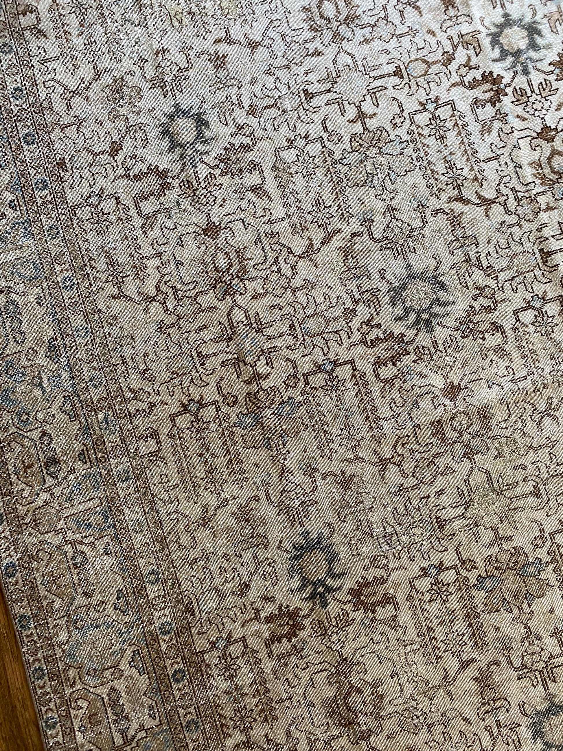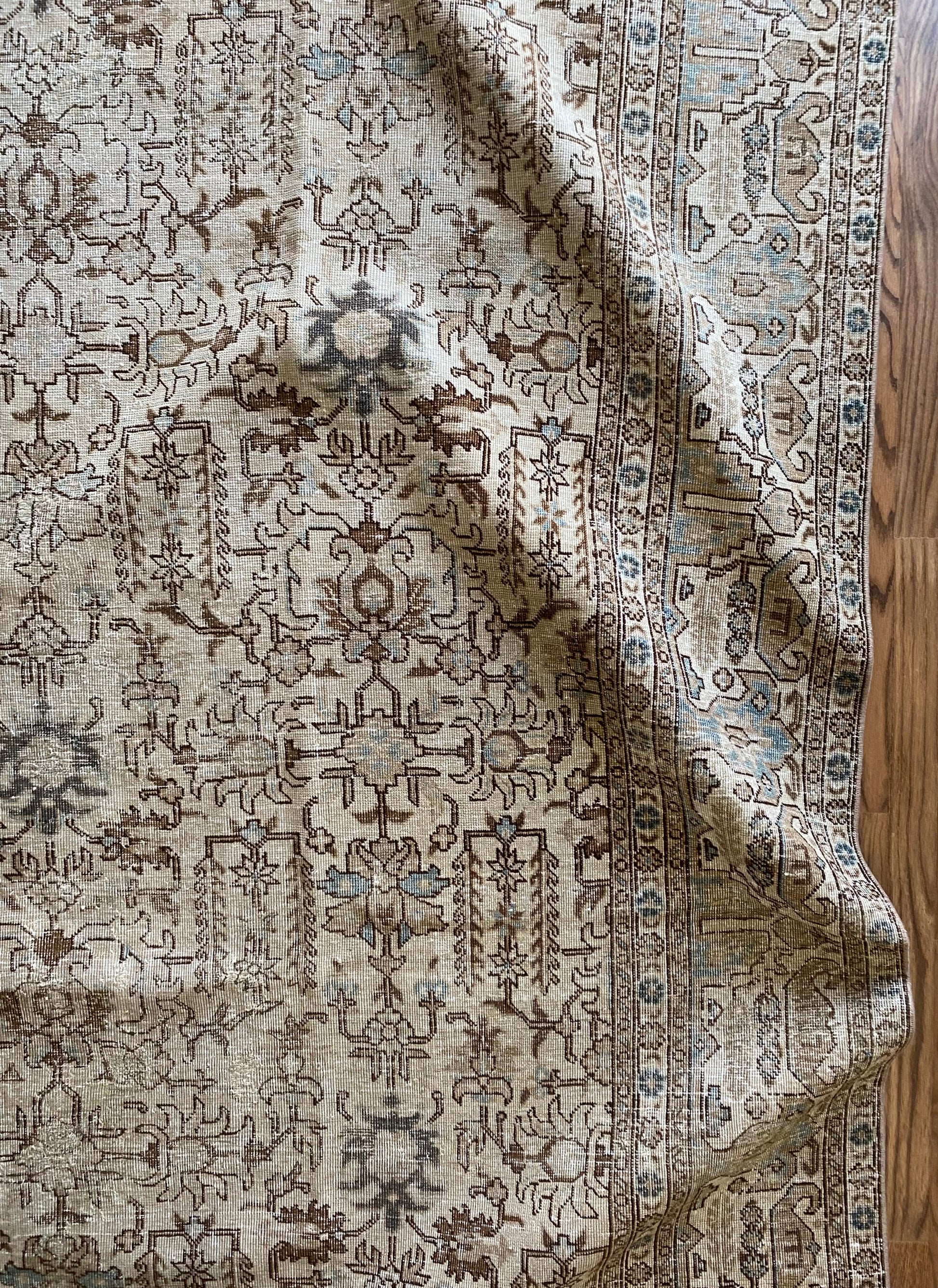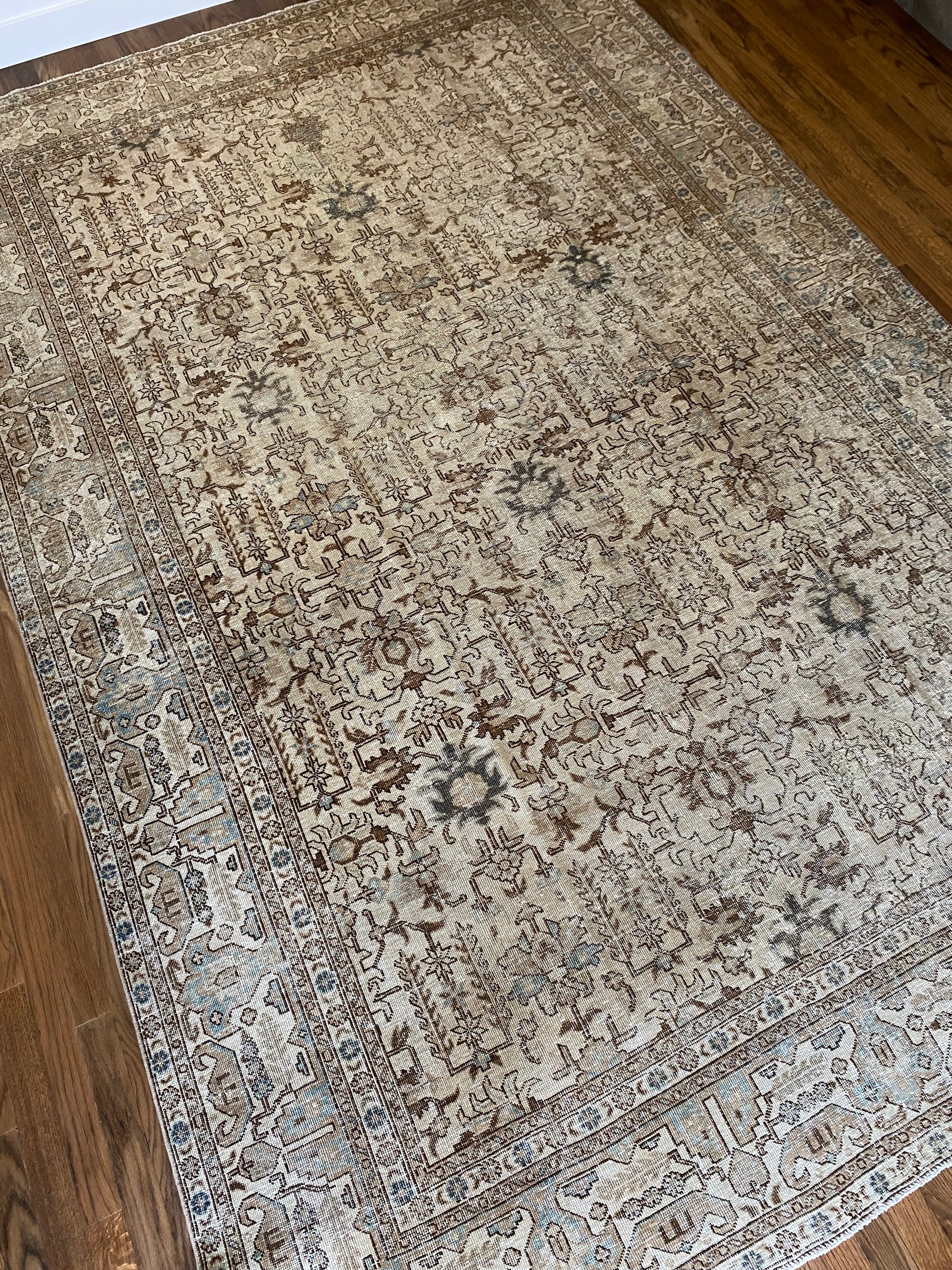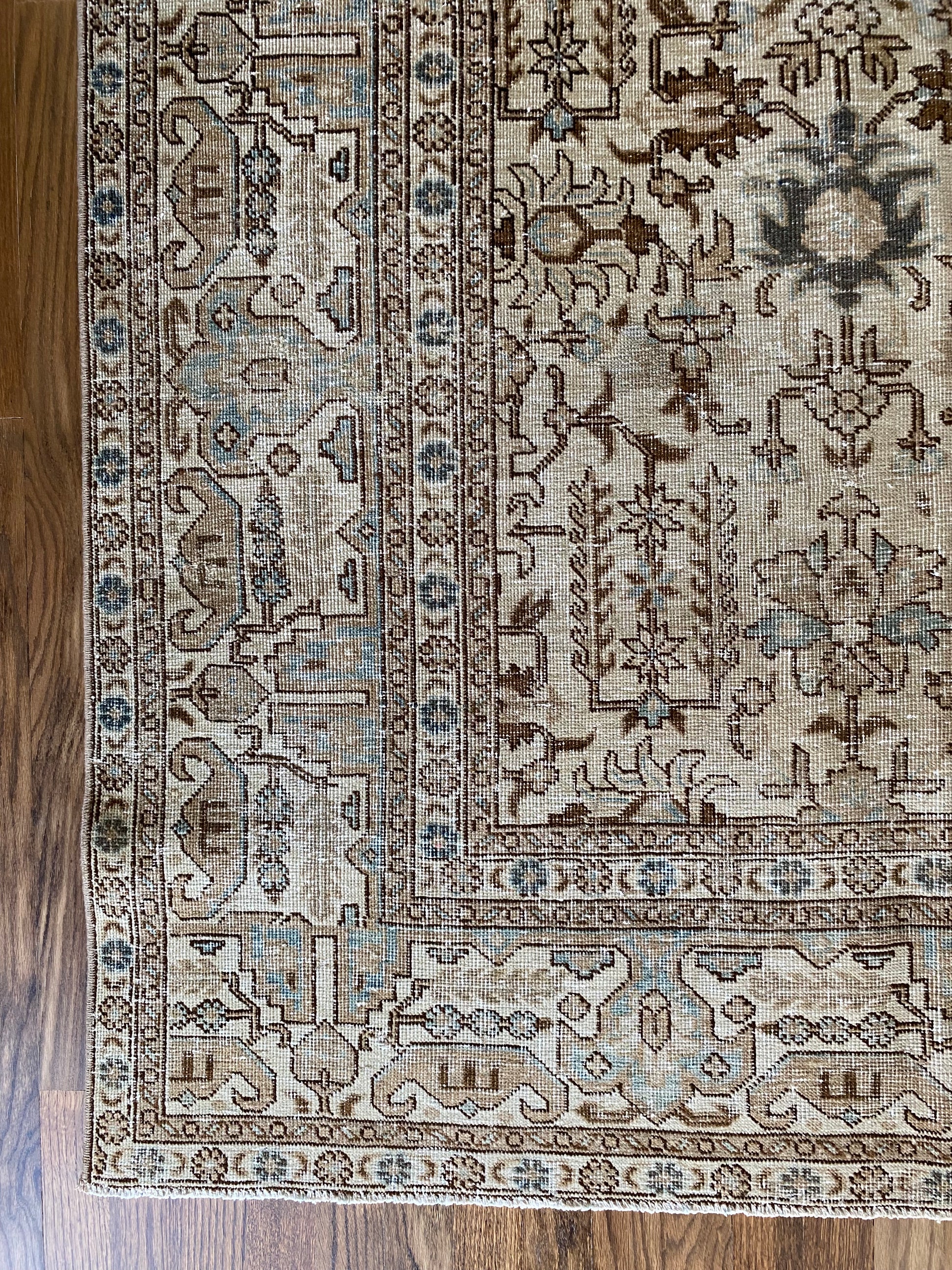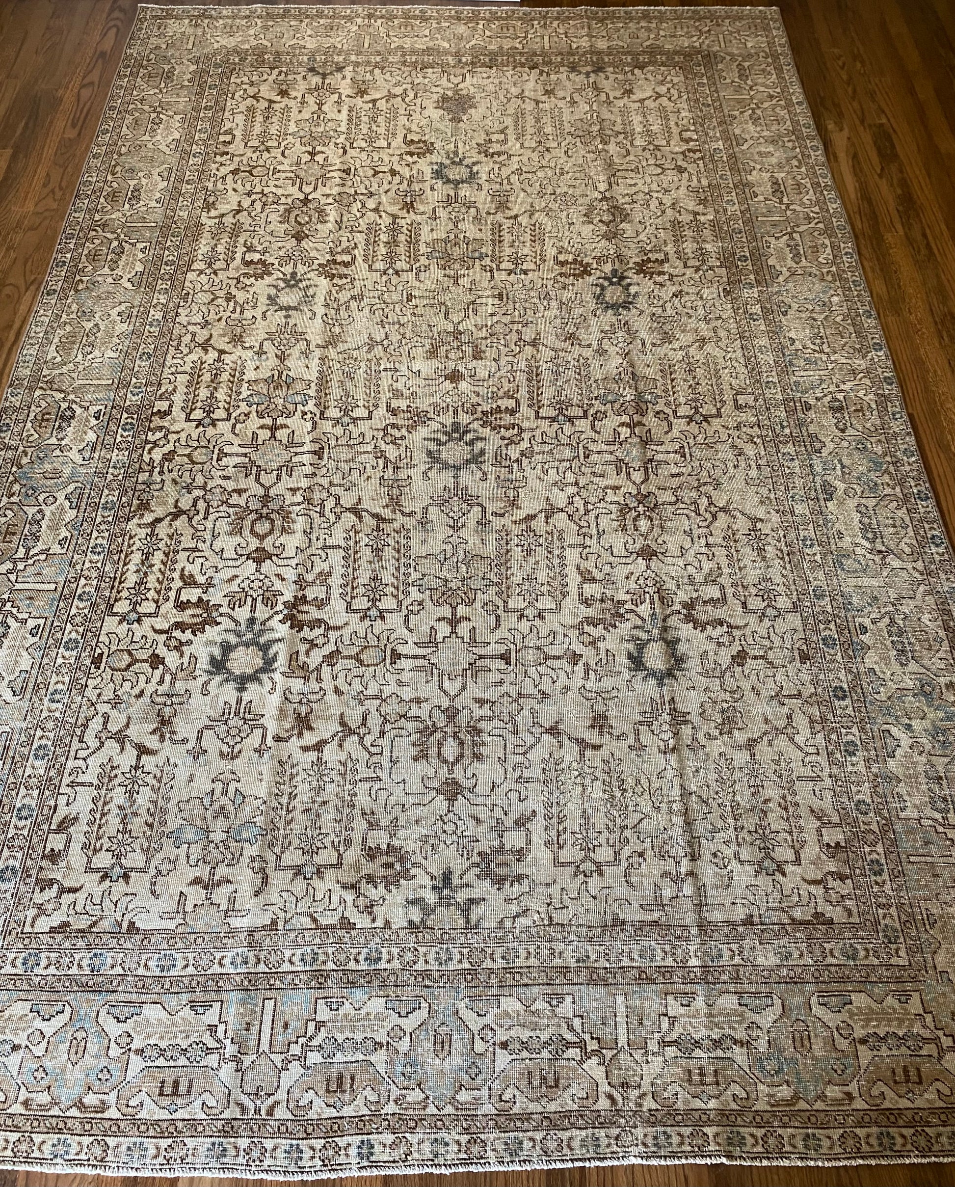 All of our rugs have been professionally cleaned prior to listing. We strive to deliver rugs that everyone loves, but please note that when you purchase from Two Sisters Rugs you are purchasing an item that is pre-owned and vintage by nature. Rugs might have areas of wear, minor repairs, or other unique characteristics, but we believe this is what makes them beautiful and one of a kind. Many rugs do not have perfect lines. All photographs are taken on an iPhone with no filter in natural light unless otherwise noted; colors may vary depending on the placement in your home. Colors may also vary depending on your phone or screen settings. If the area you are placing the rug has less natural light, the rug will appear darker in person. We aim to represent each rugs true colors and designs on the listing photos, but are happy to send additional photos upon request prior to purchase. High quality wool contains a substance called lanolin, which emits a metallic-y, but sweet and grassy scent. ALL SALES ARE FINAL.