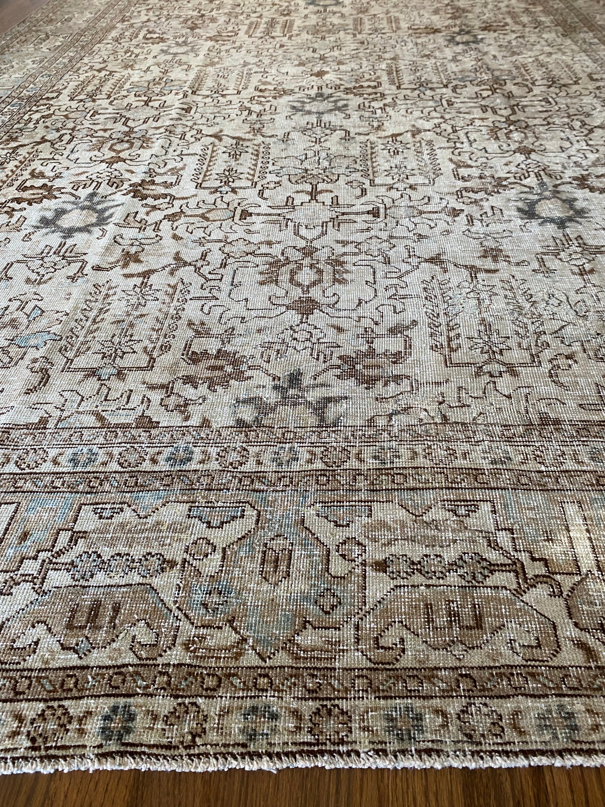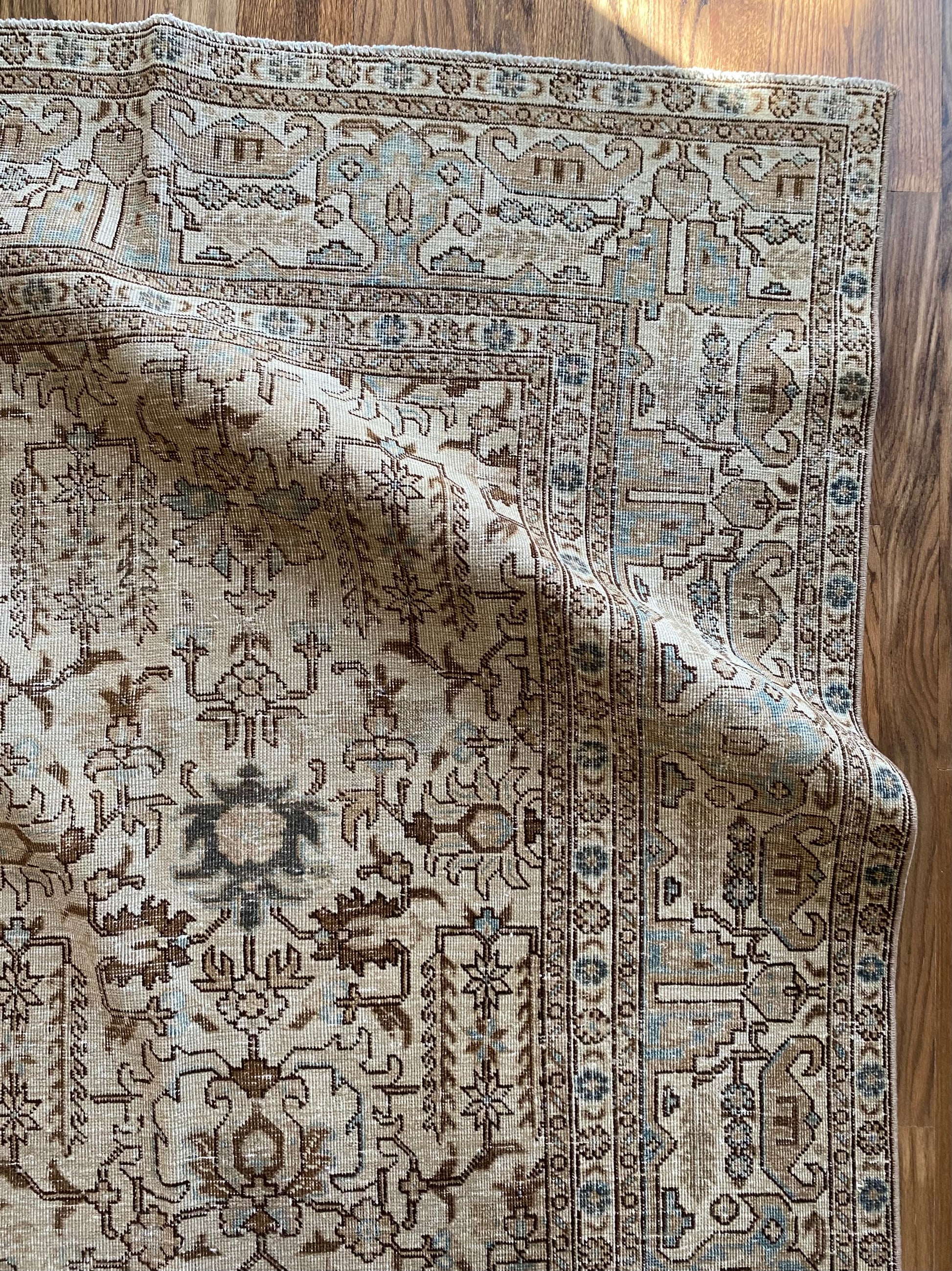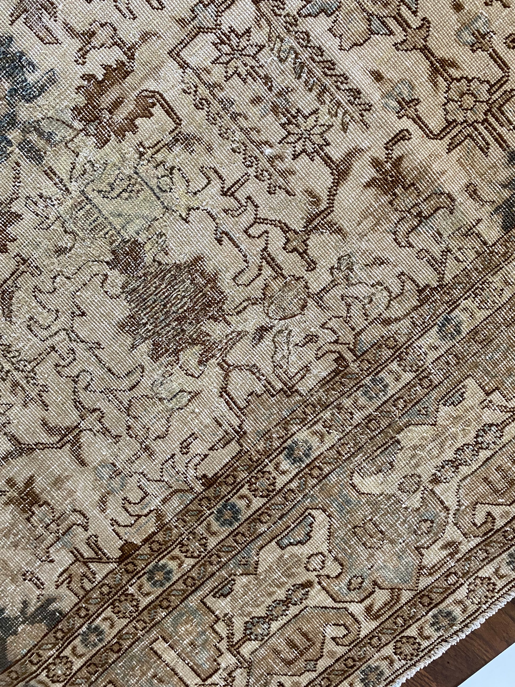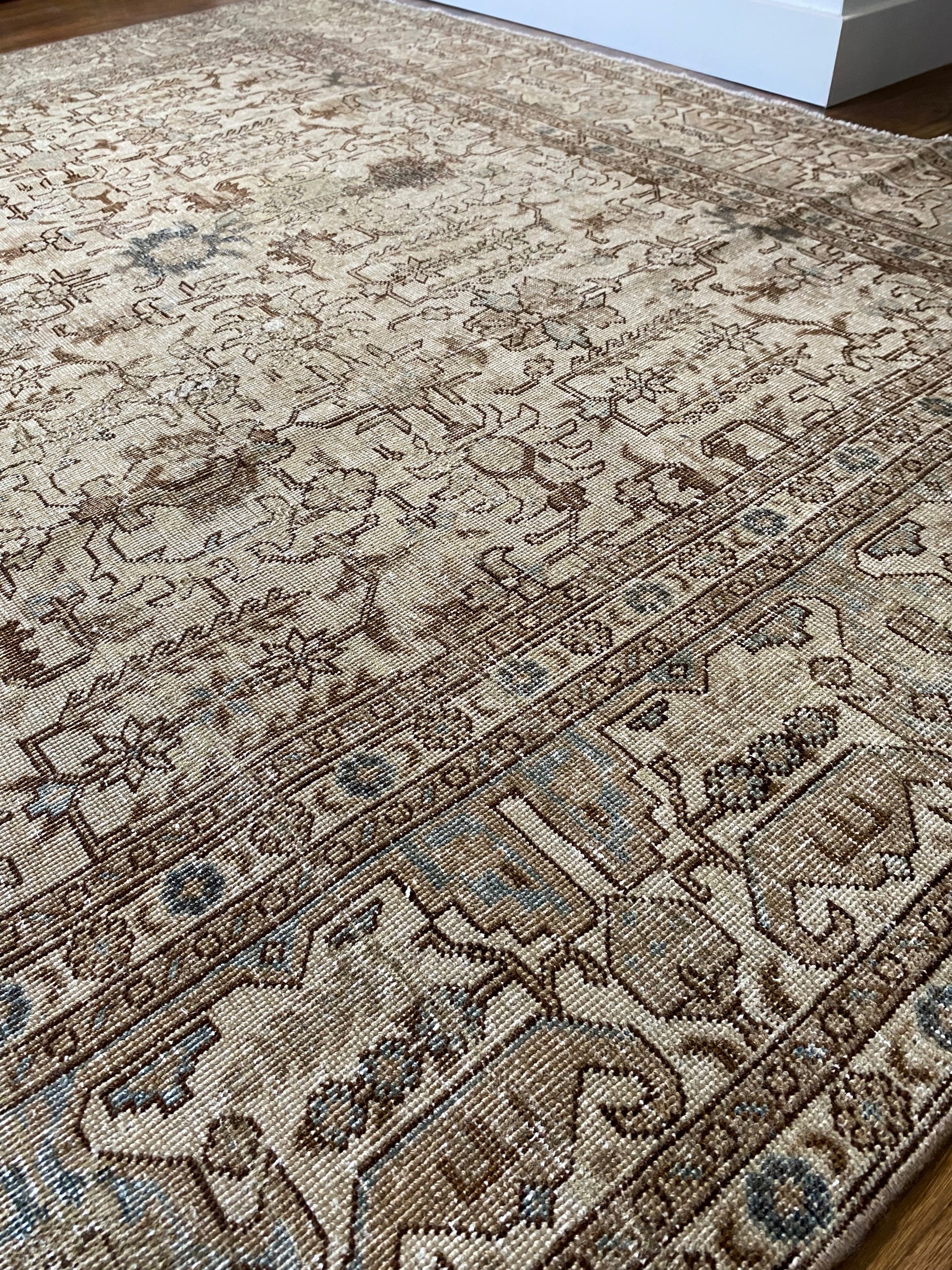 All of our rugs have been professionally cleaned prior to listing. We strive to deliver rugs that everyone loves, but please note that when you purchase from Two Sisters Rugs you are purchasing an item that is pre-owned and vintage by nature. Rugs might have areas of wear, minor repairs, or other unique characteristics, but we believe this is what makes them beautiful and one of a kind. Many rugs do not have perfect lines. All photographs are taken on an iPhone with no filter in natural light unless otherwise noted; colors may vary depending on the placement in your home. Colors may also vary depending on your phone or screen settings. If the area you are placing the rug has less natural light, the rug will appear darker in person. We aim to represent each rugs true colors and designs on the listing photos, but are happy to send additional photos upon request prior to purchase. High quality wool contains a substance called lanolin, which emits a metallic-y, but sweet and grassy scent. ALL SALES ARE FINAL.