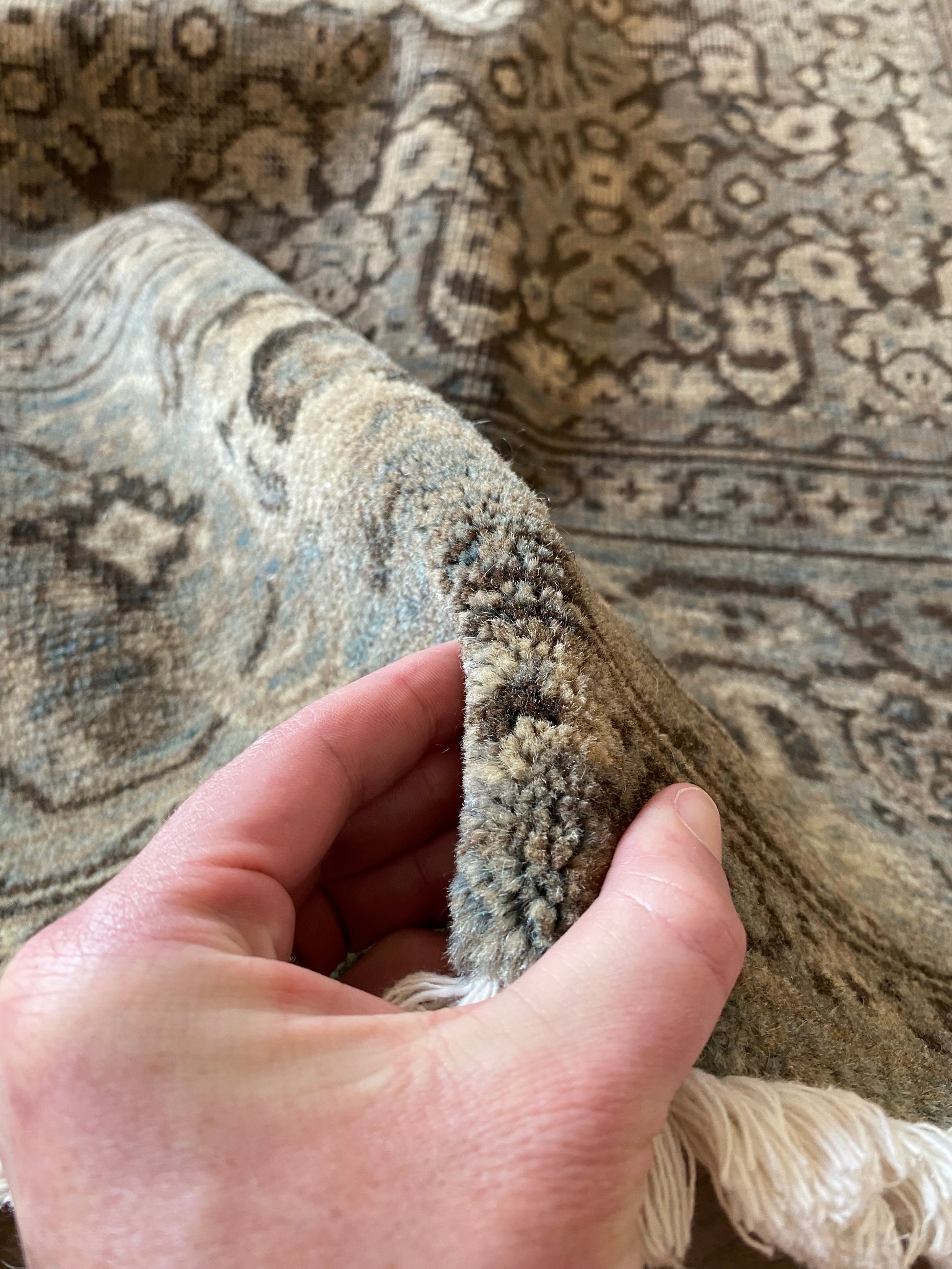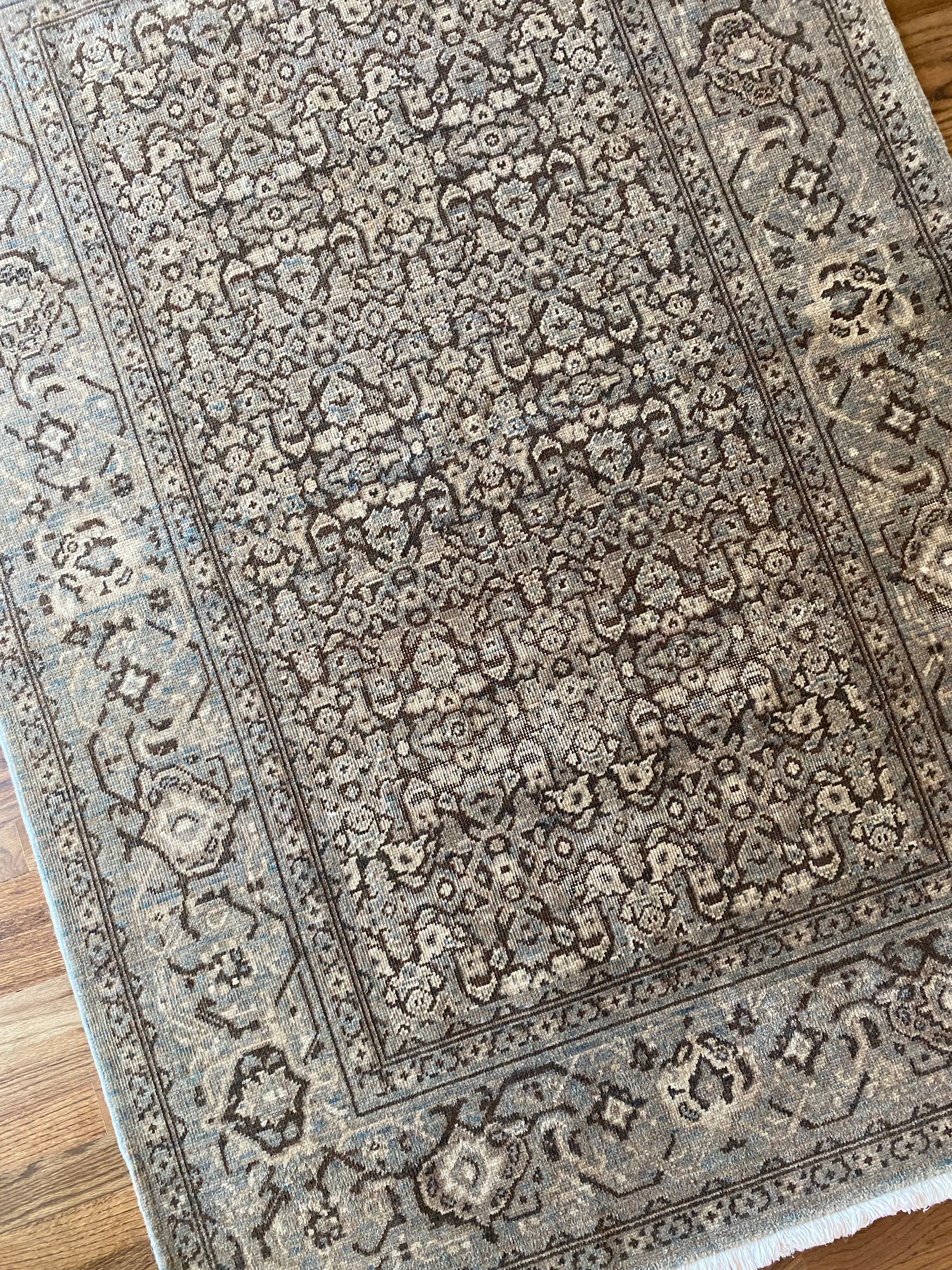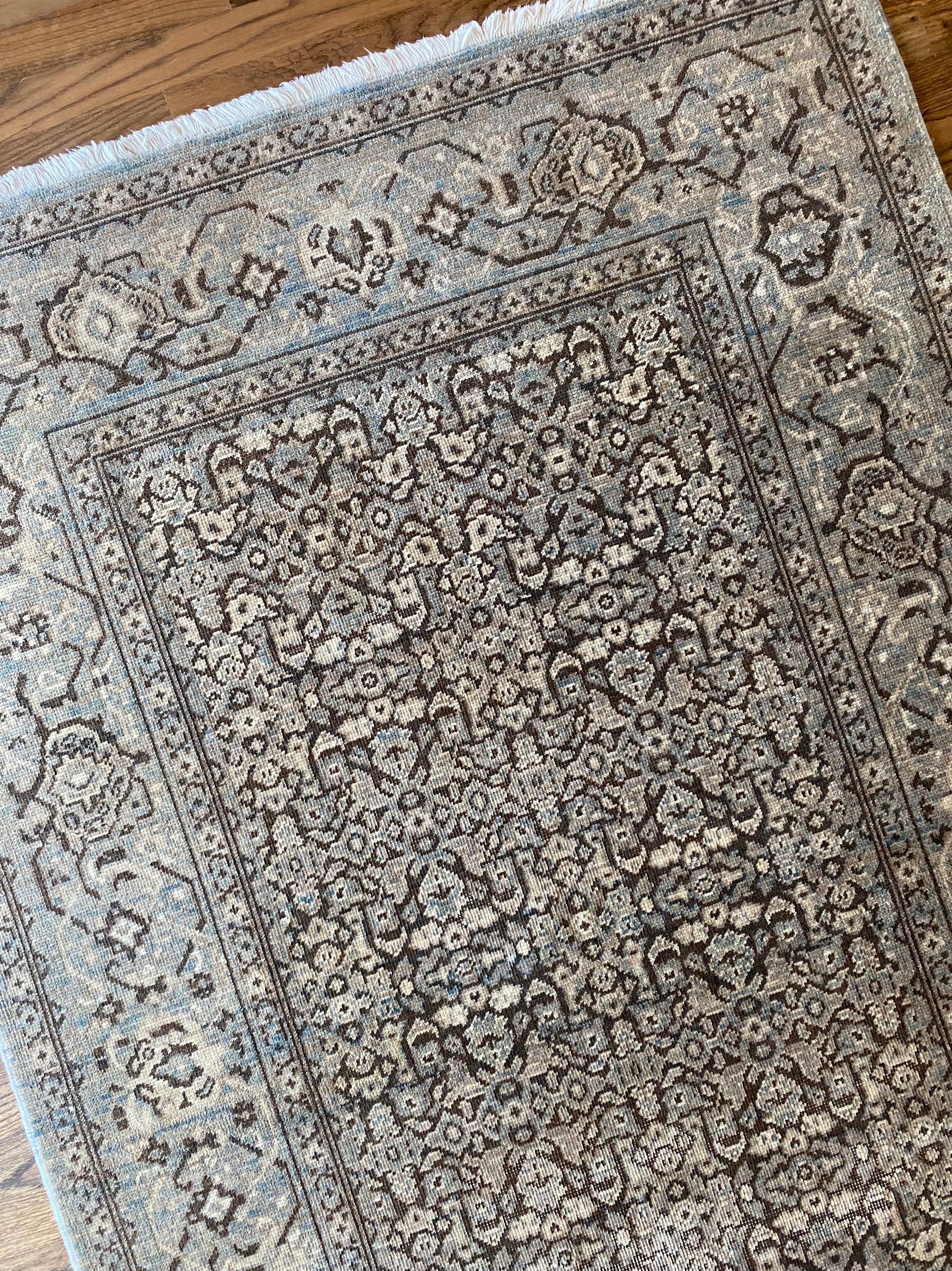 All of our rugs have been professionally cleaned prior to listing. We strive to deliver rugs that everyone loves, but please note that when you purchase from Two Sisters Rugs you are purchasing an item that is pre-owned and vintage by nature. Rugs might have areas of wear, minor repairs, or other unique characteristics, but we believe this is what makes them beautiful and one of a kind. Many rugs do not have perfect lines. All photographs are taken on an iPhone with no filter in natural light unless otherwise noted; colors may vary depending on the placement in your home. Colors may also vary depending on your phone or screen settings. If the area you are placing the rug has less natural light, the rug will appear darker in person. We aim to represent each rugs true colors and designs on the listing photos, but are happy to send additional photos upon request prior to purchase. High quality wool contains a substance called lanolin, which emits a metallic-y, but sweet and grassy scent. ALL SALES ARE FINAL.