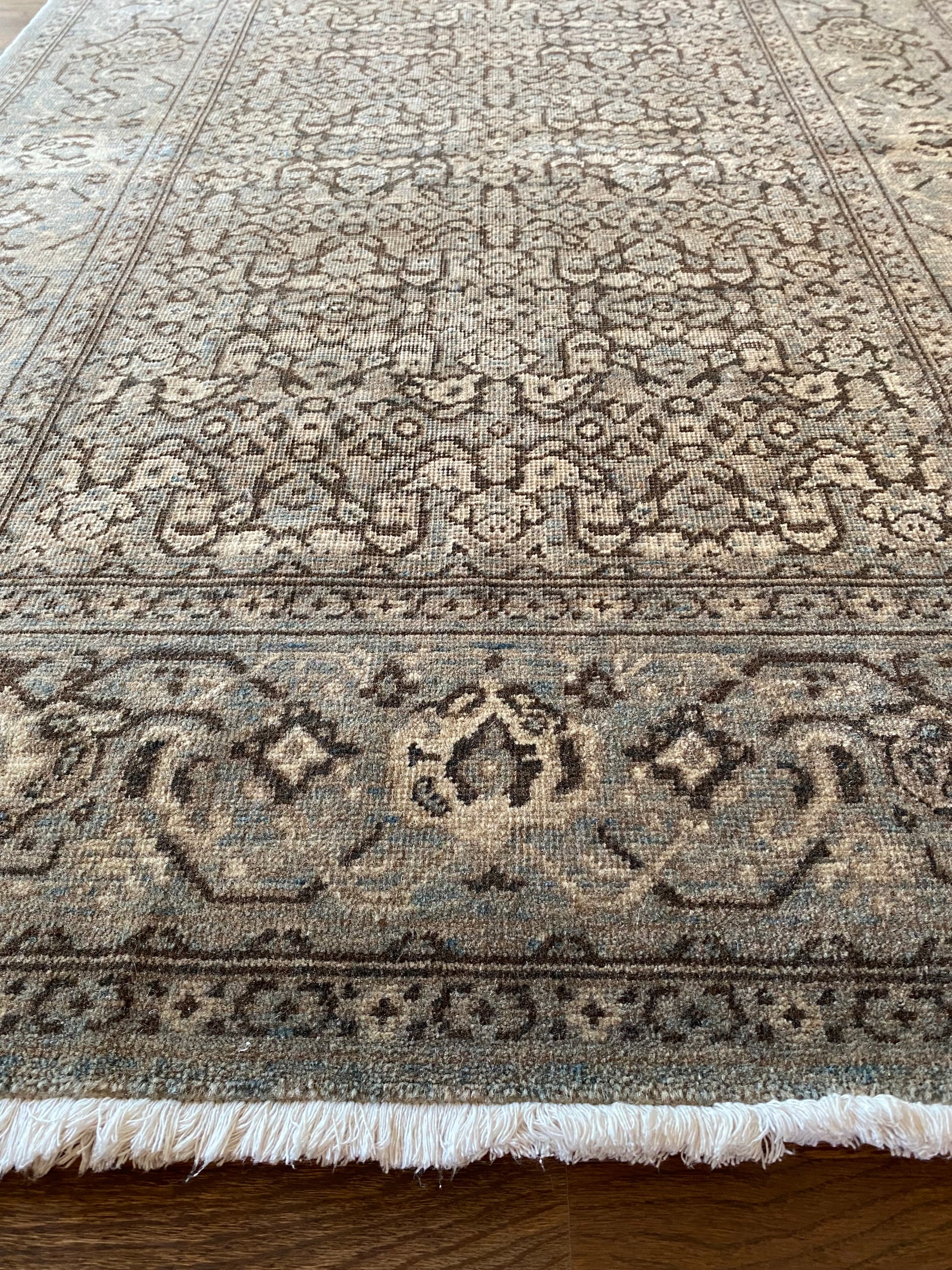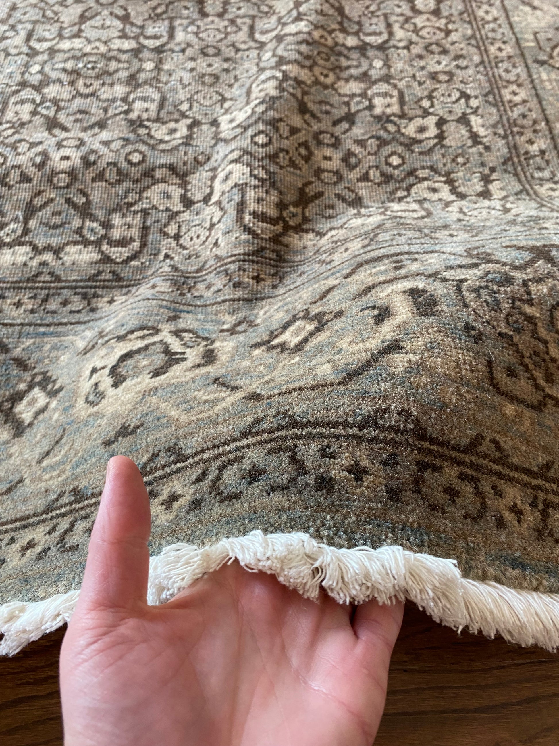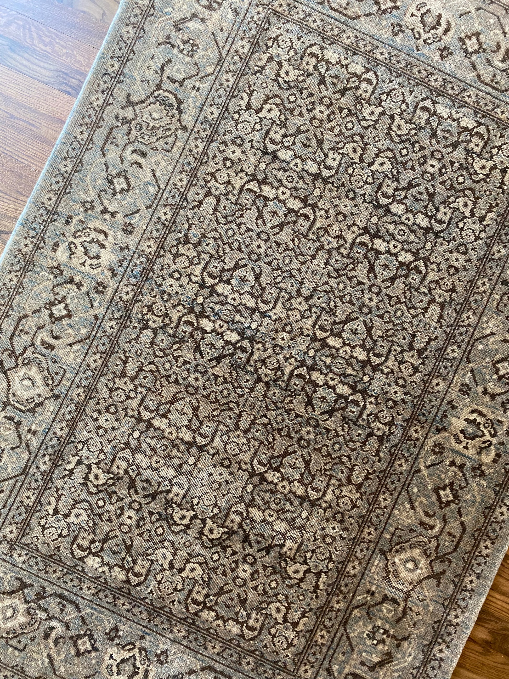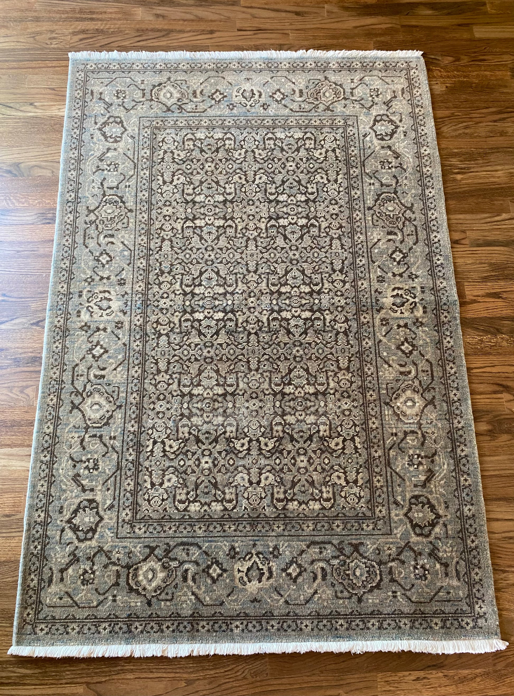 All of our rugs have been professionally cleaned prior to listing. We strive to deliver rugs that everyone loves, but please note that when you purchase from Two Sisters Rugs you are purchasing an item that is pre-owned and vintage by nature. Rugs might have areas of wear, minor repairs, or other unique characteristics, but we believe this is what makes them beautiful and one of a kind. Many rugs do not have perfect lines. All photographs are taken on an iPhone with no filter in natural light unless otherwise noted; colors may vary depending on the placement in your home. Colors may also vary depending on your phone or screen settings. If the area you are placing the rug has less natural light, the rug will appear darker in person. We aim to represent each rugs true colors and designs on the listing photos, but are happy to send additional photos upon request prior to purchase. High quality wool contains a substance called lanolin, which emits a metallic-y, but sweet and grassy scent. ALL SALES ARE FINAL.