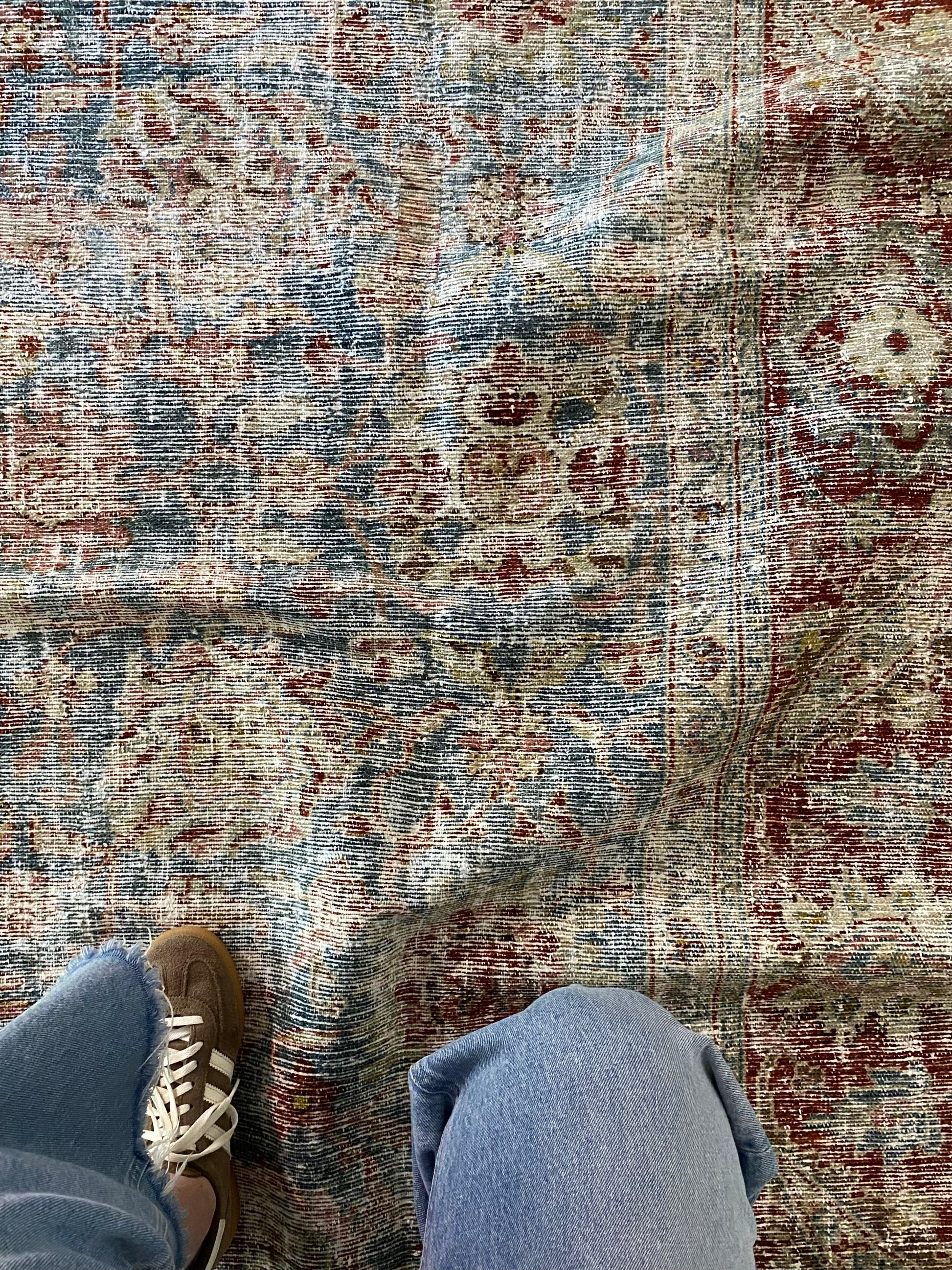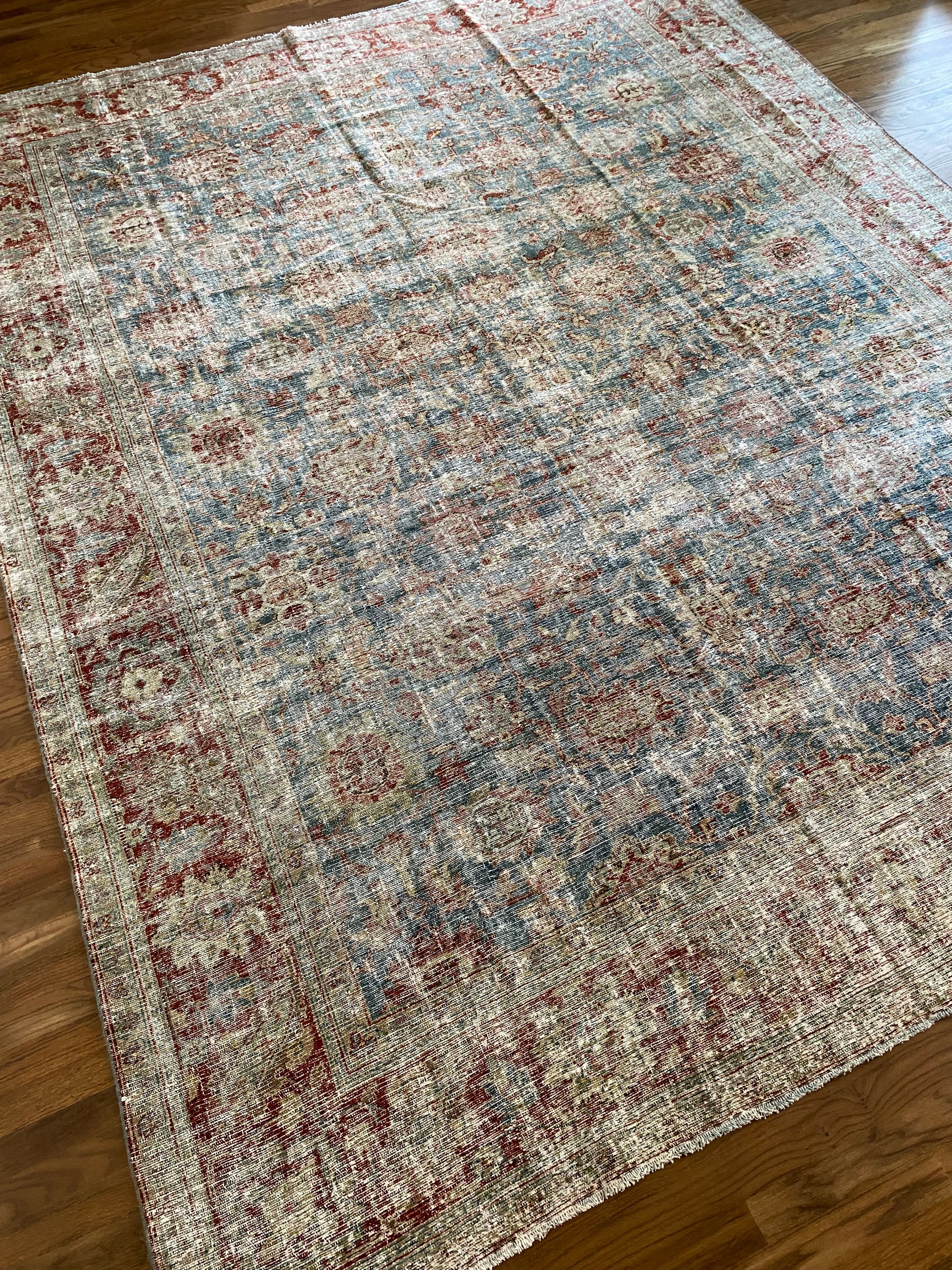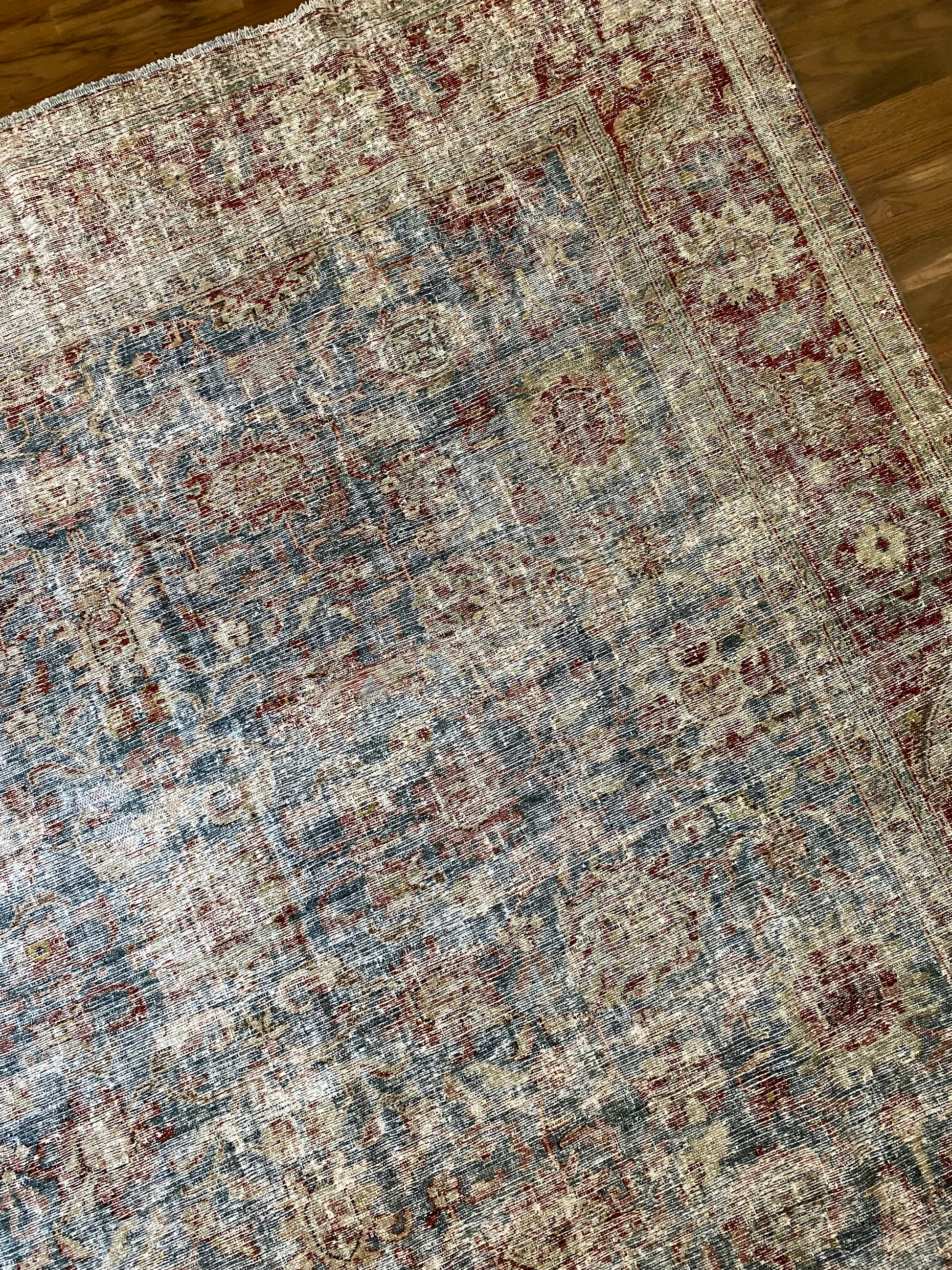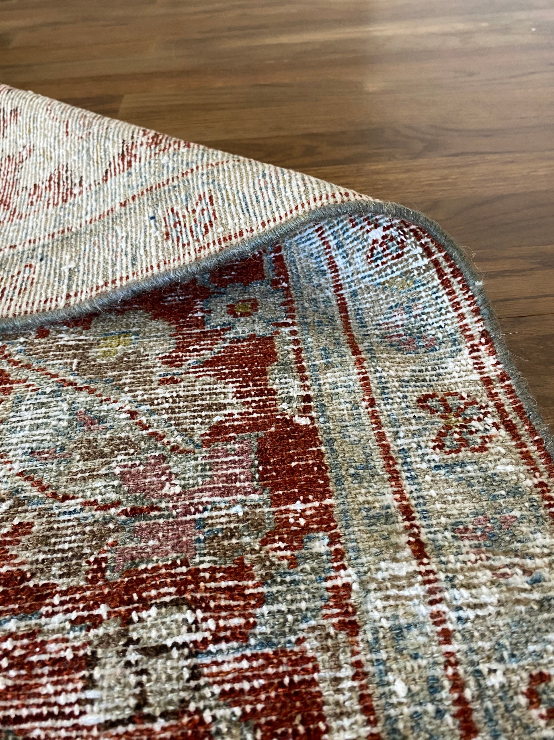 All of our rugs have been professionally cleaned prior to listing. We strive to deliver rugs that everyone loves, but please note that when you purchase from Two Sisters Rugs you are purchasing an item that is pre-owned and vintage by nature. Rugs might have areas of wear, minor repairs, or other unique characteristics, but we believe this is what makes them beautiful and one of a kind. Many rugs do not have perfect lines. All photographs are taken on an iPhone with no filter in natural light unless otherwise noted; colors may vary depending on the placement in your home. Colors may also vary depending on your phone or screen settings. If the area you are placing the rug has less natural light, the rug will appear darker in person. We aim to represent each rugs true colors and designs on the listing photos, but are happy to send additional photos upon request prior to purchase. High quality wool contains a substance called lanolin, which emits a metallic-y, but sweet and grassy scent. ALL SALES ARE FINAL.