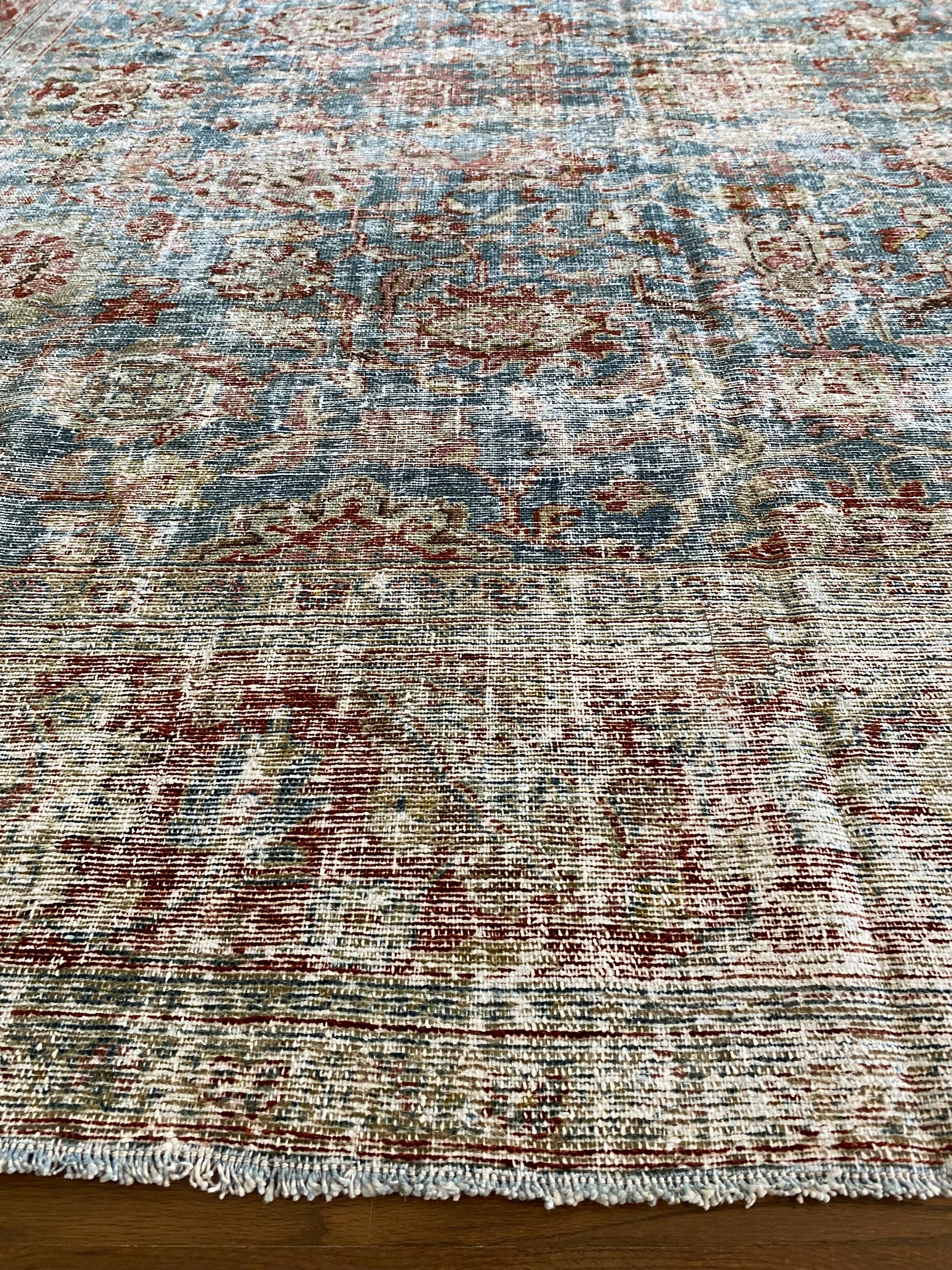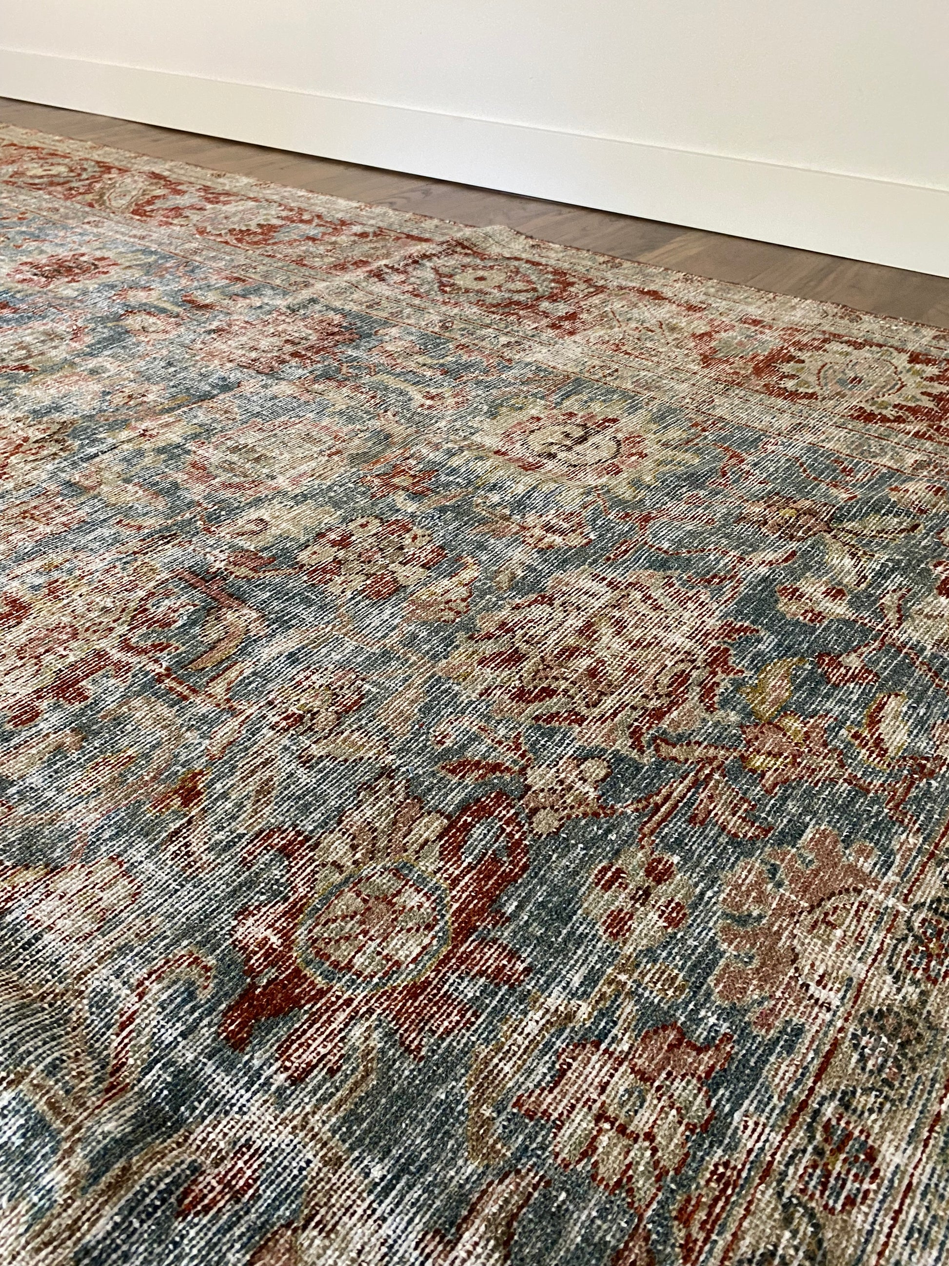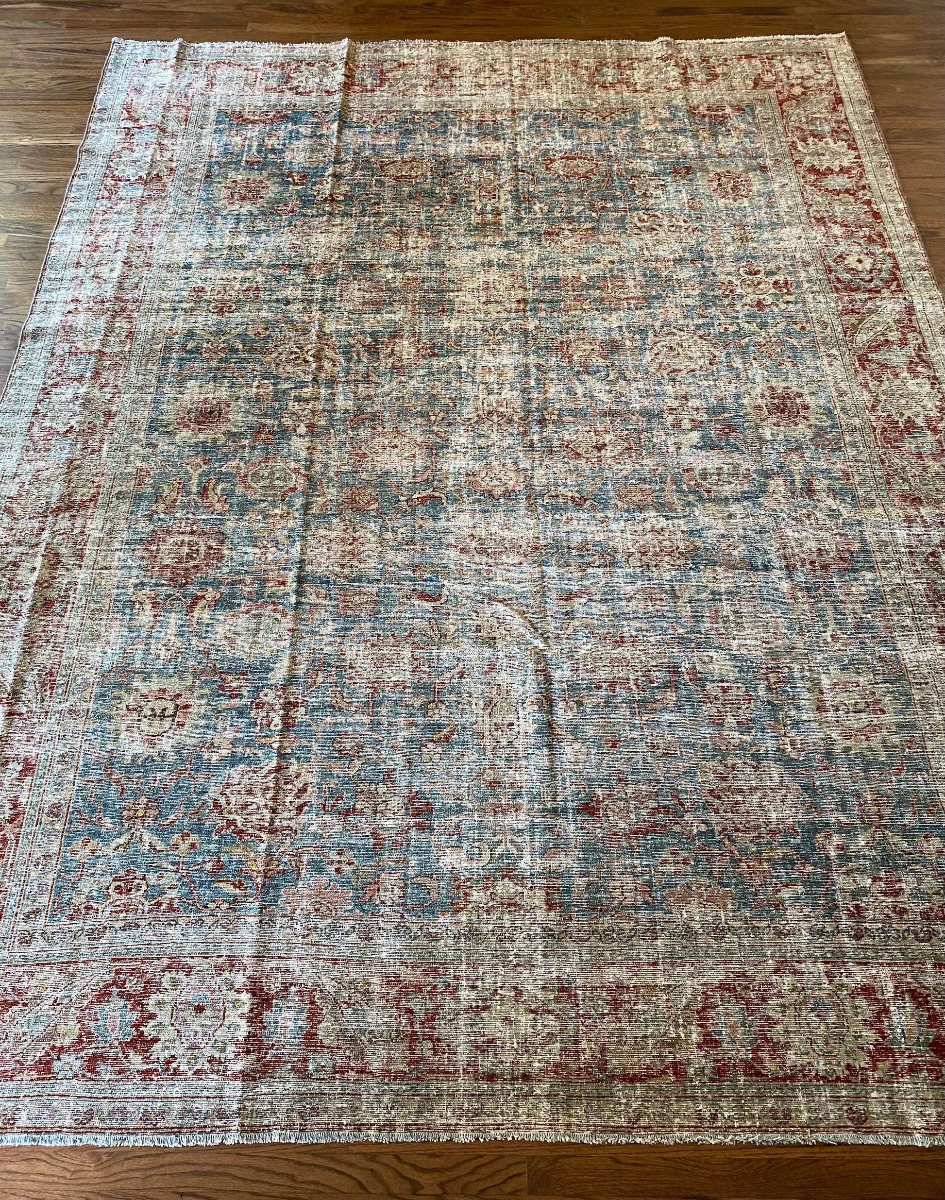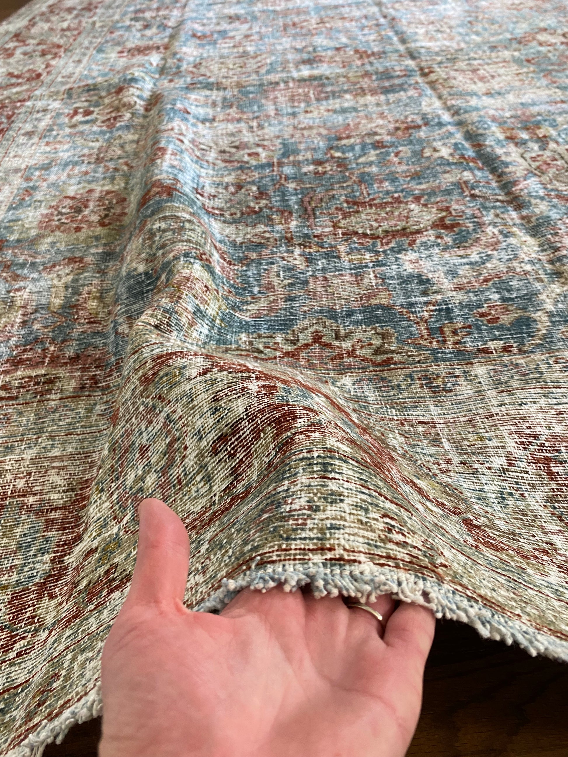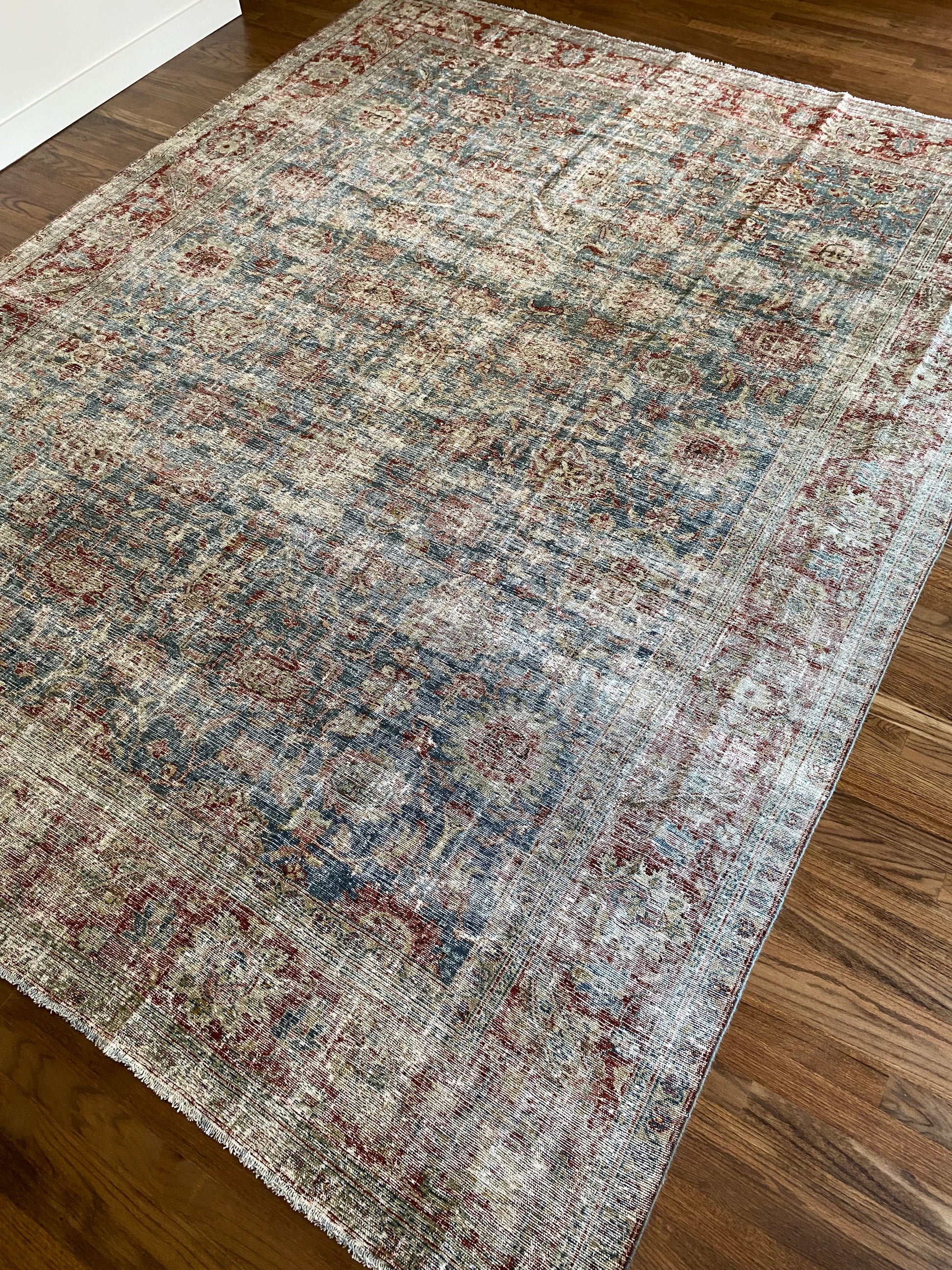 All of our rugs have been professionally cleaned prior to listing. We strive to deliver rugs that everyone loves, but please note that when you purchase from Two Sisters Rugs you are purchasing an item that is pre-owned and vintage by nature. Rugs might have areas of wear, minor repairs, or other unique characteristics, but we believe this is what makes them beautiful and one of a kind. Many rugs do not have perfect lines. All photographs are taken on an iPhone with no filter in natural light unless otherwise noted; colors may vary depending on the placement in your home. Colors may also vary depending on your phone or screen settings. If the area you are placing the rug has less natural light, the rug will appear darker in person. We aim to represent each rugs true colors and designs on the listing photos, but are happy to send additional photos upon request prior to purchase. High quality wool contains a substance called lanolin, which emits a metallic-y, but sweet and grassy scent. ALL SALES ARE FINAL.