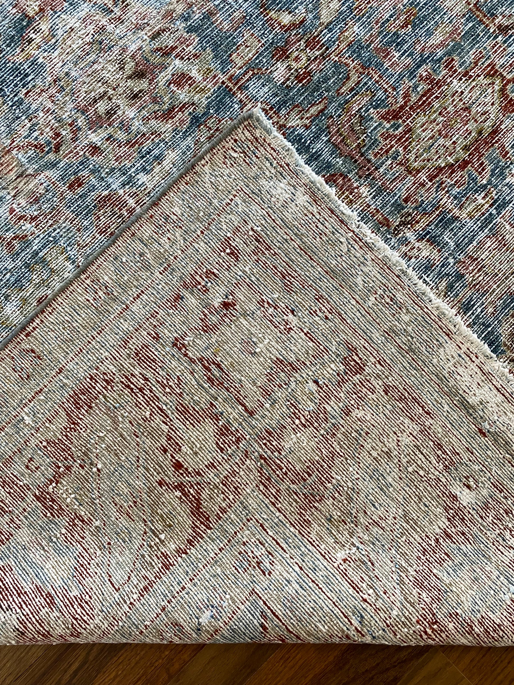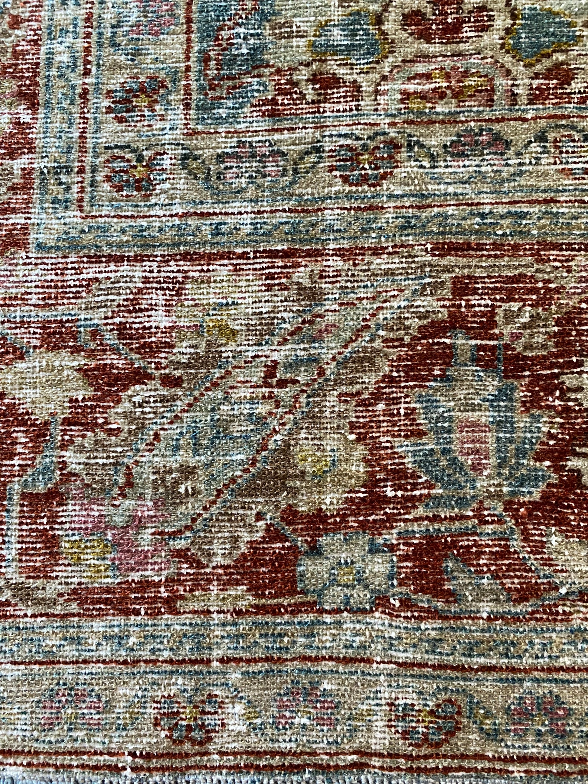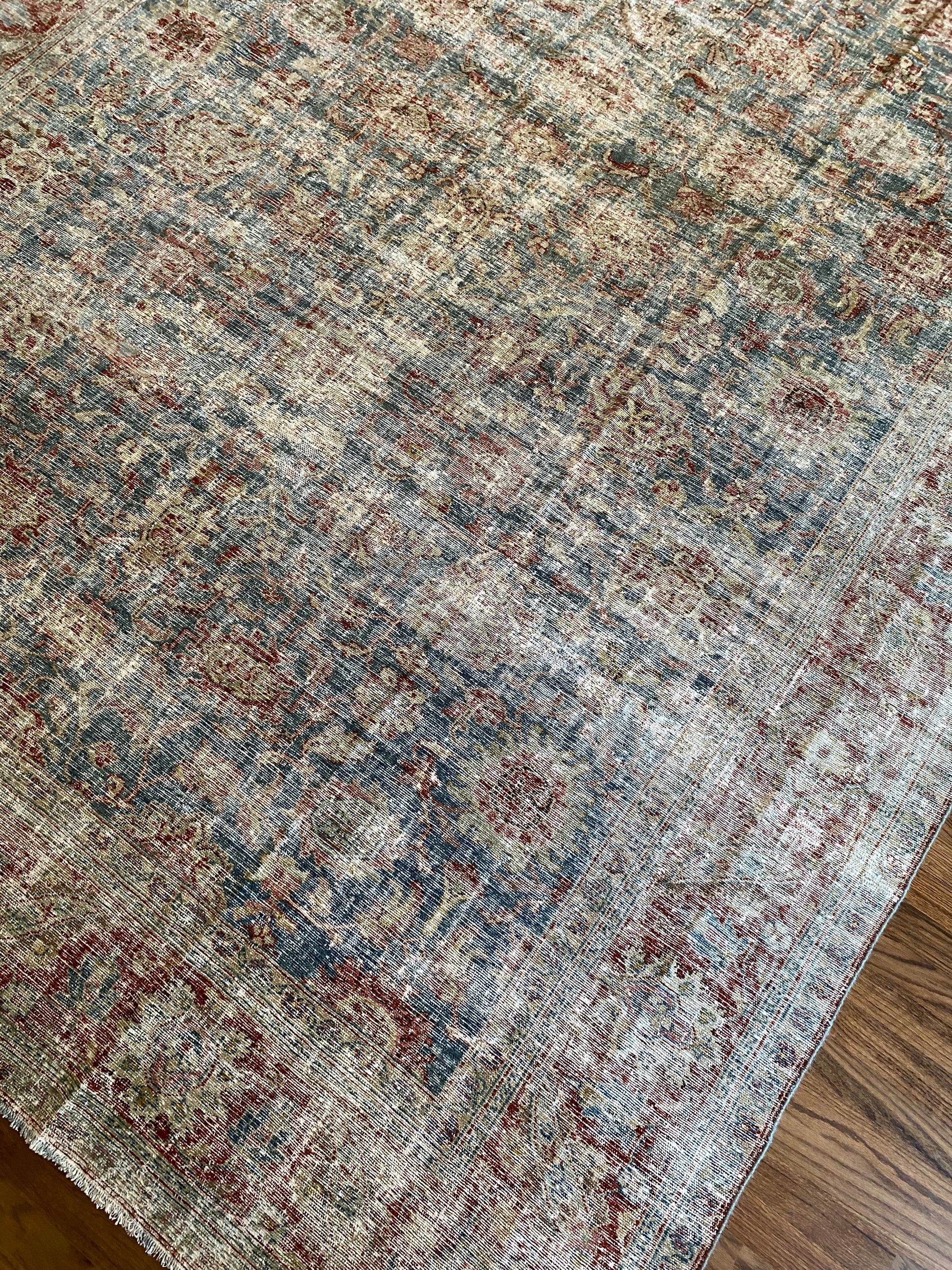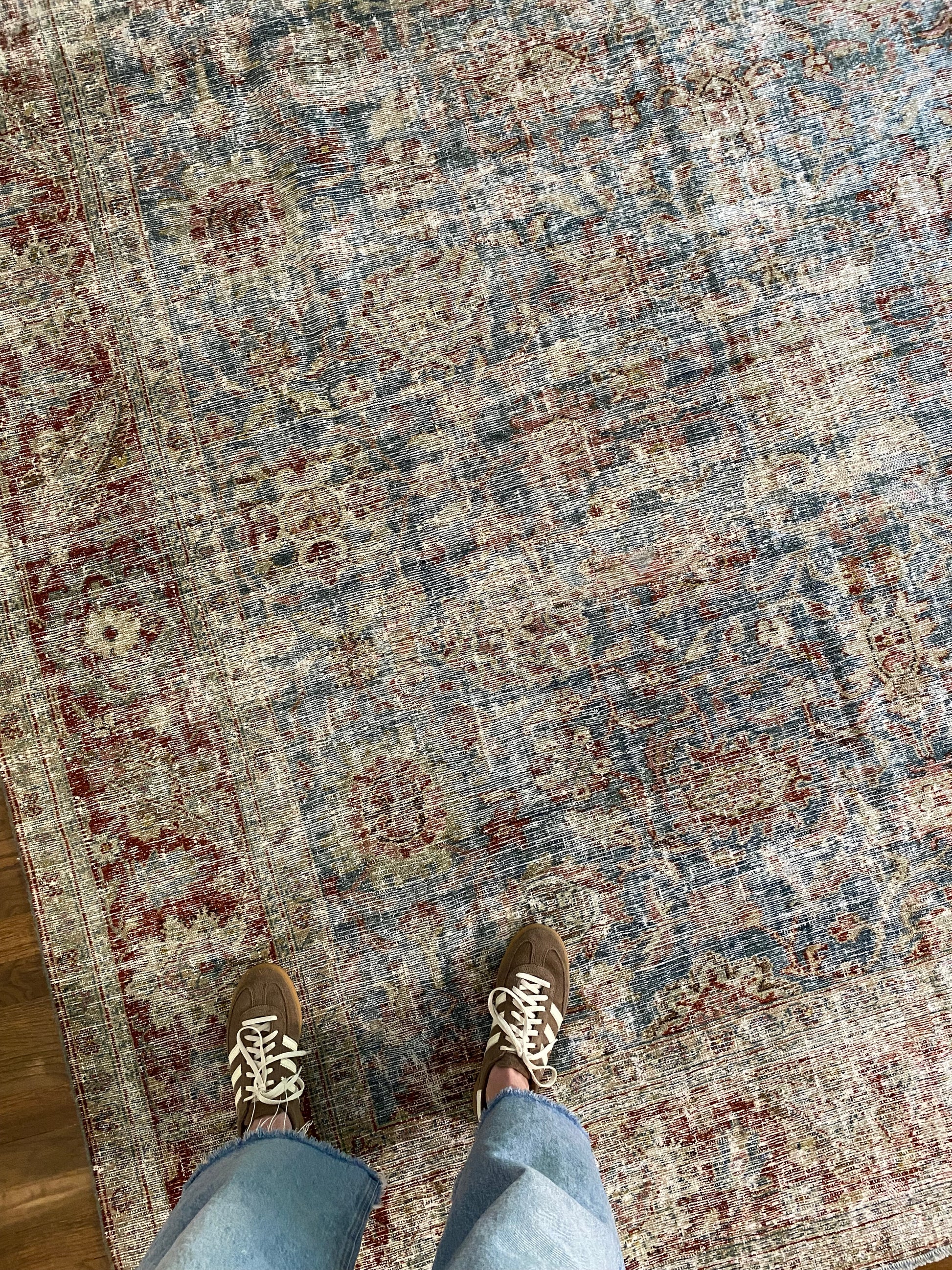 All of our rugs have been professionally cleaned prior to listing. We strive to deliver rugs that everyone loves, but please note that when you purchase from Two Sisters Rugs you are purchasing an item that is pre-owned and vintage by nature. Rugs might have areas of wear, minor repairs, or other unique characteristics, but we believe this is what makes them beautiful and one of a kind. Many rugs do not have perfect lines. All photographs are taken on an iPhone with no filter in natural light unless otherwise noted; colors may vary depending on the placement in your home. Colors may also vary depending on your phone or screen settings. If the area you are placing the rug has less natural light, the rug will appear darker in person. We aim to represent each rugs true colors and designs on the listing photos, but are happy to send additional photos upon request prior to purchase. High quality wool contains a substance called lanolin, which emits a metallic-y, but sweet and grassy scent. ALL SALES ARE FINAL.