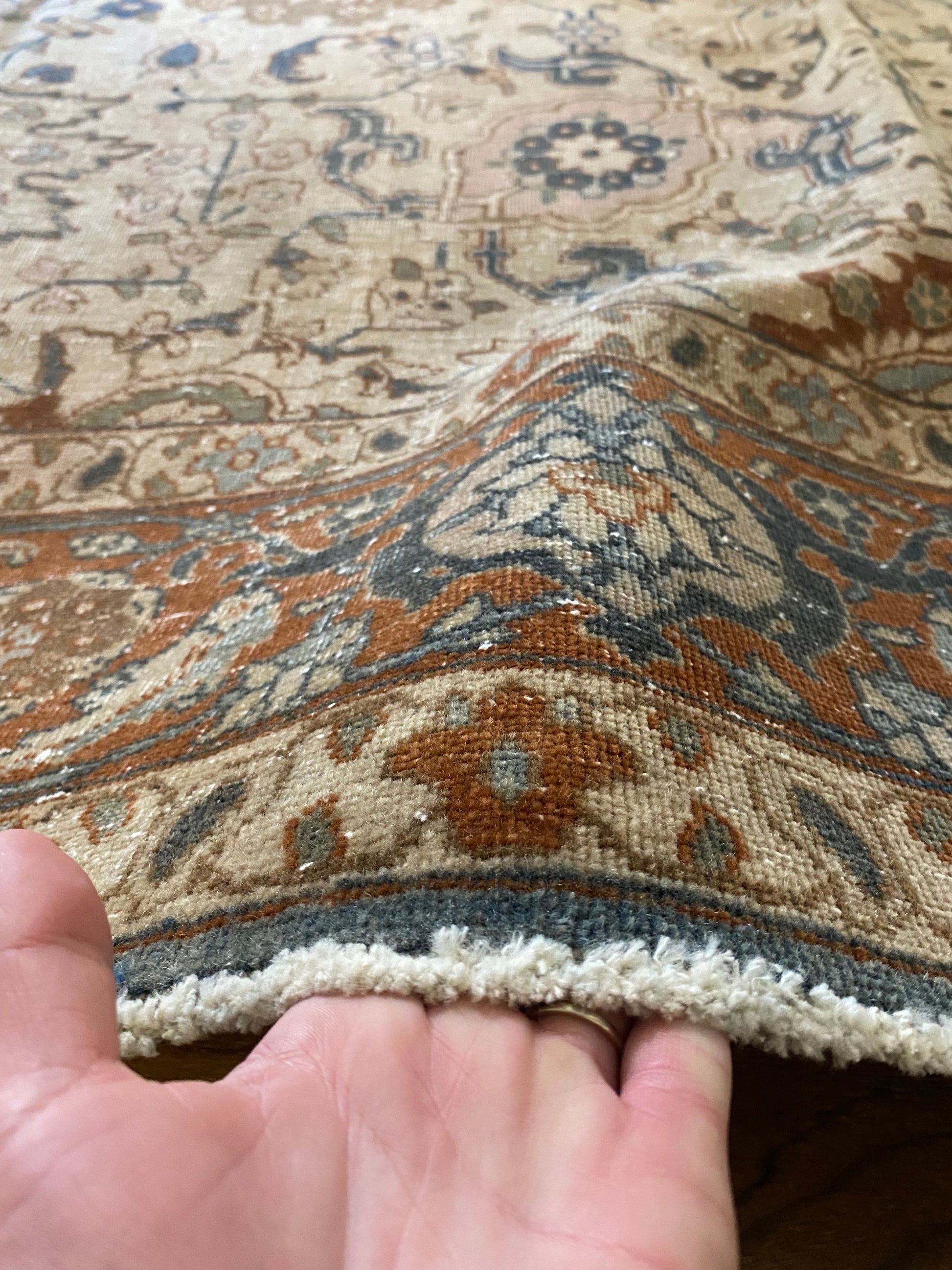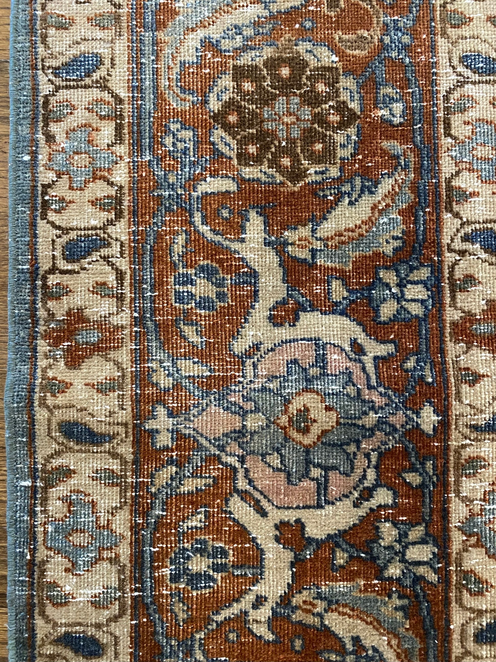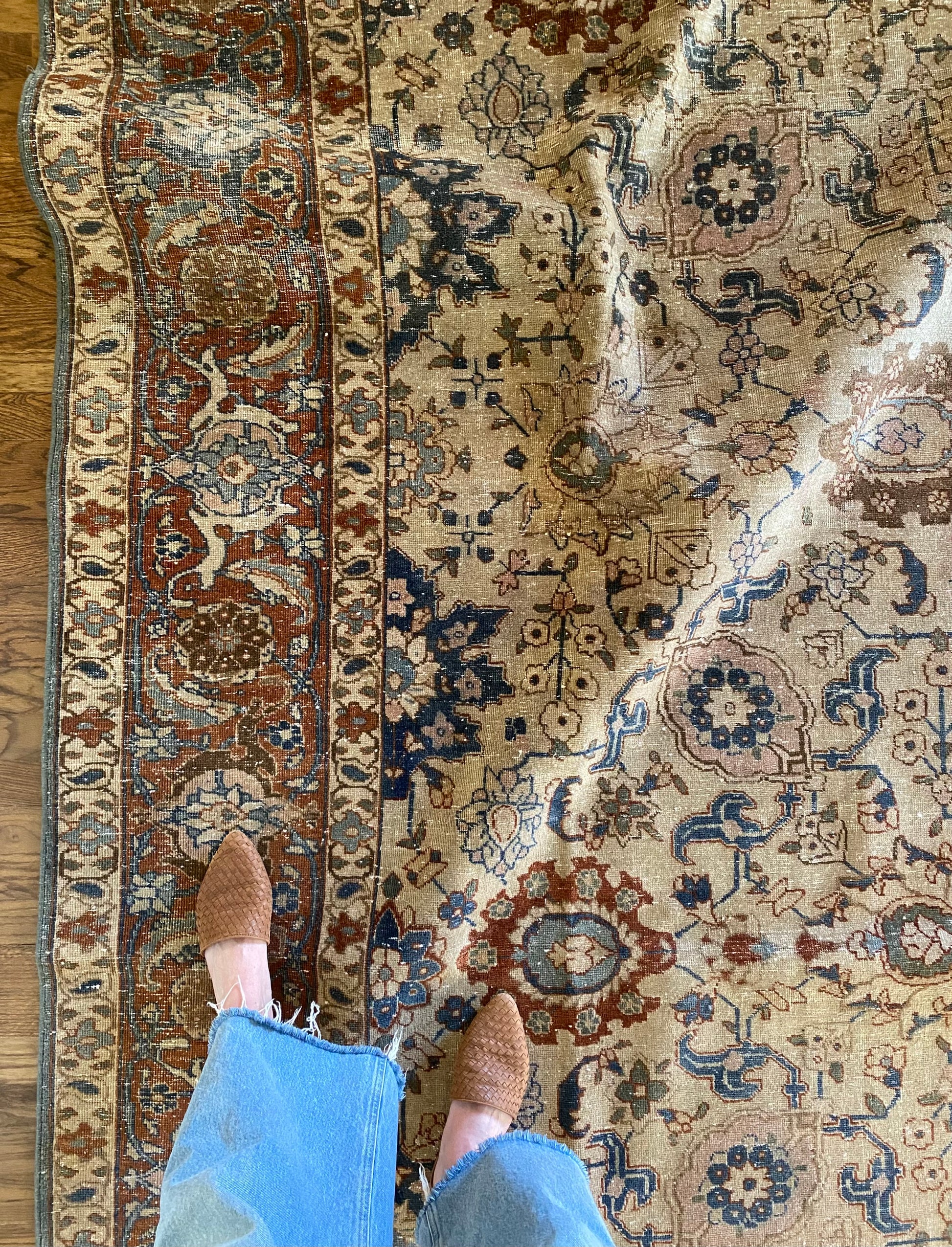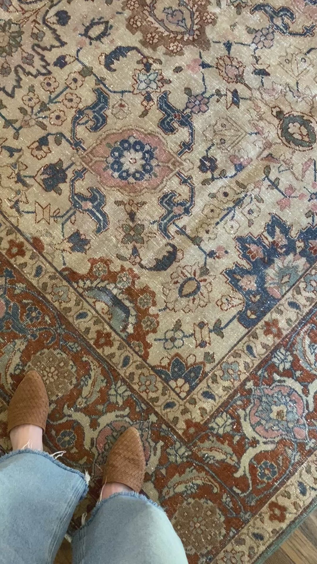 All of our rugs have been professionally cleaned prior to listing. We strive to deliver rugs that everyone loves, but please note that when you purchase from Two Sisters Rugs you are purchasing an item that is pre-owned and vintage by nature. Rugs might have areas of wear, minor repairs, or other unique characteristics, but we believe this is what makes them beautiful and one of a kind. Many rugs do not have perfect lines. All photographs are taken on an iPhone with no filter in natural light unless otherwise noted; colors may vary depending on the placement in your home. Colors may also vary depending on your phone or screen settings. If the area you are placing the rug has less natural light, the rug will appear darker in person. We aim to represent each rugs true colors and designs on the listing photos, but are happy to send additional photos upon request prior to purchase. High quality wool contains a substance called lanolin, which emits a metallic-y, but sweet and grassy scent. ALL SALES ARE FINAL.