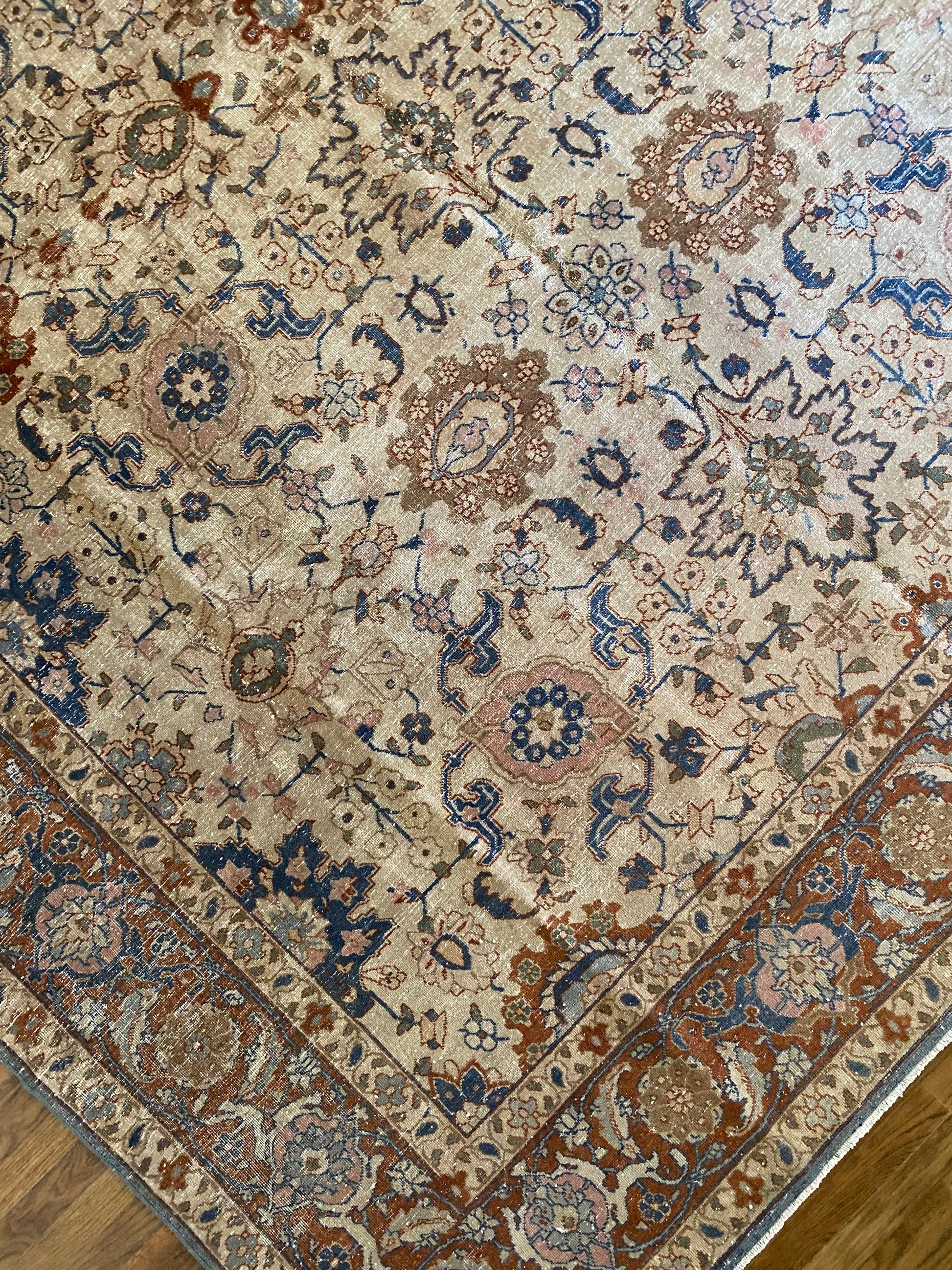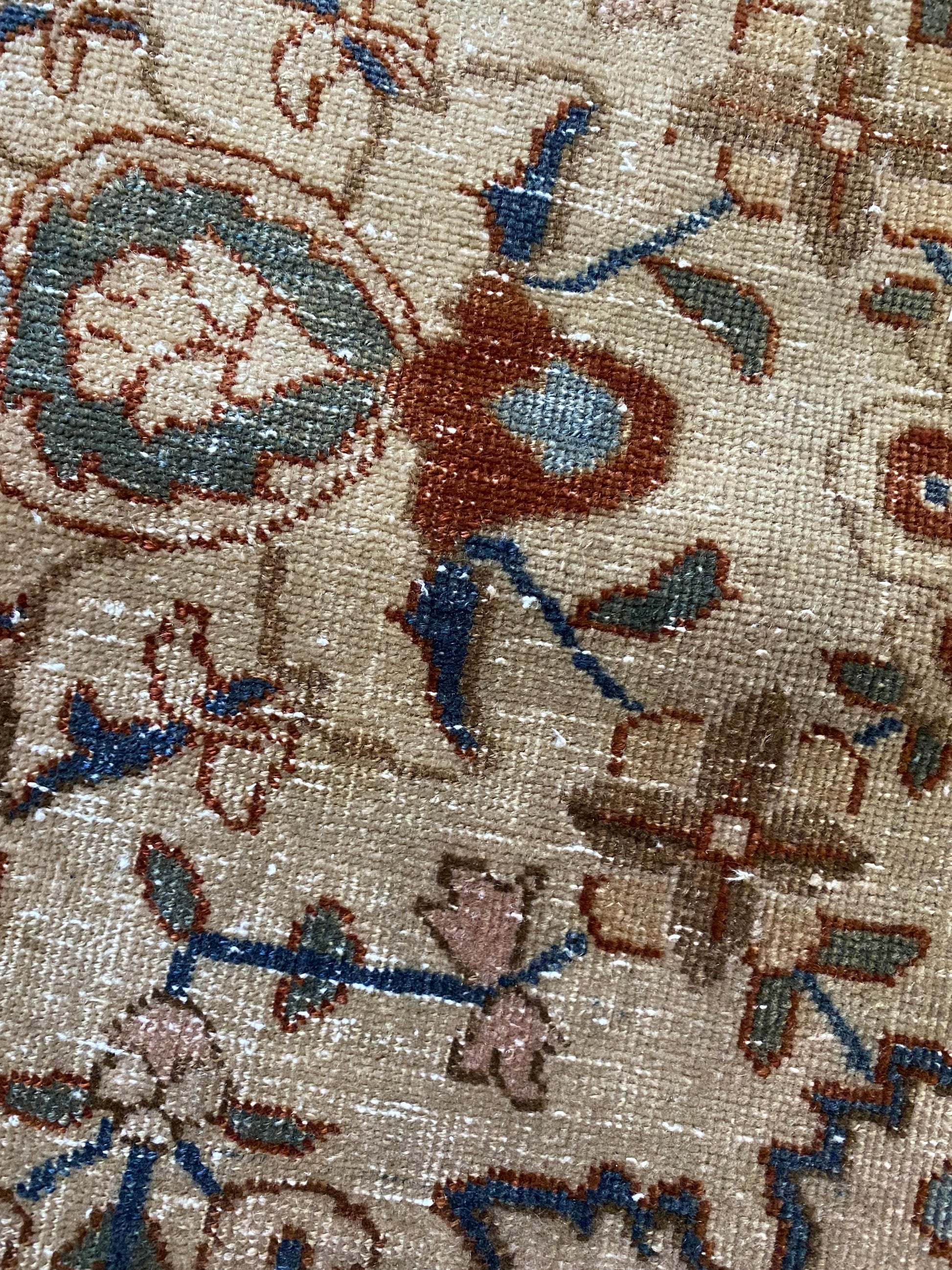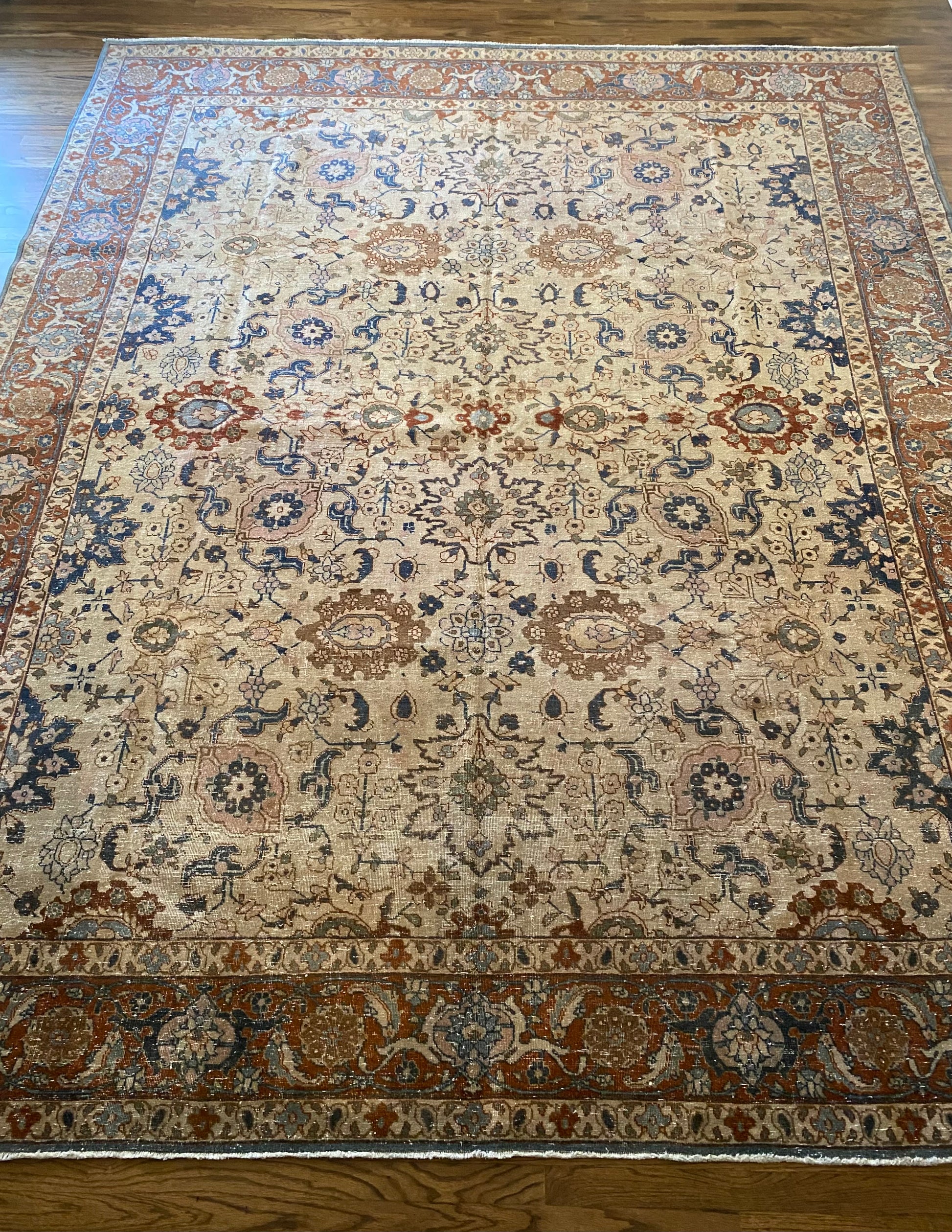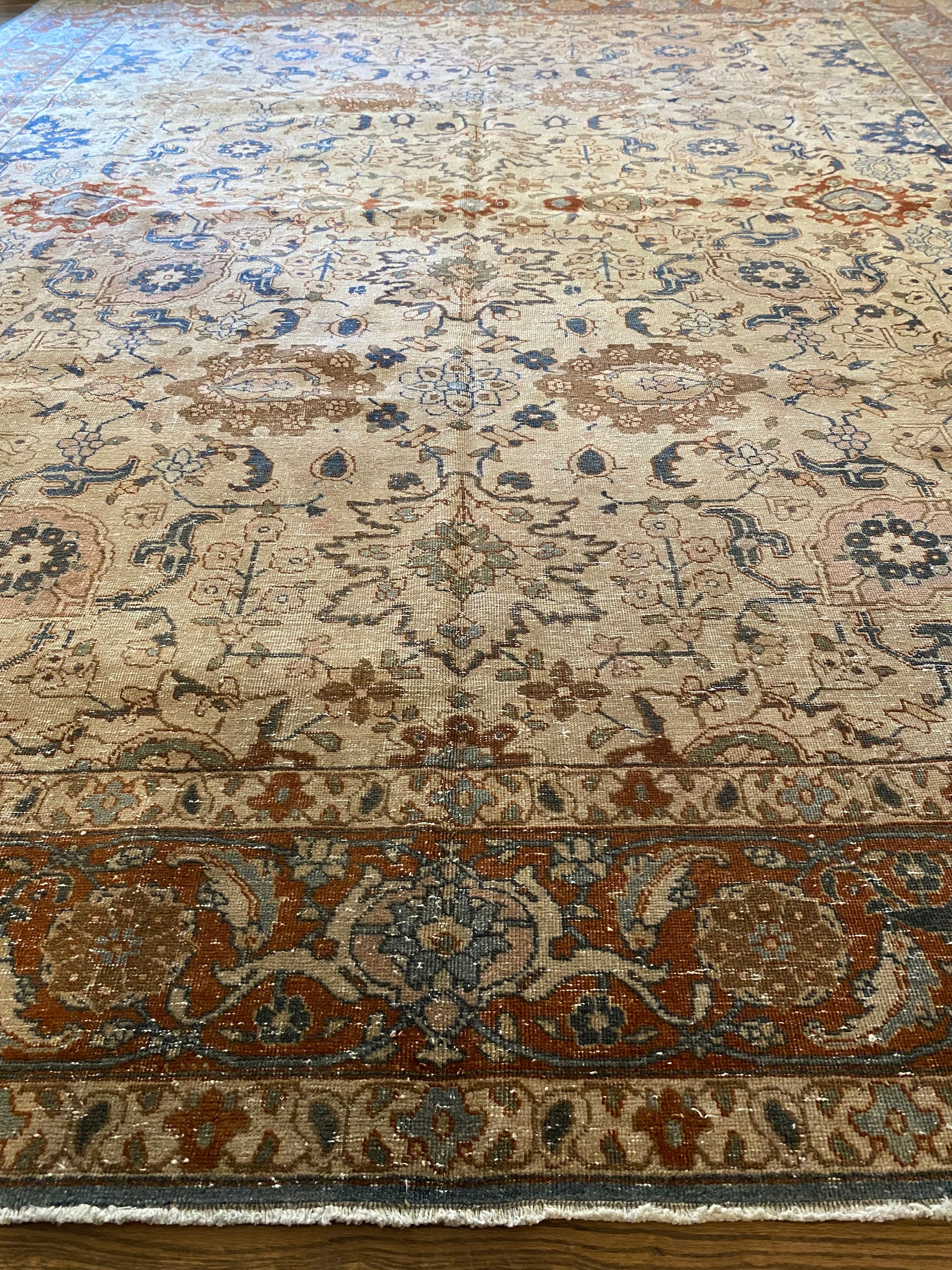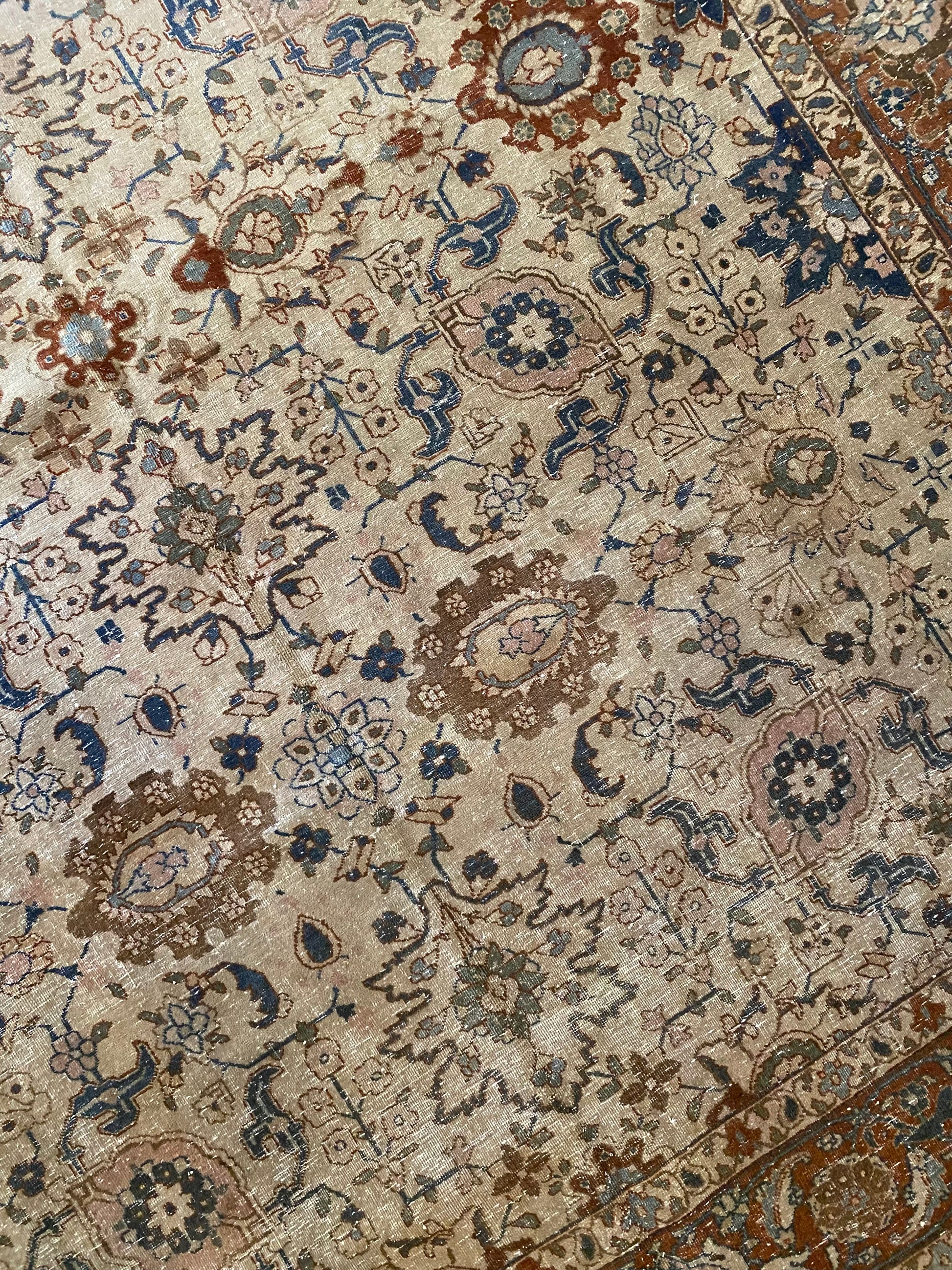 All of our rugs have been professionally cleaned prior to listing. We strive to deliver rugs that everyone loves, but please note that when you purchase from Two Sisters Rugs you are purchasing an item that is pre-owned and vintage by nature. Rugs might have areas of wear, minor repairs, or other unique characteristics, but we believe this is what makes them beautiful and one of a kind. Many rugs do not have perfect lines. All photographs are taken on an iPhone with no filter in natural light unless otherwise noted; colors may vary depending on the placement in your home. Colors may also vary depending on your phone or screen settings. If the area you are placing the rug has less natural light, the rug will appear darker in person. We aim to represent each rugs true colors and designs on the listing photos, but are happy to send additional photos upon request prior to purchase. High quality wool contains a substance called lanolin, which emits a metallic-y, but sweet and grassy scent. ALL SALES ARE FINAL.