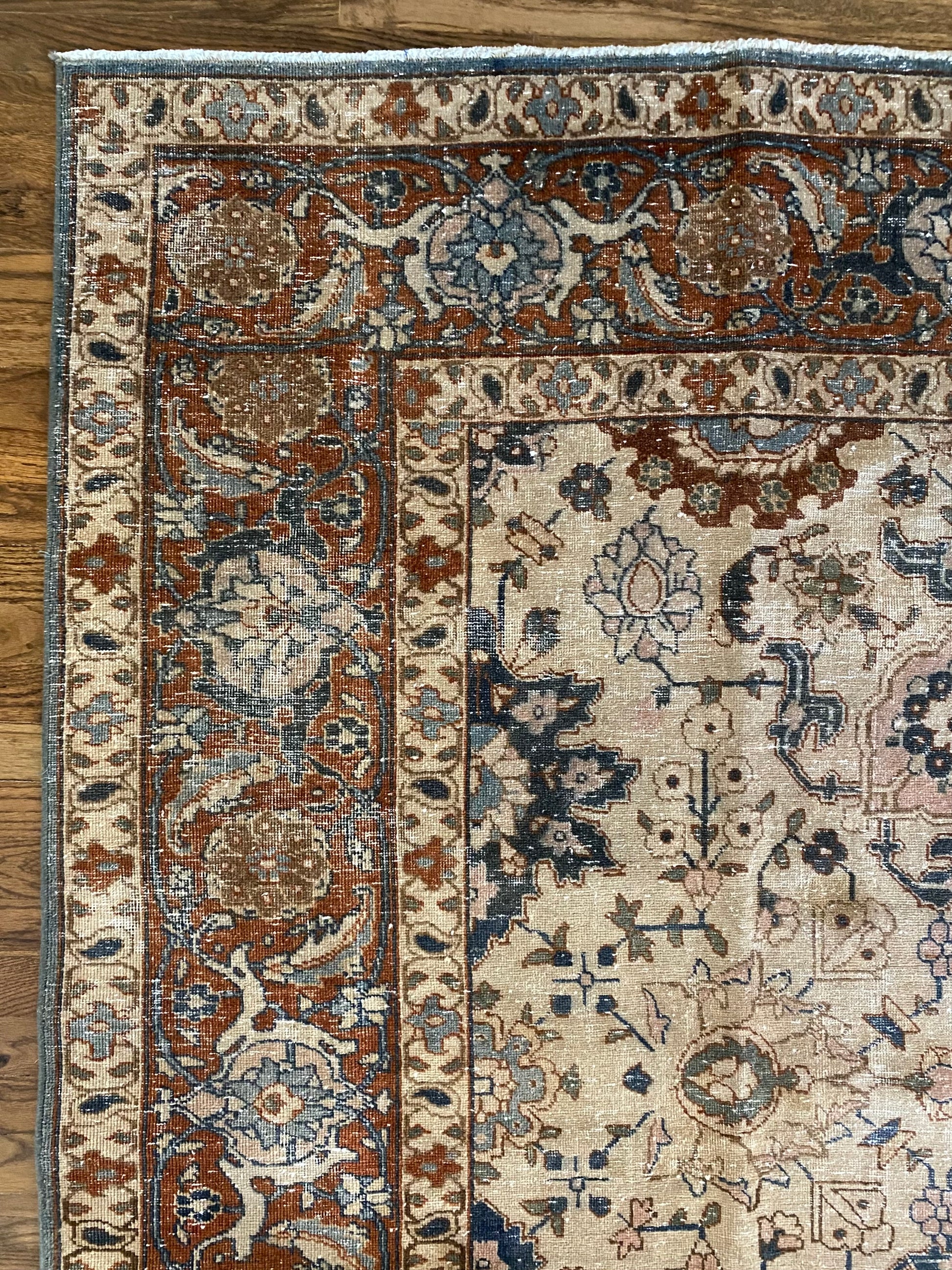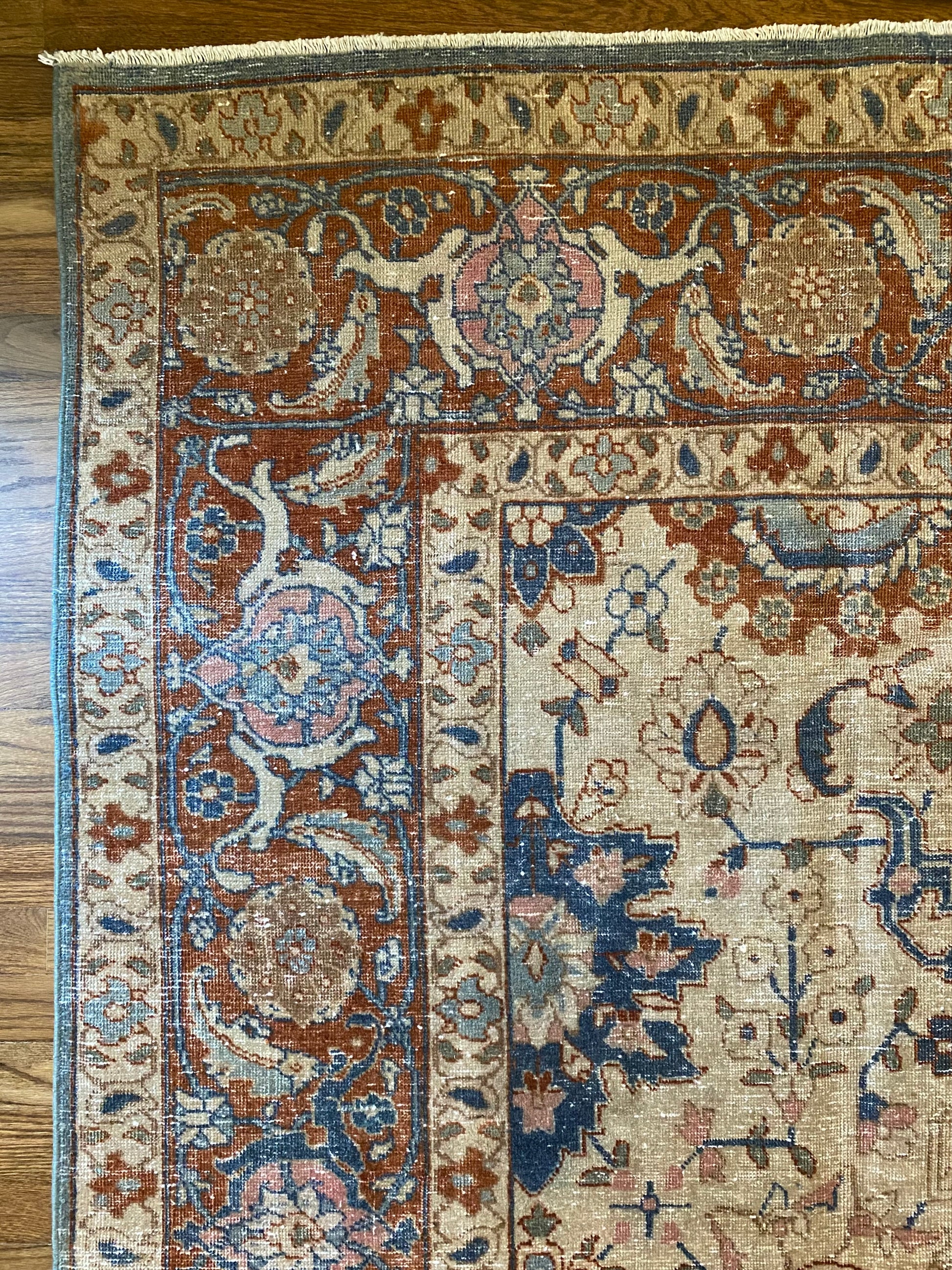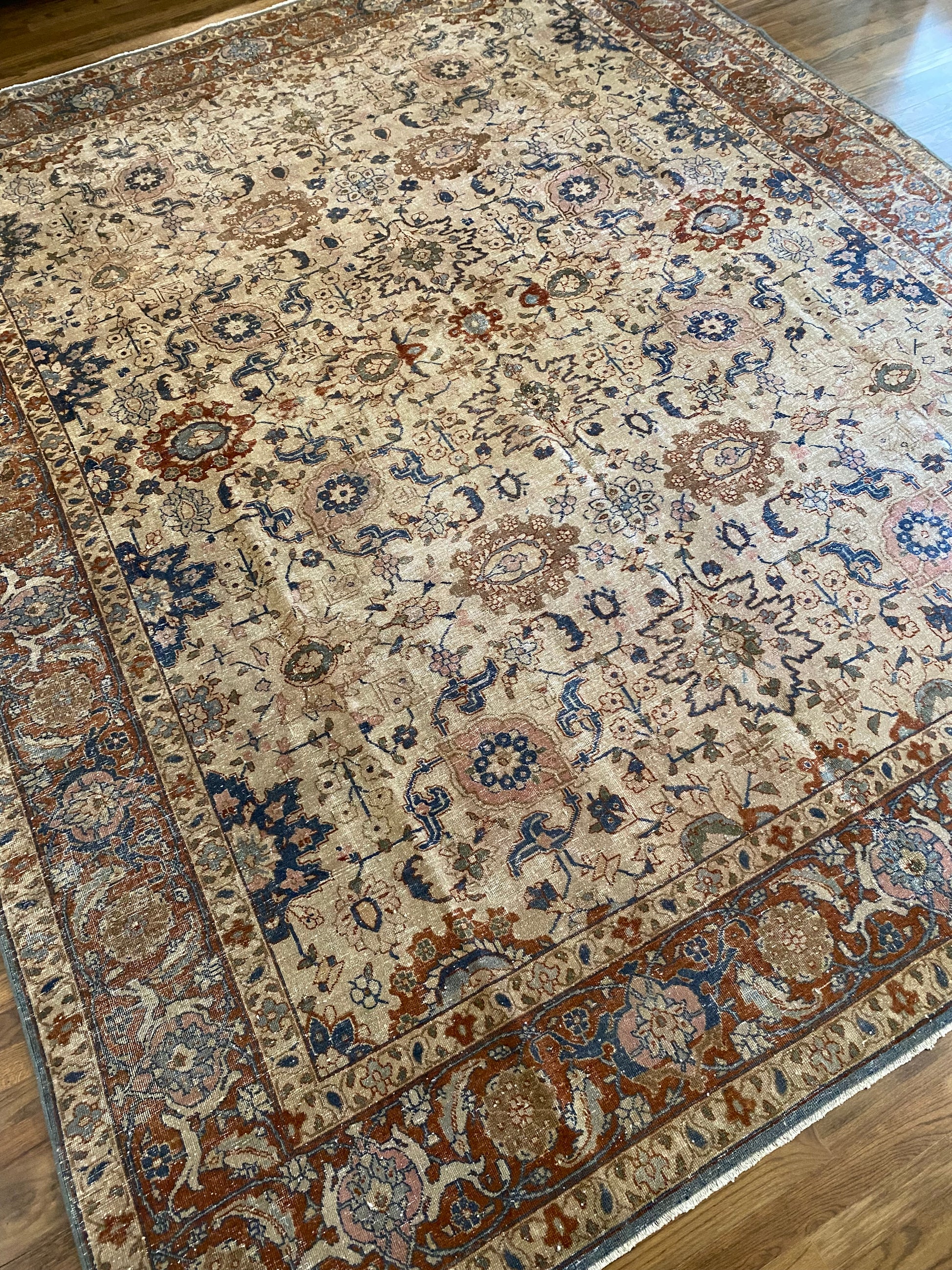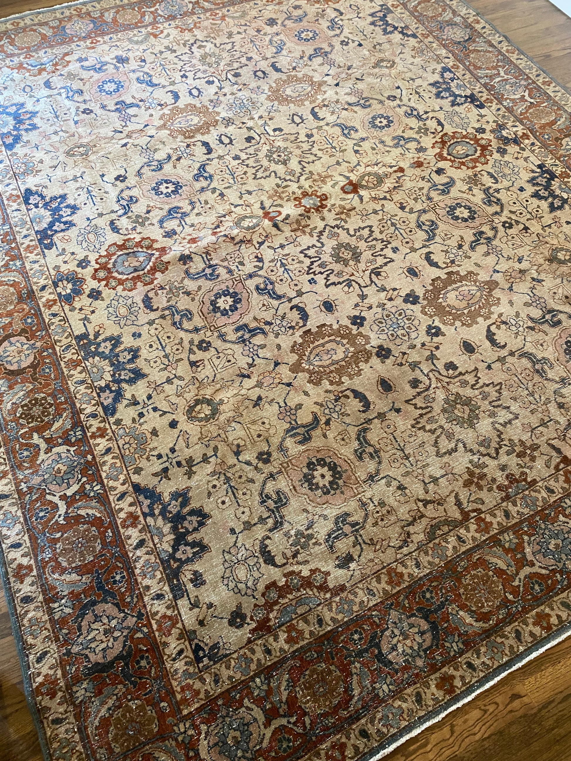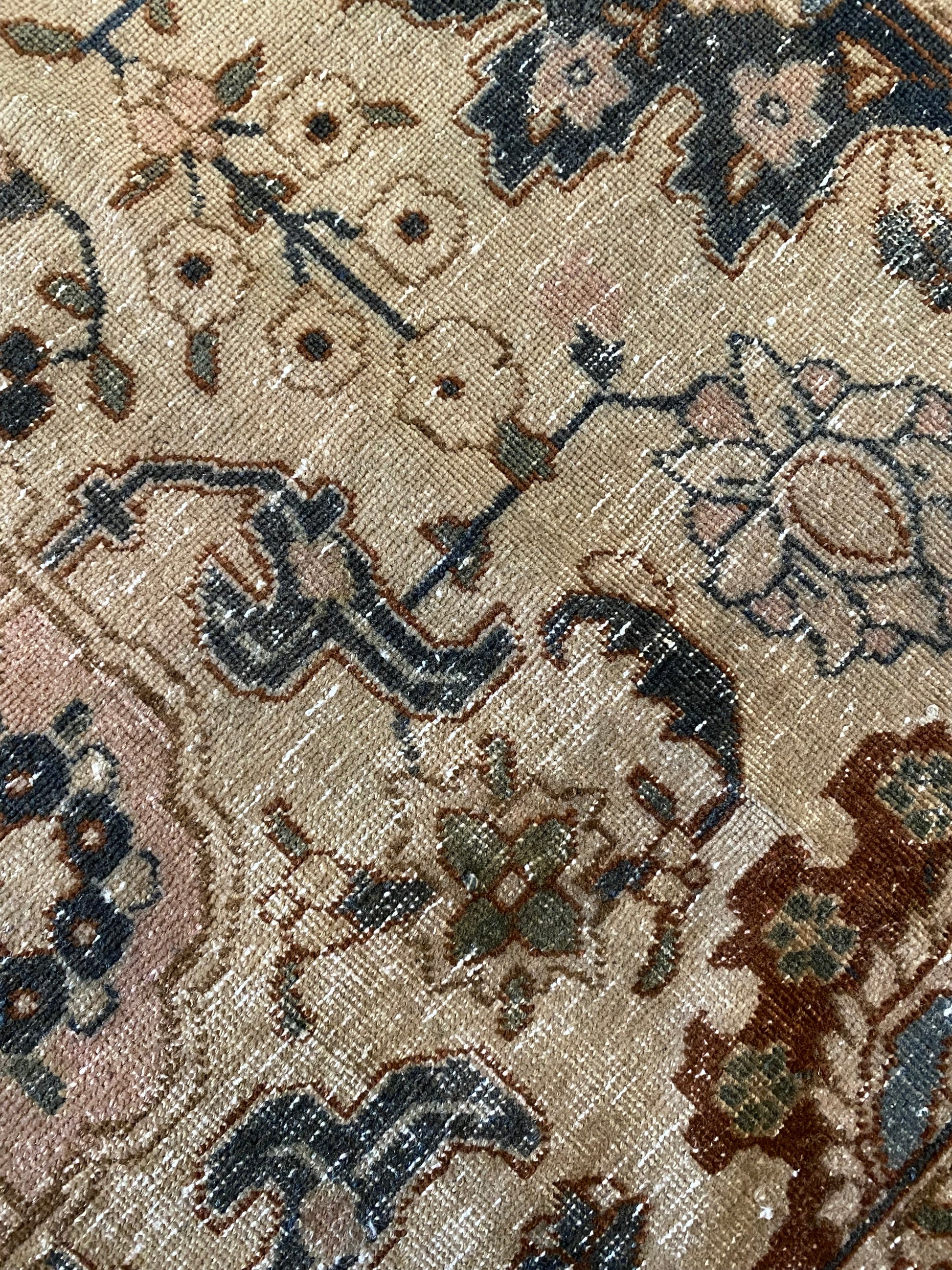 All of our rugs have been professionally cleaned prior to listing. We strive to deliver rugs that everyone loves, but please note that when you purchase from Two Sisters Rugs you are purchasing an item that is pre-owned and vintage by nature. Rugs might have areas of wear, minor repairs, or other unique characteristics, but we believe this is what makes them beautiful and one of a kind. Many rugs do not have perfect lines. All photographs are taken on an iPhone with no filter in natural light unless otherwise noted; colors may vary depending on the placement in your home. Colors may also vary depending on your phone or screen settings. If the area you are placing the rug has less natural light, the rug will appear darker in person. We aim to represent each rugs true colors and designs on the listing photos, but are happy to send additional photos upon request prior to purchase. High quality wool contains a substance called lanolin, which emits a metallic-y, but sweet and grassy scent. ALL SALES ARE FINAL.