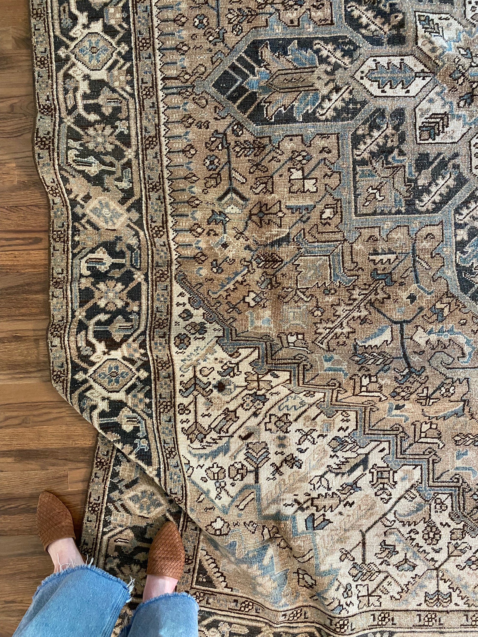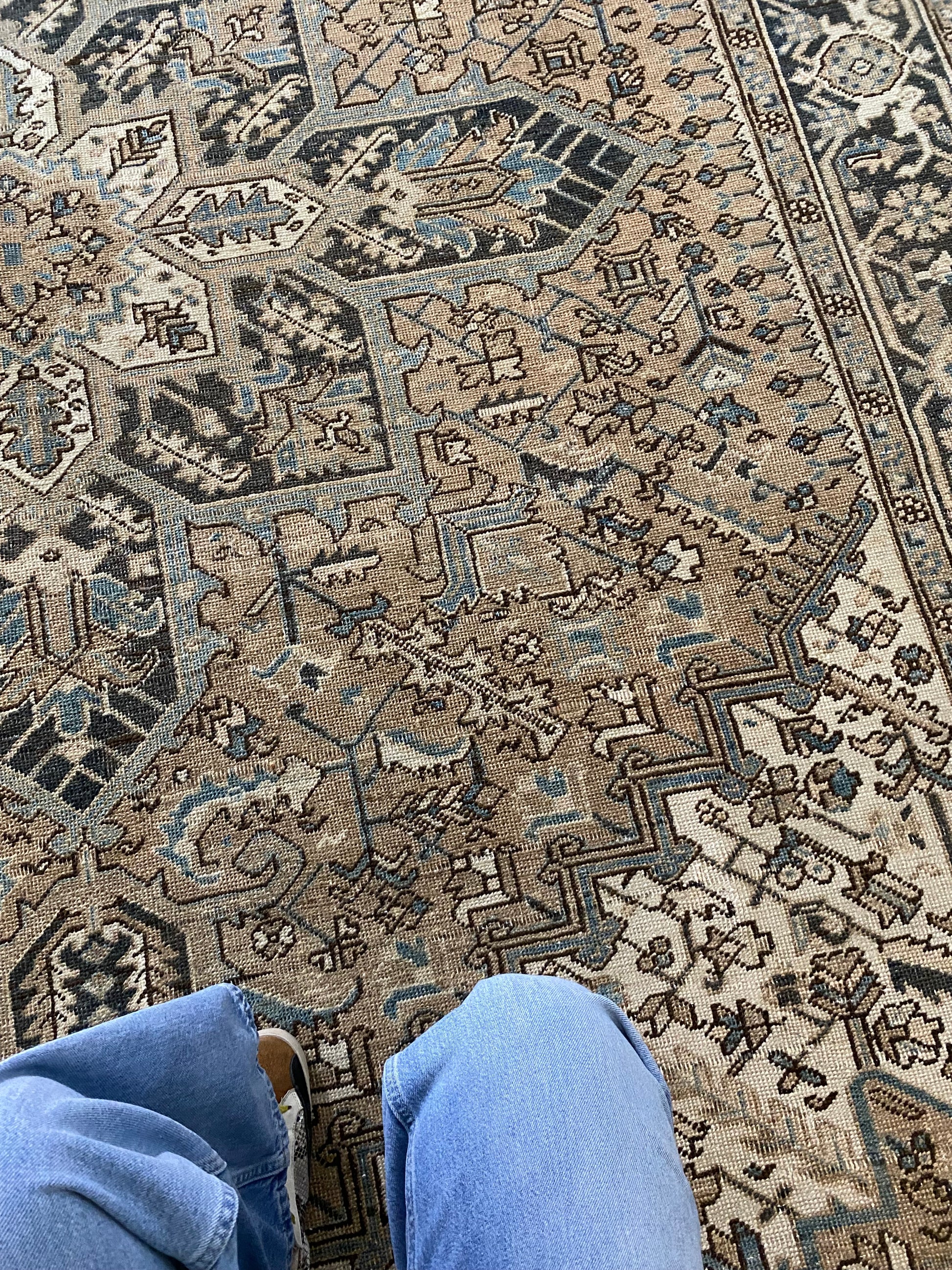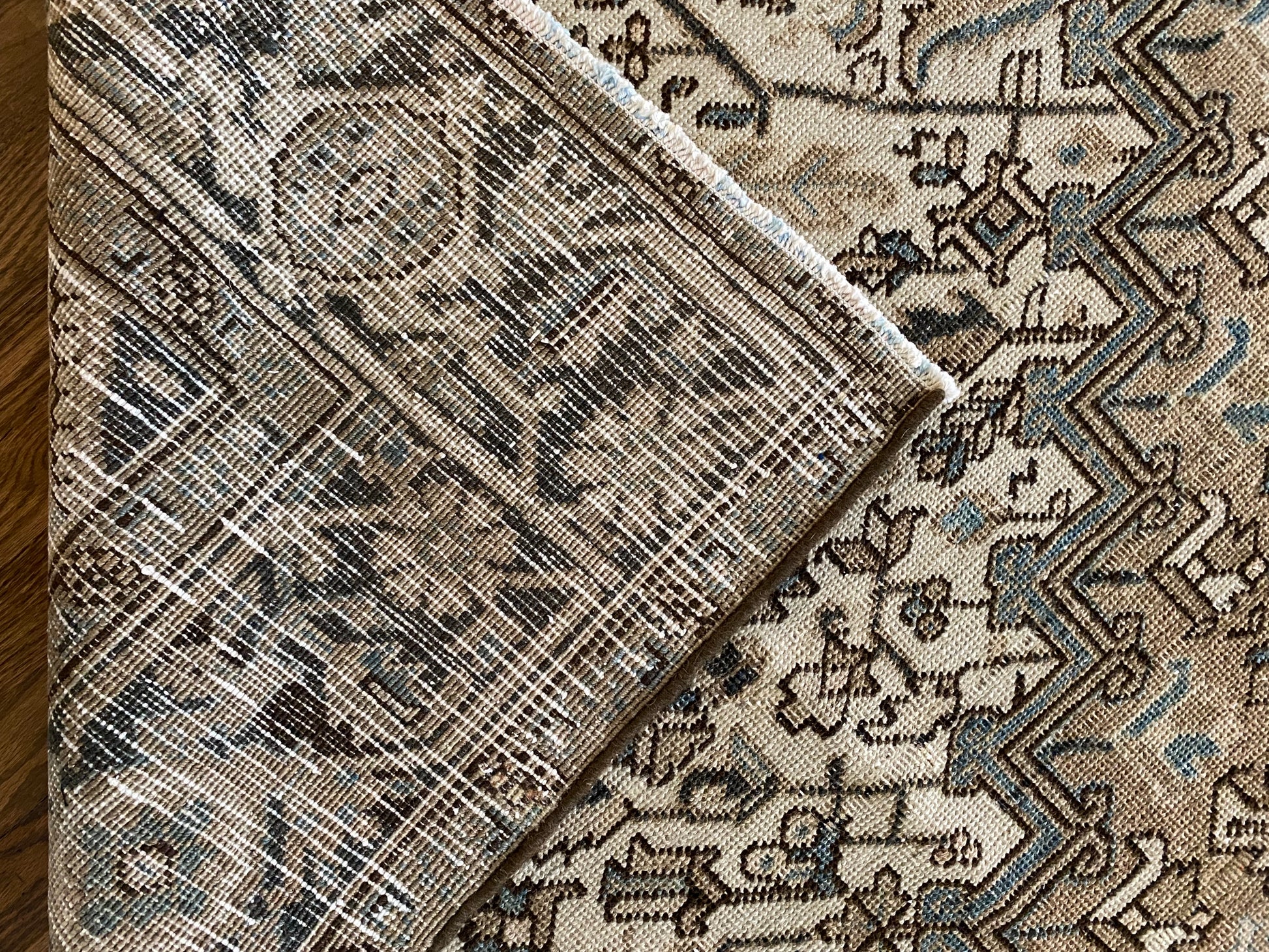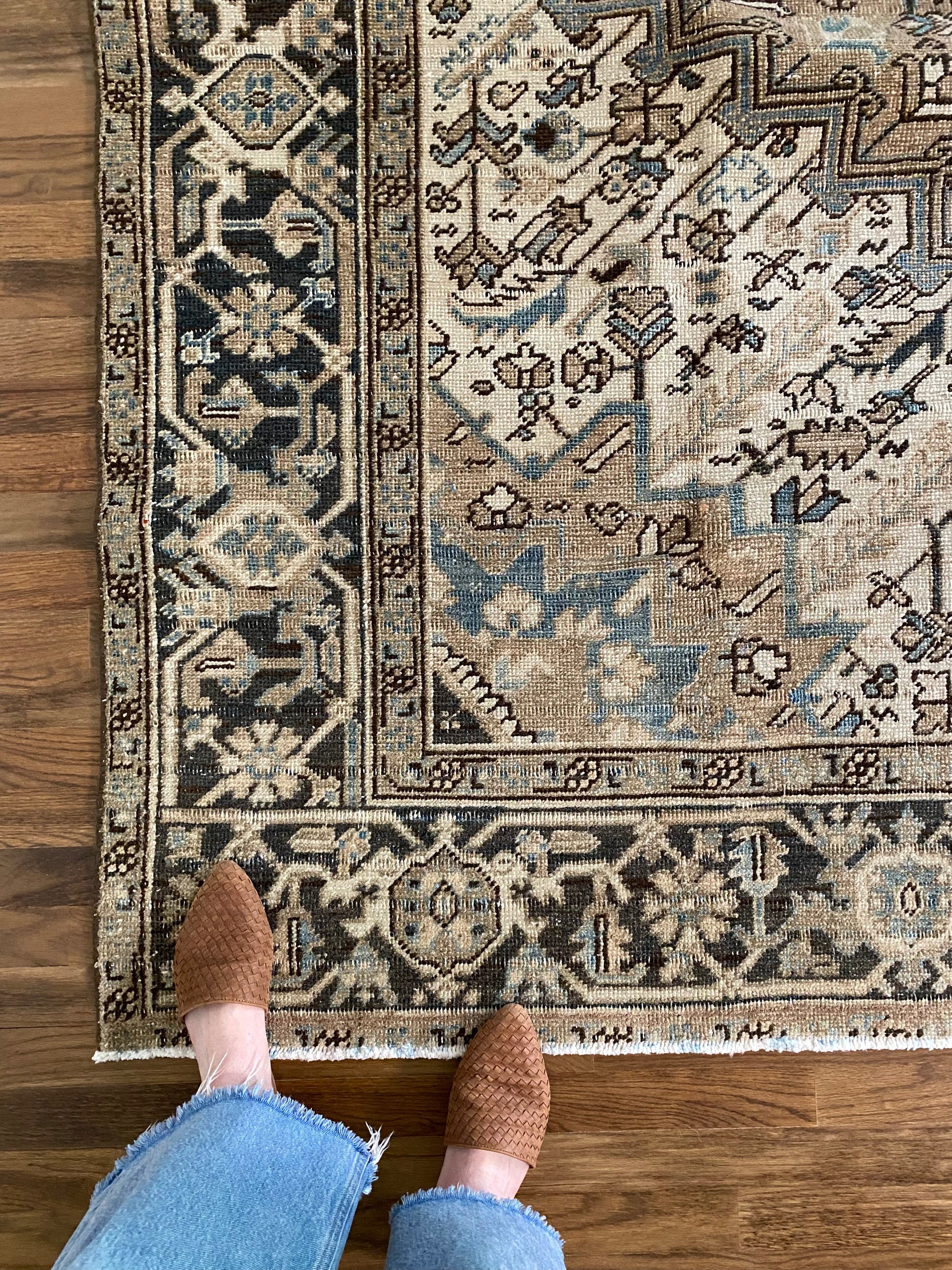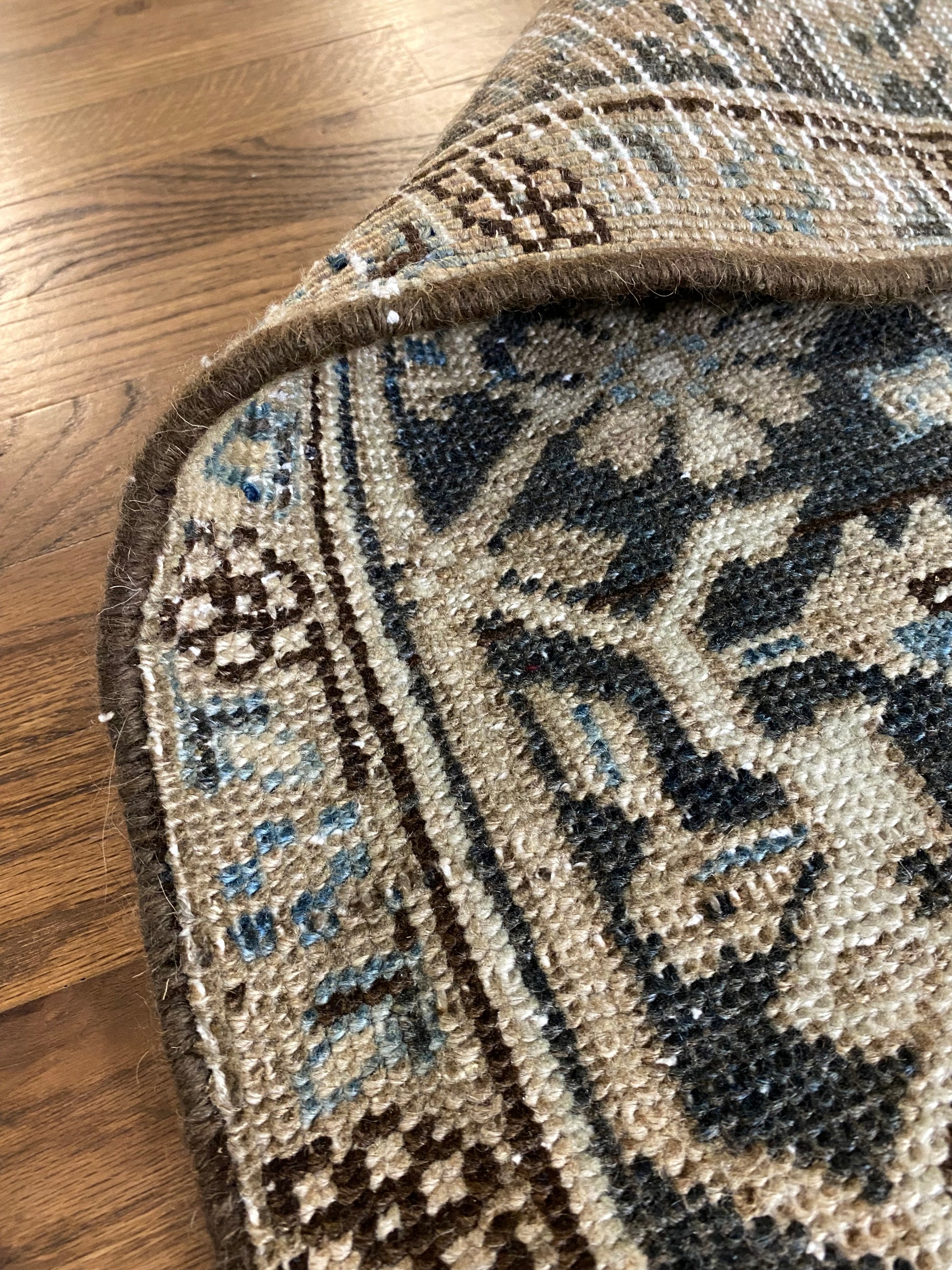 All of our rugs have been professionally cleaned prior to listing. We strive to deliver rugs that everyone loves, but please note that when you purchase from Two Sisters Rugs you are purchasing an item that is pre-owned and vintage by nature. Rugs might have areas of wear, minor repairs, or other unique characteristics, but we believe this is what makes them beautiful and one of a kind. Many rugs do not have perfect lines. All photographs are taken on an iPhone with no filter in natural light unless otherwise noted; colors may vary depending on the placement in your home. Colors may also vary depending on your phone or screen settings. If the area you are placing the rug has less natural light, the rug will appear darker in person. We aim to represent each rugs true colors and designs on the listing photos, but are happy to send additional photos upon request prior to purchase. High quality wool contains a substance called lanolin, which emits a metallic-y, but sweet and grassy scent. ALL SALES ARE FINAL.