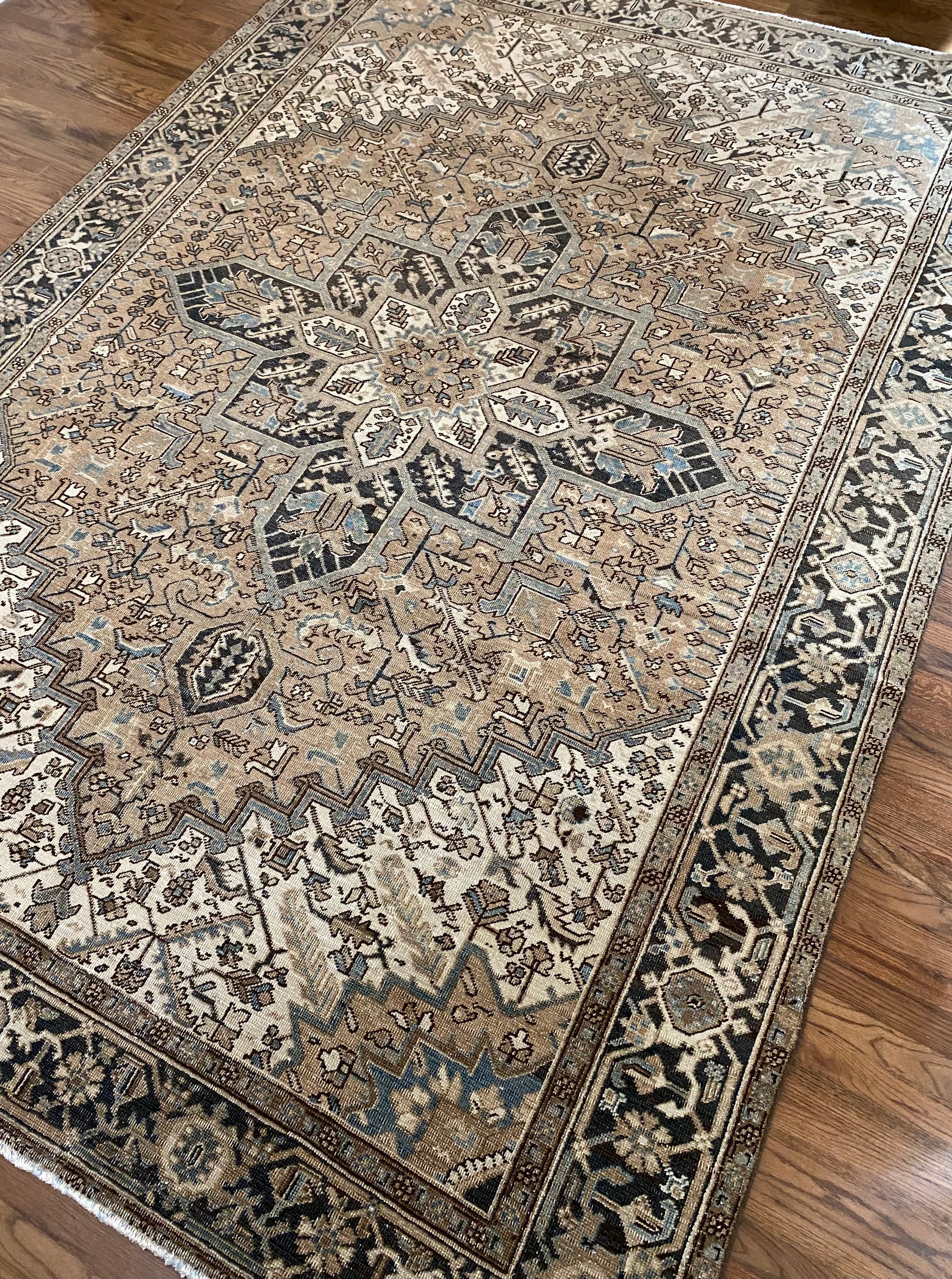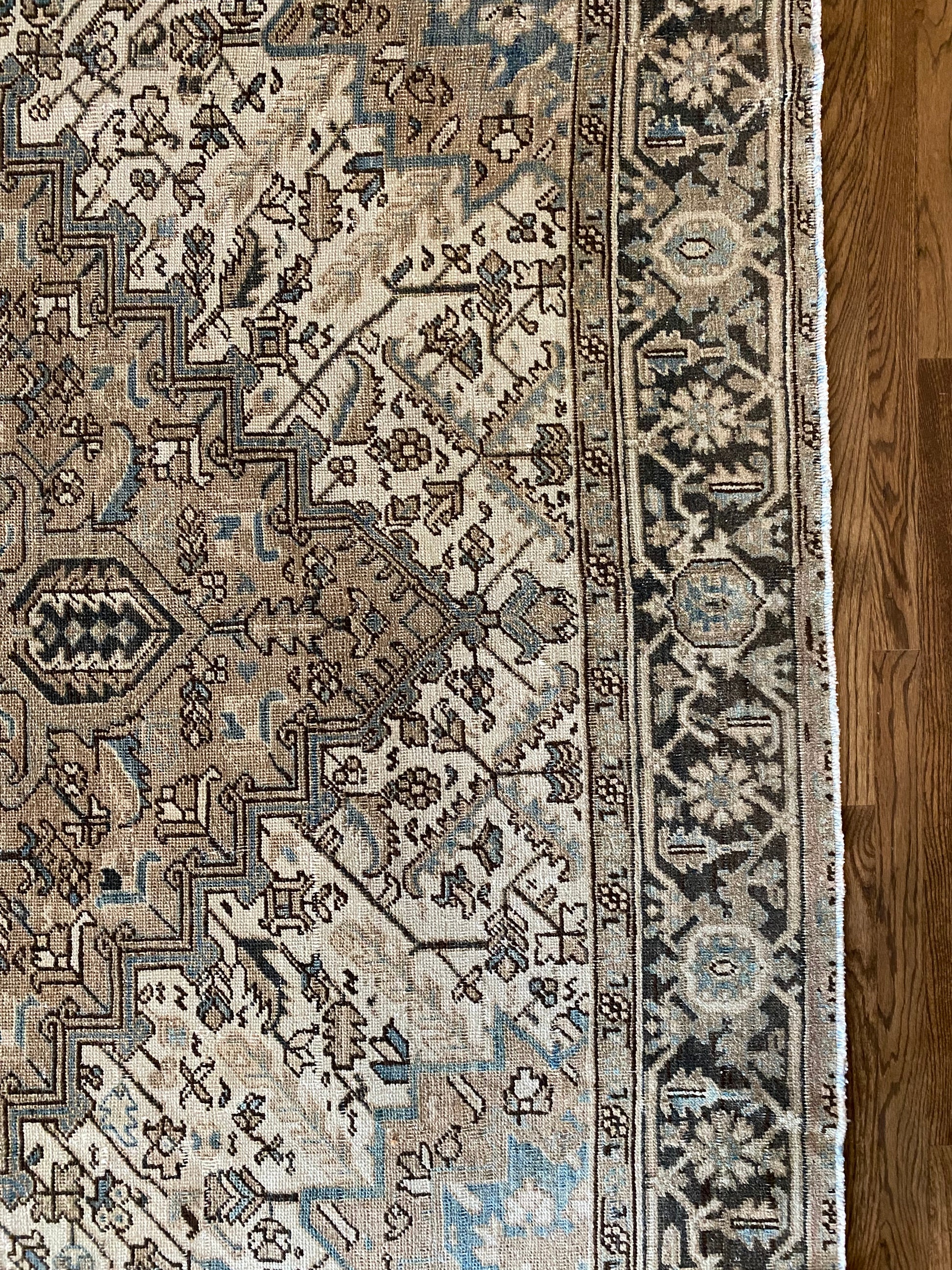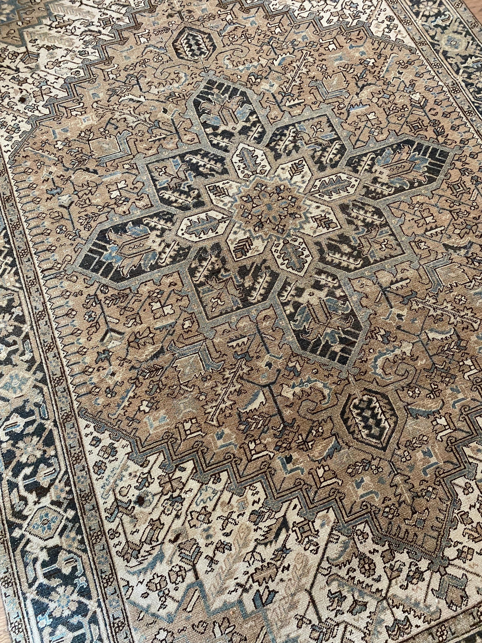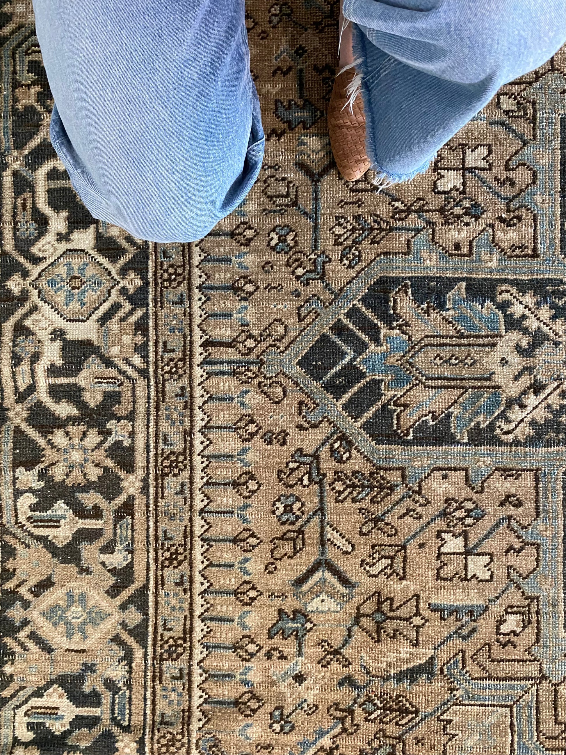 All of our rugs have been professionally cleaned prior to listing. We strive to deliver rugs that everyone loves, but please note that when you purchase from Two Sisters Rugs you are purchasing an item that is pre-owned and vintage by nature. Rugs might have areas of wear, minor repairs, or other unique characteristics, but we believe this is what makes them beautiful and one of a kind. Many rugs do not have perfect lines. All photographs are taken on an iPhone with no filter in natural light unless otherwise noted; colors may vary depending on the placement in your home. Colors may also vary depending on your phone or screen settings. If the area you are placing the rug has less natural light, the rug will appear darker in person. We aim to represent each rugs true colors and designs on the listing photos, but are happy to send additional photos upon request prior to purchase. High quality wool contains a substance called lanolin, which emits a metallic-y, but sweet and grassy scent. ALL SALES ARE FINAL.