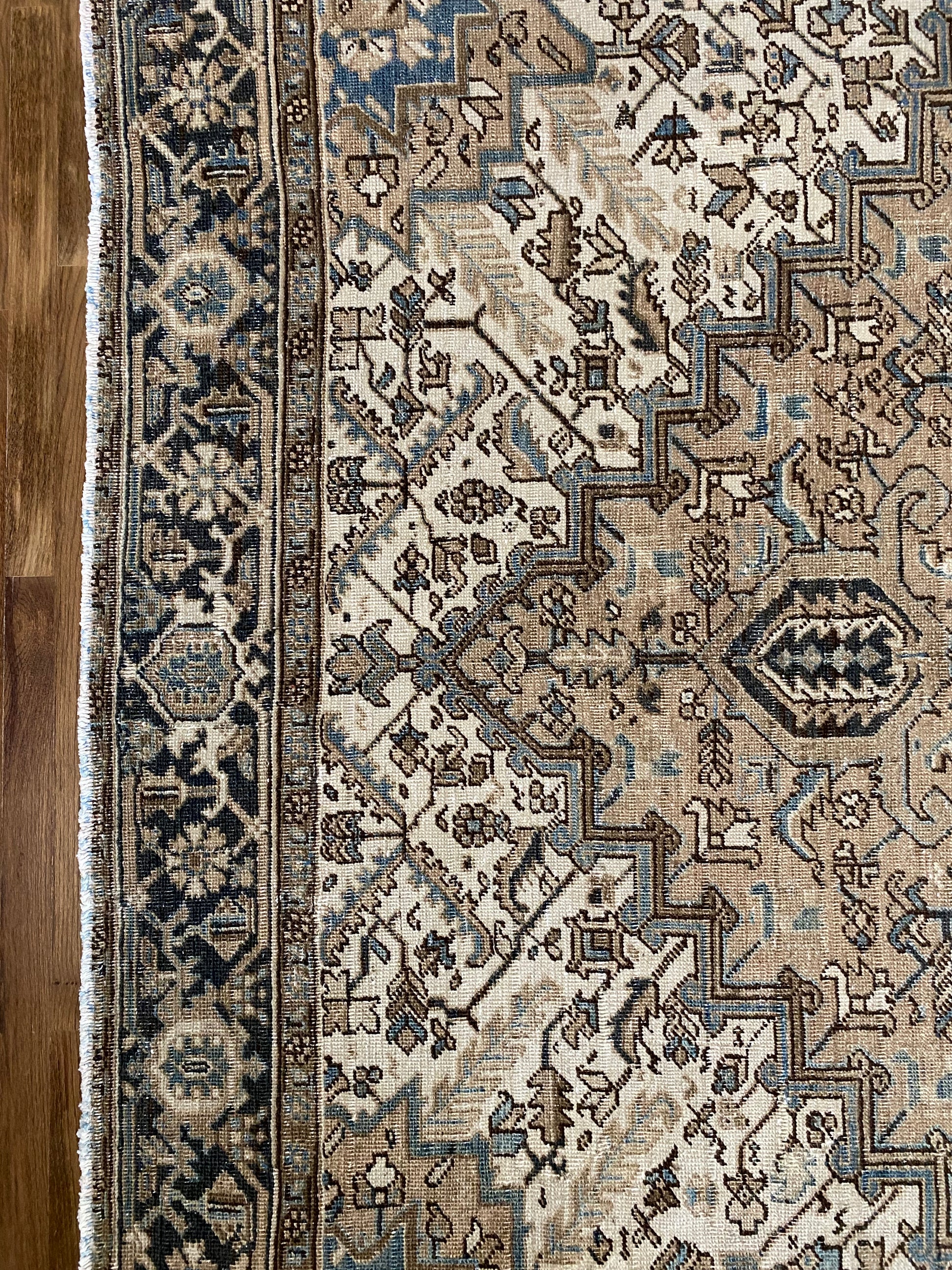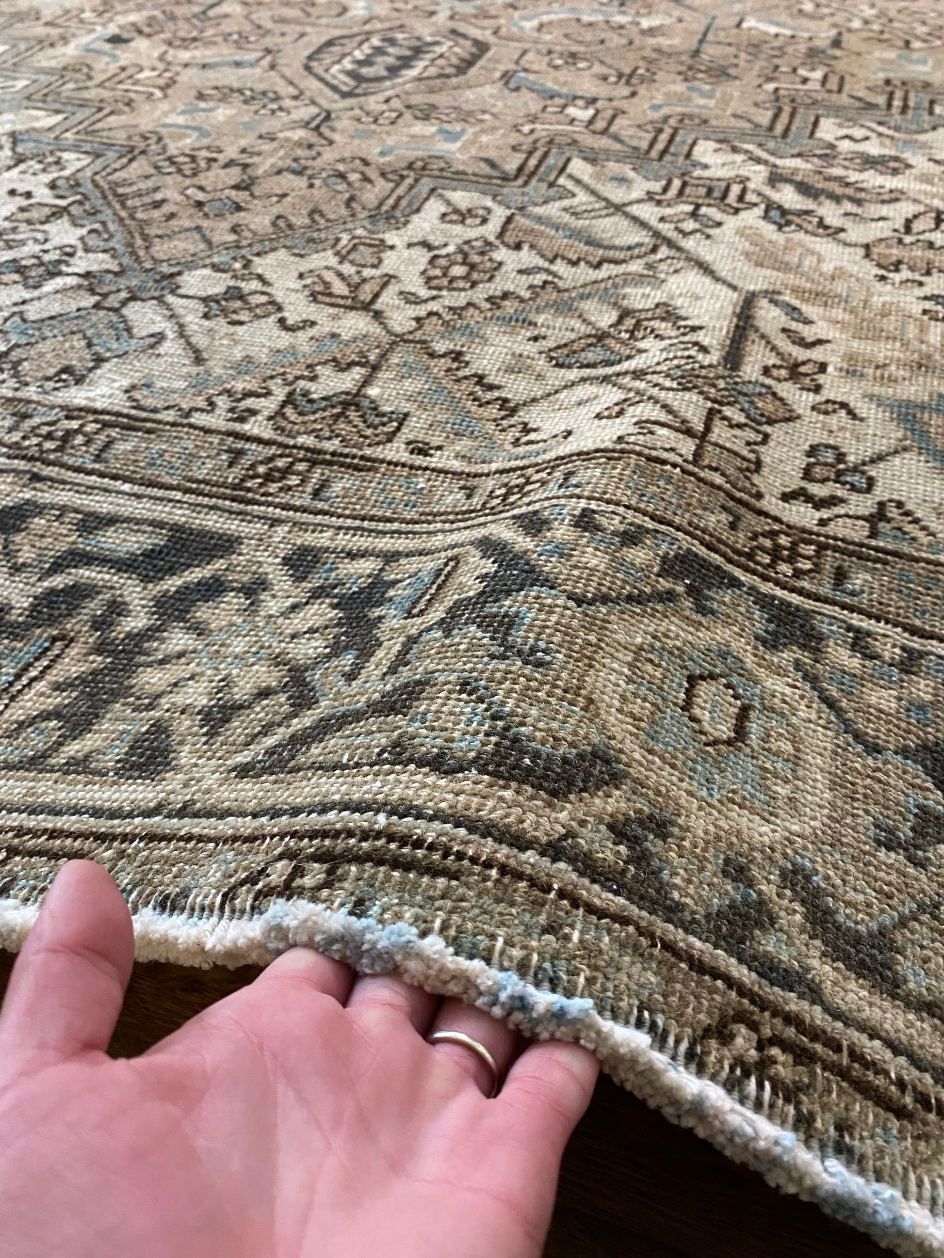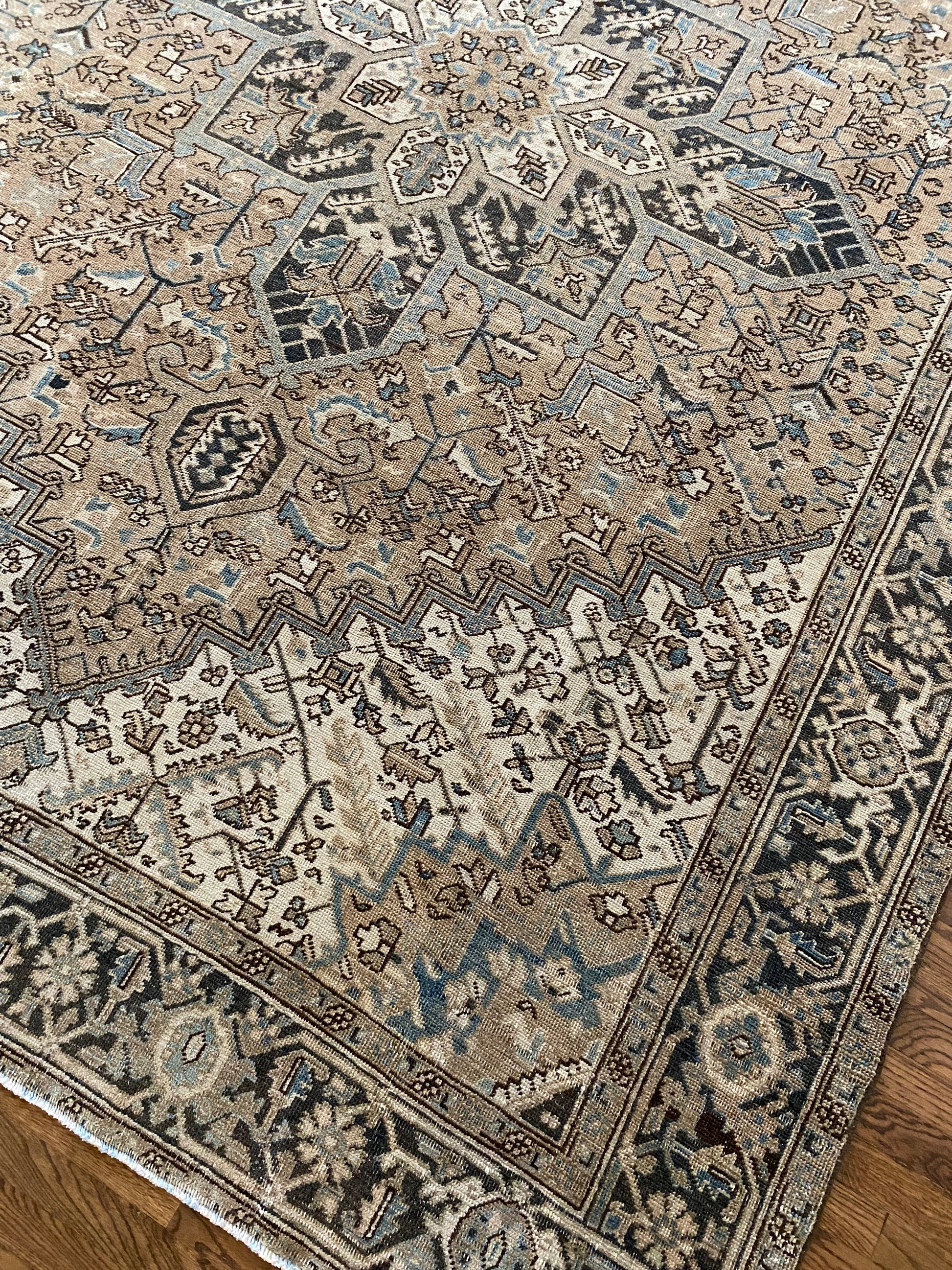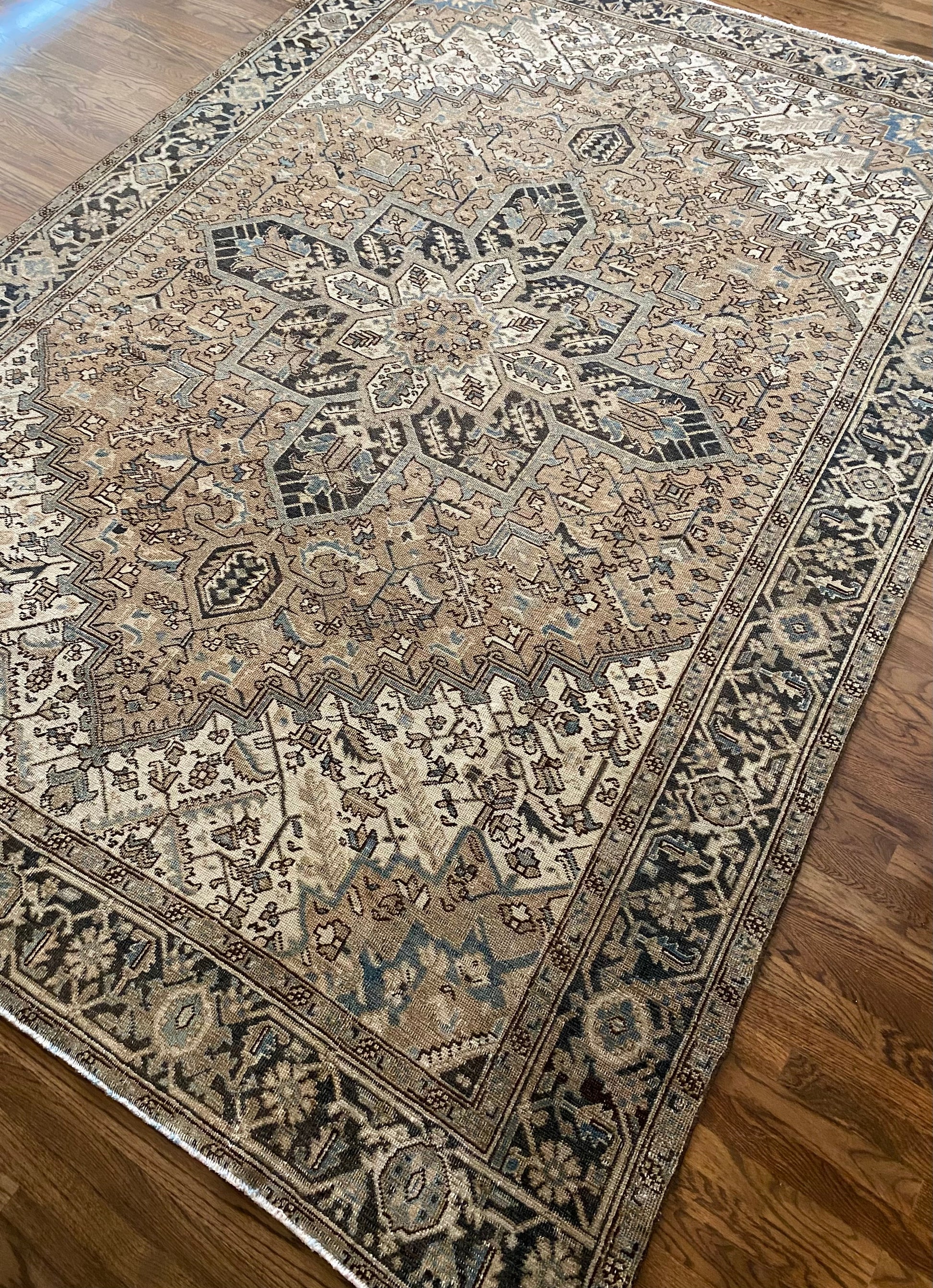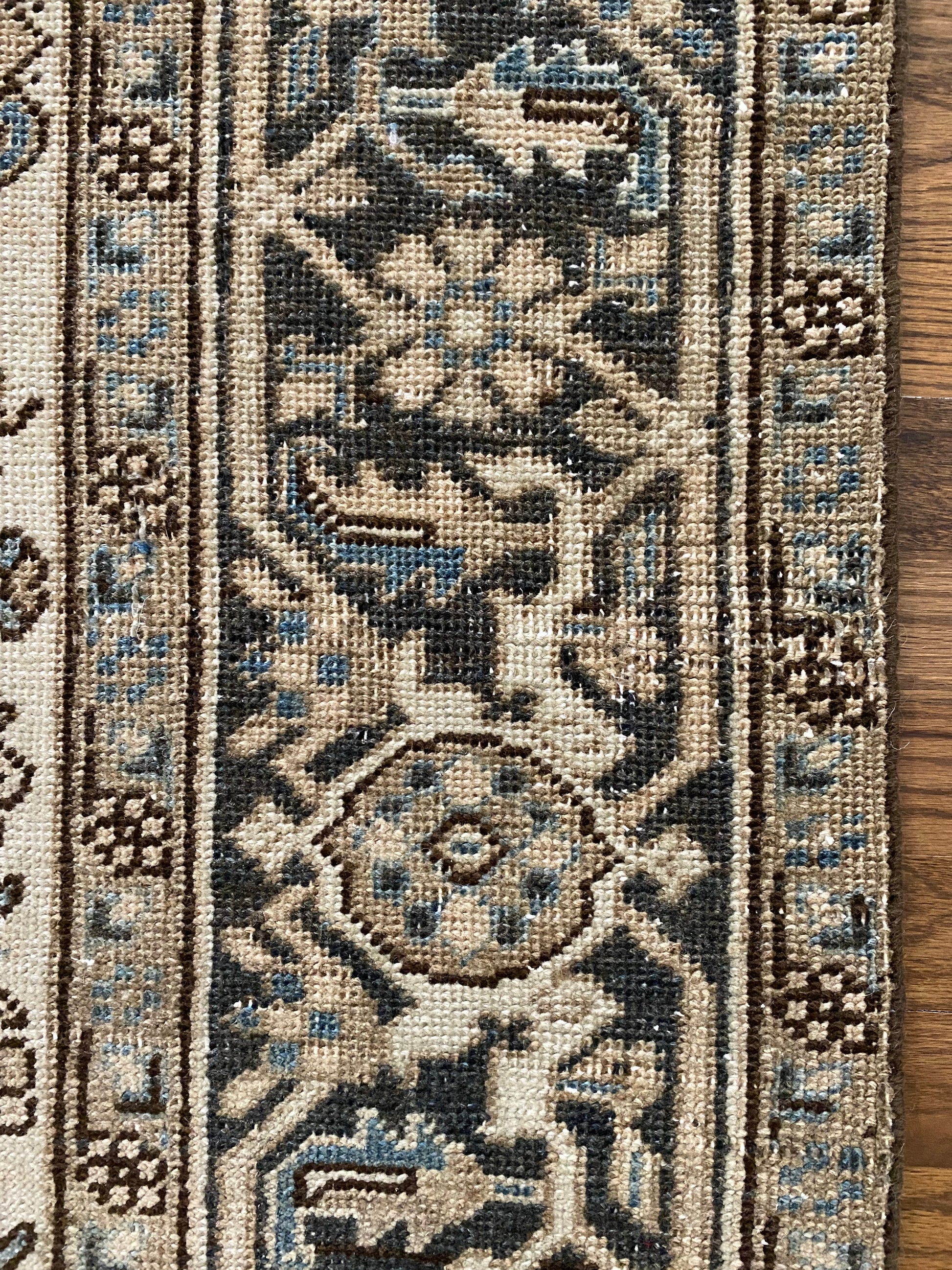 All of our rugs have been professionally cleaned prior to listing. We strive to deliver rugs that everyone loves, but please note that when you purchase from Two Sisters Rugs you are purchasing an item that is pre-owned and vintage by nature. Rugs might have areas of wear, minor repairs, or other unique characteristics, but we believe this is what makes them beautiful and one of a kind. Many rugs do not have perfect lines. All photographs are taken on an iPhone with no filter in natural light unless otherwise noted; colors may vary depending on the placement in your home. Colors may also vary depending on your phone or screen settings. If the area you are placing the rug has less natural light, the rug will appear darker in person. We aim to represent each rugs true colors and designs on the listing photos, but are happy to send additional photos upon request prior to purchase. High quality wool contains a substance called lanolin, which emits a metallic-y, but sweet and grassy scent. ALL SALES ARE FINAL.