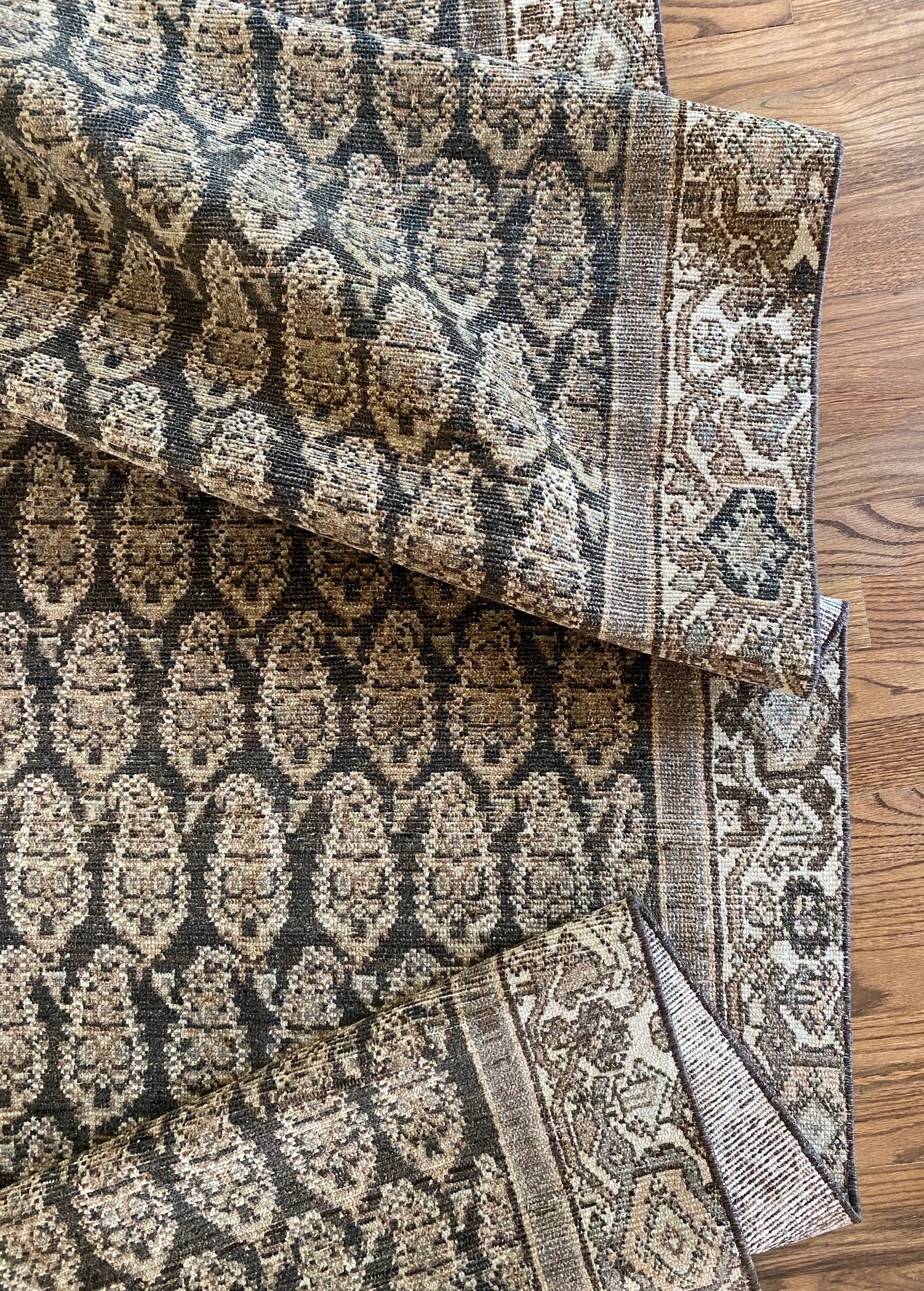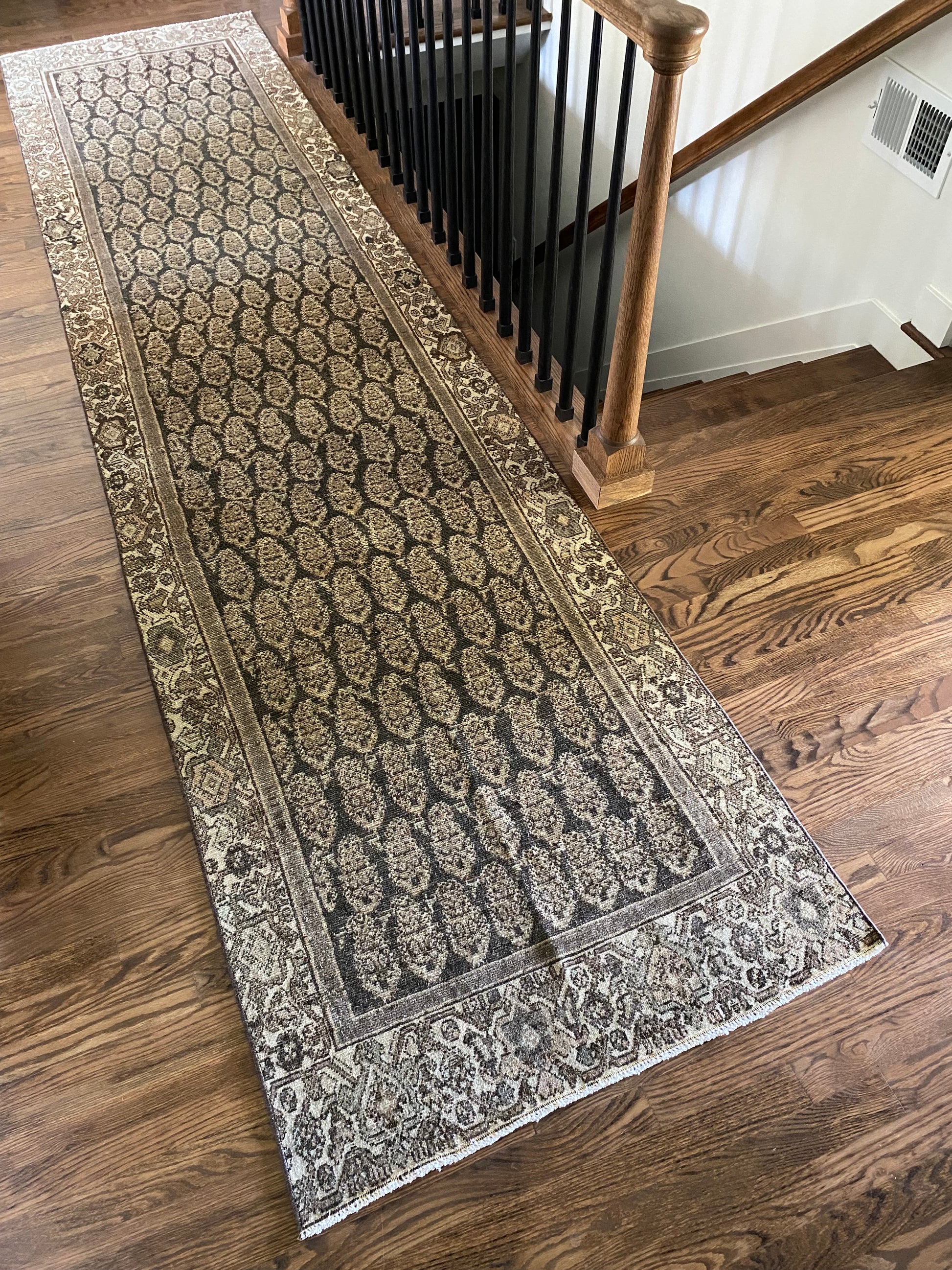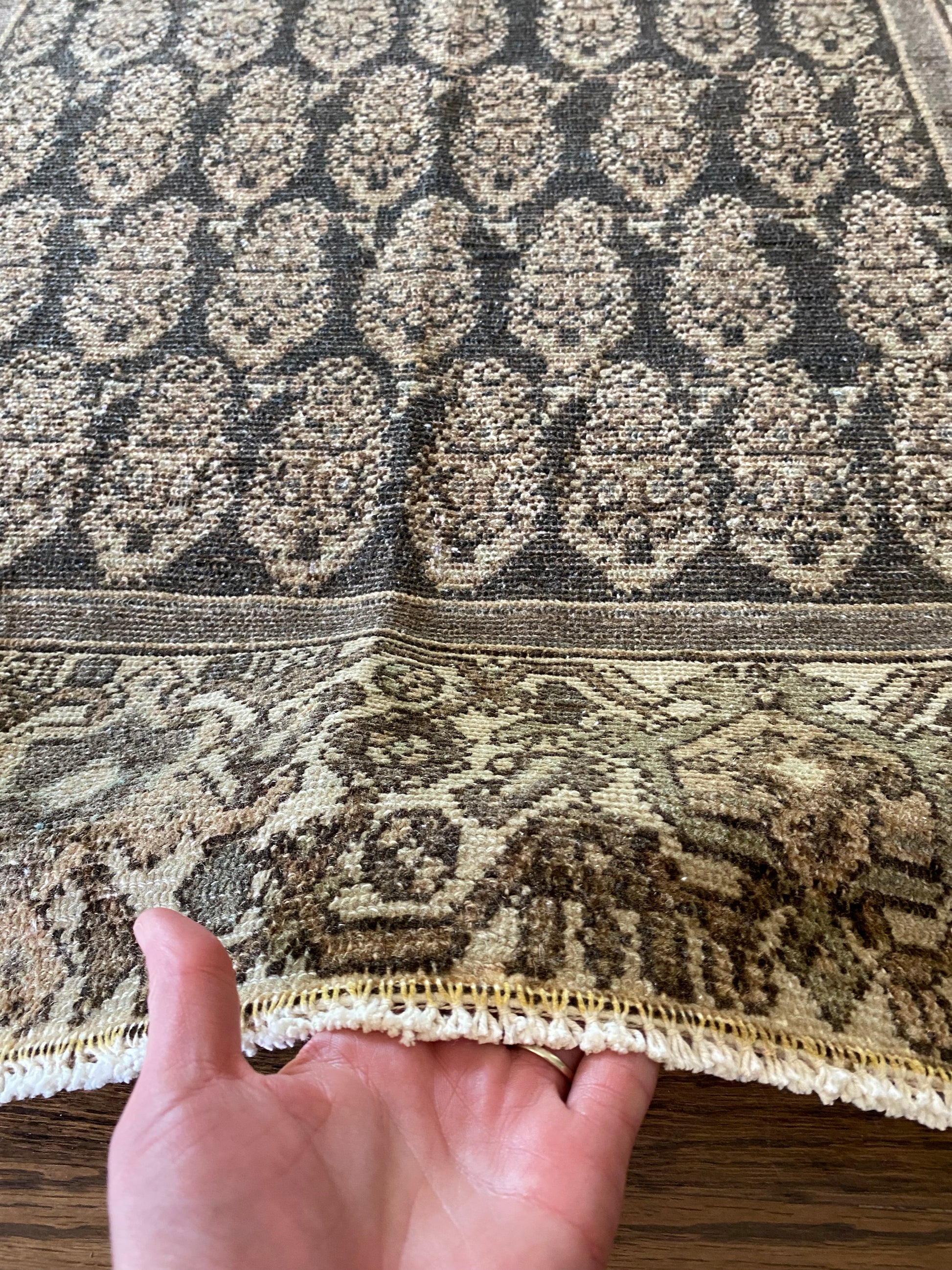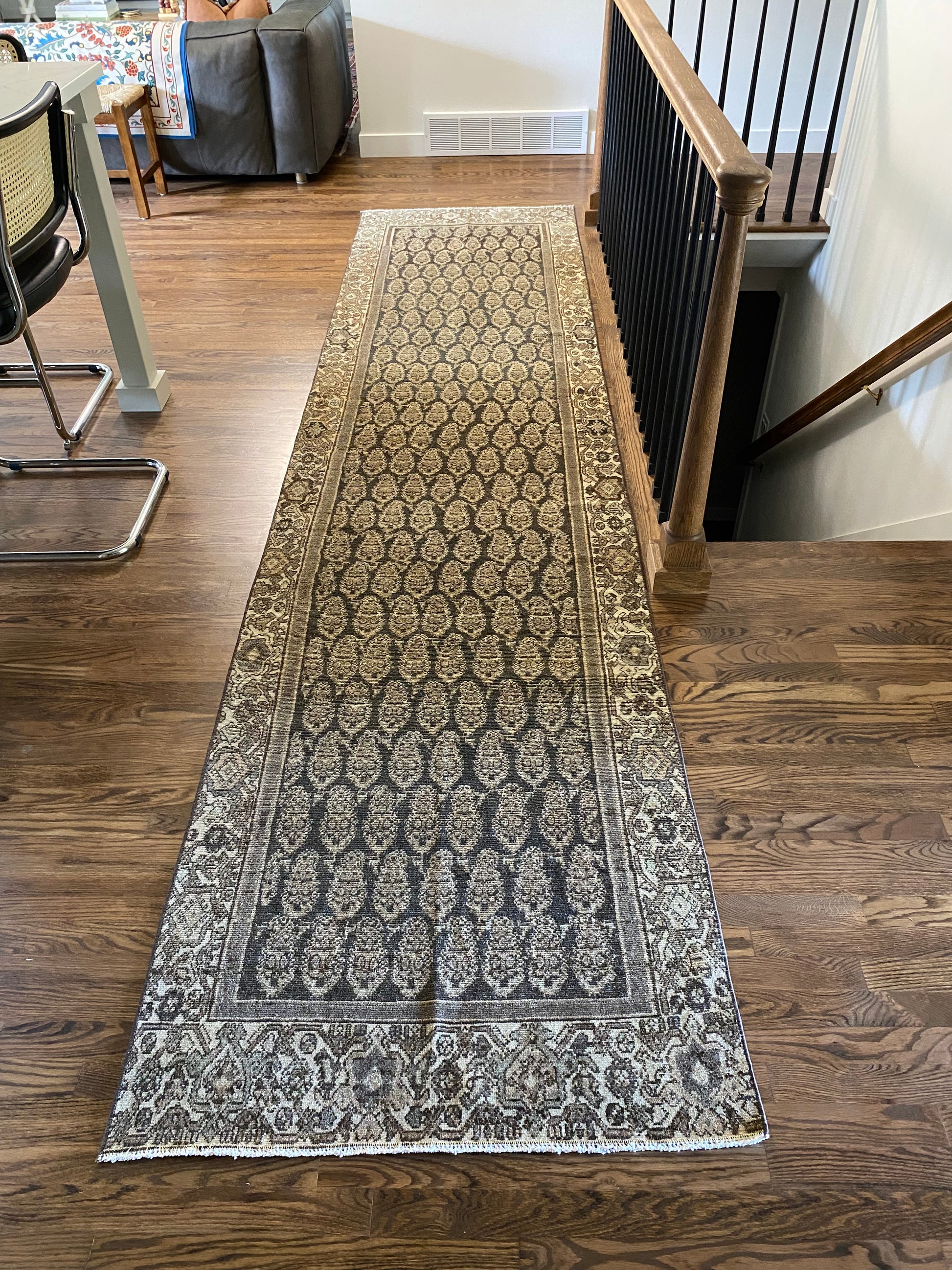 All of our rugs have been professionally cleaned prior to listing. We strive to deliver rugs that everyone loves, but please note that when you purchase from Two Sisters Rugs you are purchasing an item that is pre-owned and vintage by nature. Rugs might have areas of wear, minor repairs, or other unique characteristics, but we believe this is what makes them beautiful and one of a kind. Many rugs do not have perfect lines. All photographs are taken on an iPhone with no filter in natural light unless otherwise noted; colors may vary depending on the placement in your home. Colors may also vary depending on your phone or screen settings. If the area you are placing the rug has less natural light, the rug will appear darker in person. We aim to represent each rugs true colors and designs on the listing photos, but are happy to send additional photos upon request prior to purchase. High quality wool contains a substance called lanolin, which emits a metallic-y, but sweet and grassy scent. ALL SALES ARE FINAL.