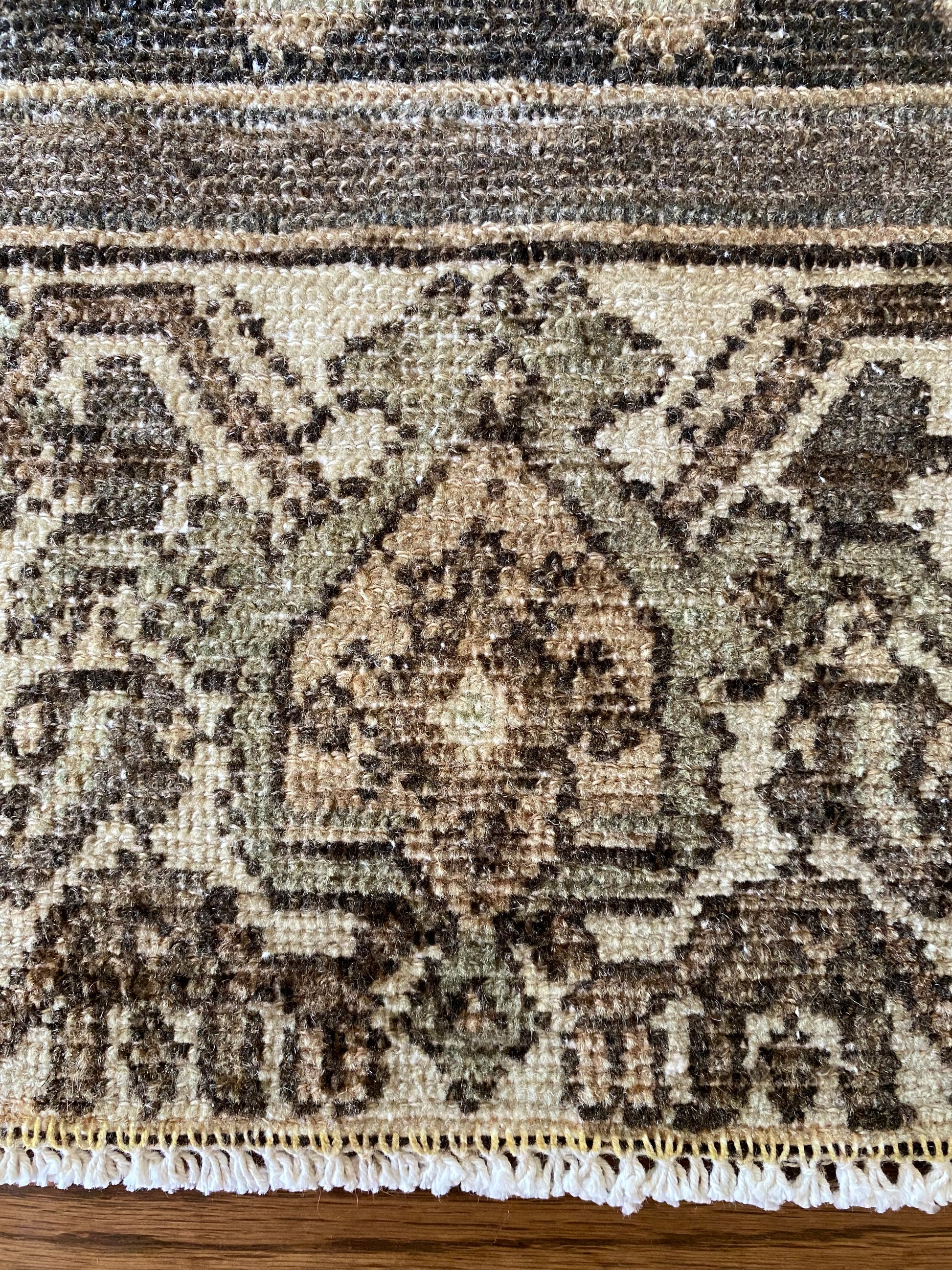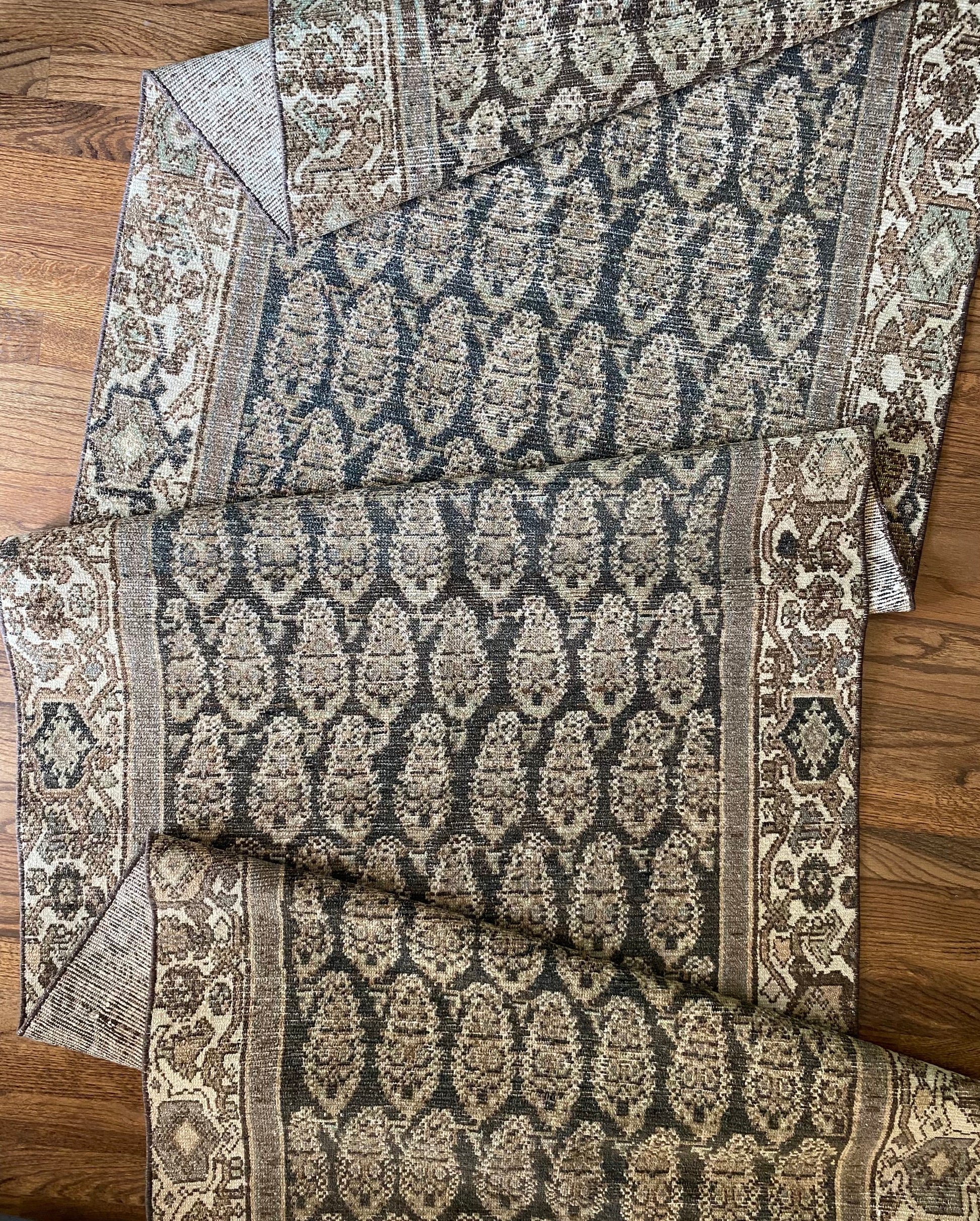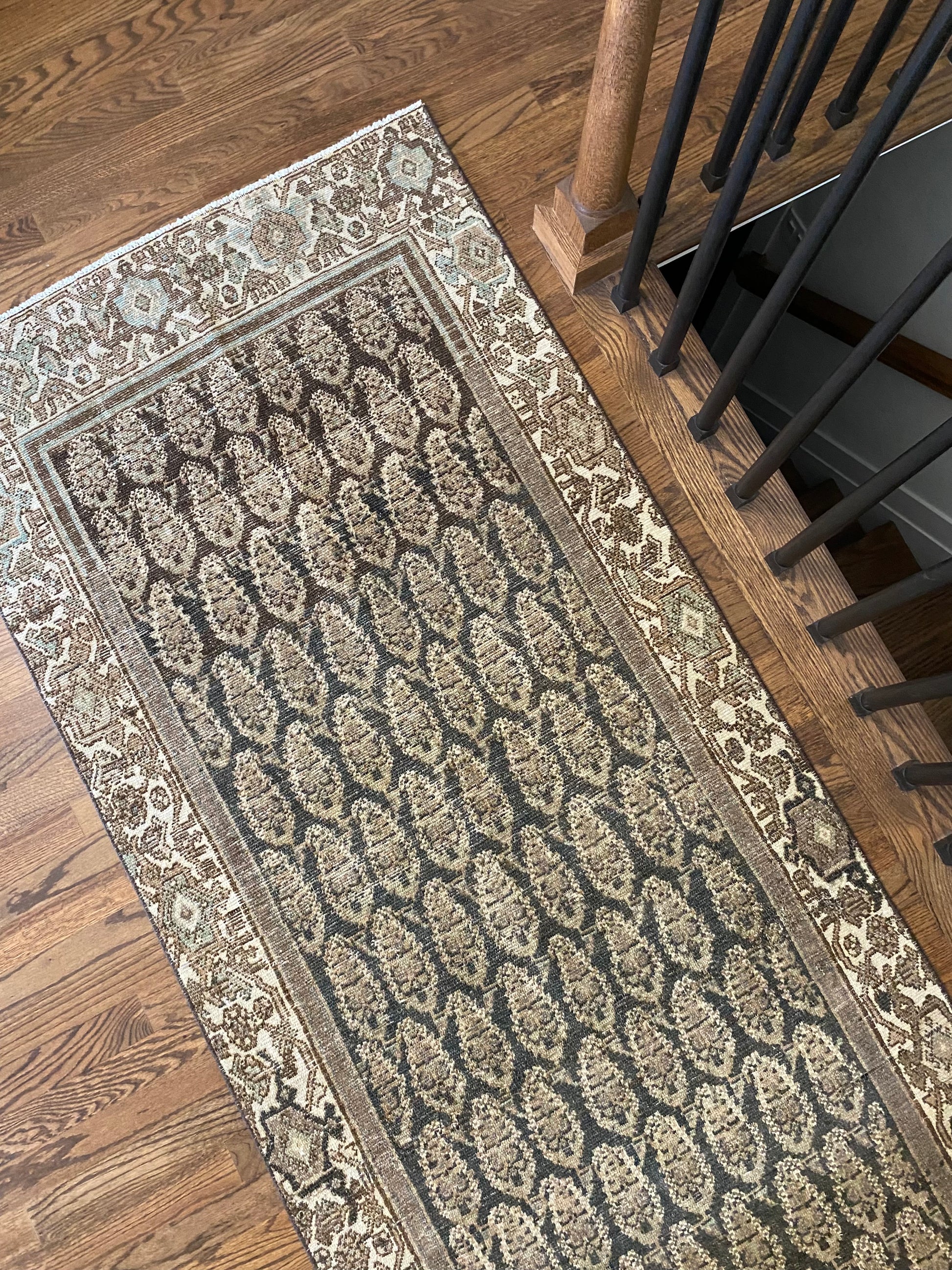 All of our rugs have been professionally cleaned prior to listing. We strive to deliver rugs that everyone loves, but please note that when you purchase from Two Sisters Rugs you are purchasing an item that is pre-owned and vintage by nature. Rugs might have areas of wear, minor repairs, or other unique characteristics, but we believe this is what makes them beautiful and one of a kind. Many rugs do not have perfect lines. All photographs are taken on an iPhone with no filter in natural light unless otherwise noted; colors may vary depending on the placement in your home. Colors may also vary depending on your phone or screen settings. If the area you are placing the rug has less natural light, the rug will appear darker in person. We aim to represent each rugs true colors and designs on the listing photos, but are happy to send additional photos upon request prior to purchase. High quality wool contains a substance called lanolin, which emits a metallic-y, but sweet and grassy scent. ALL SALES ARE FINAL.