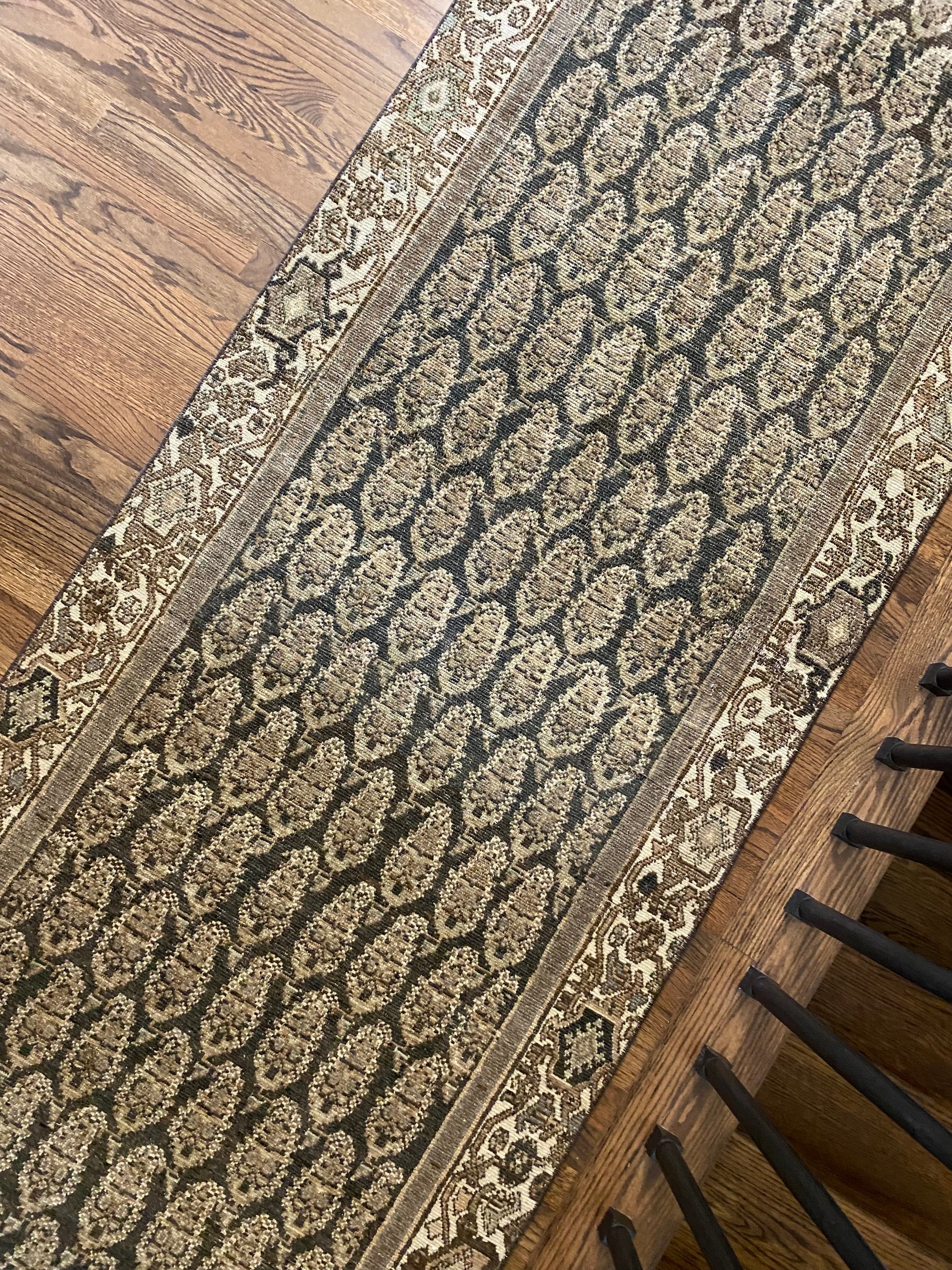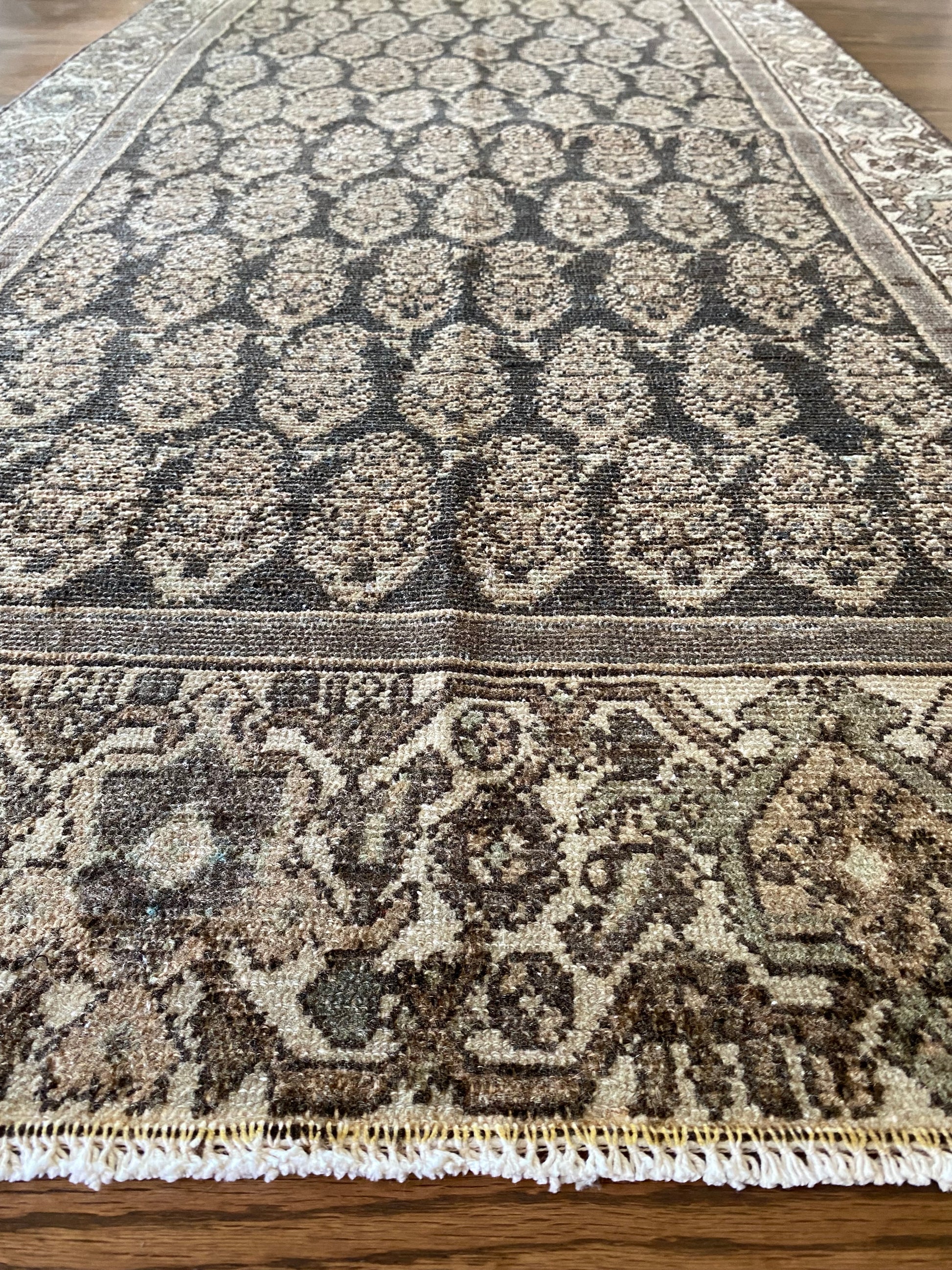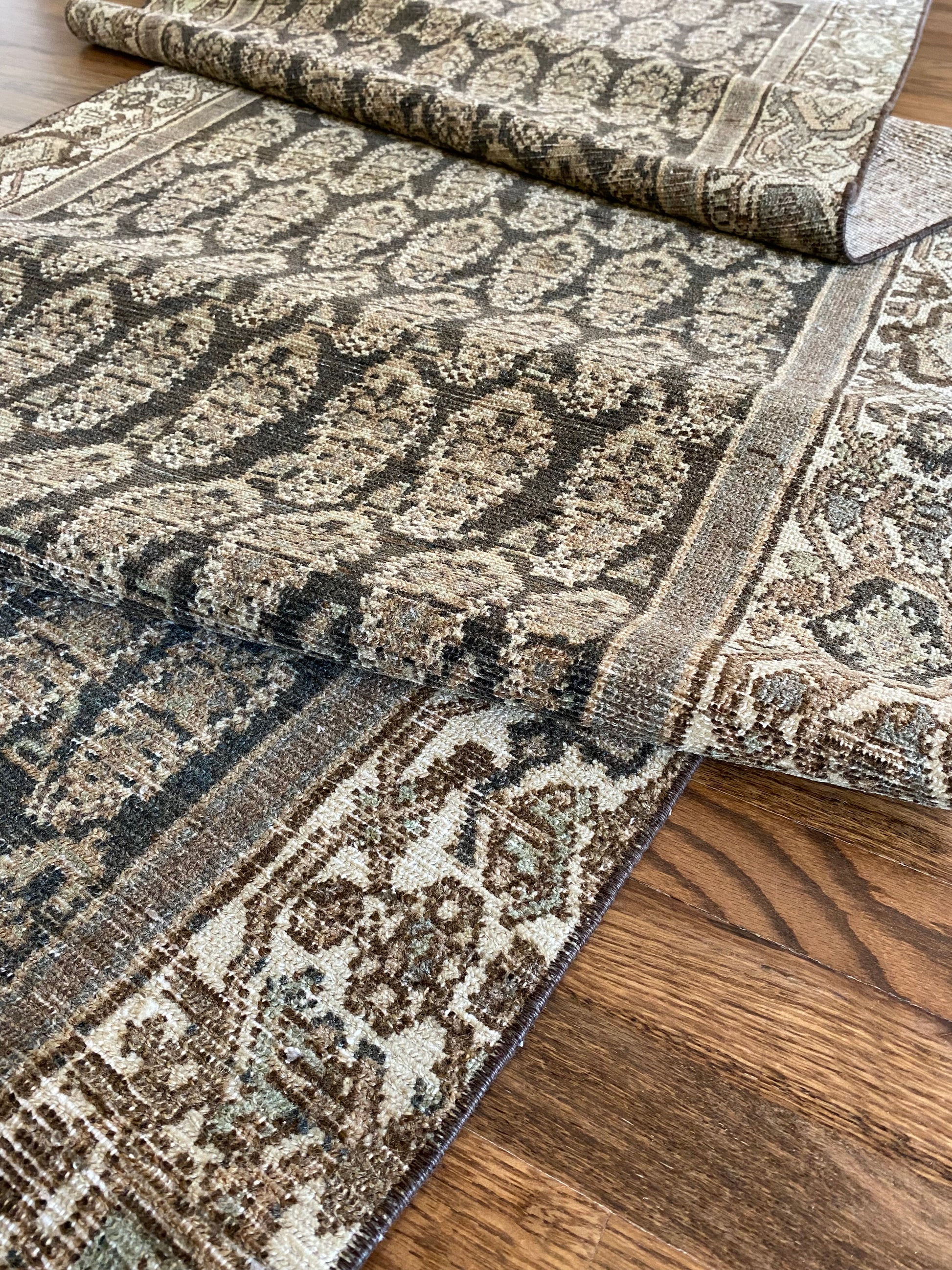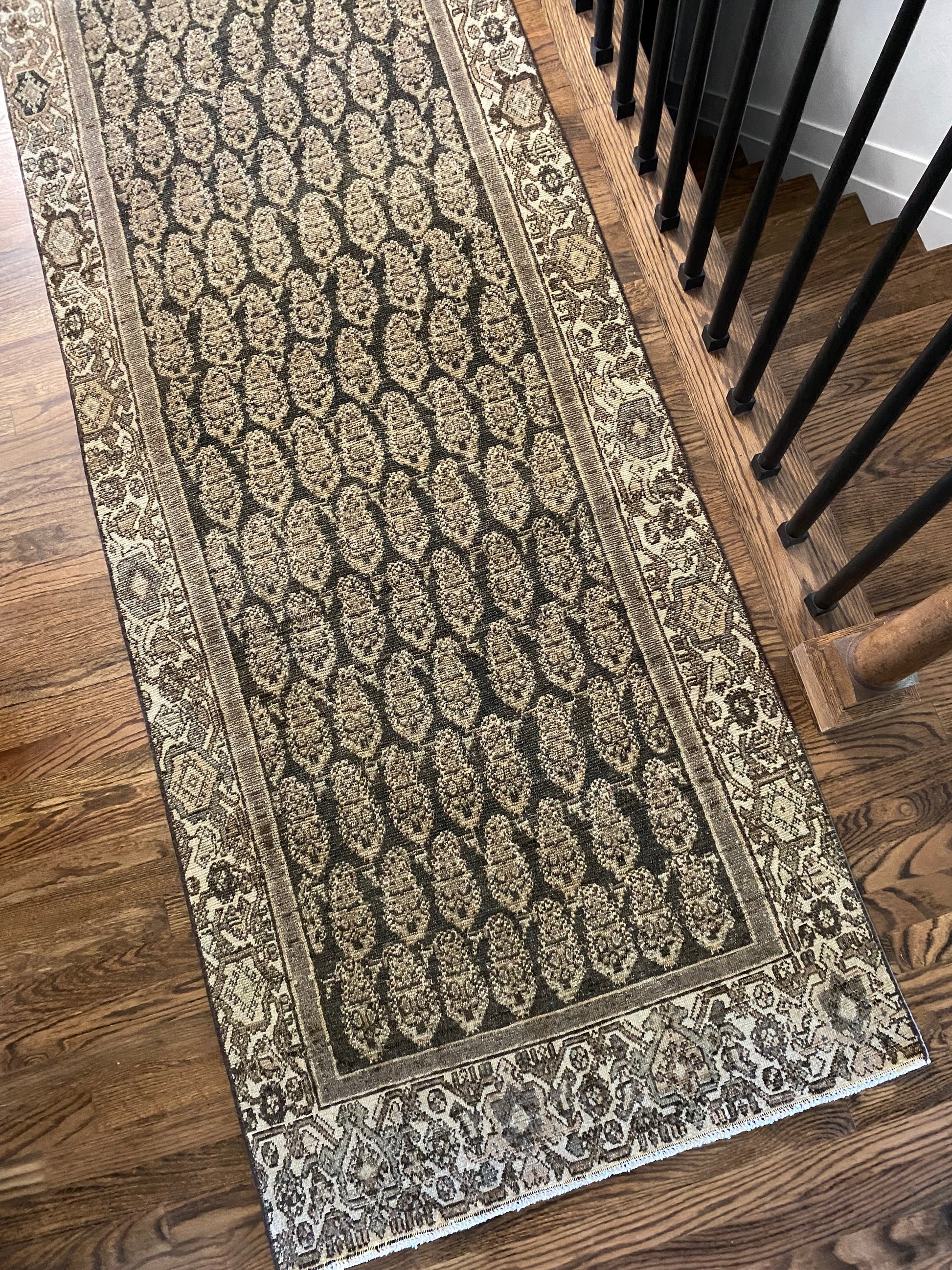 All of our rugs have been professionally cleaned prior to listing. We strive to deliver rugs that everyone loves, but please note that when you purchase from Two Sisters Rugs you are purchasing an item that is pre-owned and vintage by nature. Rugs might have areas of wear, minor repairs, or other unique characteristics, but we believe this is what makes them beautiful and one of a kind. Many rugs do not have perfect lines. All photographs are taken on an iPhone with no filter in natural light unless otherwise noted; colors may vary depending on the placement in your home. Colors may also vary depending on your phone or screen settings. If the area you are placing the rug has less natural light, the rug will appear darker in person. We aim to represent each rugs true colors and designs on the listing photos, but are happy to send additional photos upon request prior to purchase. High quality wool contains a substance called lanolin, which emits a metallic-y, but sweet and grassy scent. ALL SALES ARE FINAL.