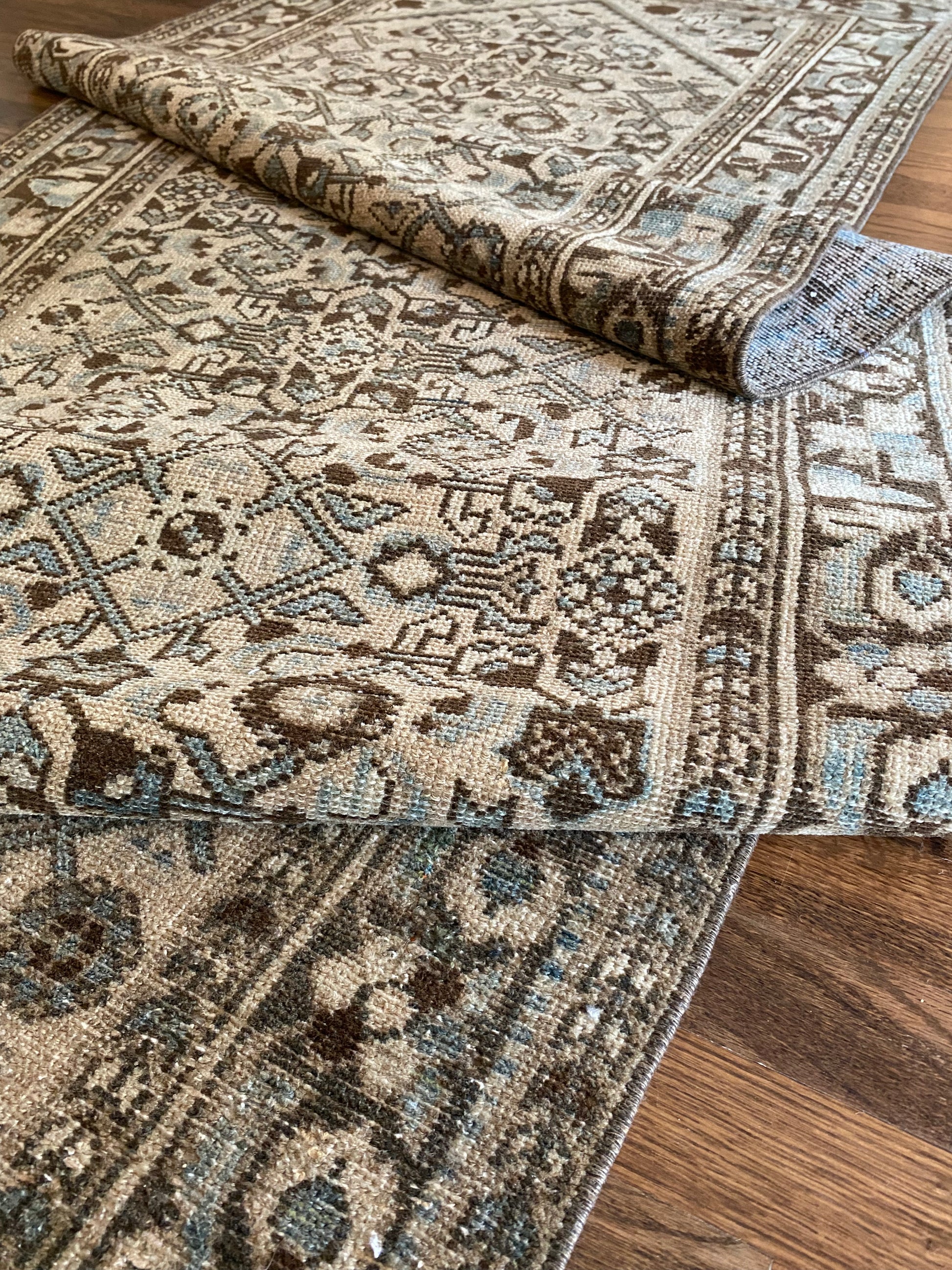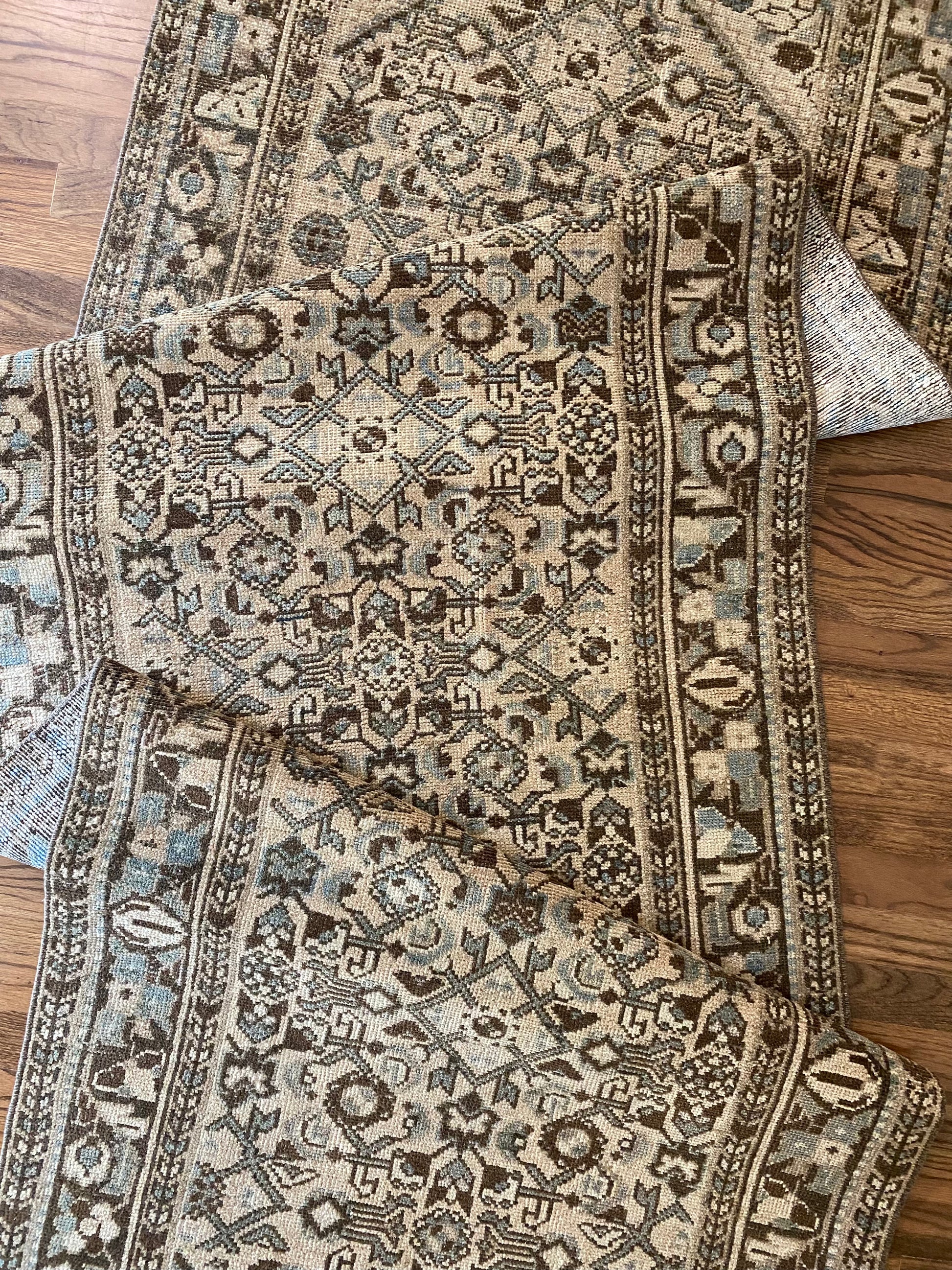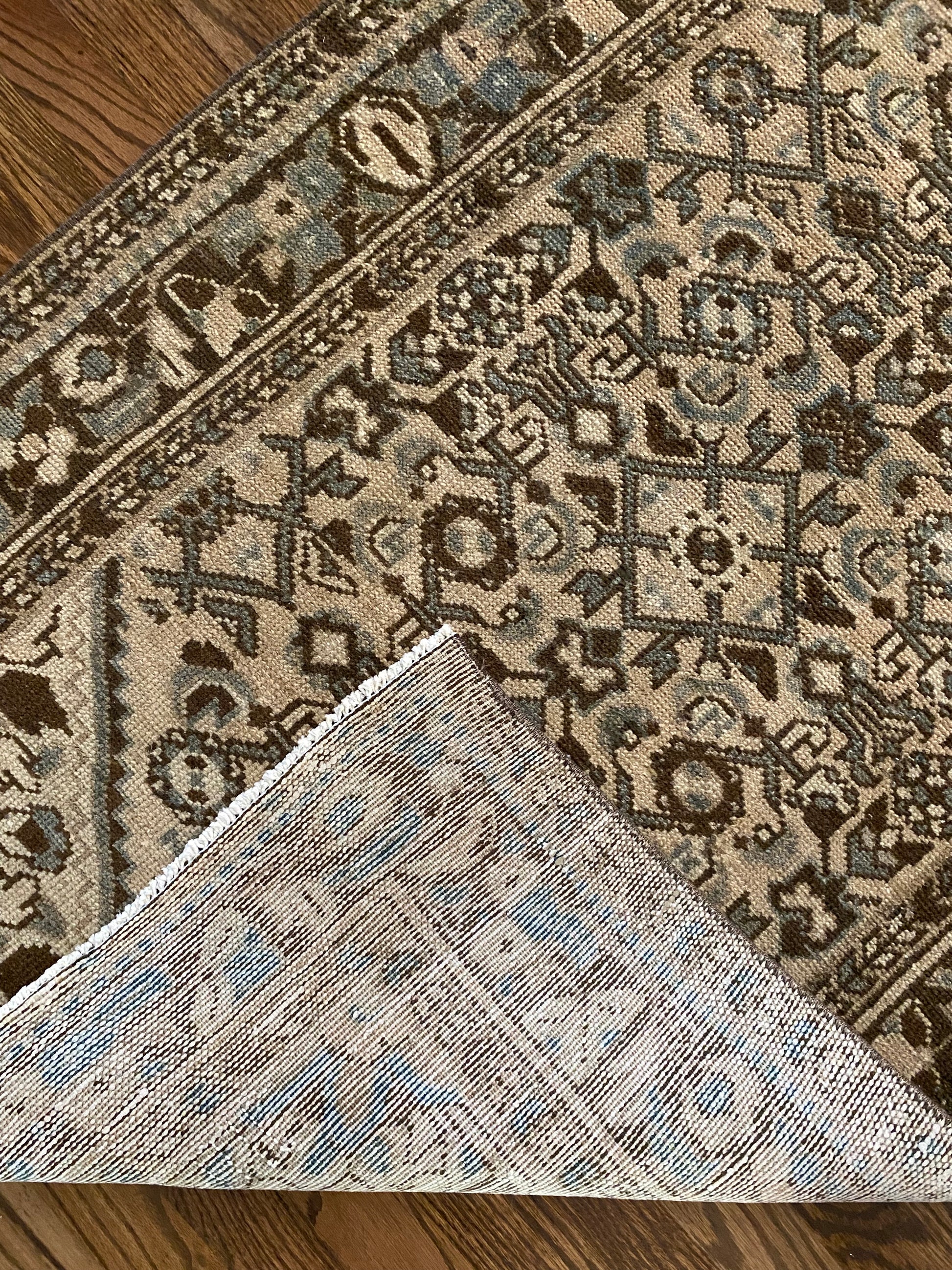 All of our rugs have been professionally cleaned prior to listing. We strive to deliver rugs that everyone loves, but please note that when you purchase from Two Sisters Rugs you are purchasing an item that is pre-owned and vintage by nature. Rugs might have areas of wear, minor repairs, or other unique characteristics, but we believe this is what makes them beautiful and one of a kind. Many rugs do not have perfect lines. All photographs are taken on an iPhone with no filter in natural light unless otherwise noted; colors may vary depending on the placement in your home. Colors may also vary depending on your phone or screen settings. If the area you are placing the rug has less natural light, the rug will appear darker in person. We aim to represent each rugs true colors and designs on the listing photos, but are happy to send additional photos upon request prior to purchase. High quality wool contains a substance called lanolin, which emits a metallic-y, but sweet and grassy scent. ALL SALES ARE FINAL.