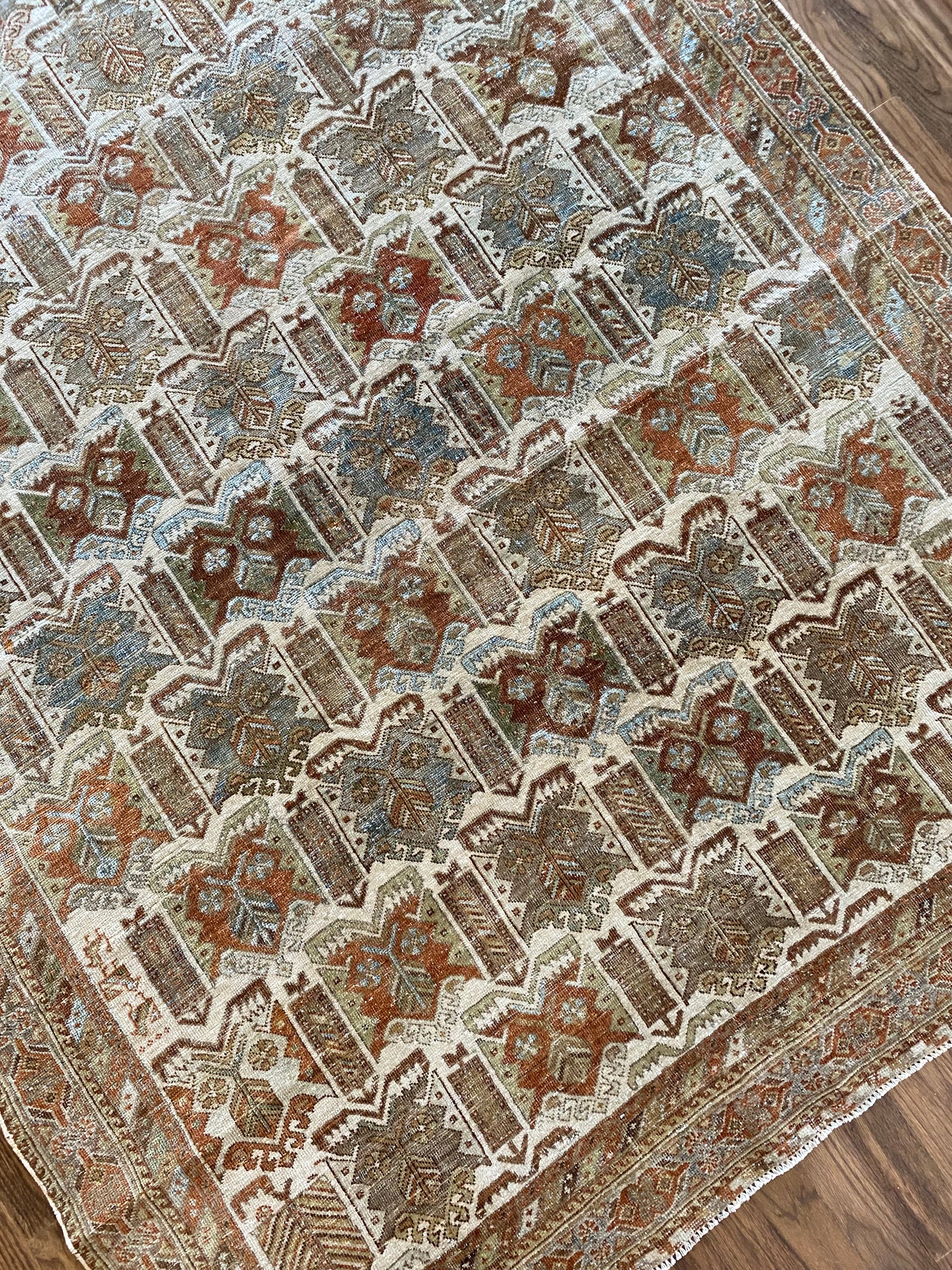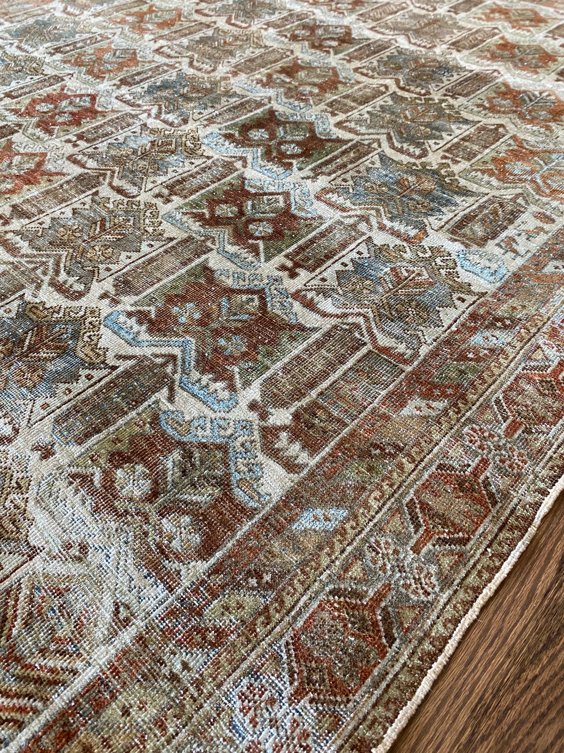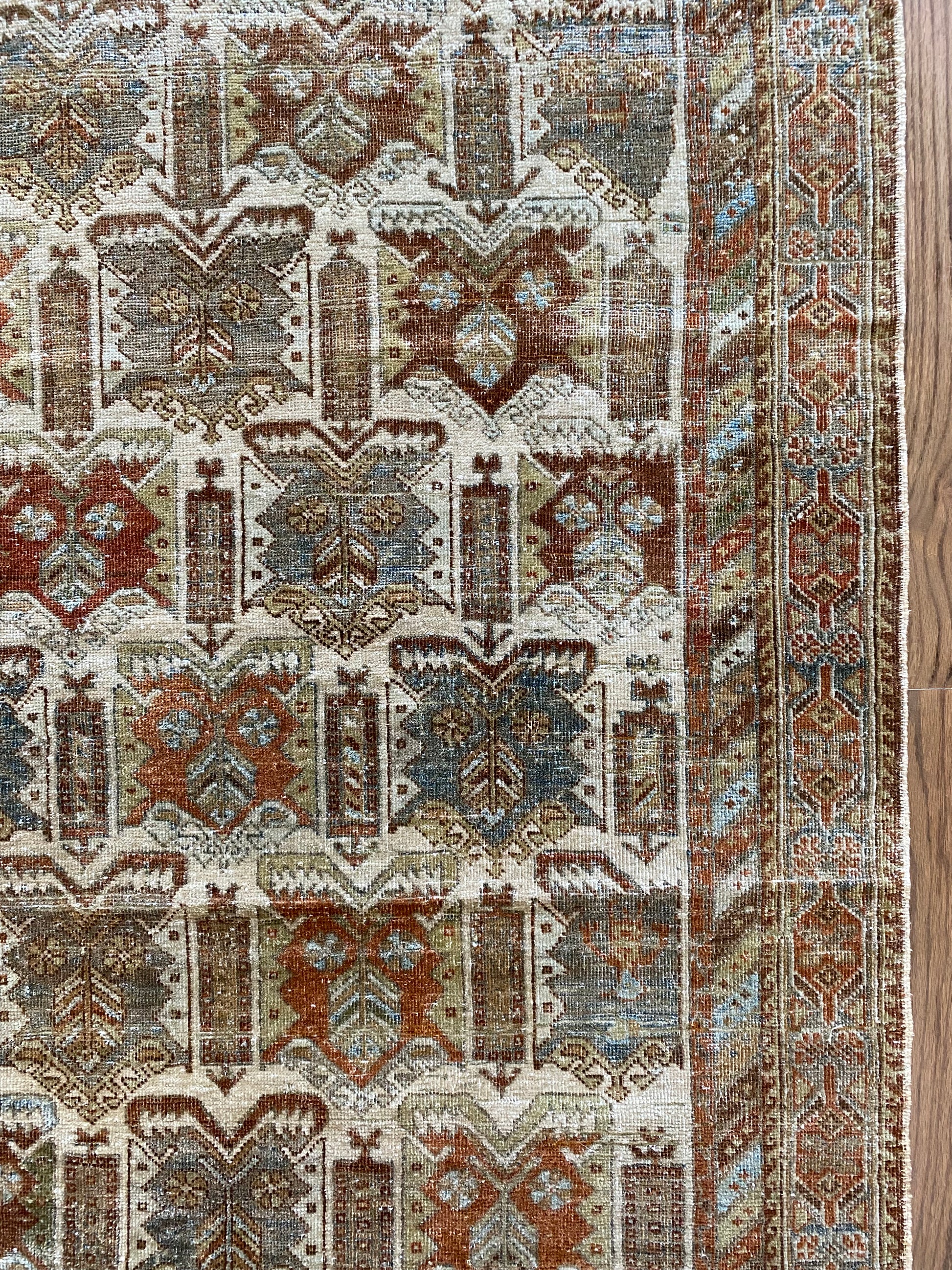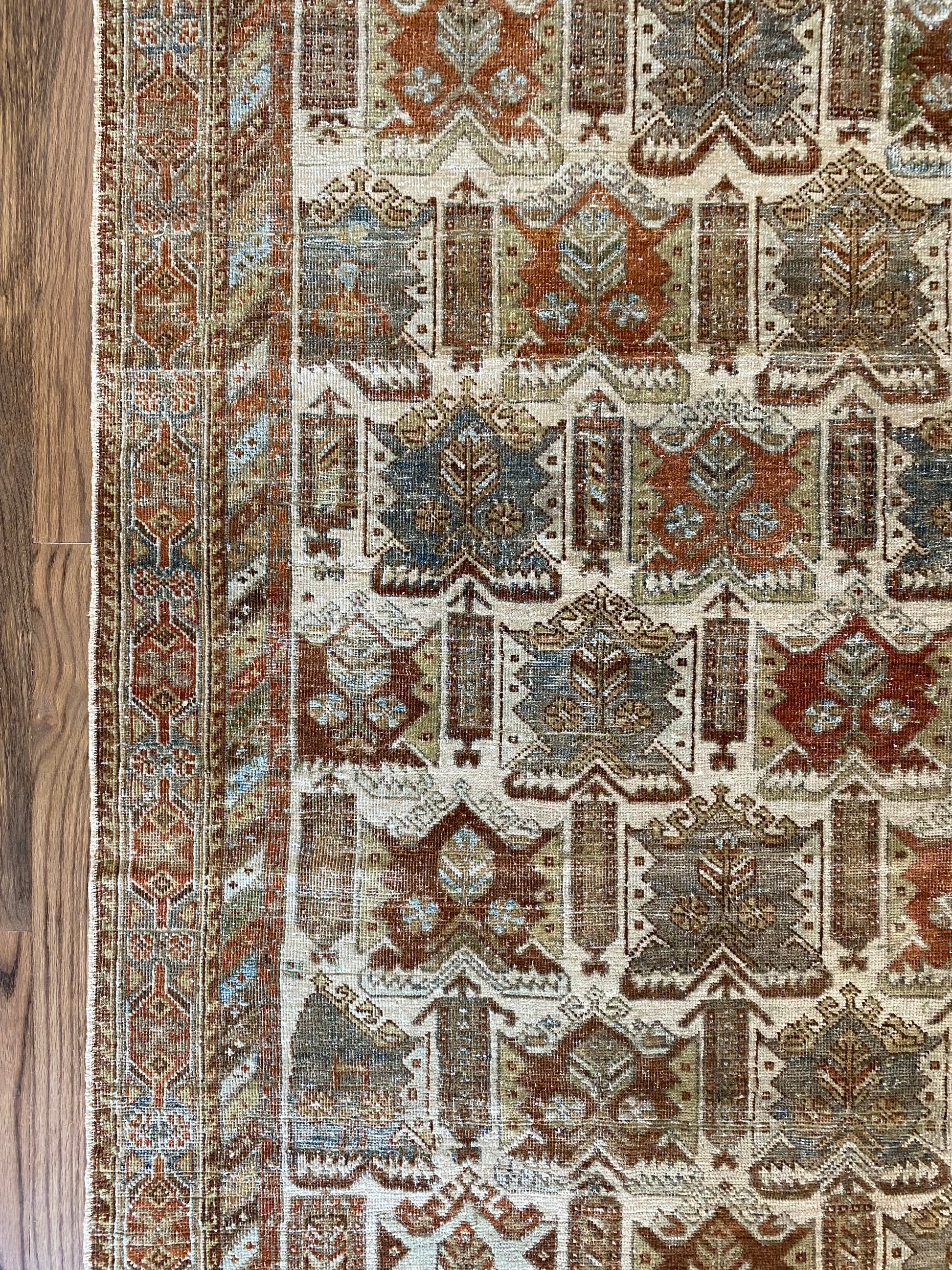 All of our rugs have been professionally cleaned prior to listing. We strive to deliver rugs that everyone loves, but please note that when you purchase from Two Sisters Rugs you are purchasing an item that is pre-owned and vintage by nature. Rugs might have areas of wear, minor repairs, or other unique characteristics, but we believe this is what makes them beautiful and one of a kind. Many rugs do not have perfect lines. All photographs are taken on an iPhone with no filter in natural light unless otherwise noted; colors may vary depending on the placement in your home. Colors may also vary depending on your phone or screen settings. If the area you are placing the rug has less natural light, the rug will appear darker in person. We aim to represent each rugs true colors and designs on the listing photos, but are happy to send additional photos upon request prior to purchase. High quality wool contains a substance called lanolin, which emits a metallic-y, but sweet and grassy scent. ALL SALES ARE FINAL.