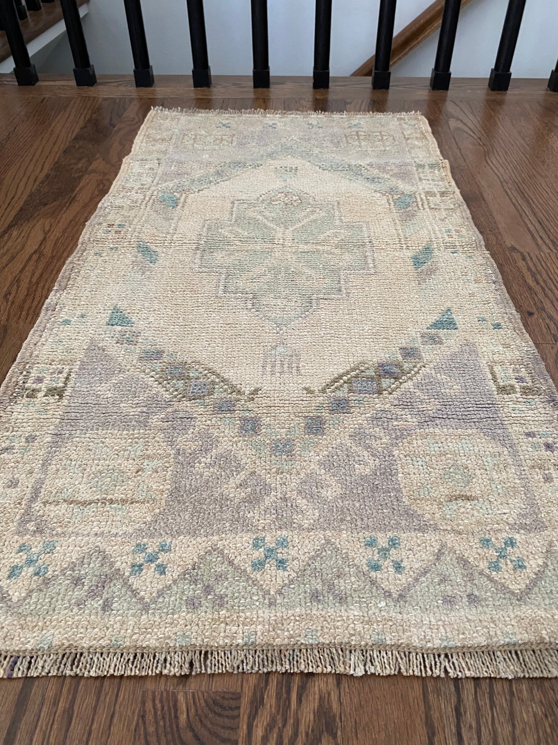 All of our rugs have been professionally cleaned prior to listing. We strive to deliver rugs that everyone loves, but please note that when you purchase from Two Sisters Rugs you are purchasing an item that is pre-owned and vintage by nature. Rugs might have areas of wear, minor repairs, or other unique characteristics, but we believe this is what makes them beautiful and one of a kind. Many rugs do not have perfect lines. All photographs are taken on an iPhone with no filter in natural light unless otherwise noted; colors may vary depending on the placement in your home. Colors may also vary depending on your phone or screen settings. If the area you are placing the rug has less natural light, the rug will appear darker in person. We aim to represent each rugs true colors and designs on the listing photos, but are happy to send additional photos upon request prior to purchase. High quality wool contains a substance called lanolin, which emits a metallic-y, but sweet and grassy scent. ALL SALES ARE FINAL.