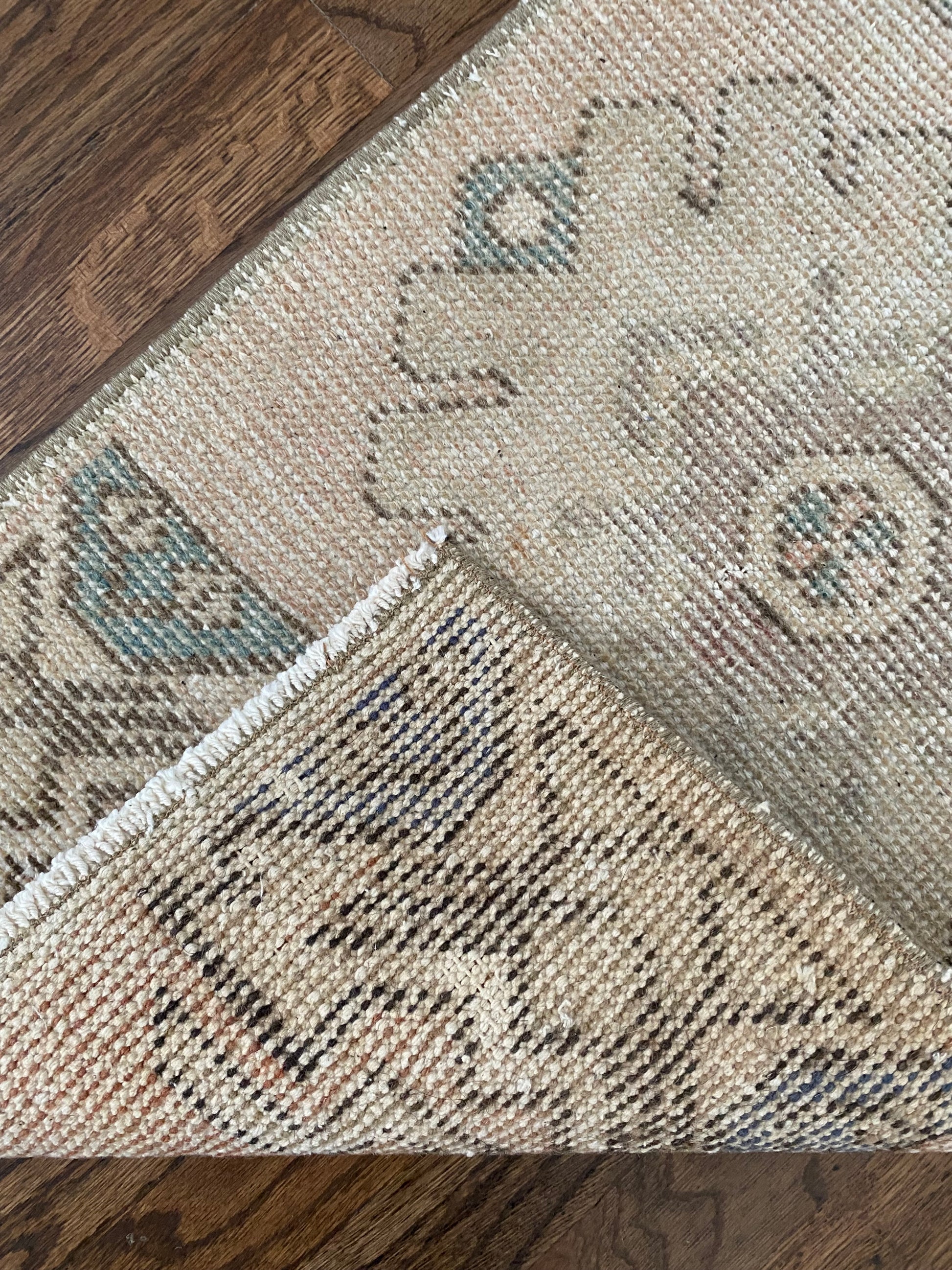All of our rugs have been professionally cleaned prior to listing. We strive to deliver rugs that everyone loves, but please note that when you purchase from Two Sisters Rugs you are purchasing an item that is pre-owned and vintage by nature. Rugs might have areas of wear, minor repairs, or other unique characteristics, but we believe this is what makes them beautiful and one of a kind. Many rugs do not have perfect lines. All photographs are taken on an iPhone with no filter in natural light unless otherwise noted; colors may vary depending on the placement in your home. Colors may also vary depending on your phone or screen settings. If the area you are placing the rug has less natural light, the rug will appear darker in person. We aim to represent each rugs true colors and designs on the listing photos, but are happy to send additional photos upon request prior to purchase. High quality wool contains a substance called lanolin, which emits a metallic-y, but sweet and grassy scent. ALL SALES ARE FINAL.