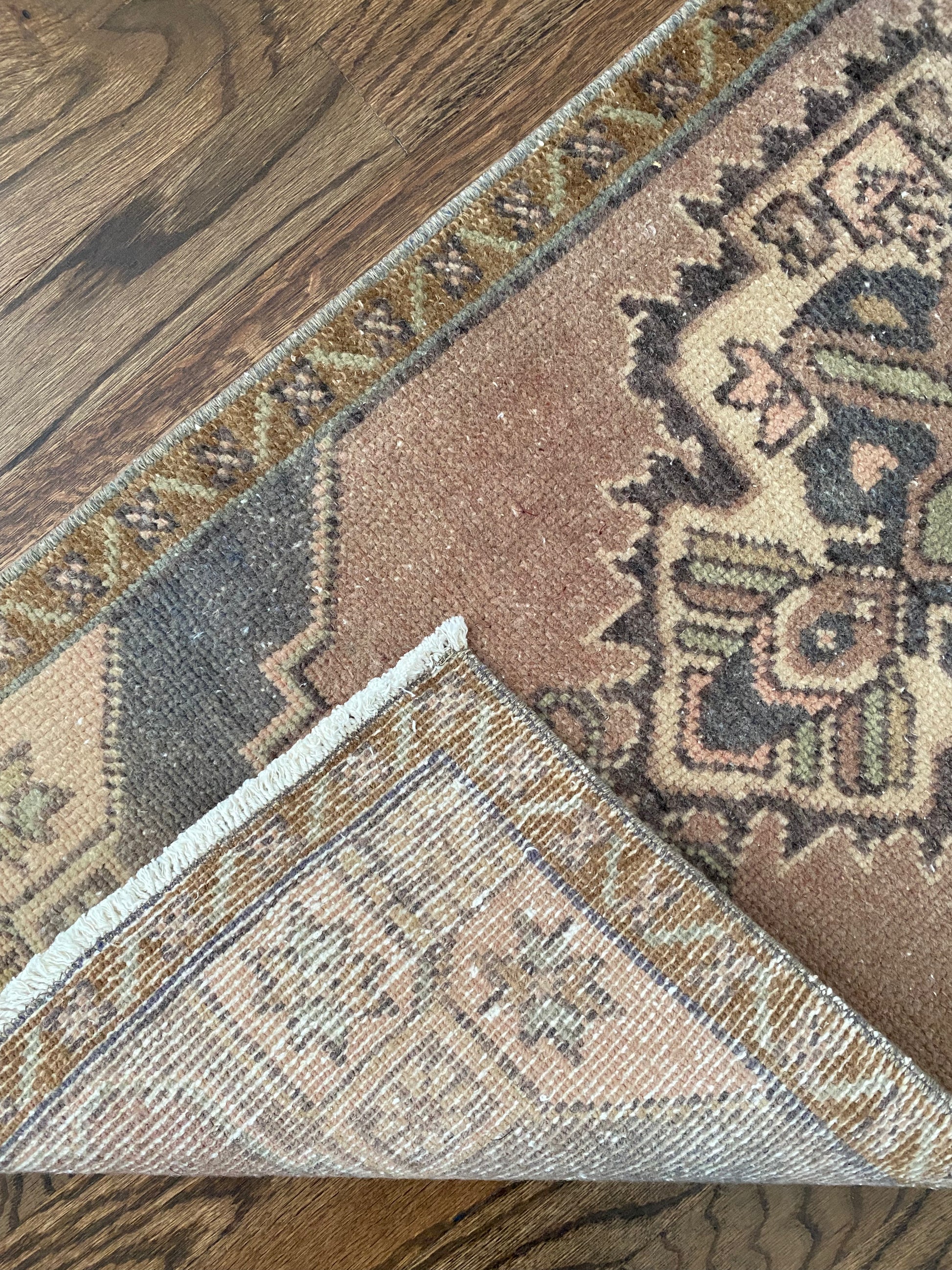 All of our rugs have been professionally cleaned prior to listing. We strive to deliver rugs that everyone loves, but please note that when you purchase from Two Sisters Rugs you are purchasing an item that is pre-owned and vintage by nature. Rugs might have areas of wear, minor repairs, or other unique characteristics, but we believe this is what makes them beautiful and one of a kind. Many rugs do not have perfect lines. All photographs are taken on an iPhone with no filter in natural light unless otherwise noted; colors may vary depending on the placement in your home. Colors may also vary depending on your phone or screen settings. If the area you are placing the rug has less natural light, the rug will appear darker in person. We aim to represent each rugs true colors and designs on the listing photos, but are happy to send additional photos upon request prior to purchase. High quality wool contains a substance called lanolin, which emits a metallic-y, but sweet and grassy scent. ALL SALES ARE FINAL.