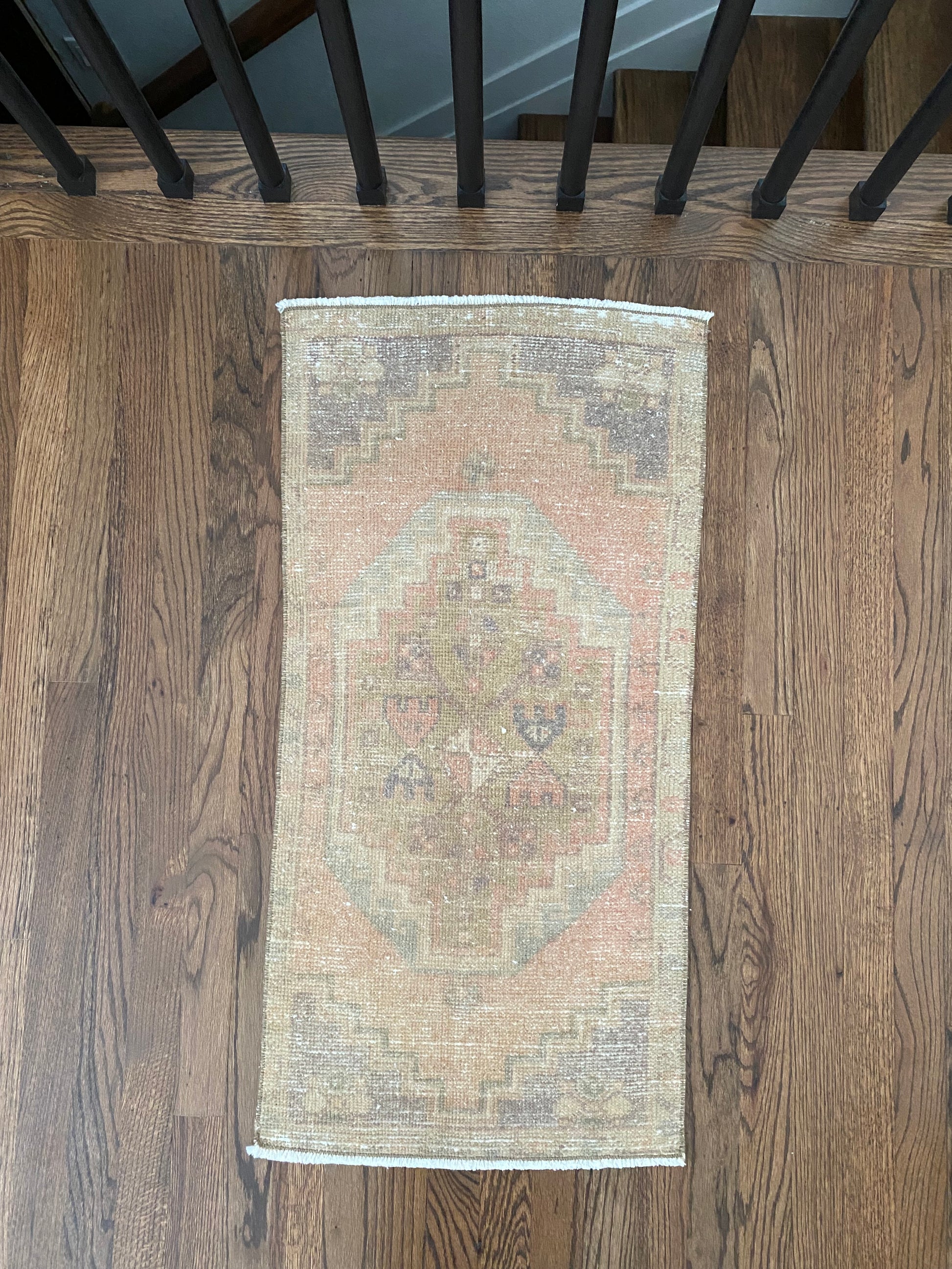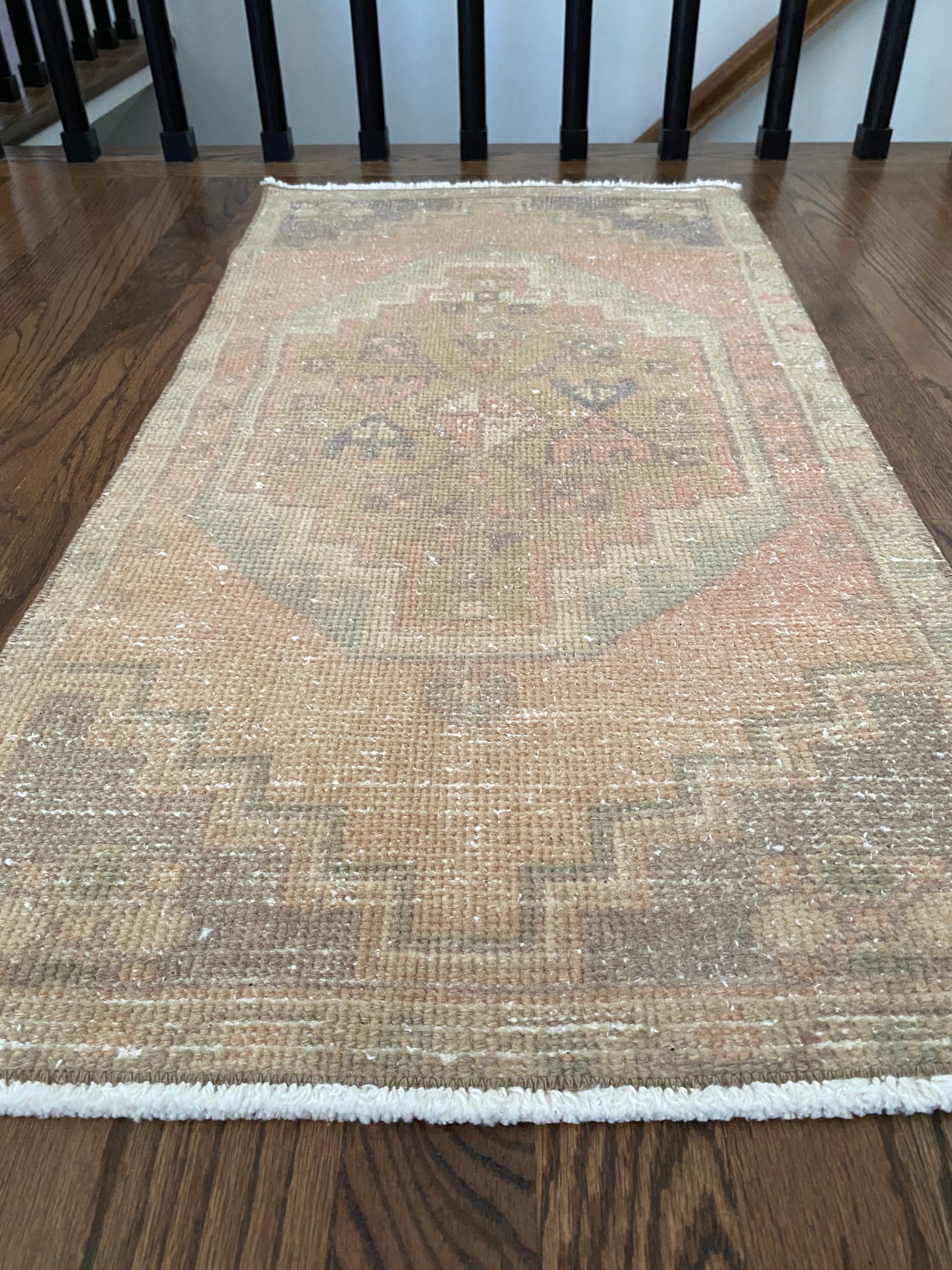 All of our rugs have been professionally cleaned prior to listing. We strive to deliver rugs that everyone loves, but please note that when you purchase from Two Sisters Rugs you are purchasing an item that is pre-owned and vintage by nature. Rugs might have areas of wear, minor repairs, or other unique characteristics, but we believe this is what makes them beautiful and one of a kind. Many rugs do not have perfect lines. All photographs are taken on an iPhone with no filter in natural light unless otherwise noted; colors may vary depending on the placement in your home. Colors may also vary depending on your phone or screen settings. If the area you are placing the rug has less natural light, the rug will appear darker in person. We aim to represent each rugs true colors and designs on the listing photos, but are happy to send additional photos upon request prior to purchase. High quality wool contains a substance called lanolin, which emits a metallic-y, but sweet and grassy scent. ALL SALES ARE FINAL.