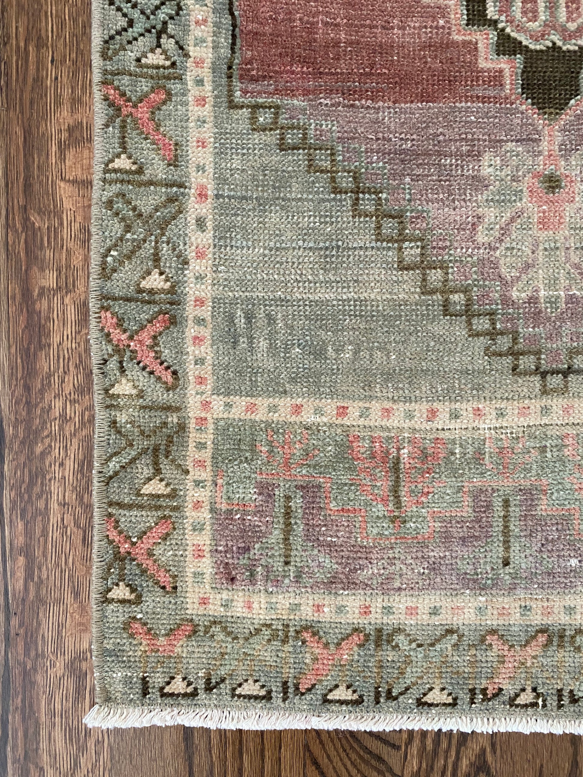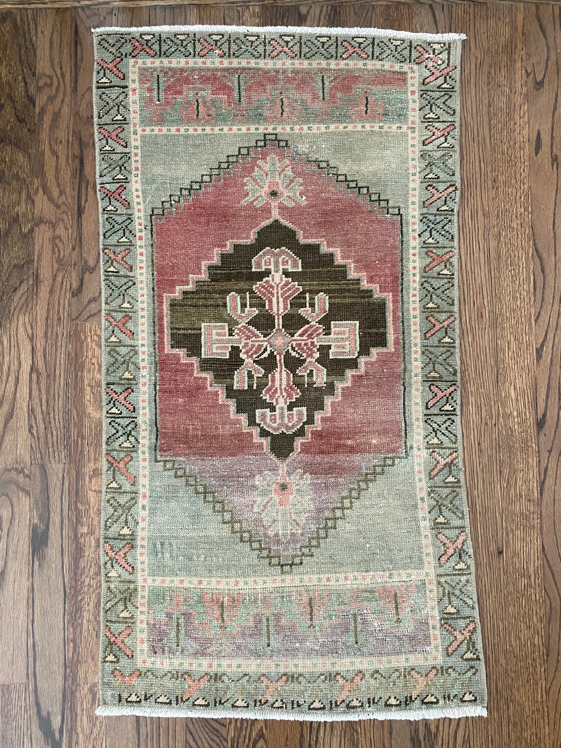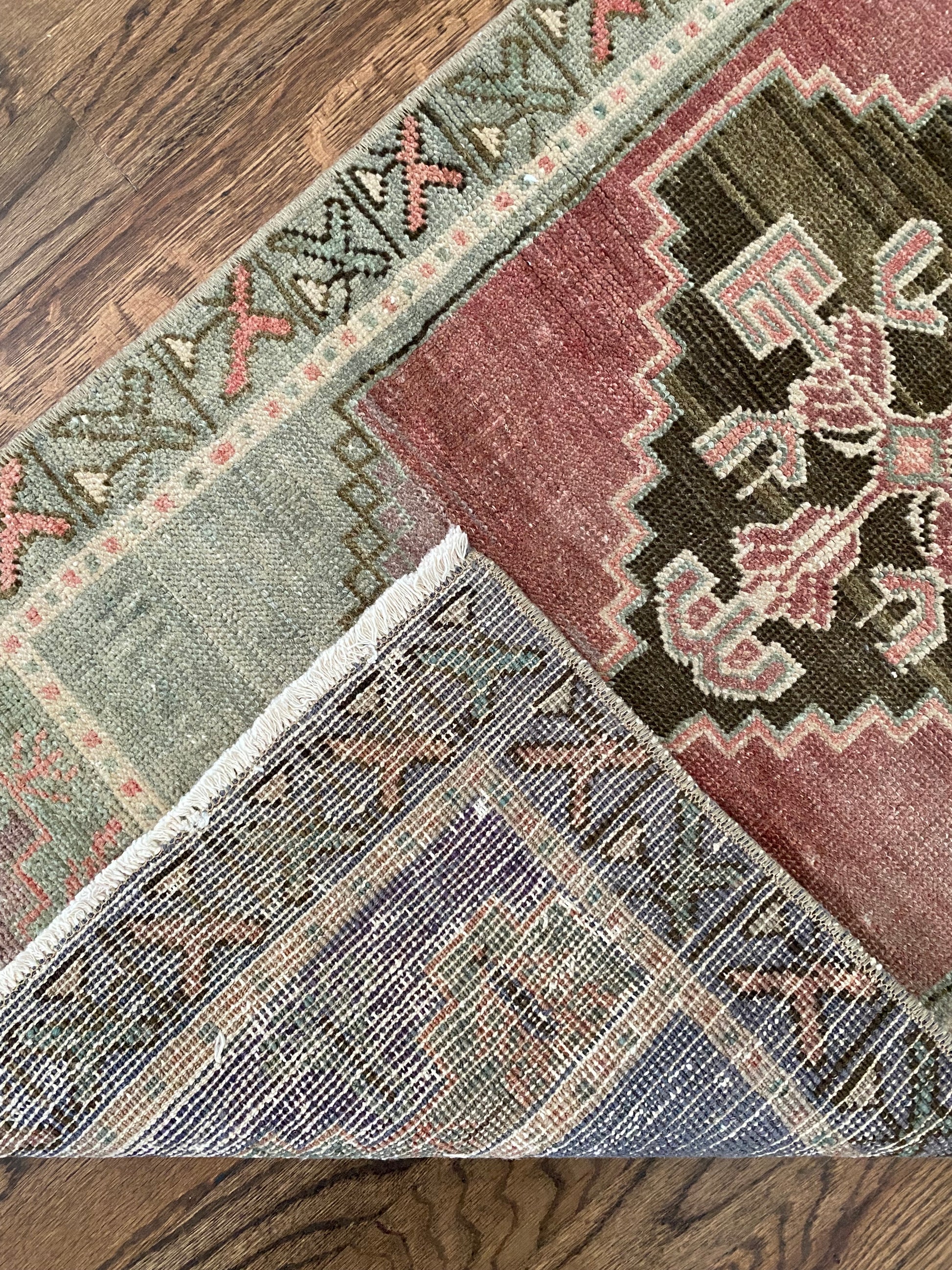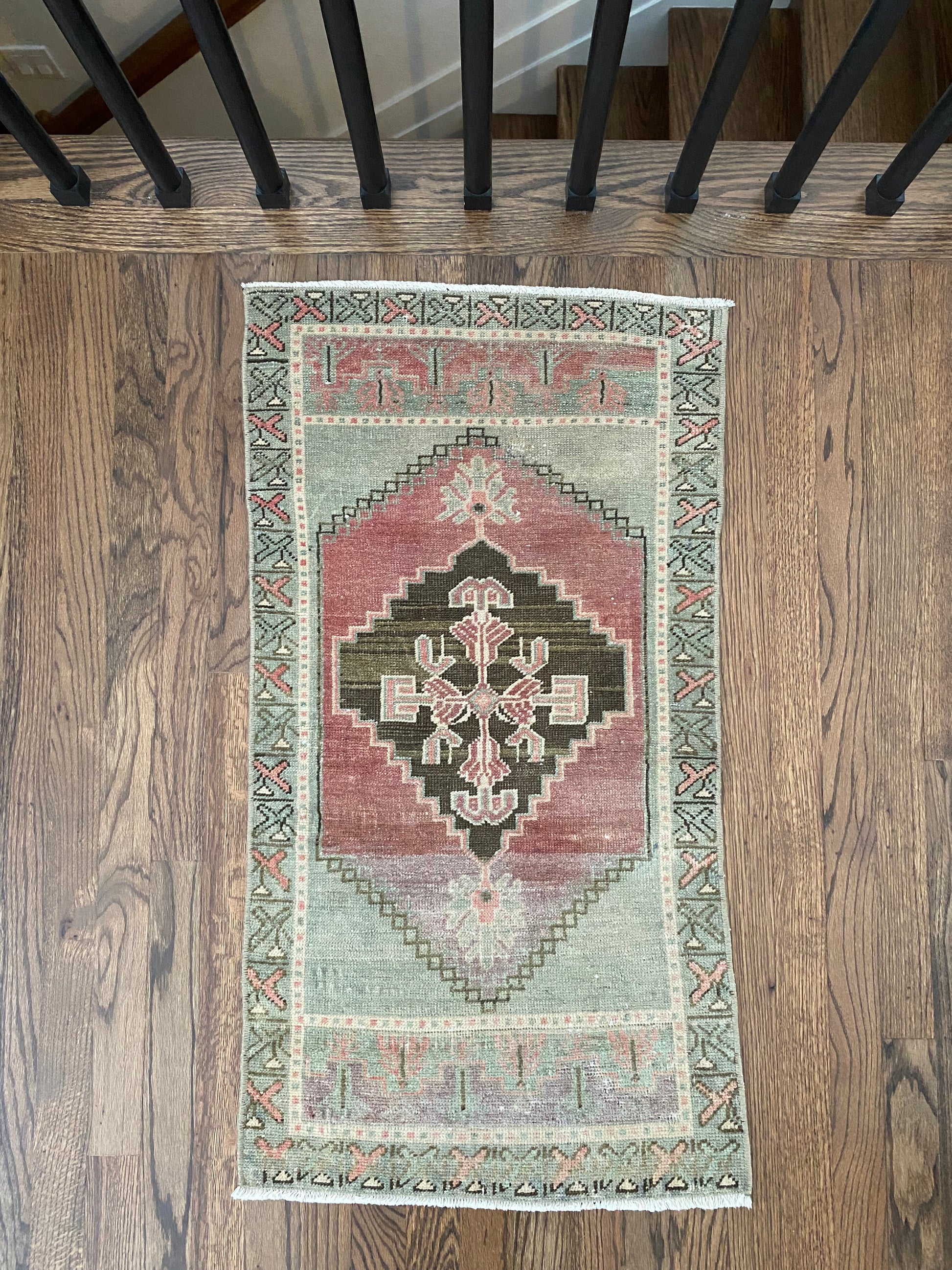 All of our rugs have been professionally cleaned prior to listing. We strive to deliver rugs that everyone loves, but please note that when you purchase from Two Sisters Rugs you are purchasing an item that is pre-owned and vintage by nature. Rugs might have areas of wear, minor repairs, or other unique characteristics, but we believe this is what makes them beautiful and one of a kind. Many rugs do not have perfect lines. All photographs are taken on an iPhone with no filter in natural light unless otherwise noted; colors may vary depending on the placement in your home. Colors may also vary depending on your phone or screen settings. If the area you are placing the rug has less natural light, the rug will appear darker in person. We aim to represent each rugs true colors and designs on the listing photos, but are happy to send additional photos upon request prior to purchase. High quality wool contains a substance called lanolin, which emits a metallic-y, but sweet and grassy scent. ALL SALES ARE FINAL.